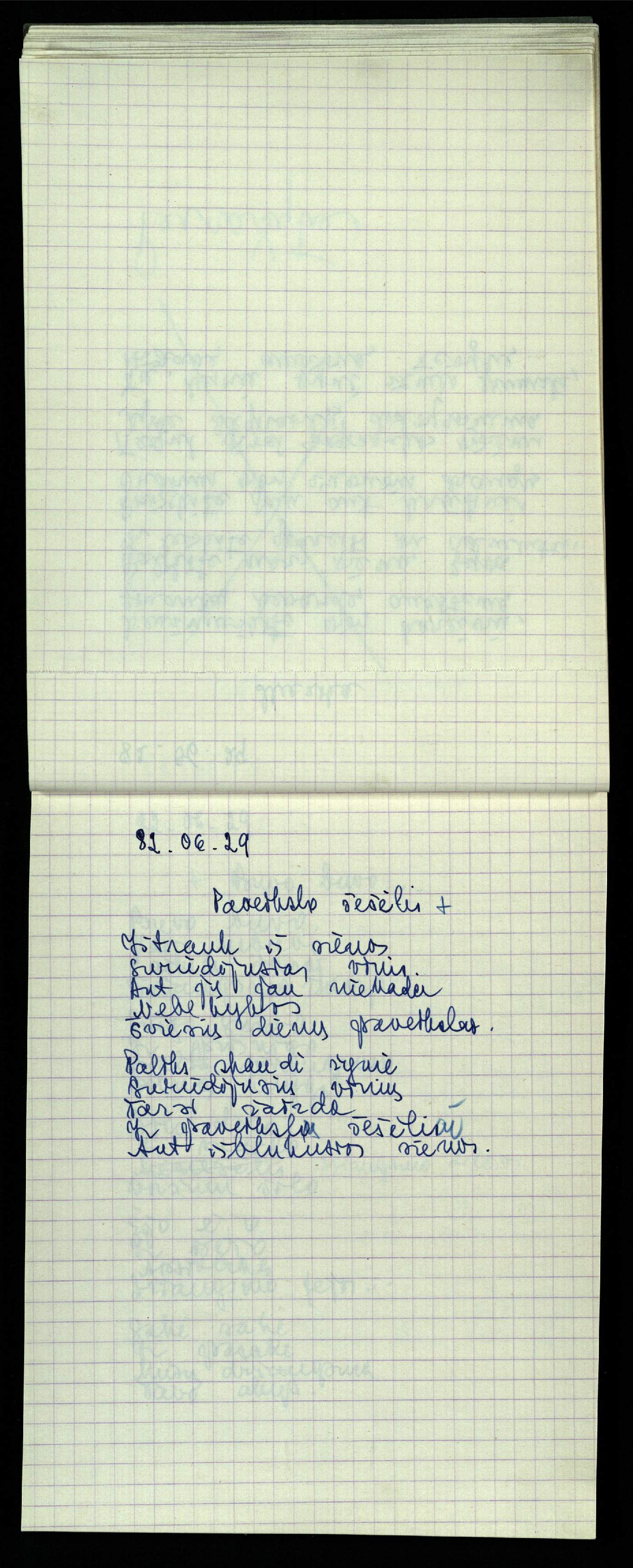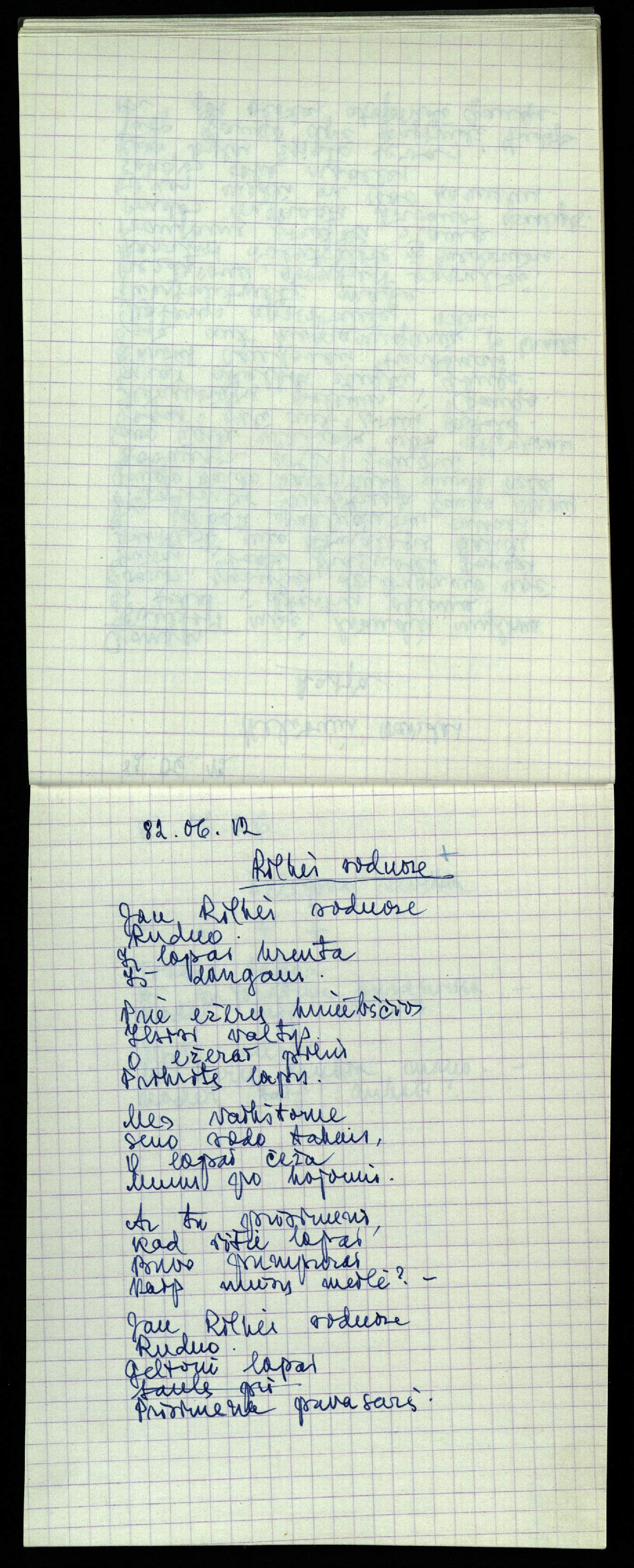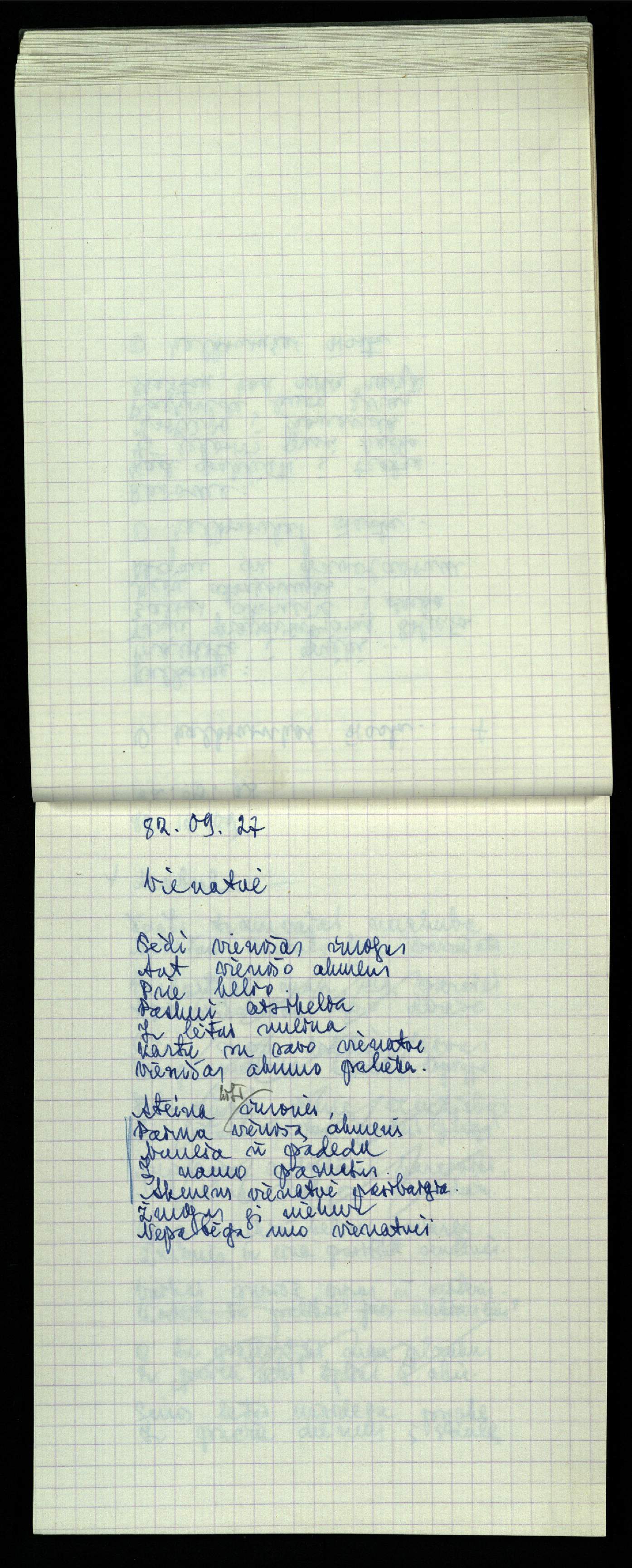 Poeto, vertėjo, eseisto, architekto Jono Vytauto Nistelio (1922–1986), nepriėmusio sovietinės ideologijos, o pasirinkusio laisvo kūrėjo kelią, kūrybos rankraštis. Eilėraščių ir vertimų knygos skaitytoją pasiekė tiktai Lietuvai atgavus nepriklausoomybę. Rankraštį Pasvalio bibliotekai dovanojo brolis poetas Zenonas Nistelis.