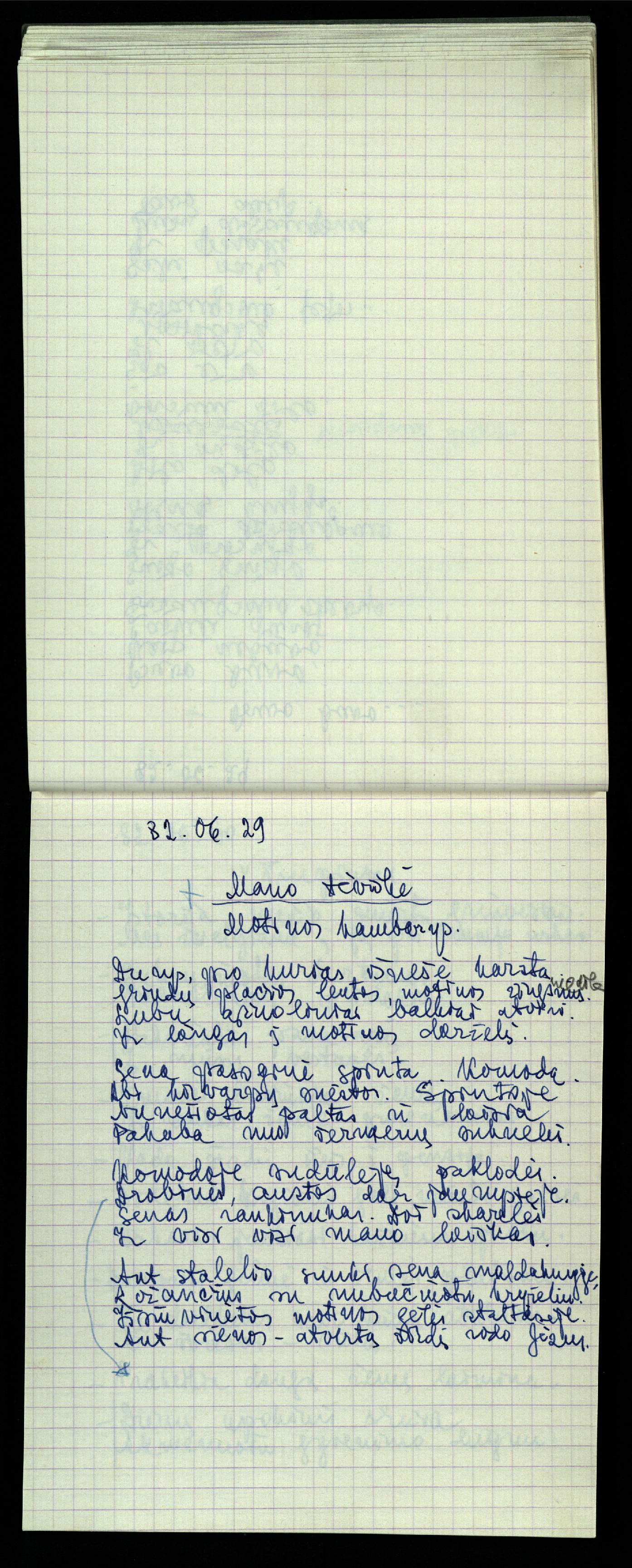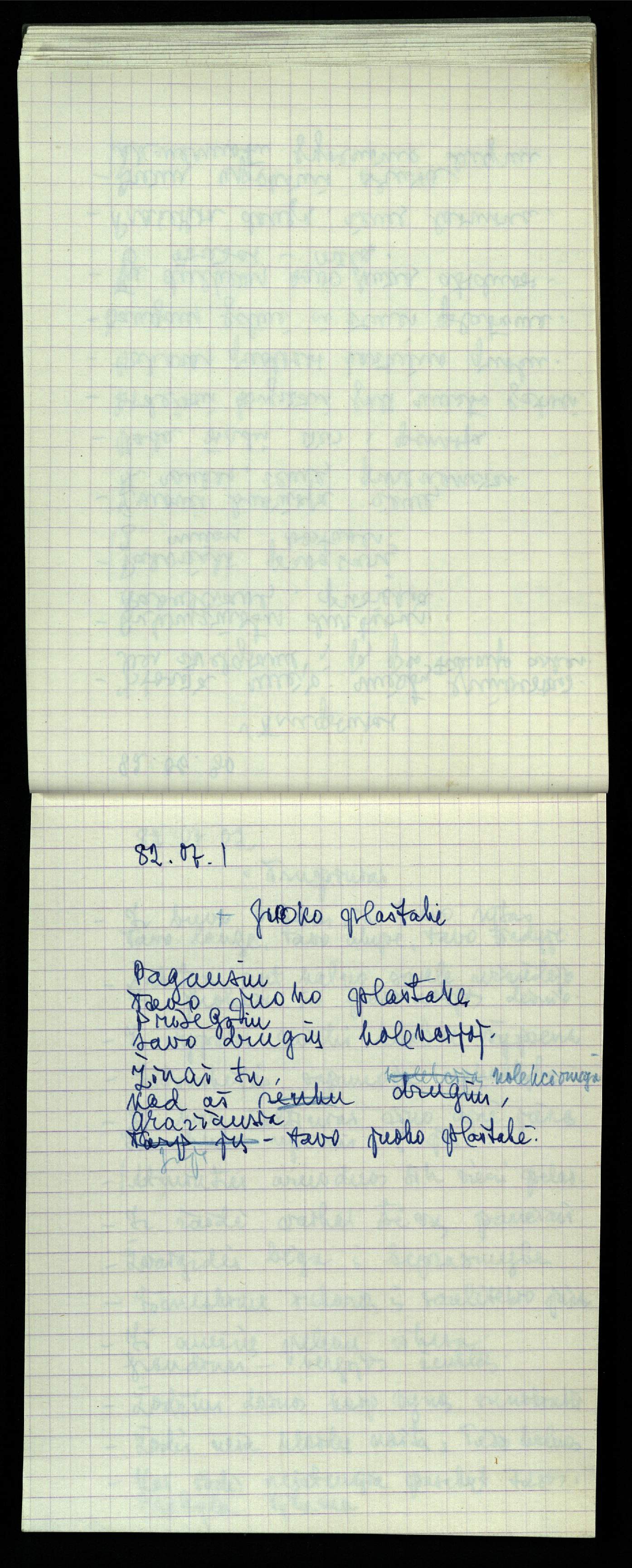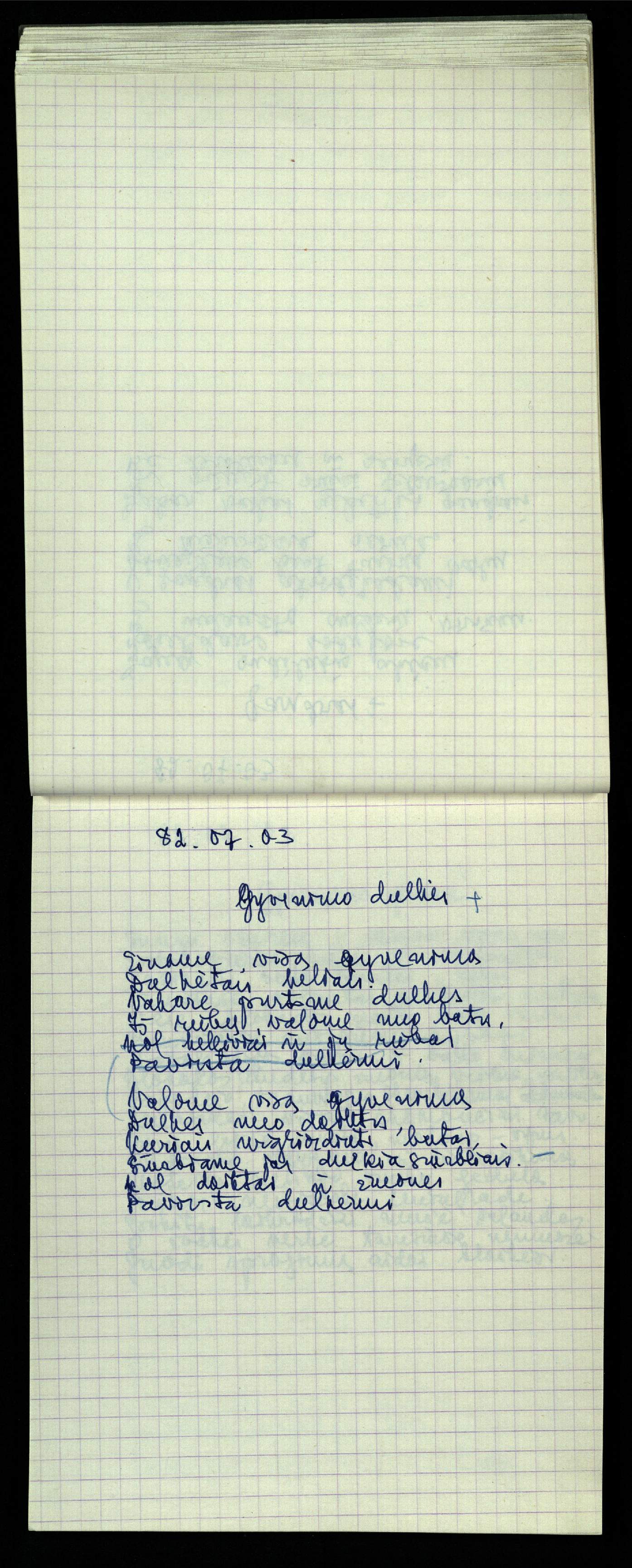 Poeto, vertėjo, eseisto, architekto Jono Vytauto Nistelio (1922–1986), nepriėmusio sovietinės ideologijos, o pasirinkusio laisvo kūrėjo kelią, kūrybos rankraštis. Eilėraščių ir vertimų knygos skaitytoją pasiekė tiktai Lietuvai atgavus nepriklausoomybę. Rankraštį Pasvalio bibliotekai dovanojo brolis poetas Zenonas Nistelis.