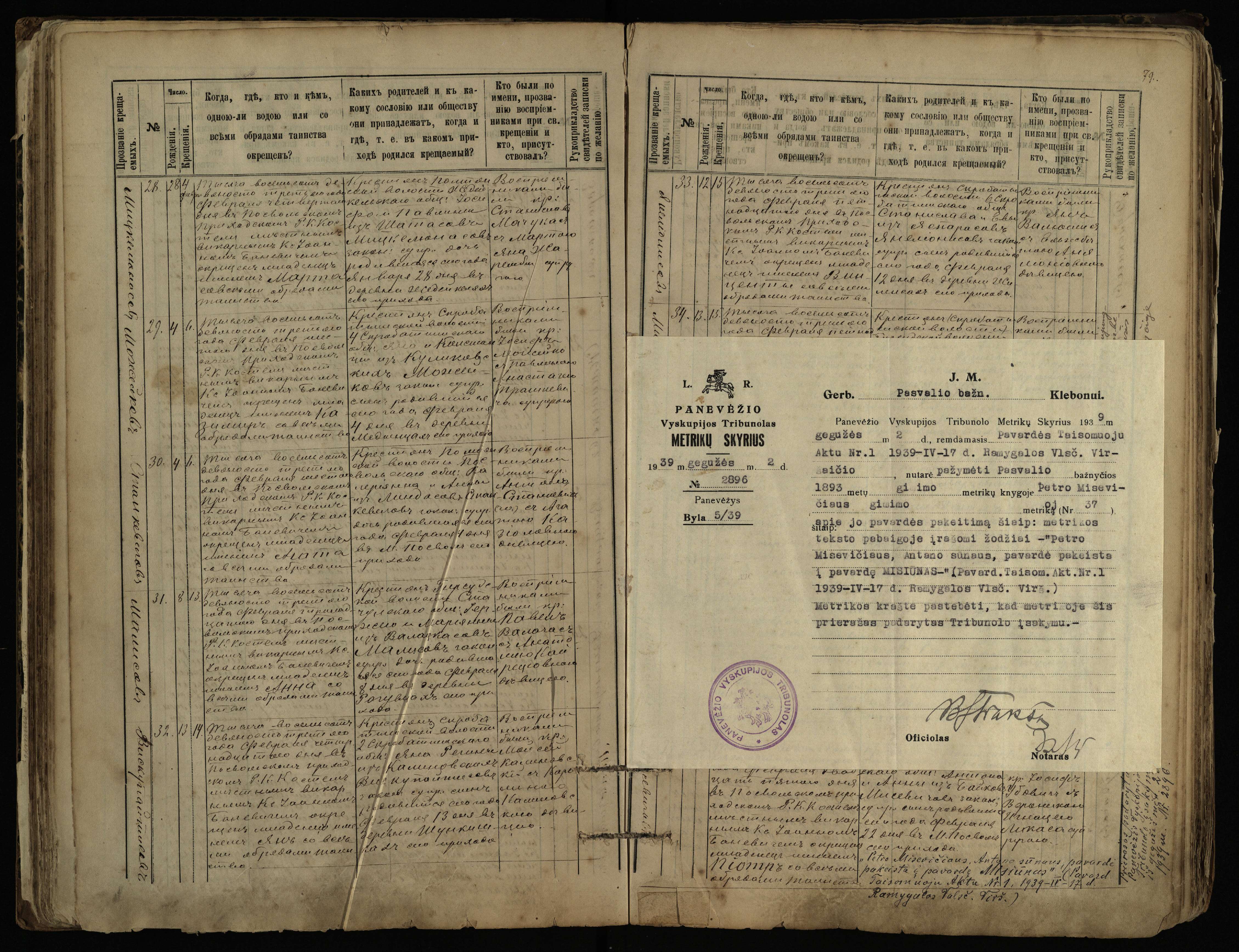 Pasvalio Romos katalikų parapijos bažnyčios 1889–1898 metų krikšto metrikų knyga