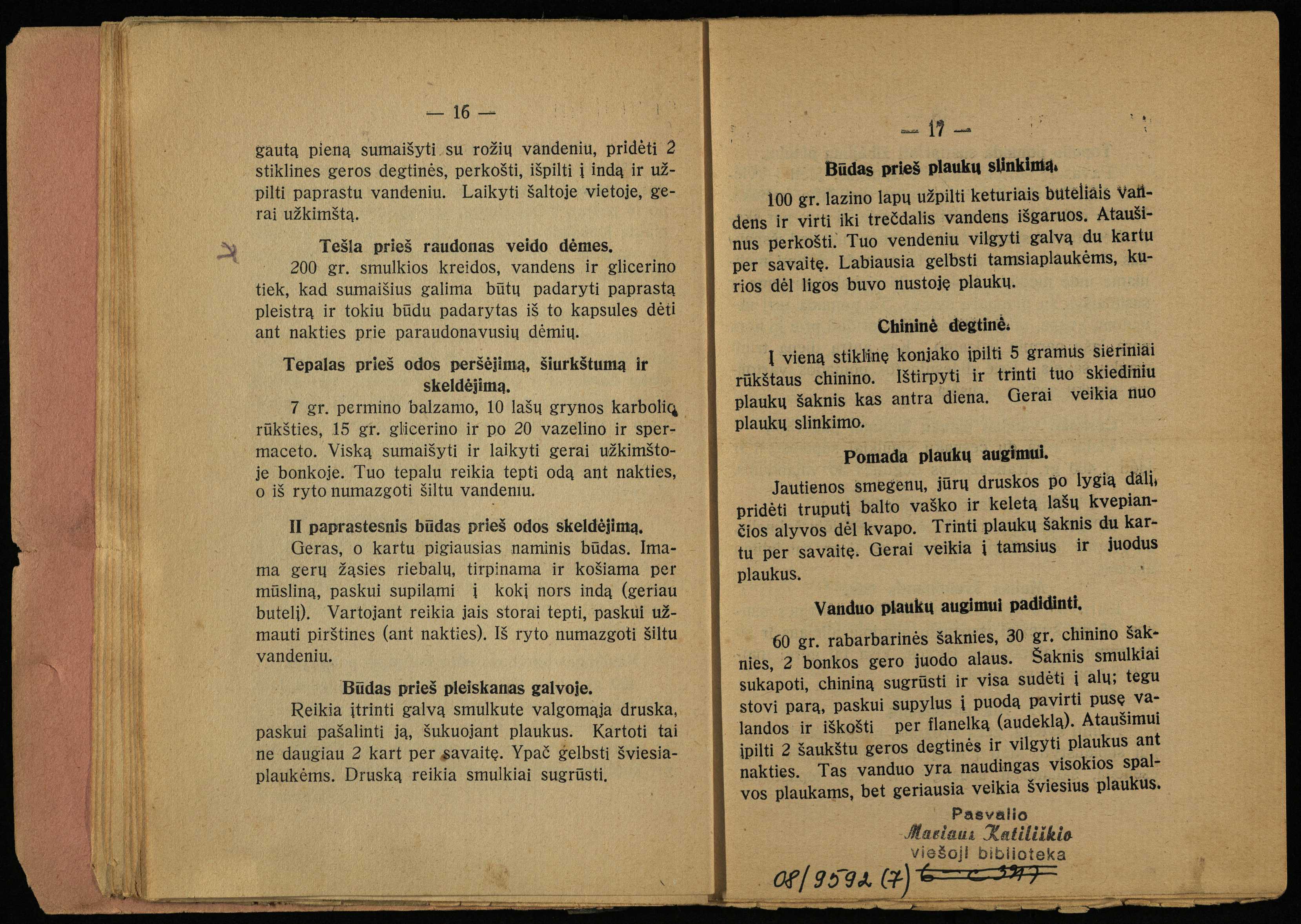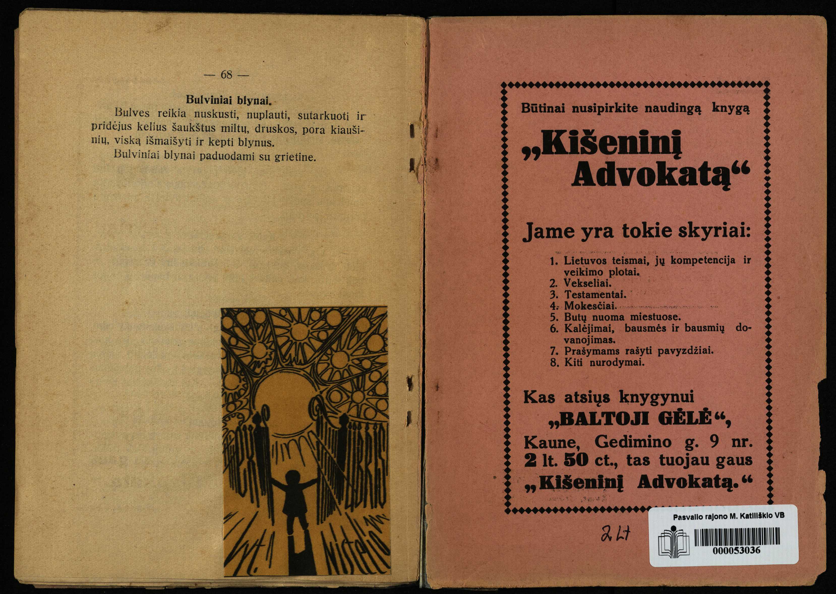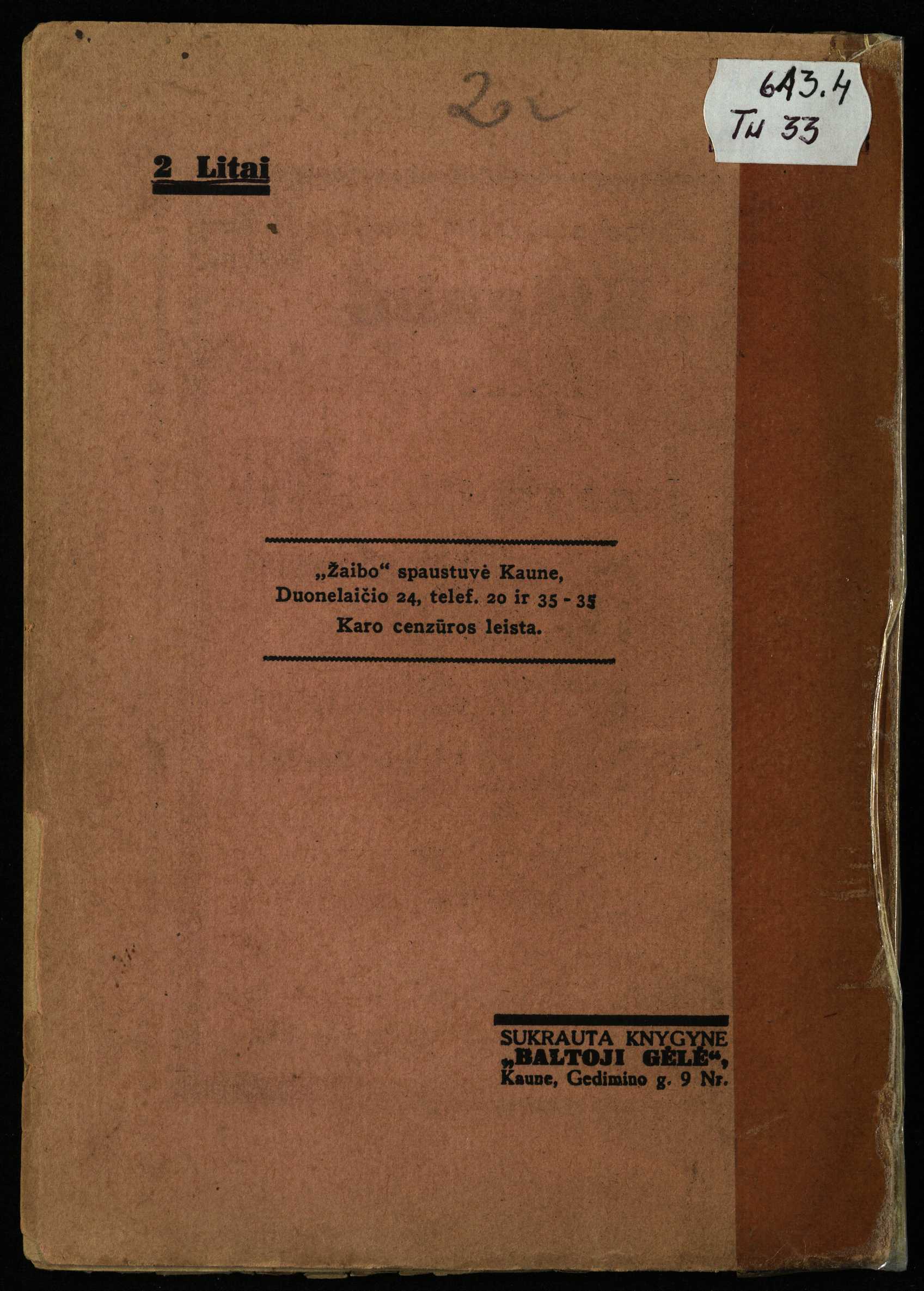 Zenono Nistelio dovana. Pirmame knygos puslapyje antspaudas: Jonas Nistelis, Ąžuolpamūšio vien., Pasvalio paštas.