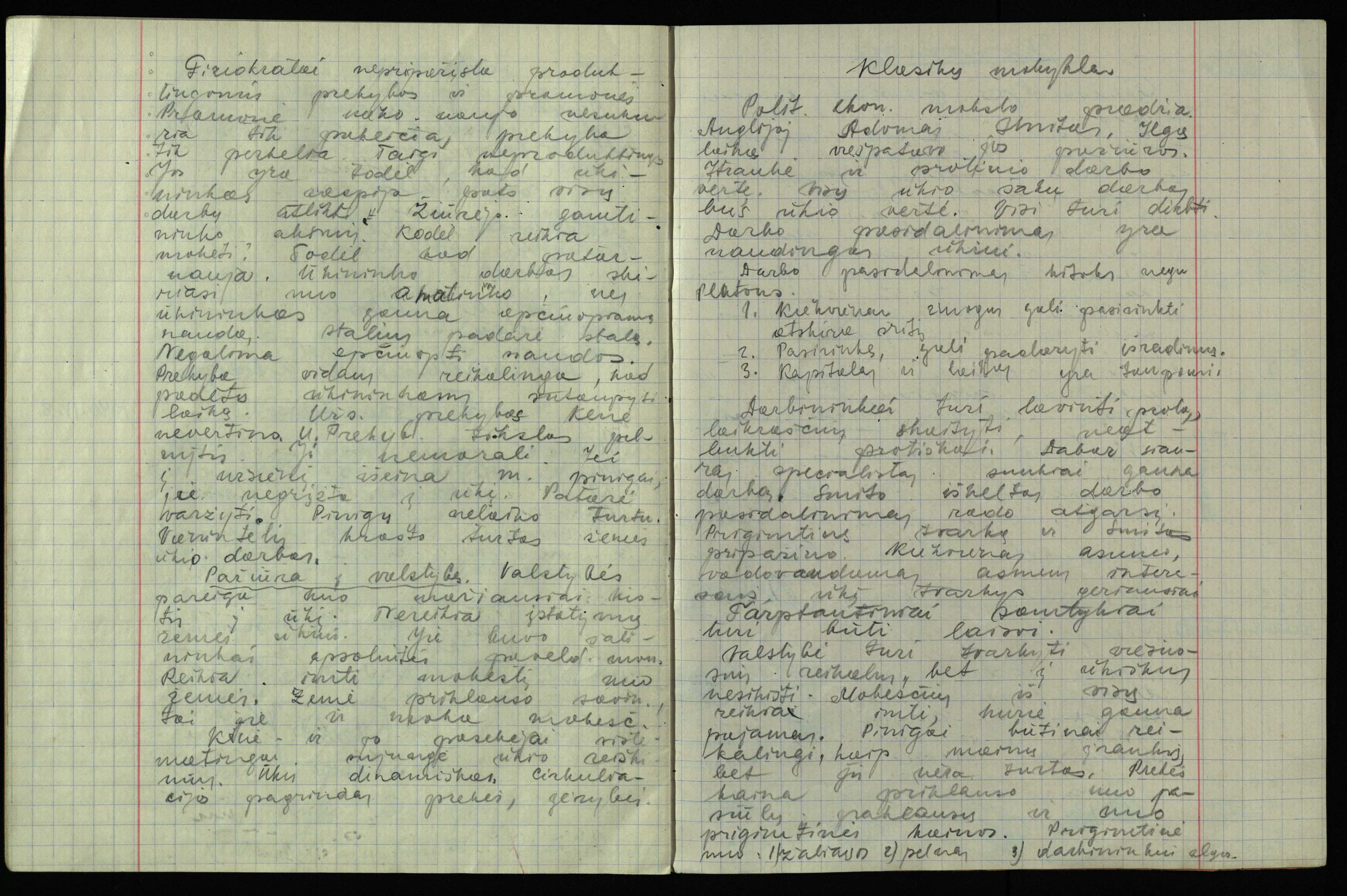 Pasvalio gimnazijos mokinio Vytauto Nistelio politinės ekonomijos užrašai