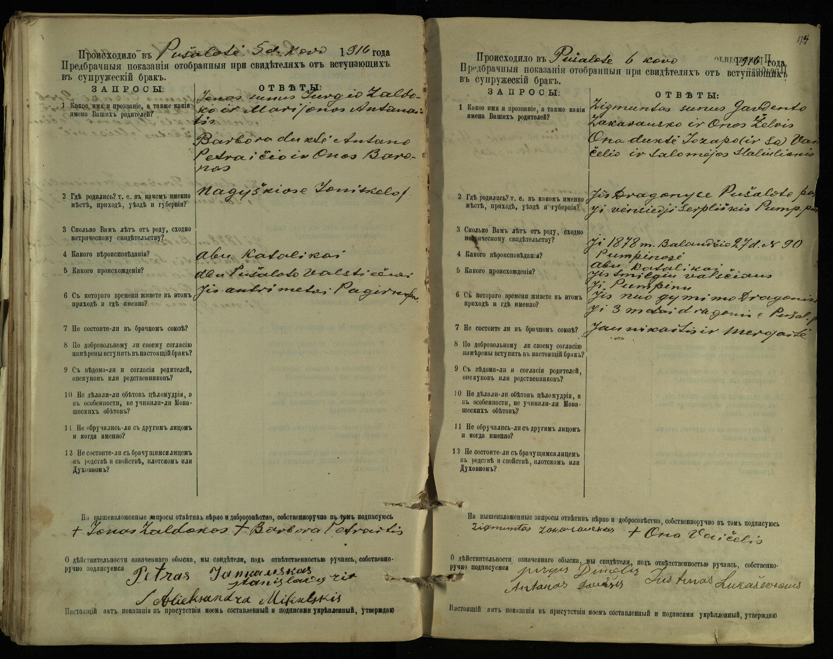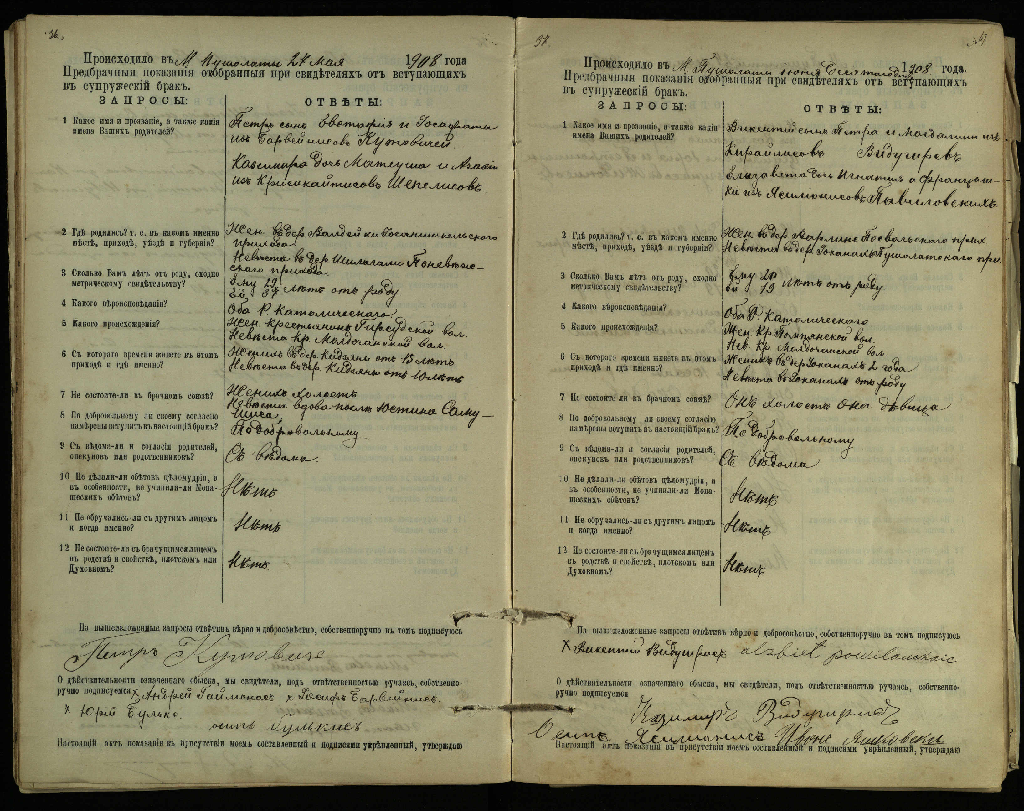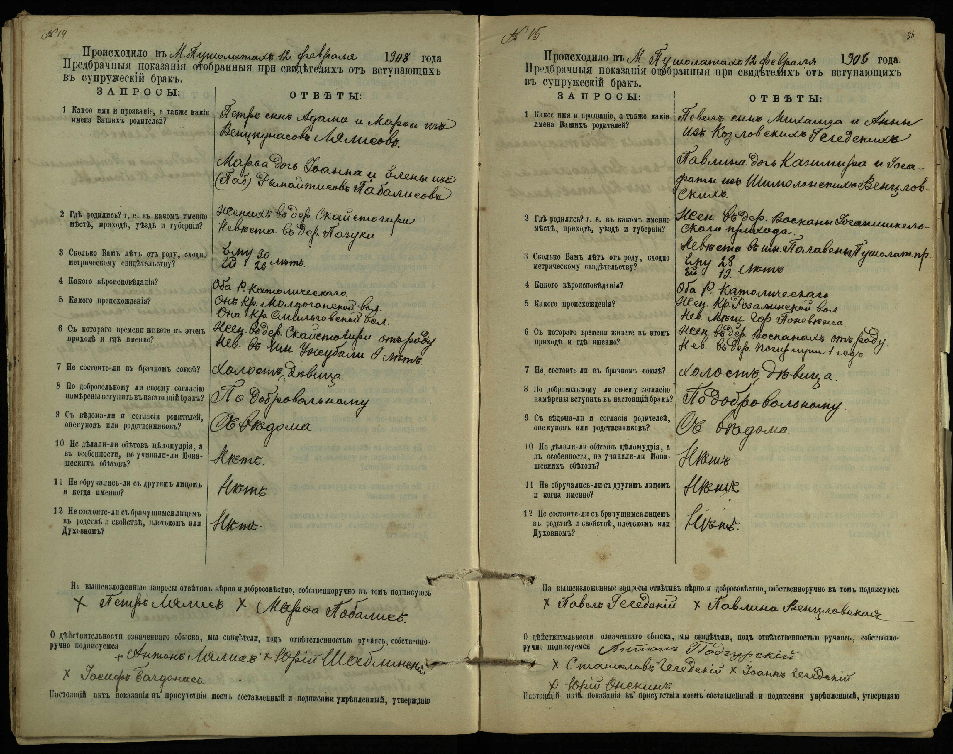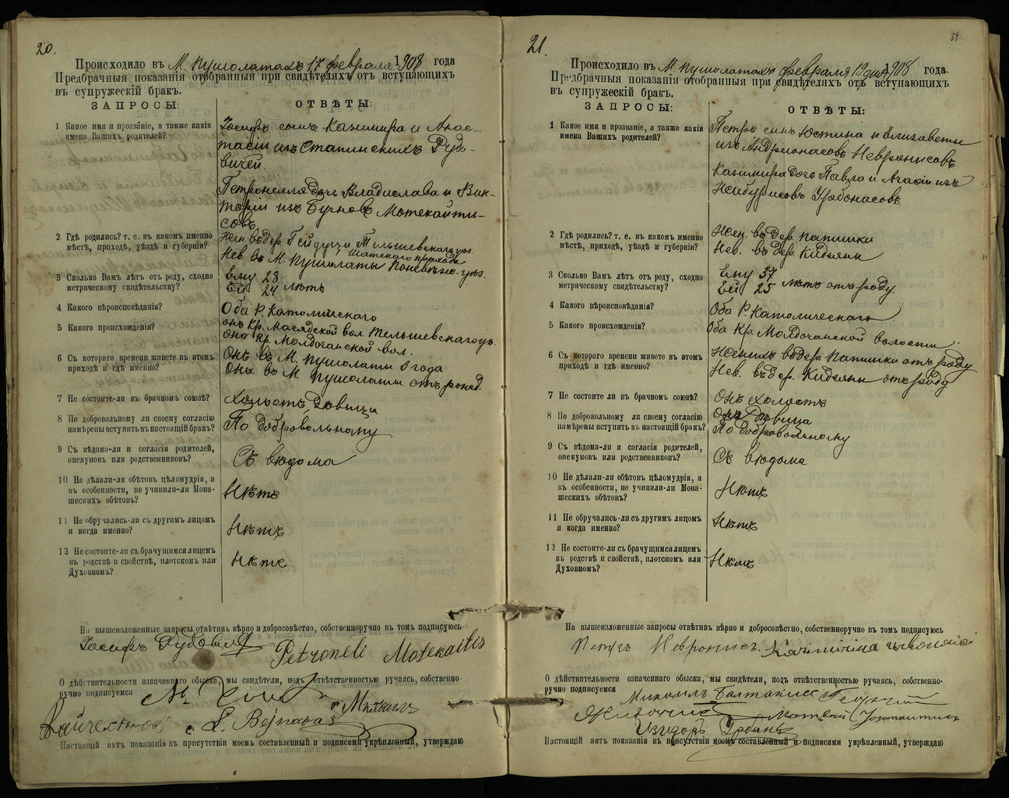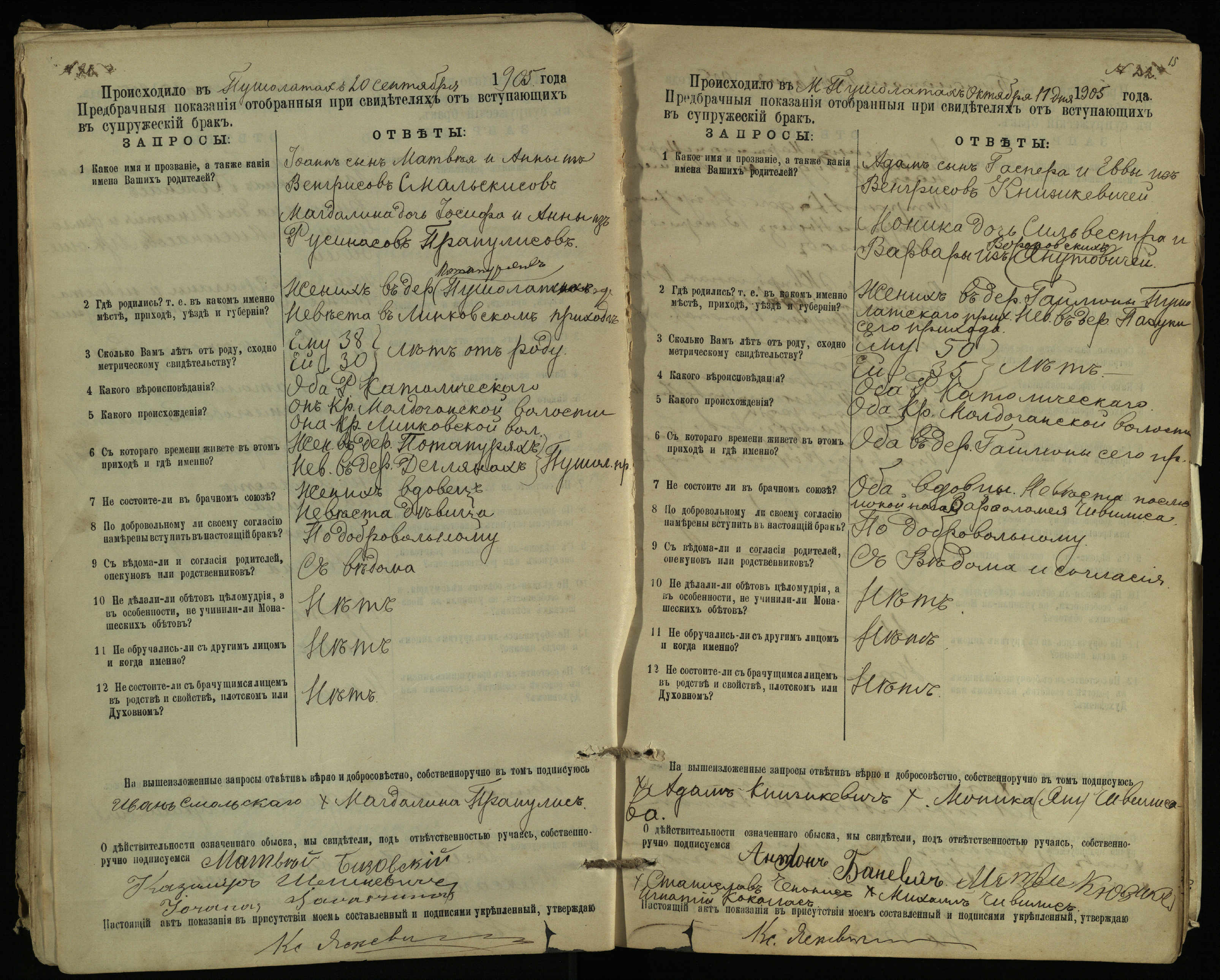 Pušaloto Romos katalikų parapijos bažnyčios 1904–1917 metų priešjungtuvinės apklausos knyga