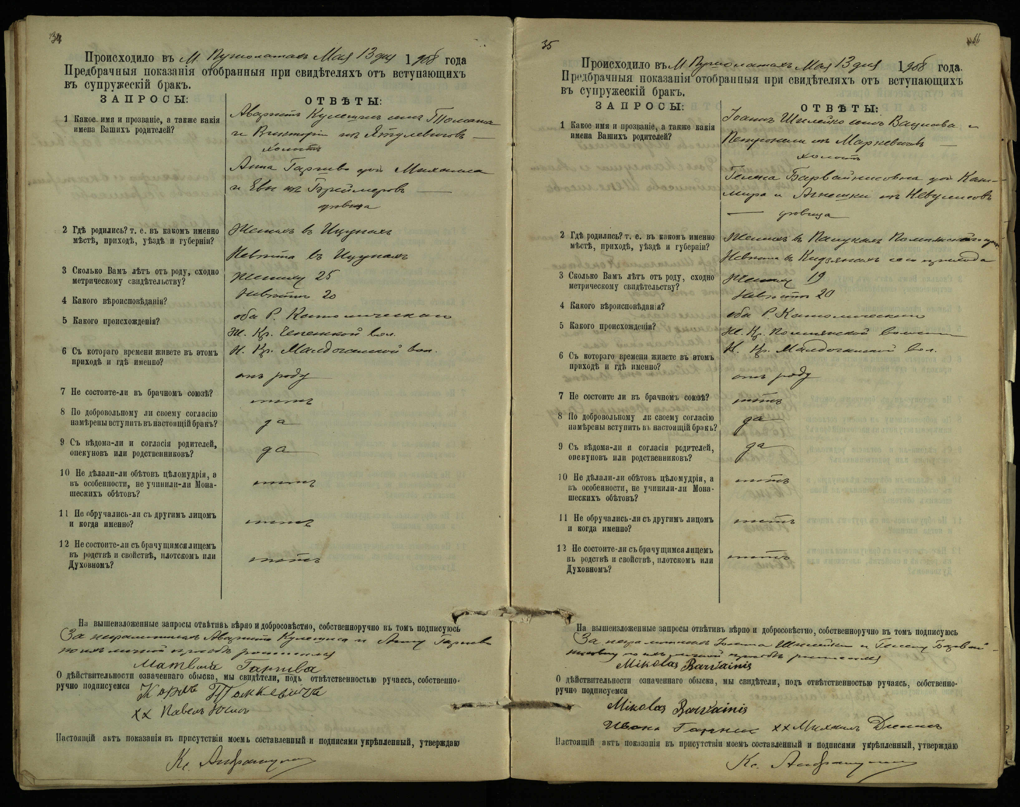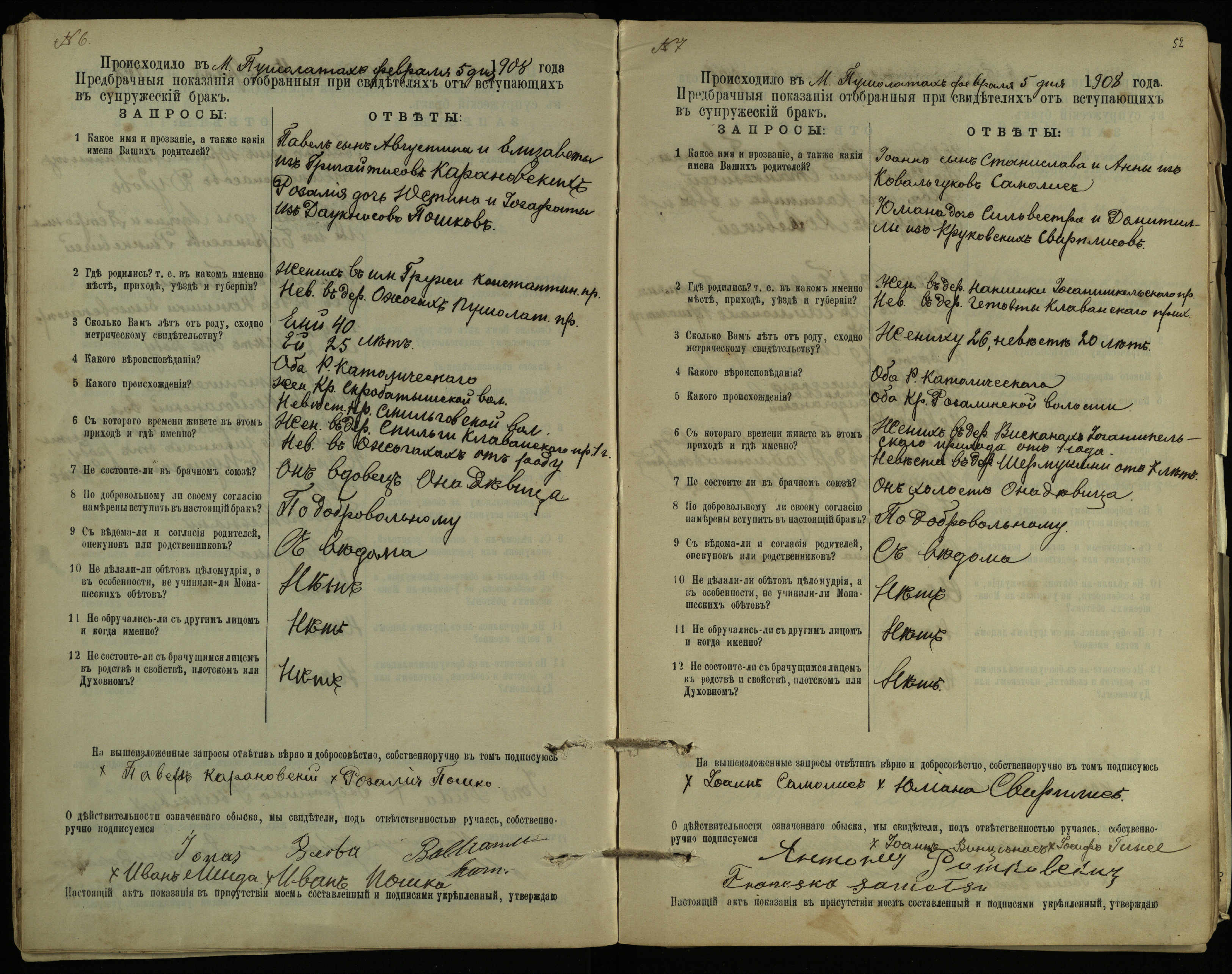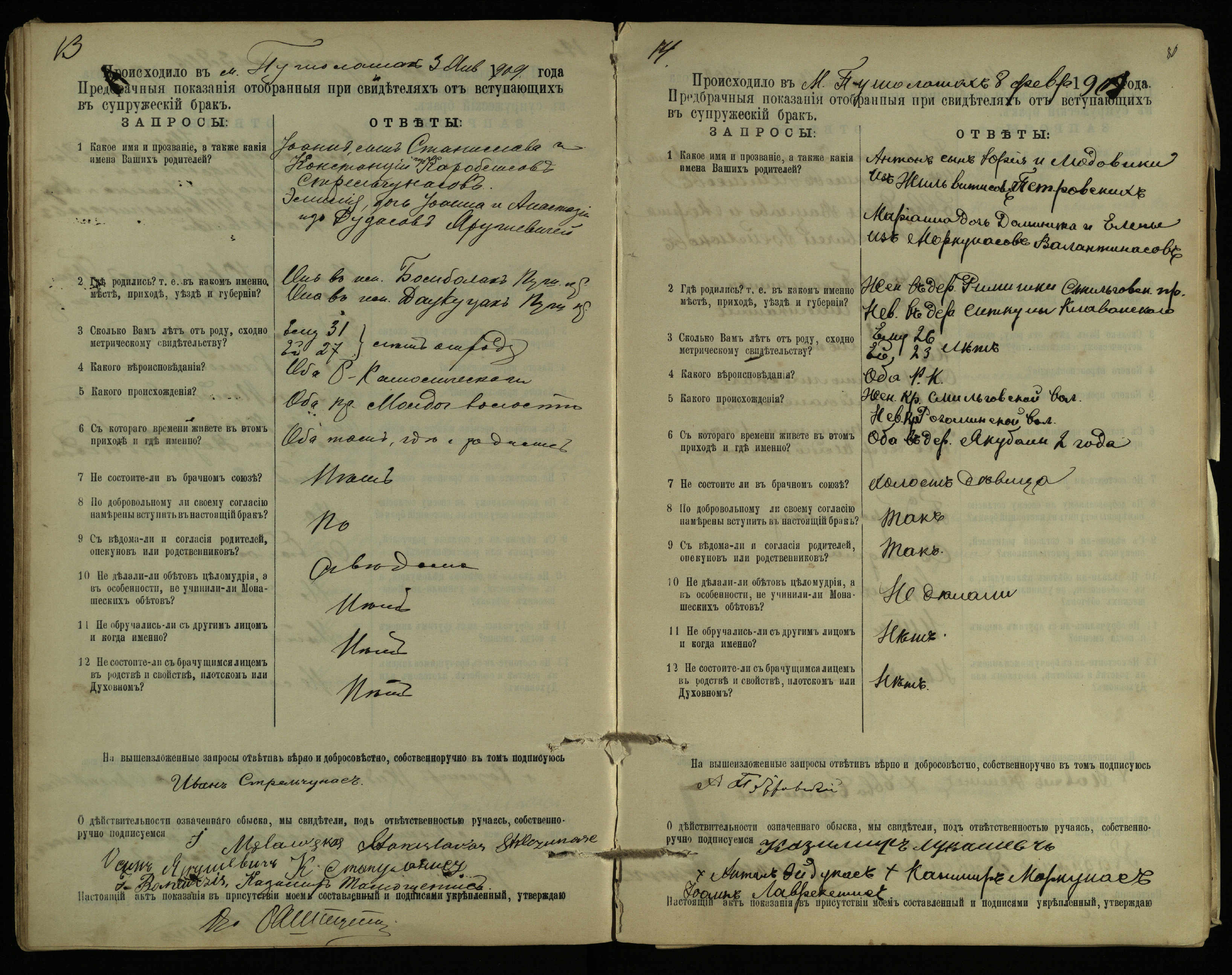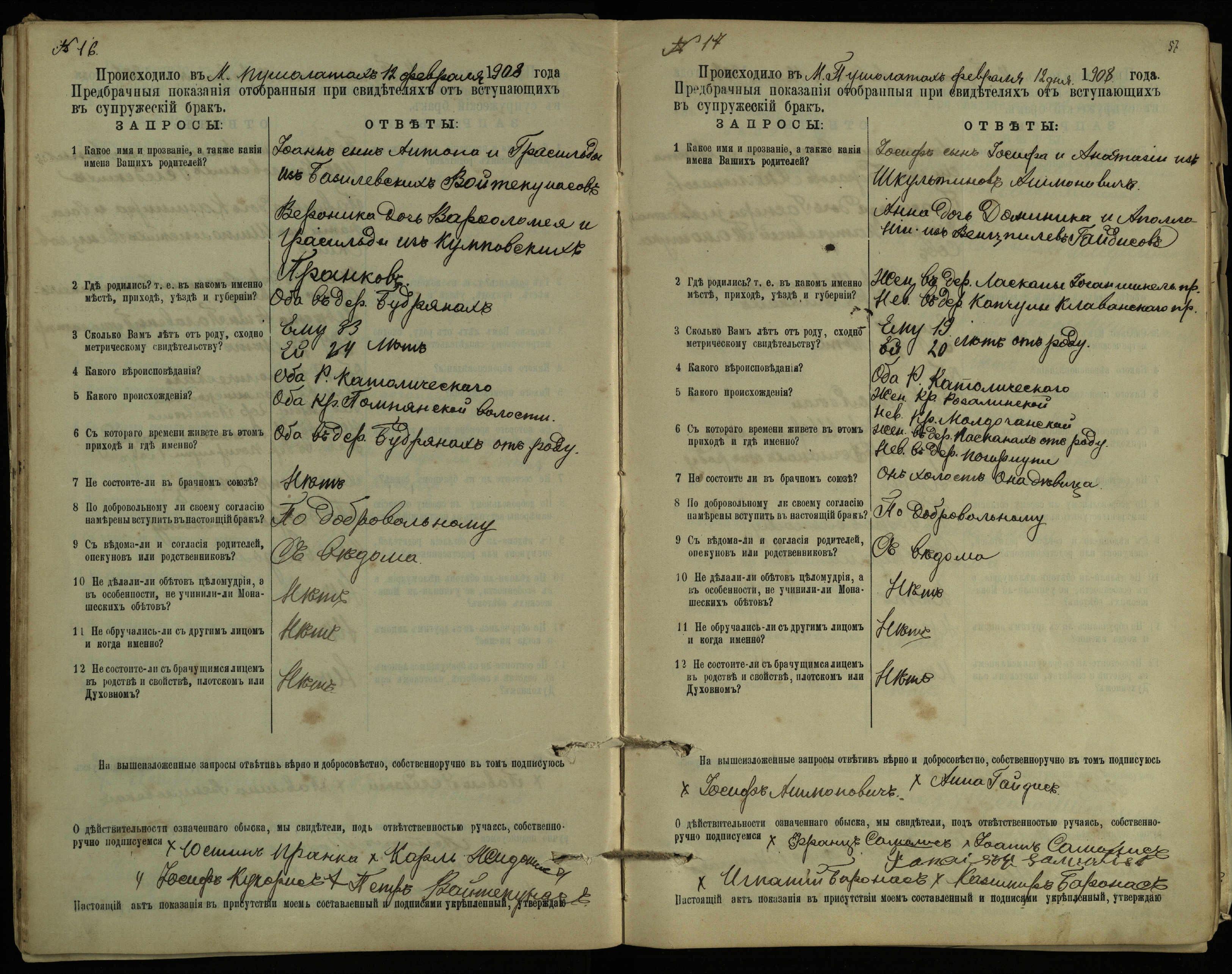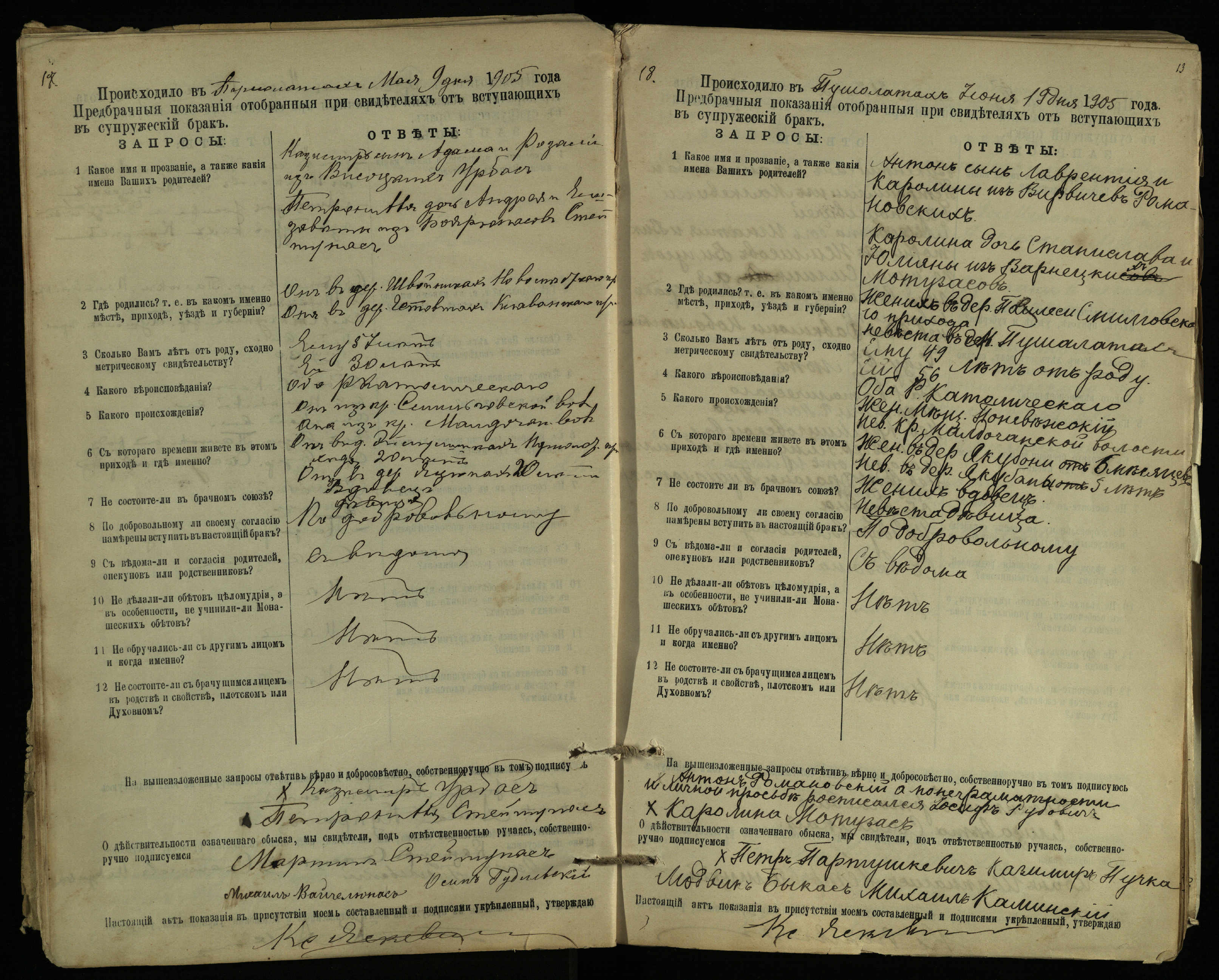 Pušaloto Romos katalikų parapijos bažnyčios 1904–1917 metų priešjungtuvinės apklausos knyga
