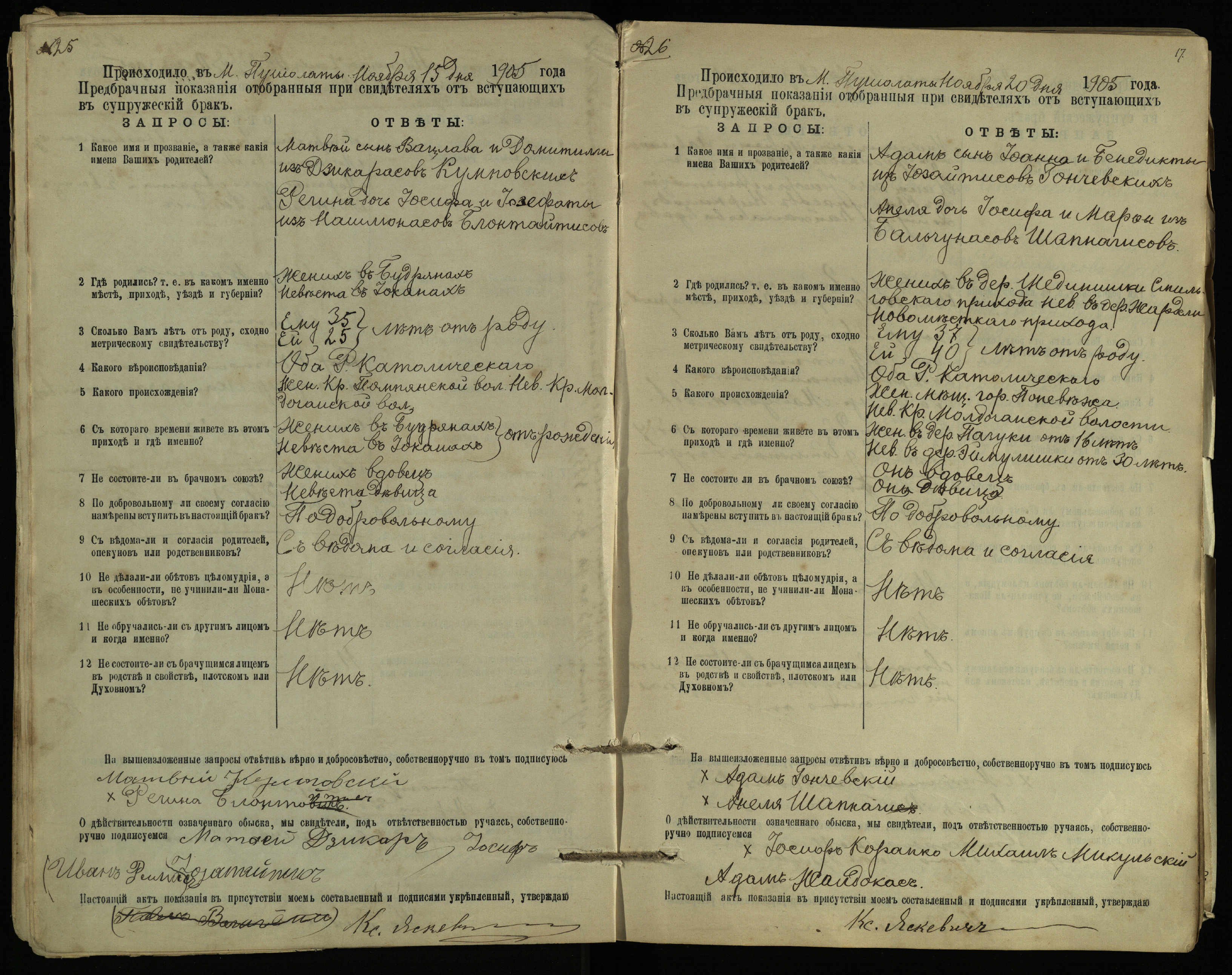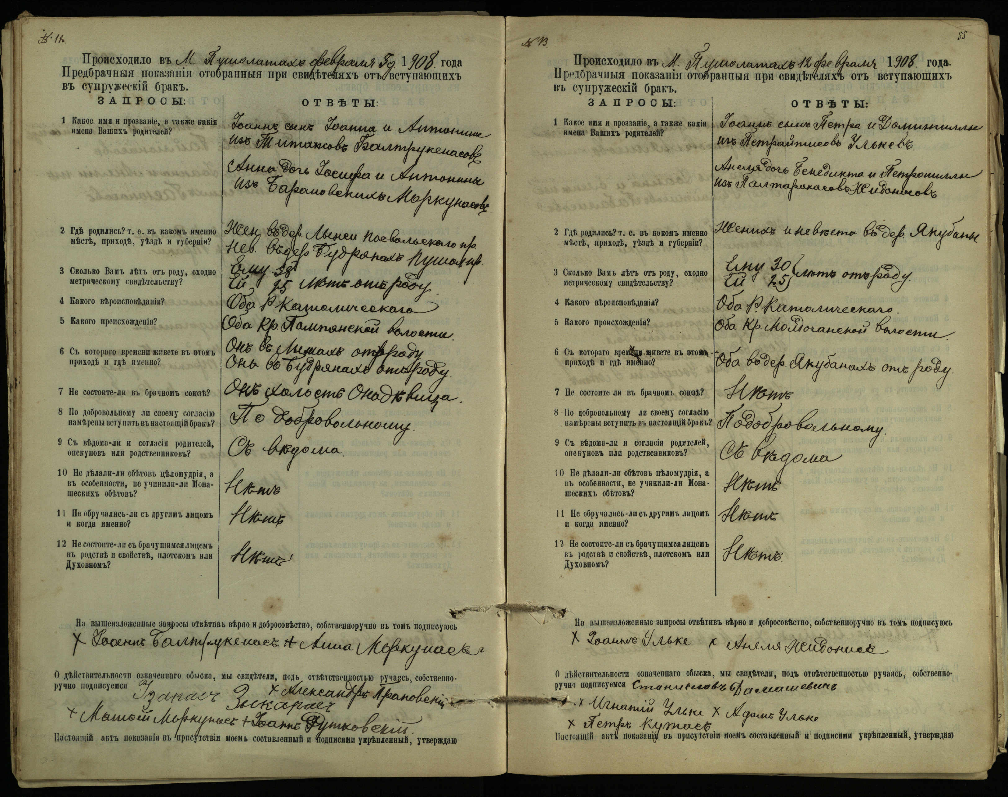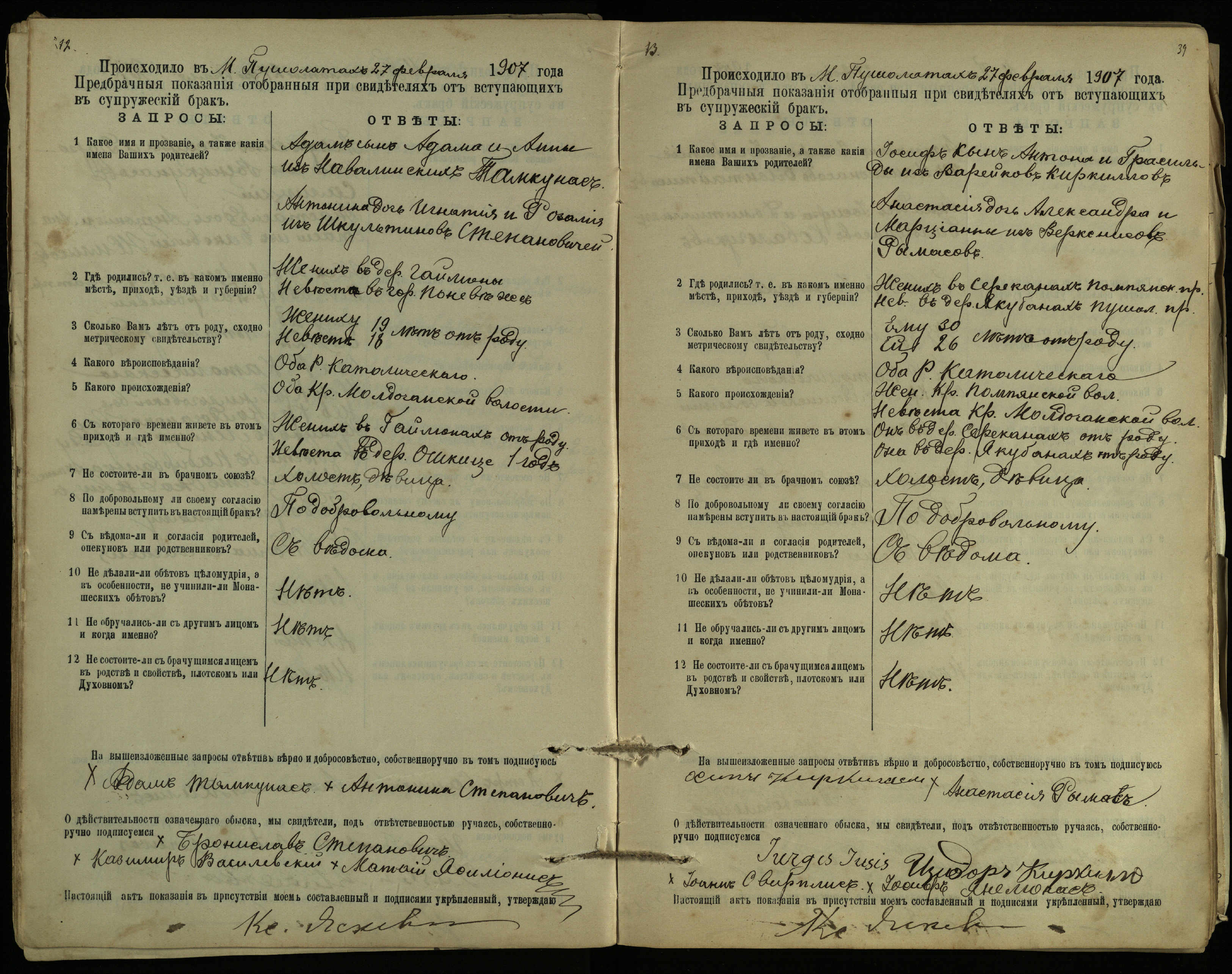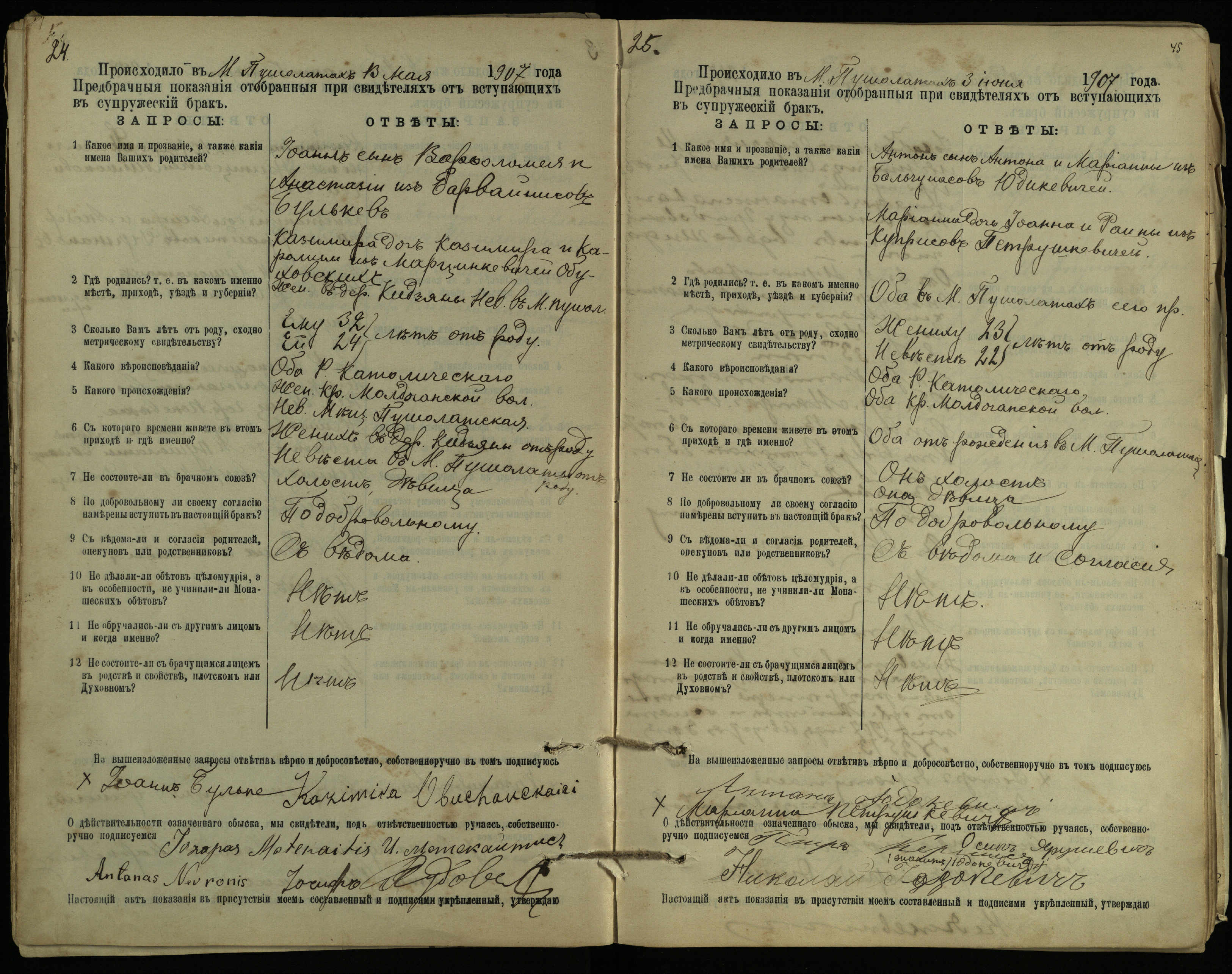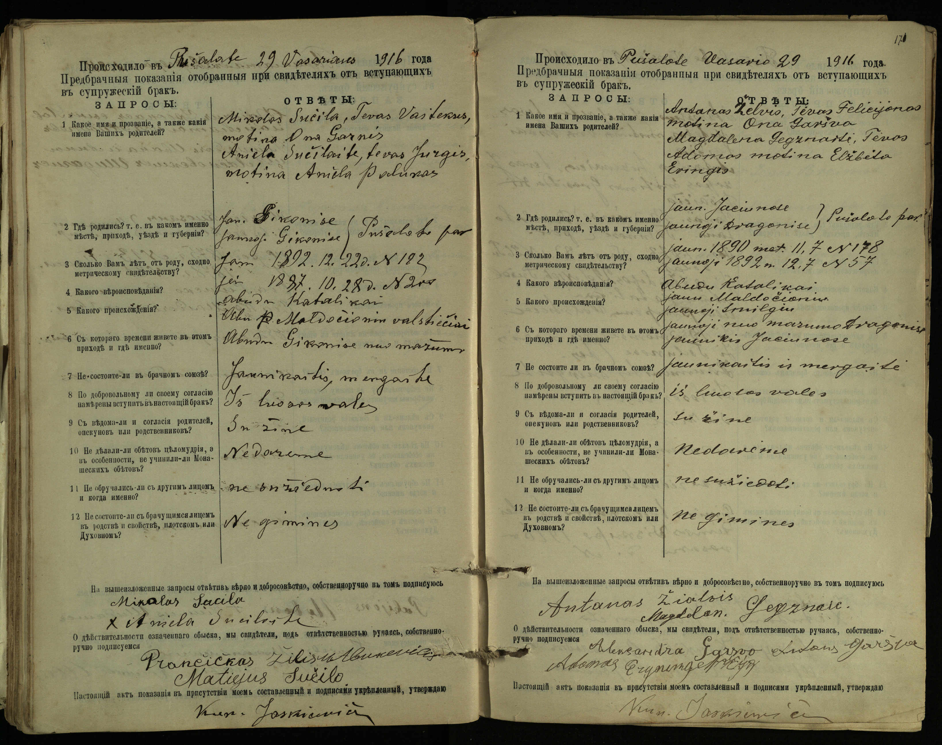 Pušaloto Romos katalikų parapijos bažnyčios 1904–1917 metų priešjungtuvinės apklausos knyga