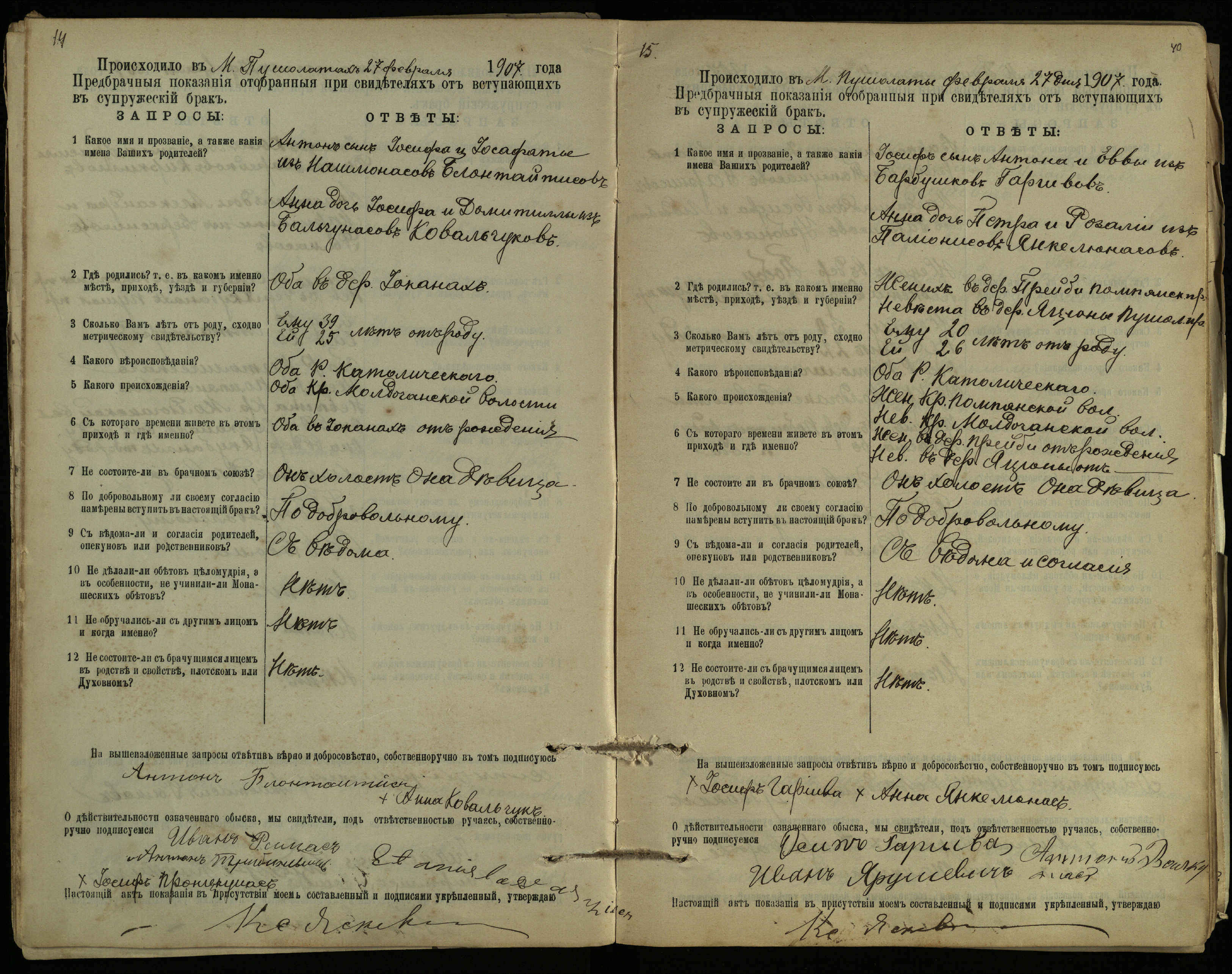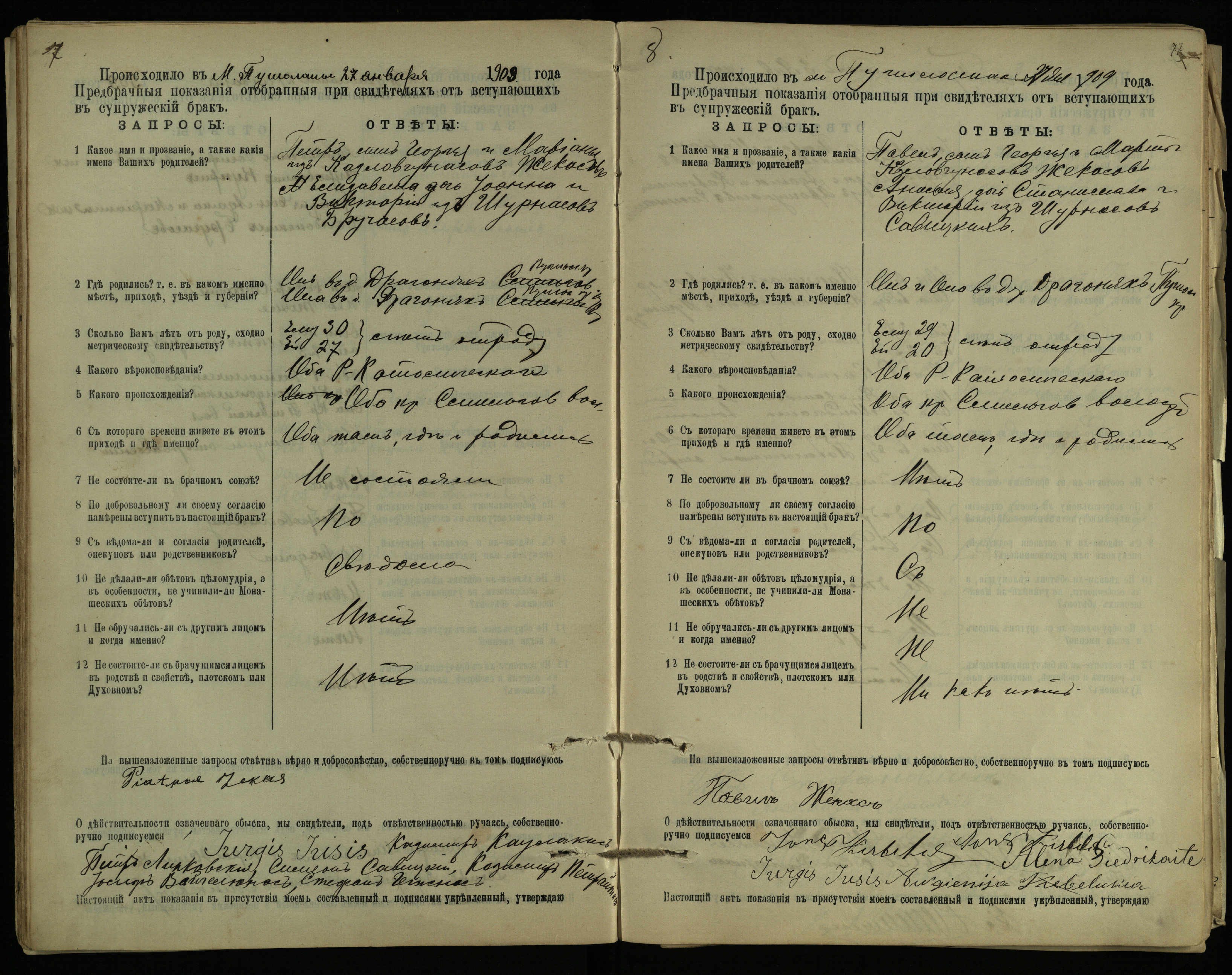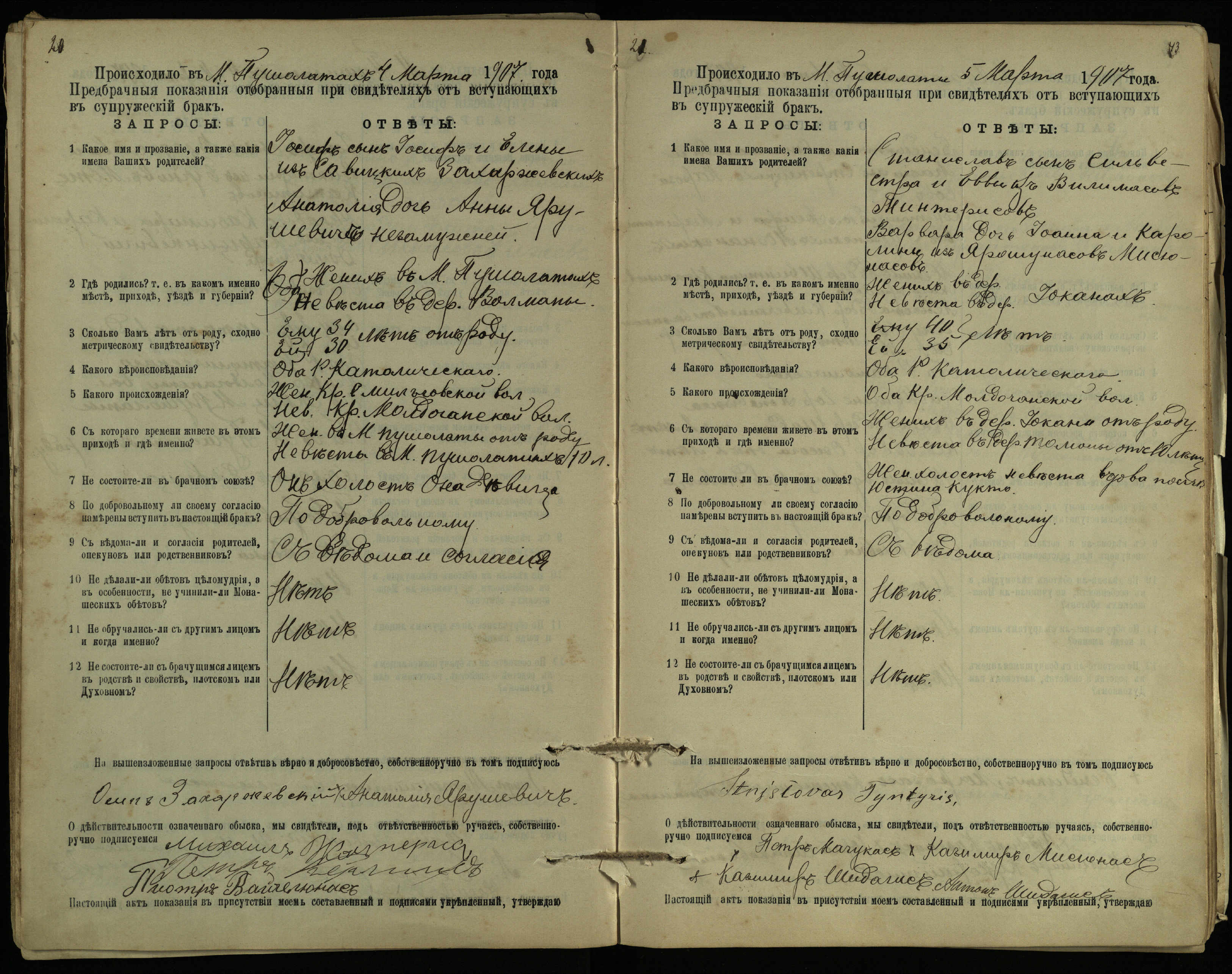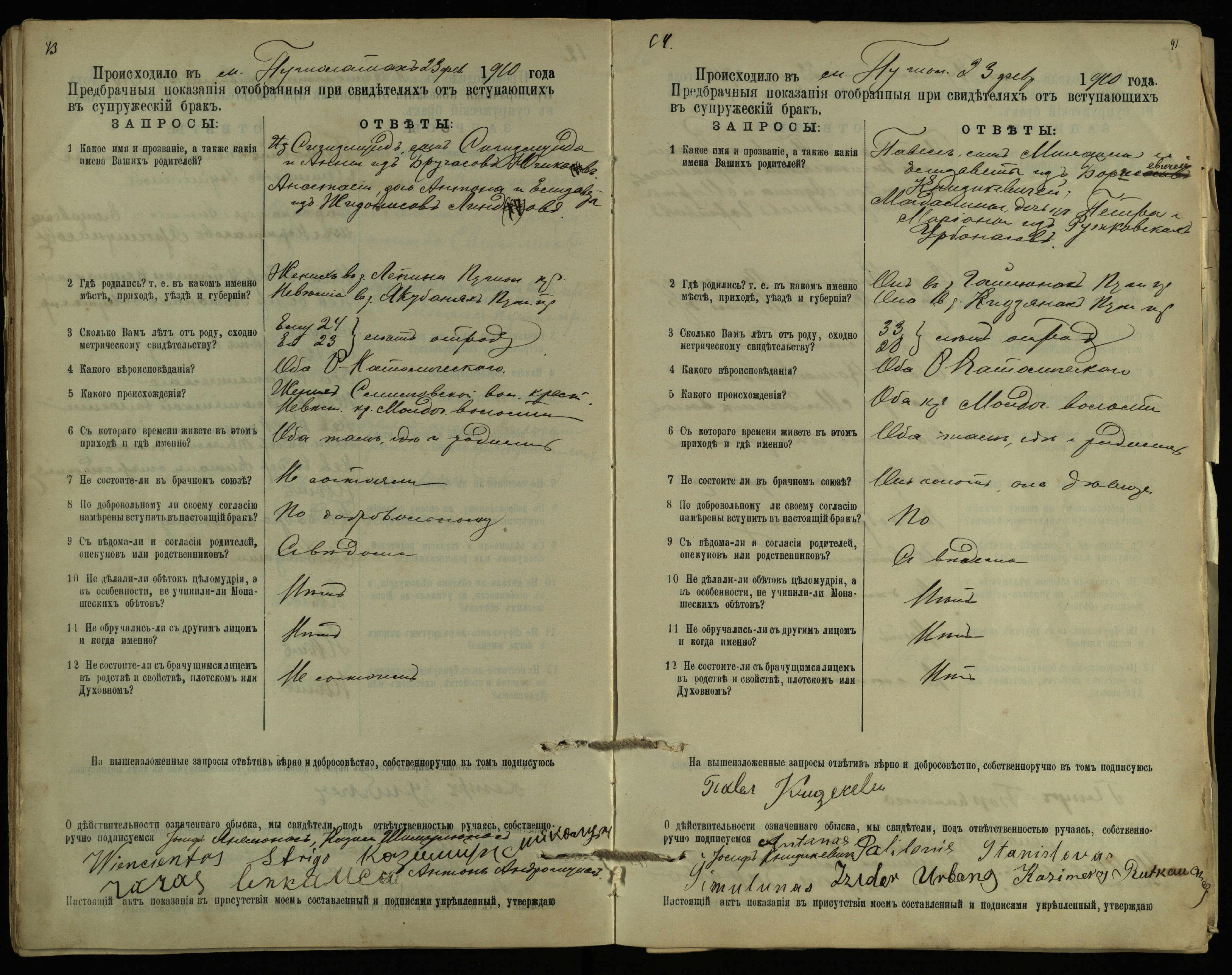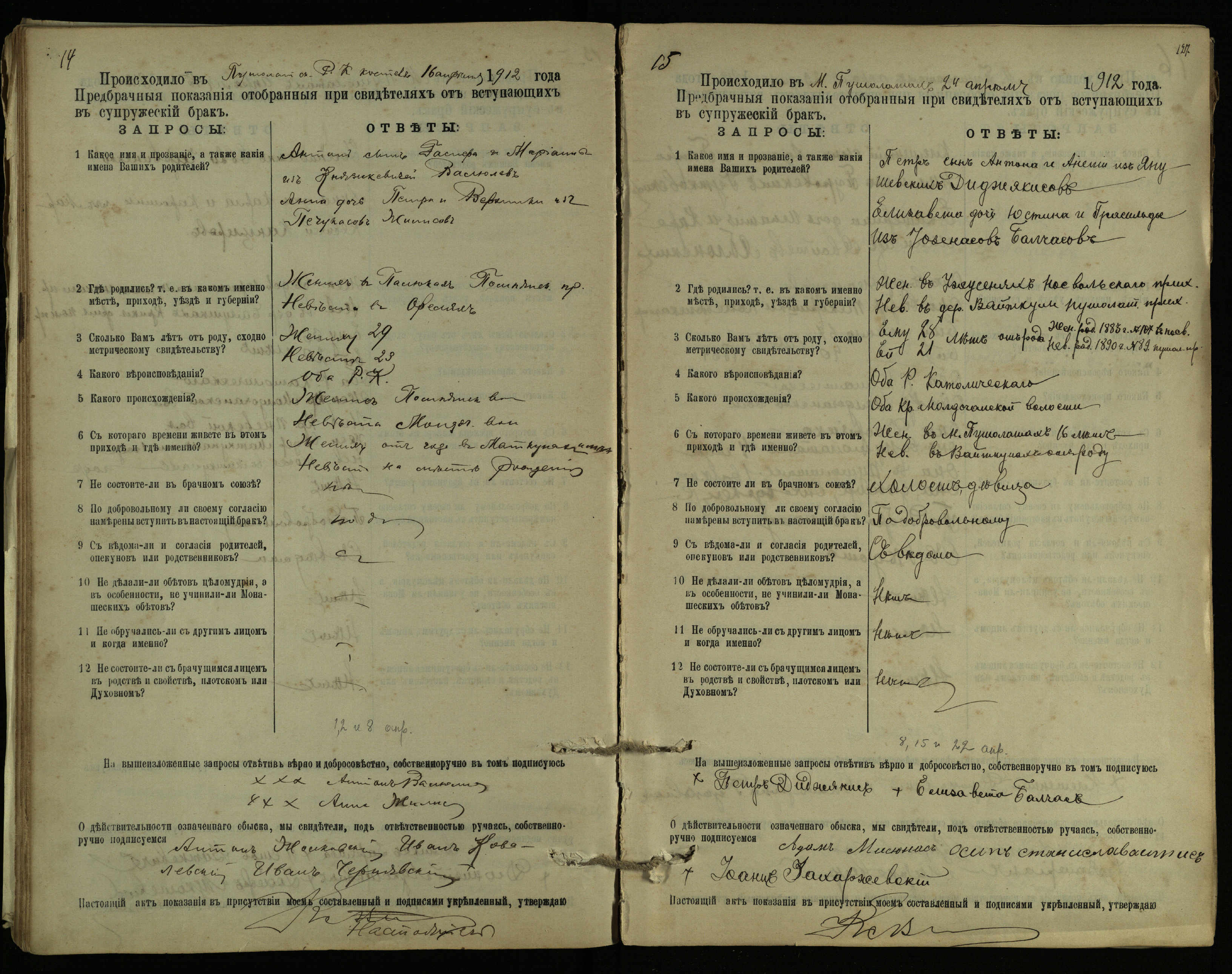 Pušaloto Romos katalikų parapijos bažnyčios 1904–1917 metų priešjungtuvinės apklausos knyga
