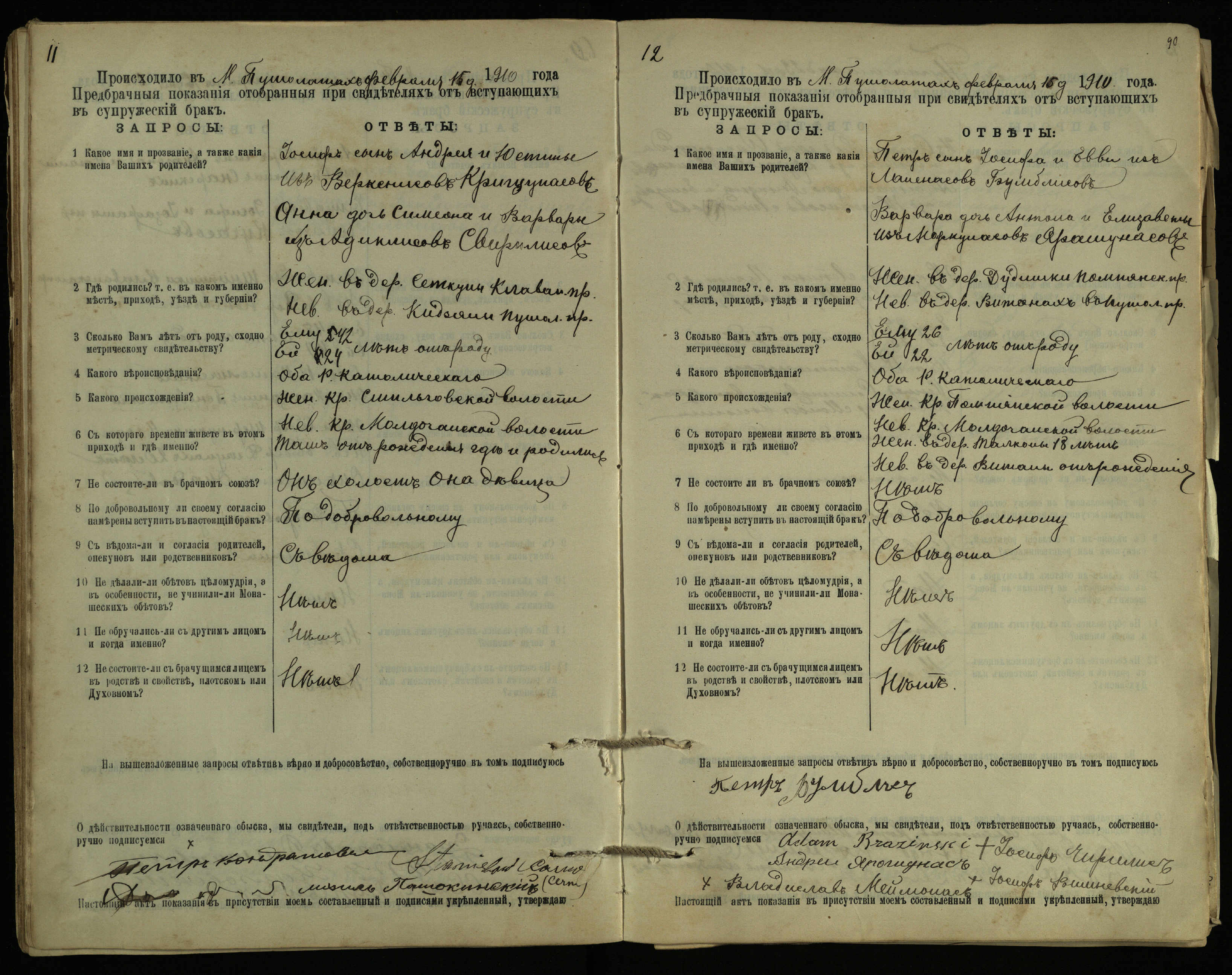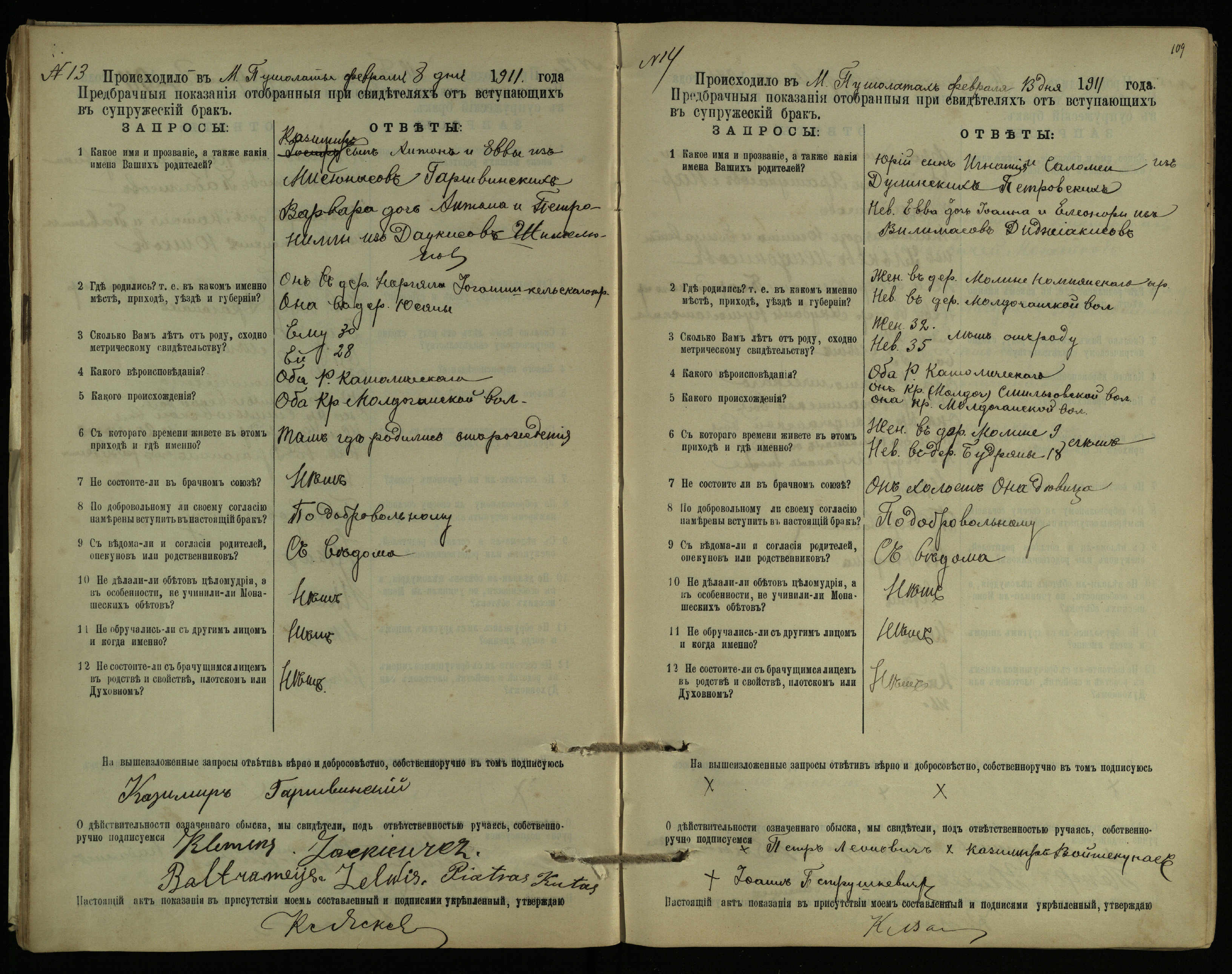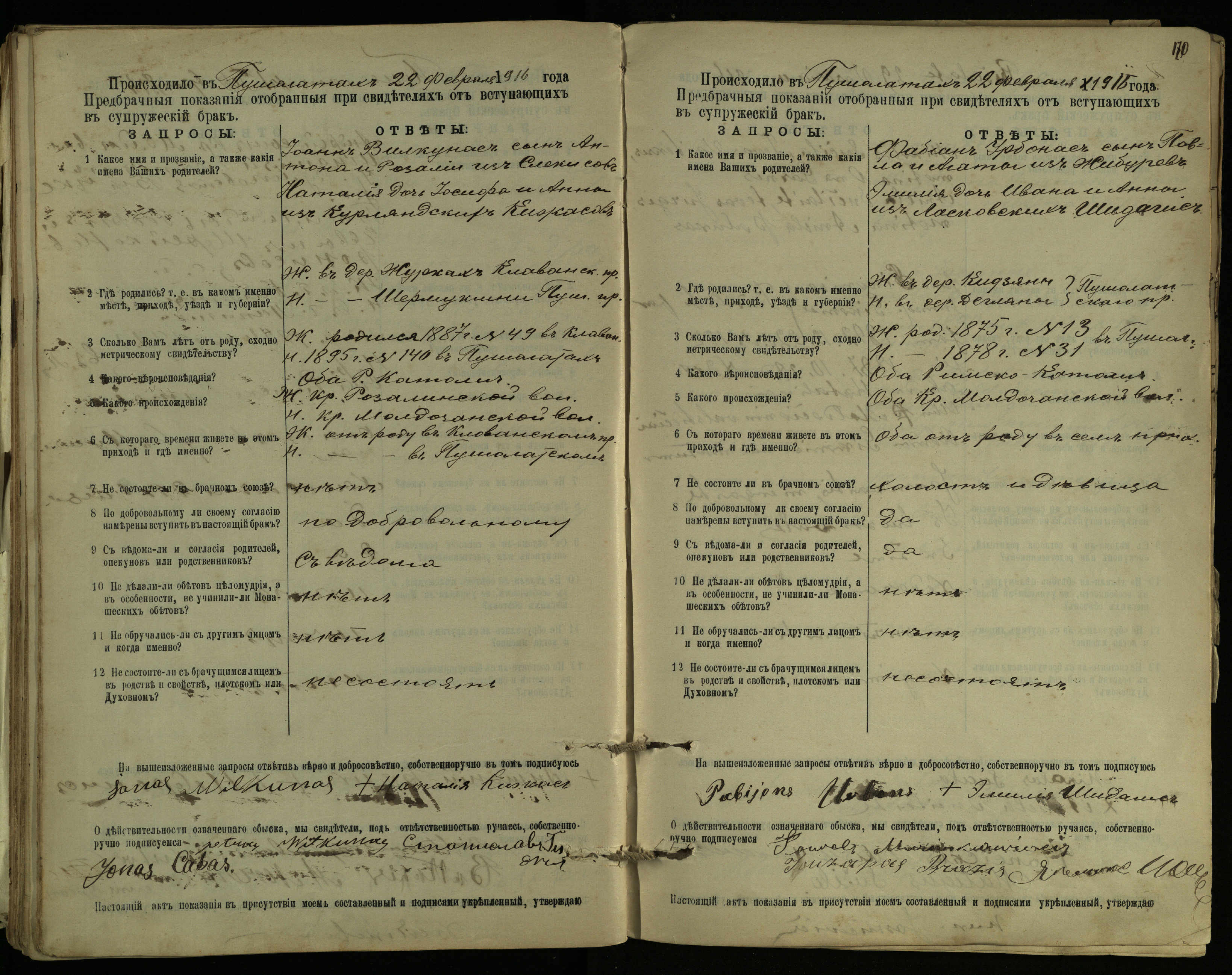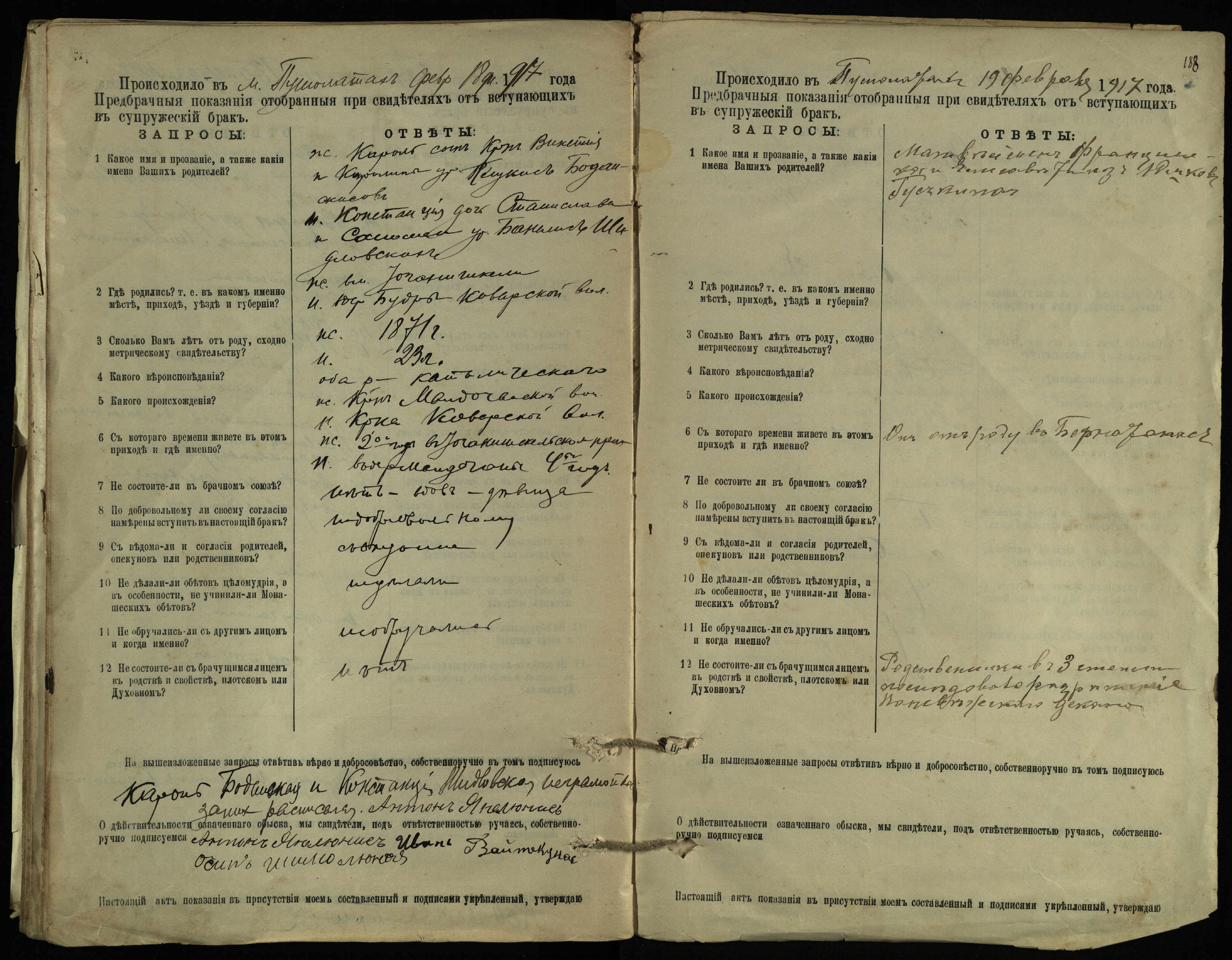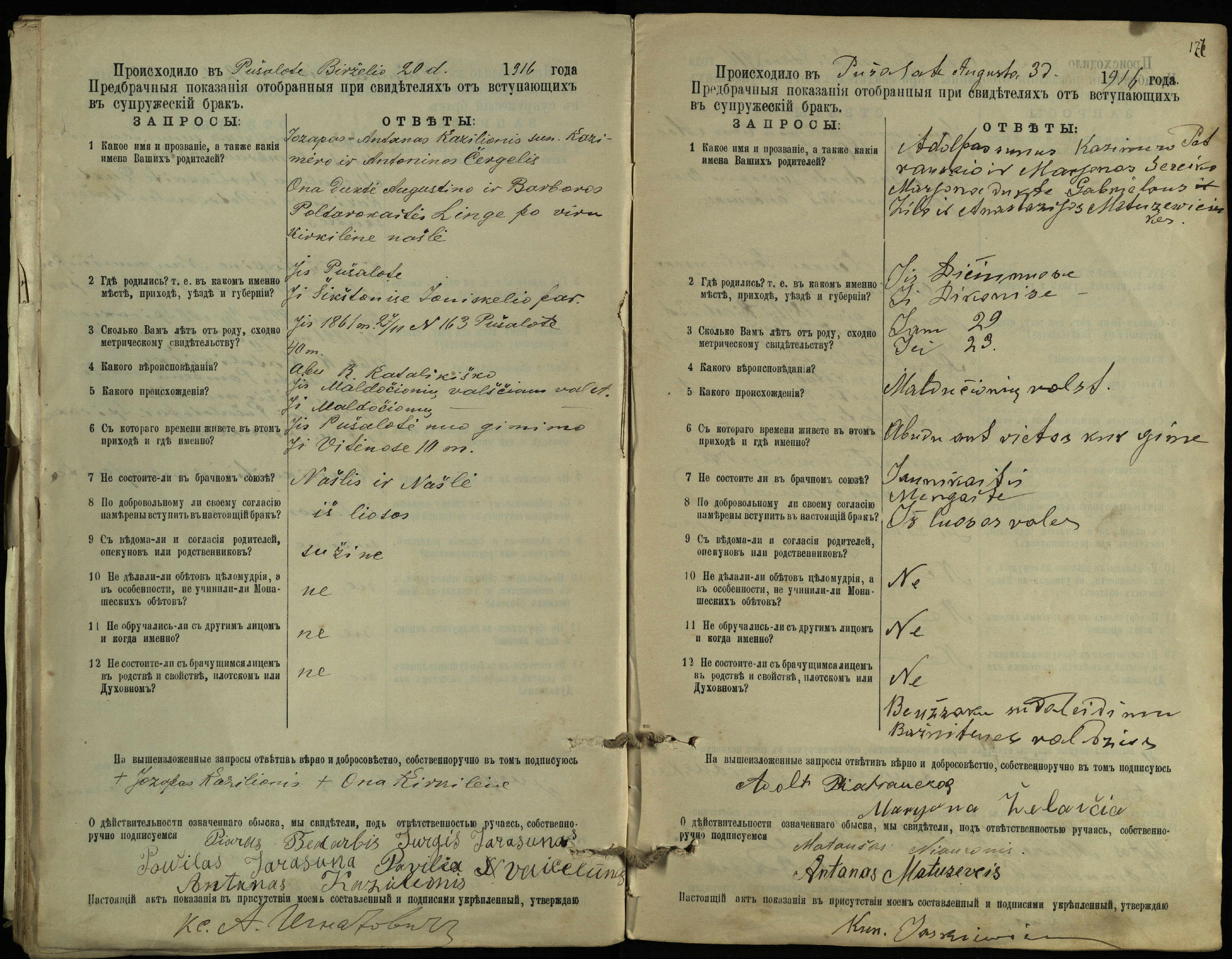 Pušaloto Romos katalikų parapijos bažnyčios 1904–1917 metų priešjungtuvinės apklausos knyga
