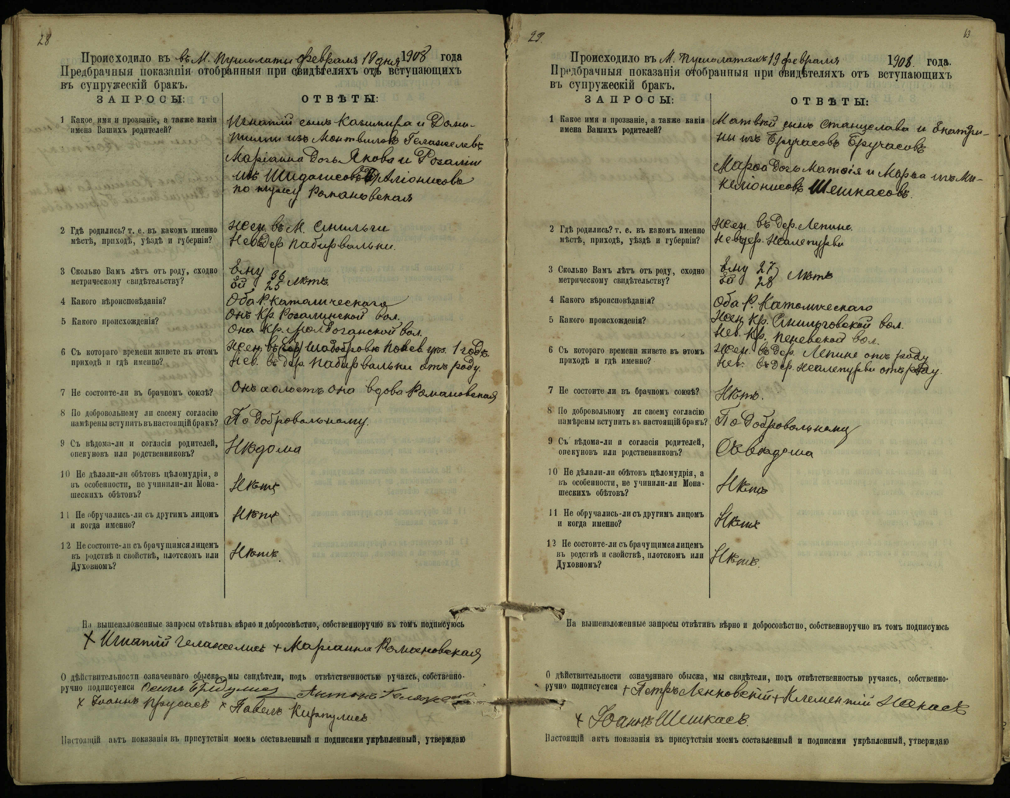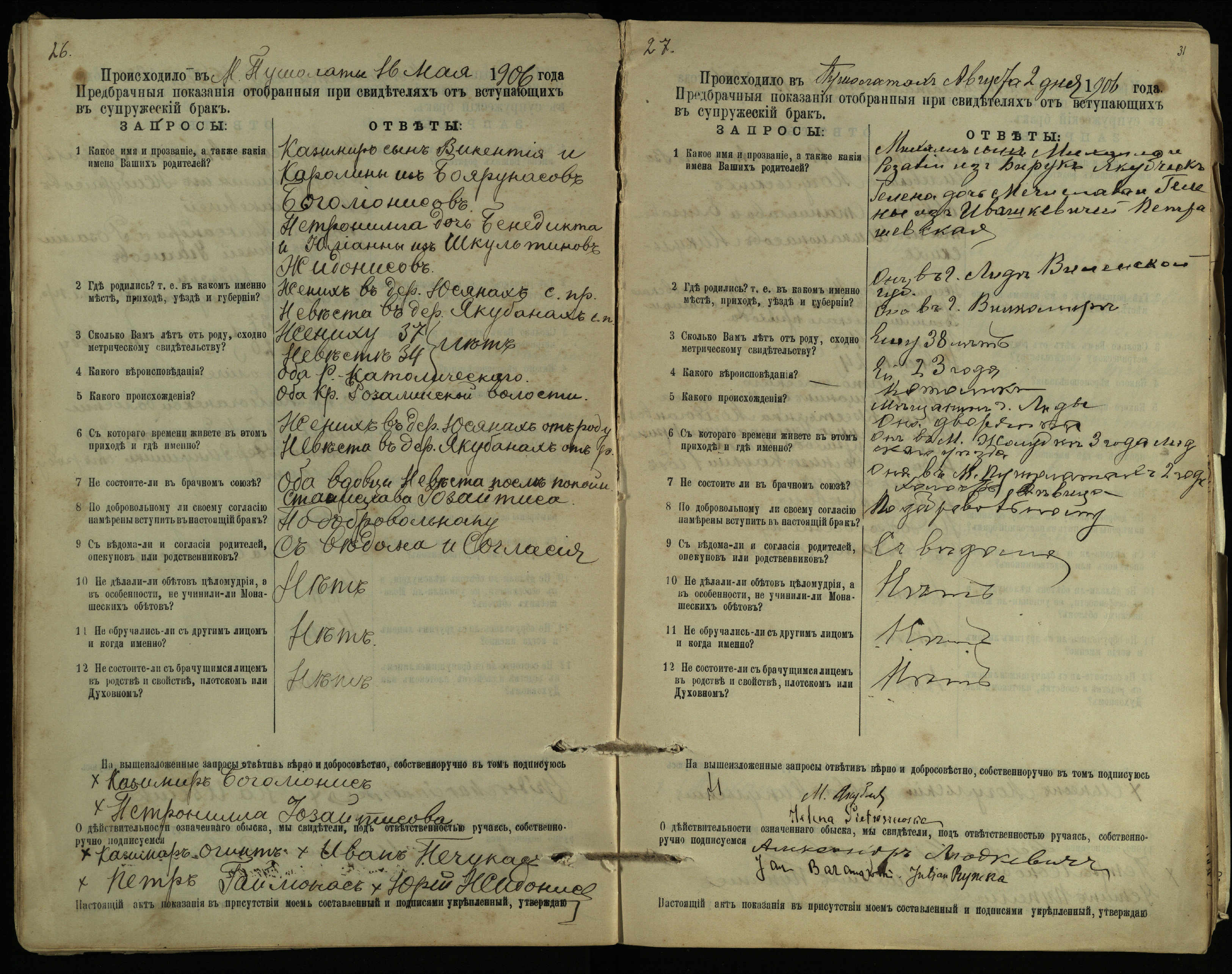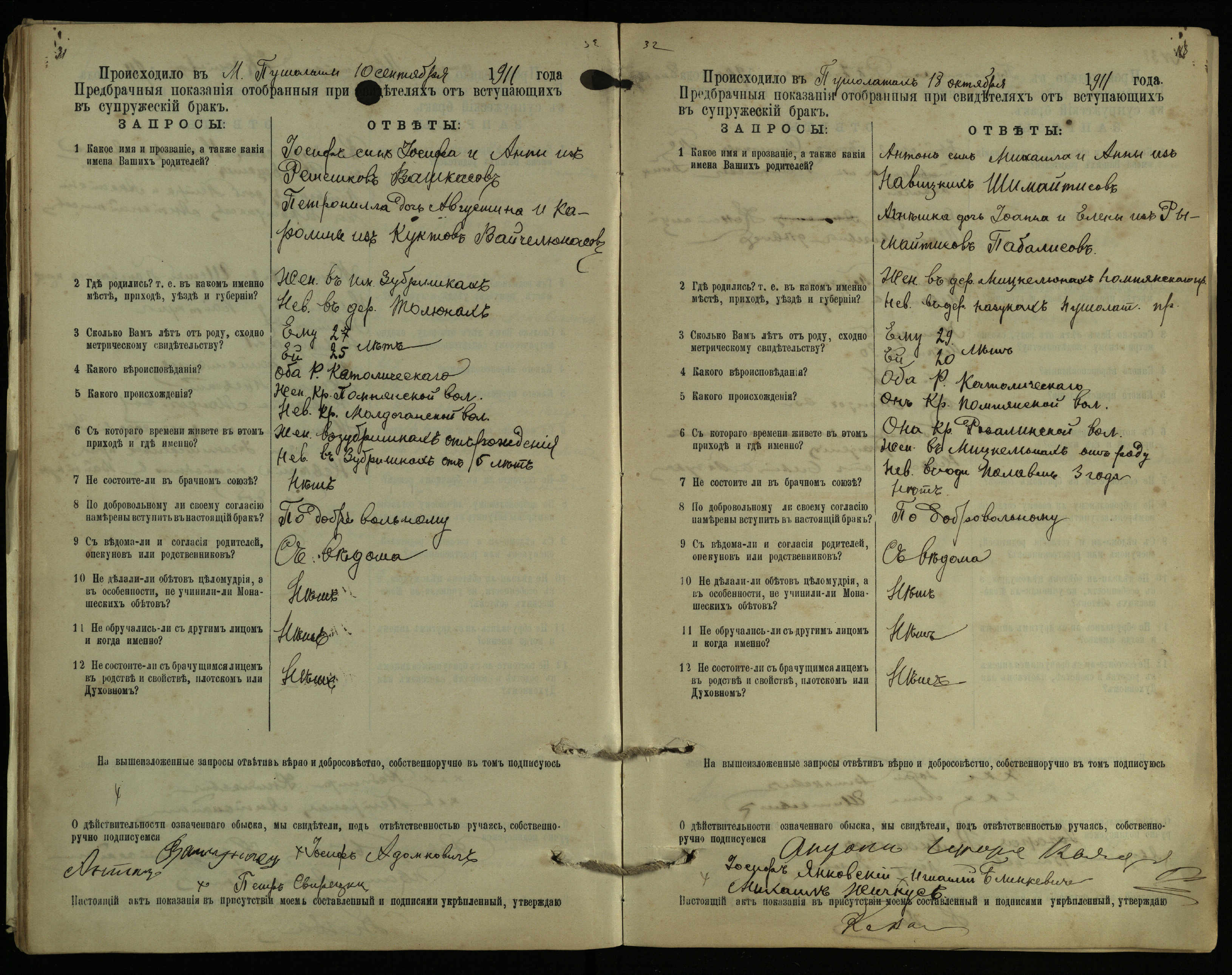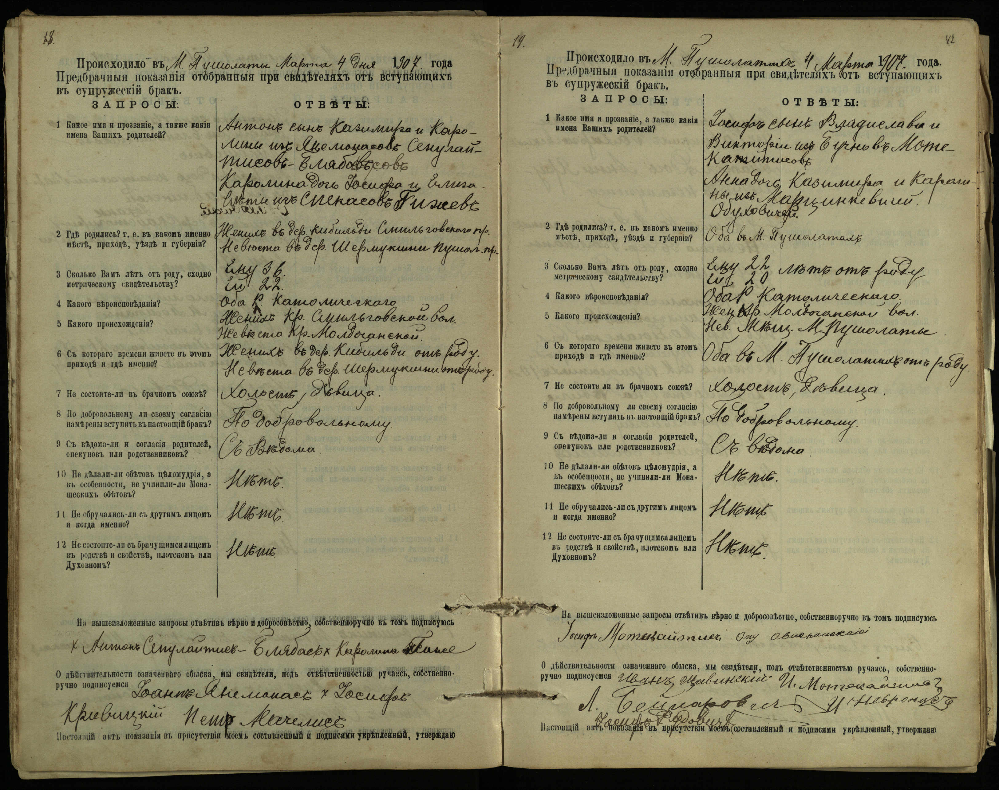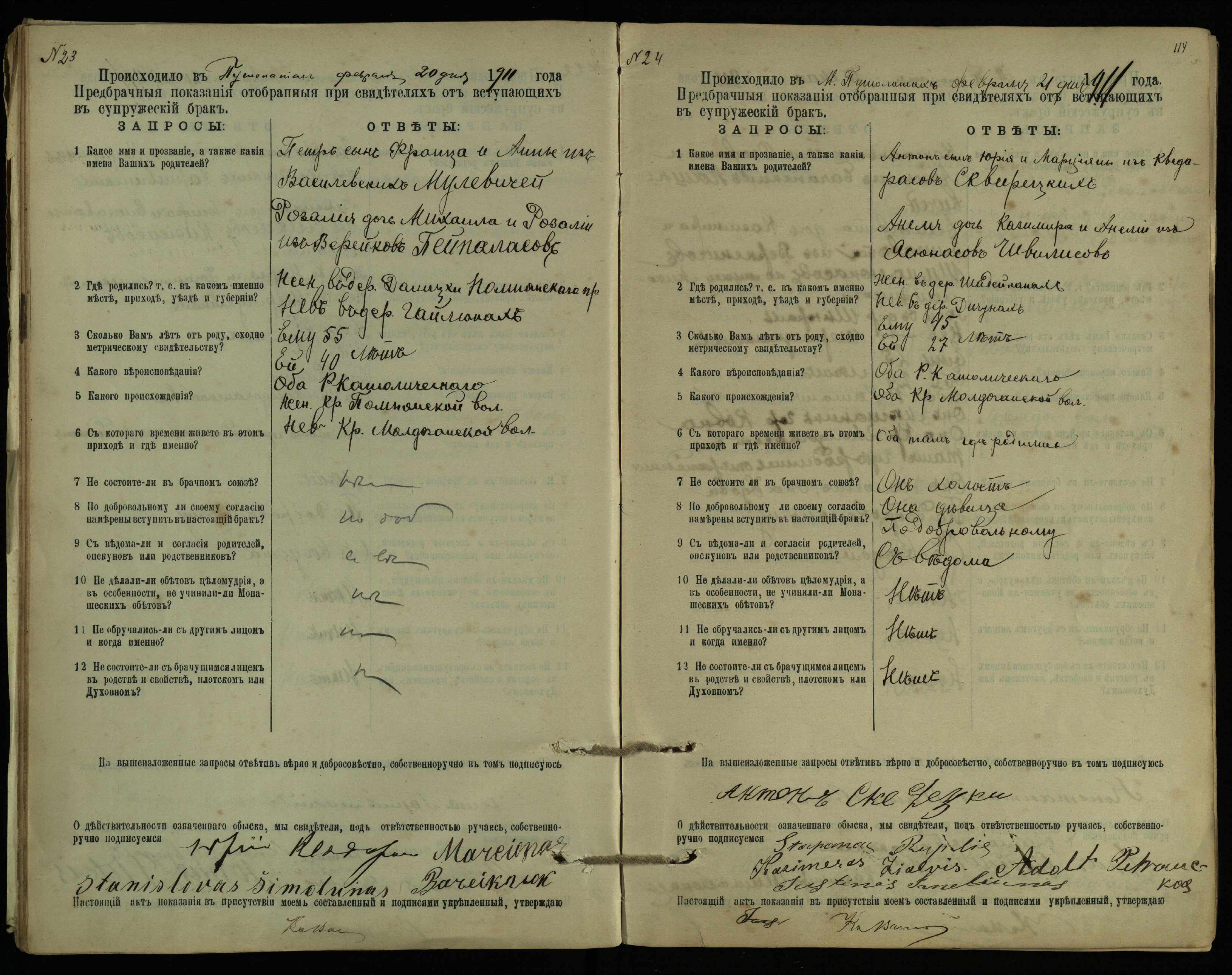 Pušaloto Romos katalikų parapijos bažnyčios 1904–1917 metų priešjungtuvinės apklausos knyga