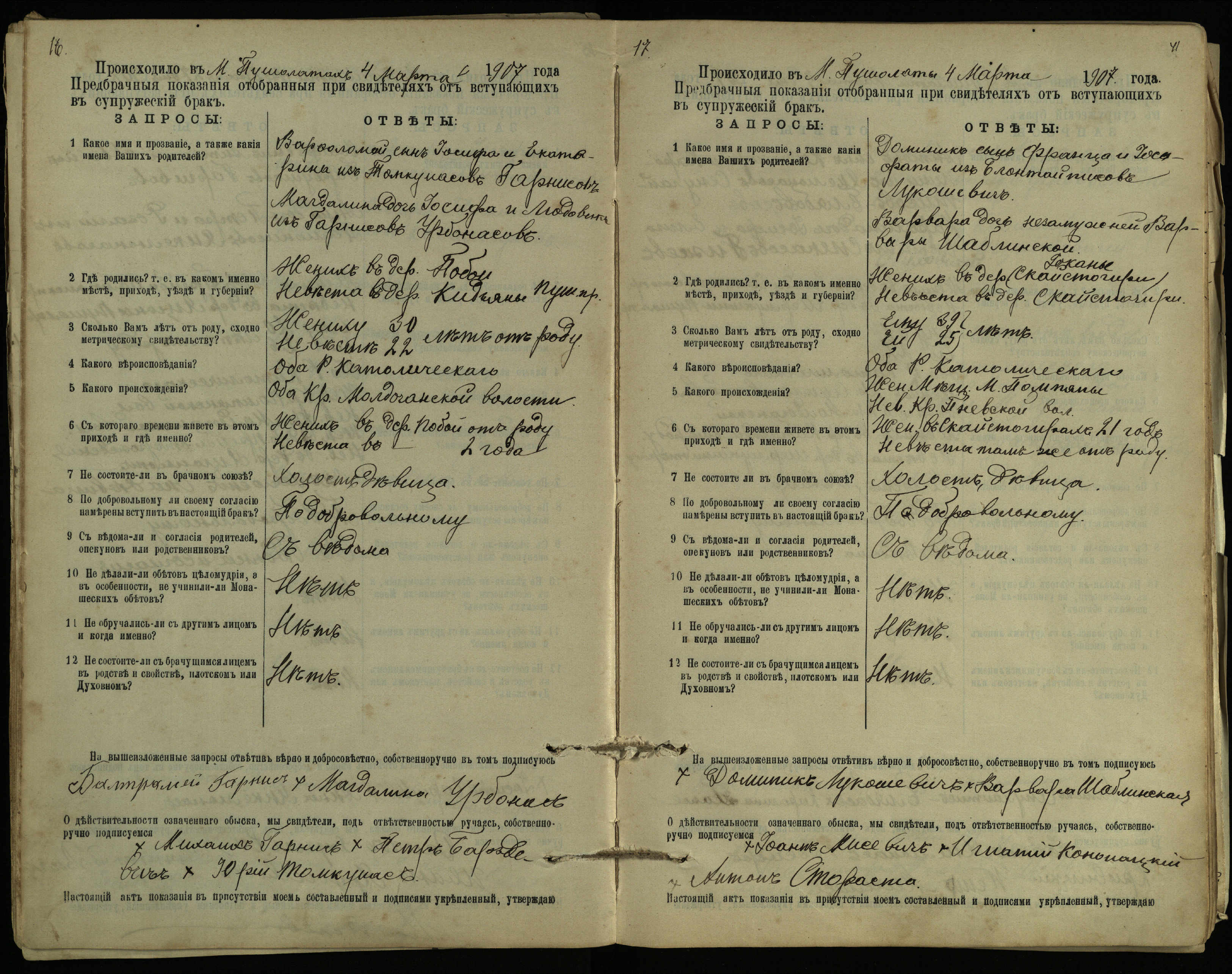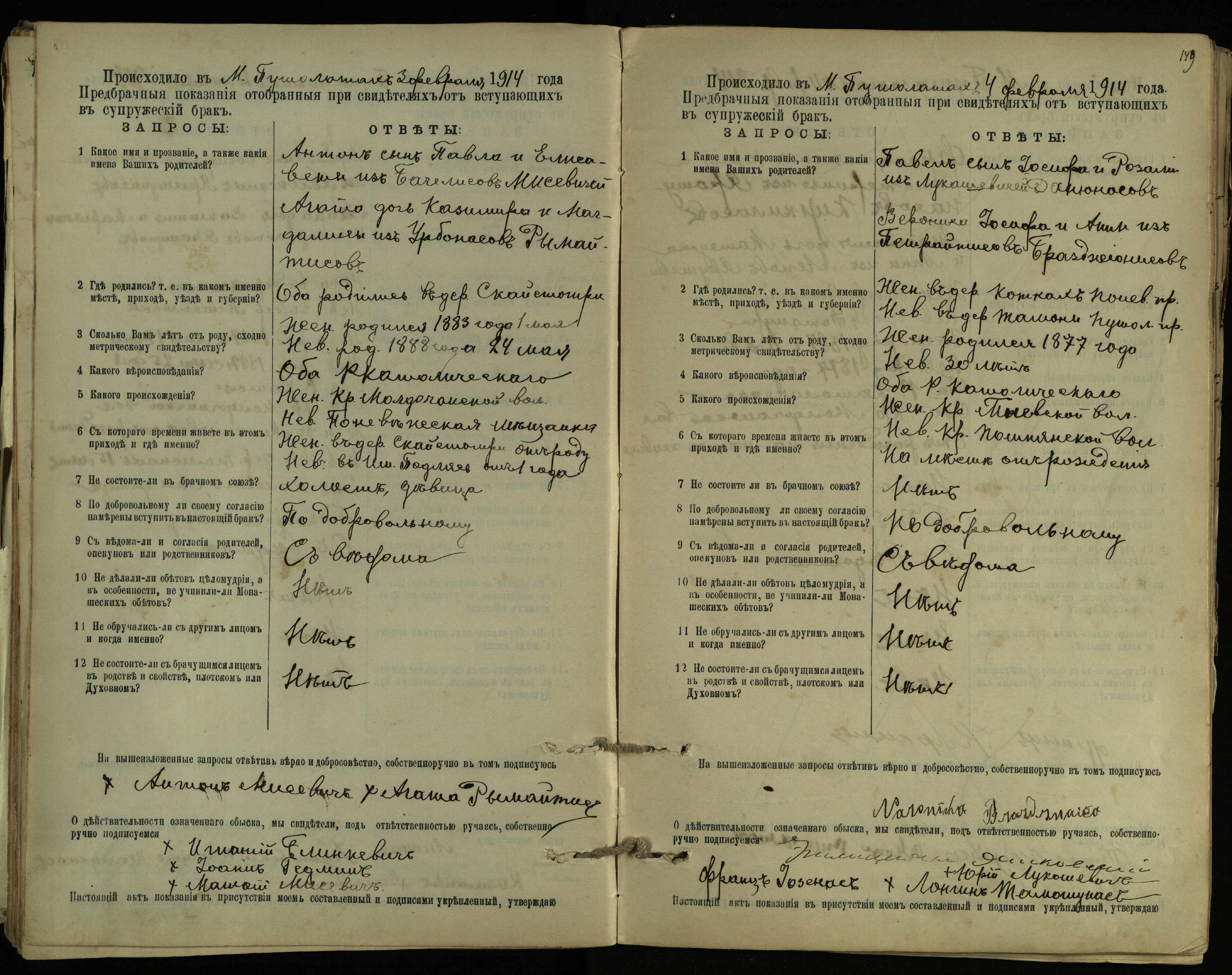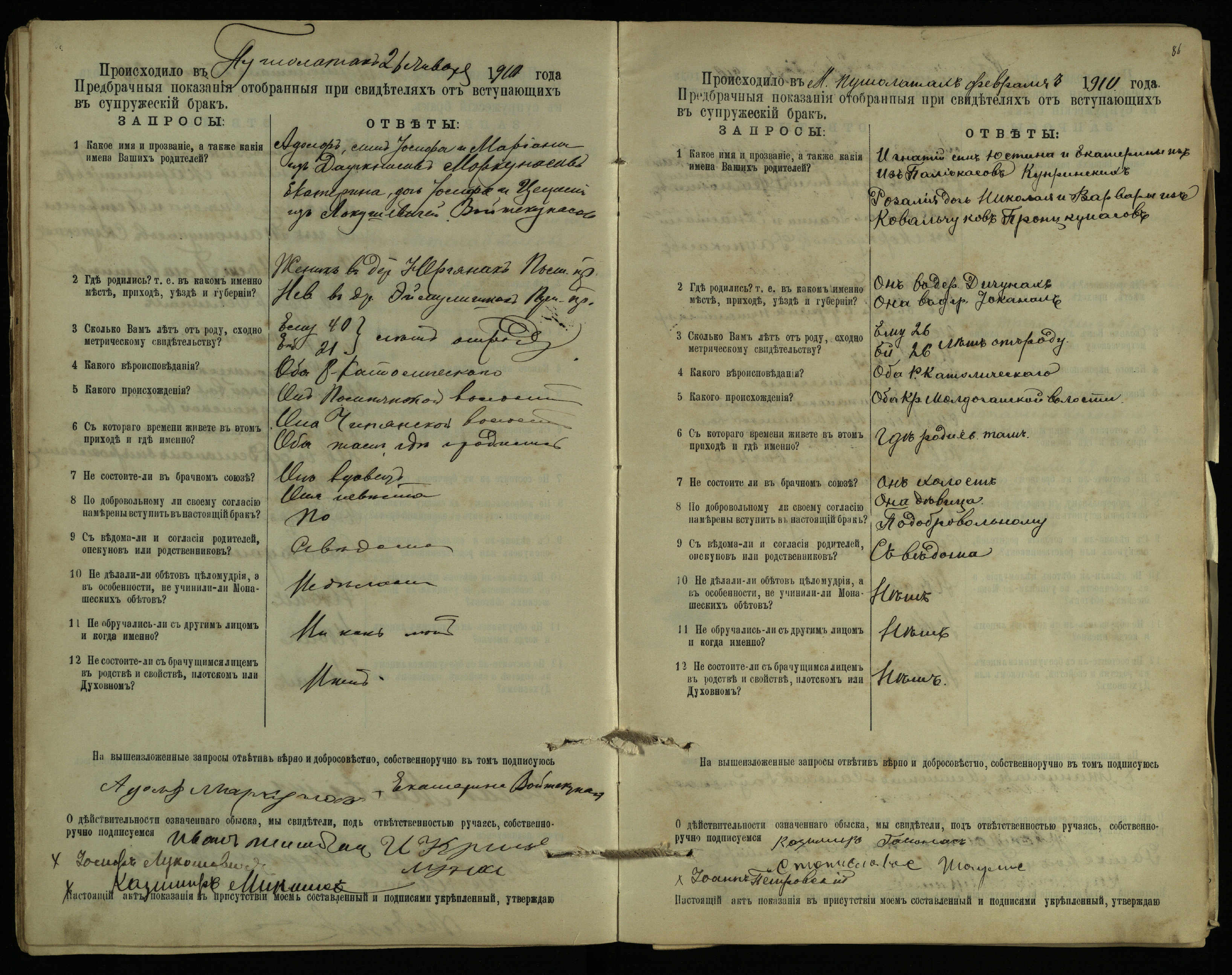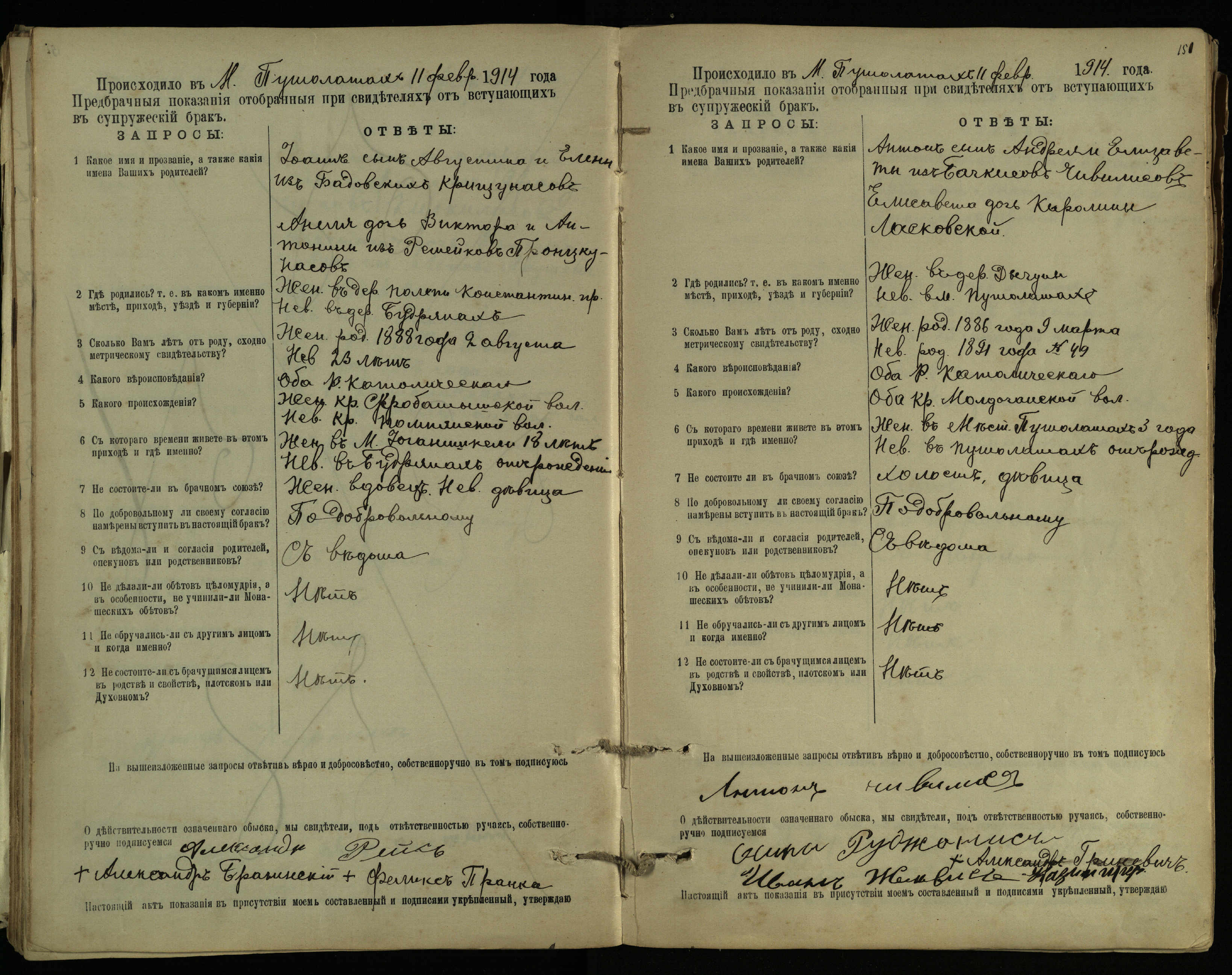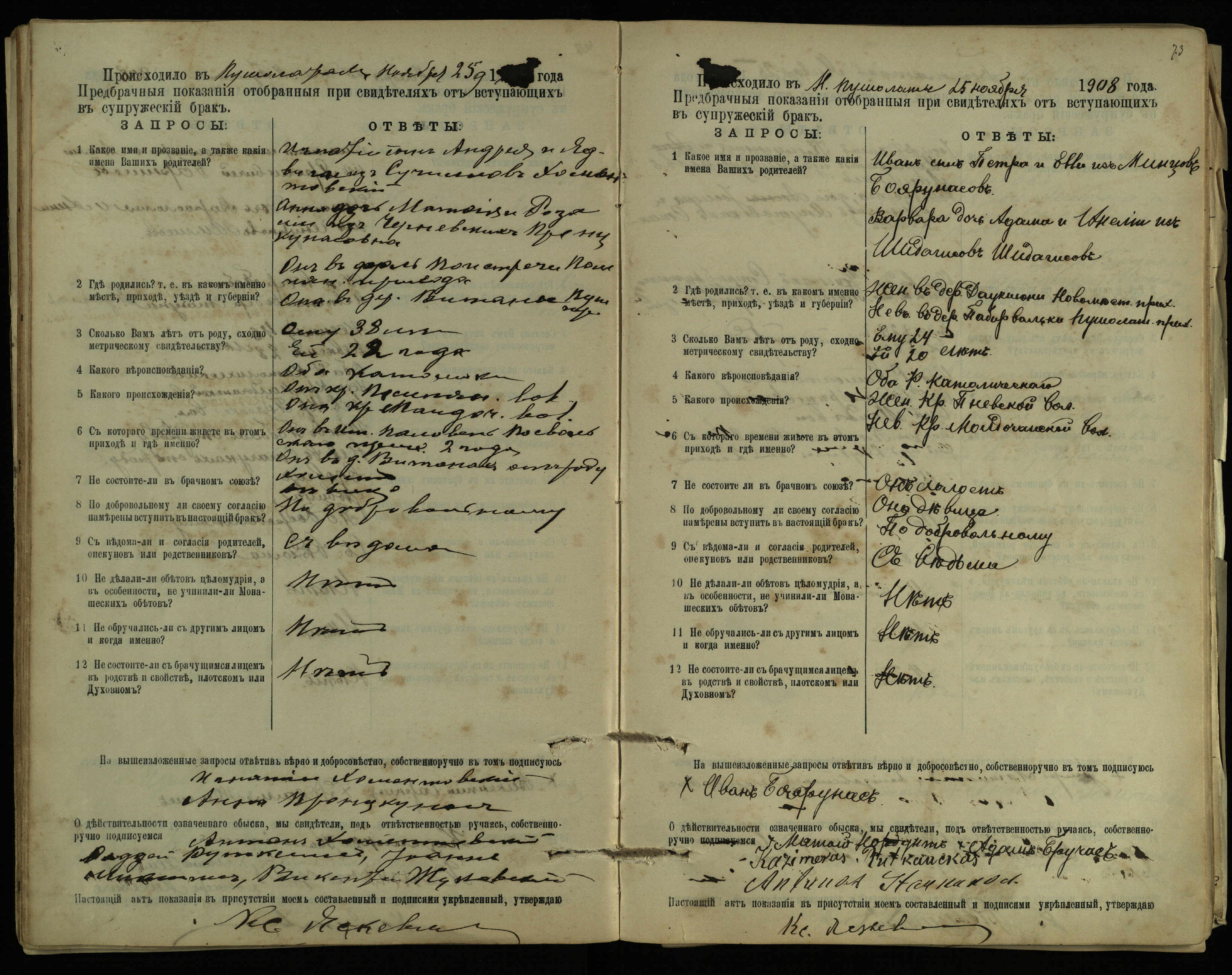 Pušaloto Romos katalikų parapijos bažnyčios 1904–1917 metų priešjungtuvinės apklausos knyga