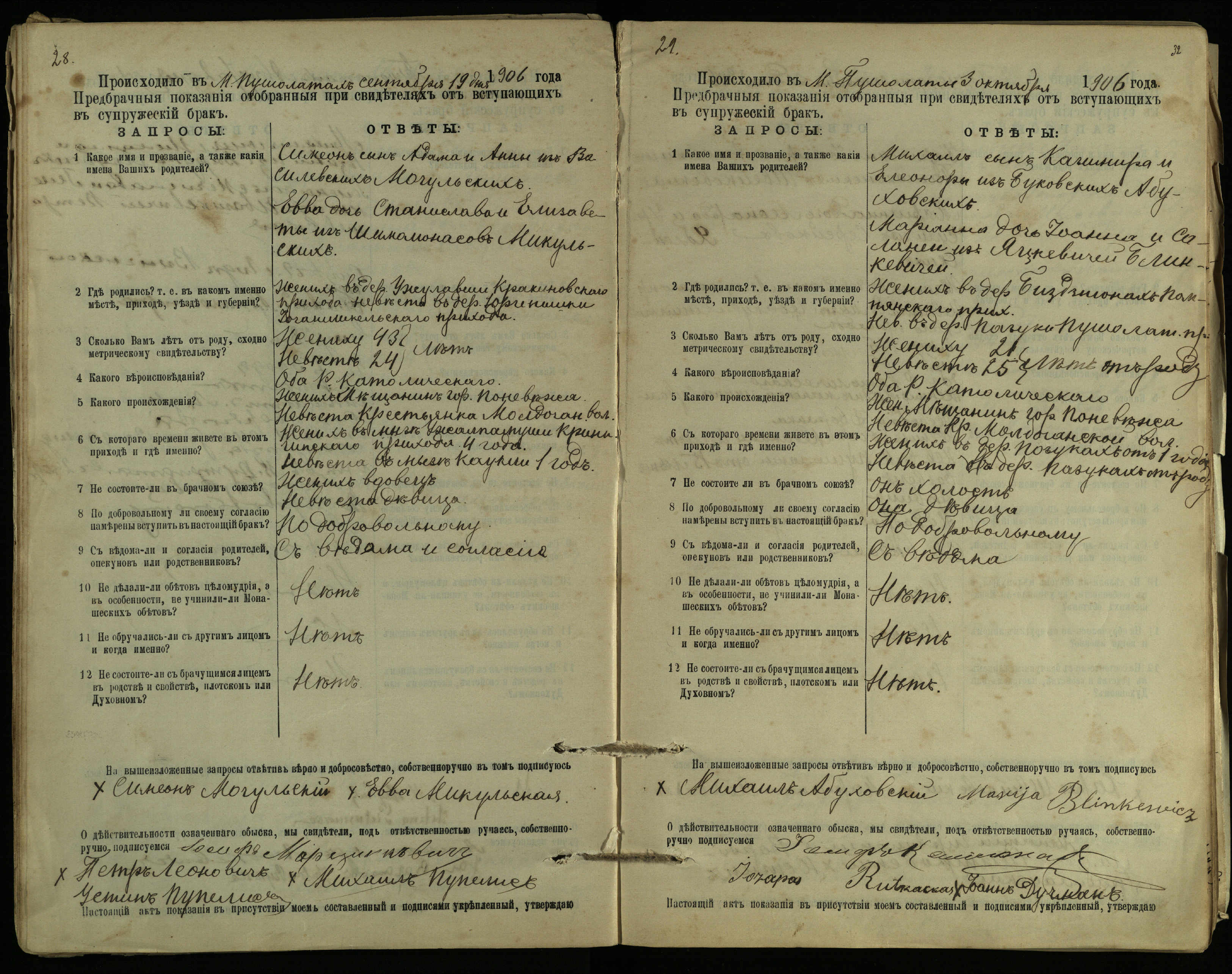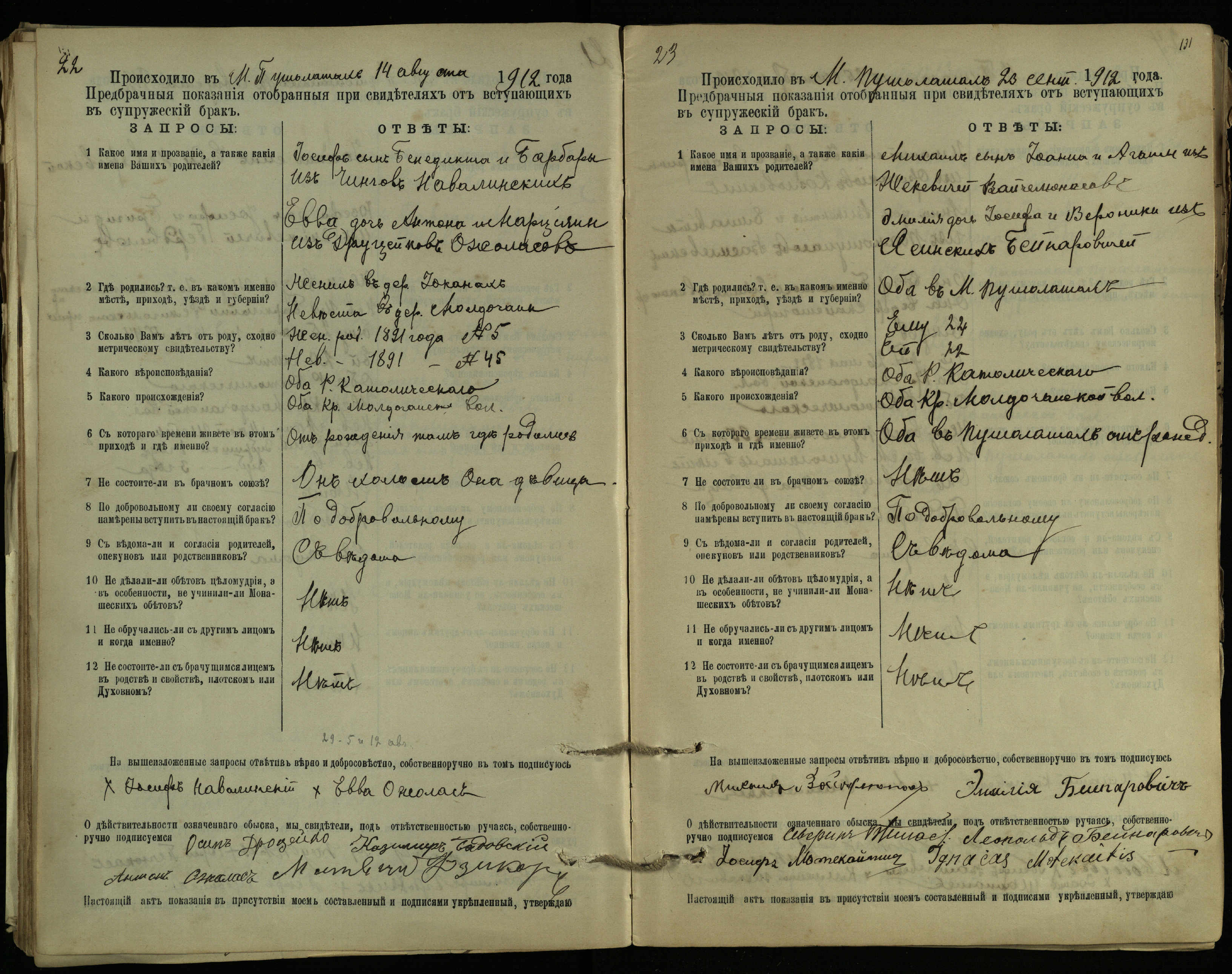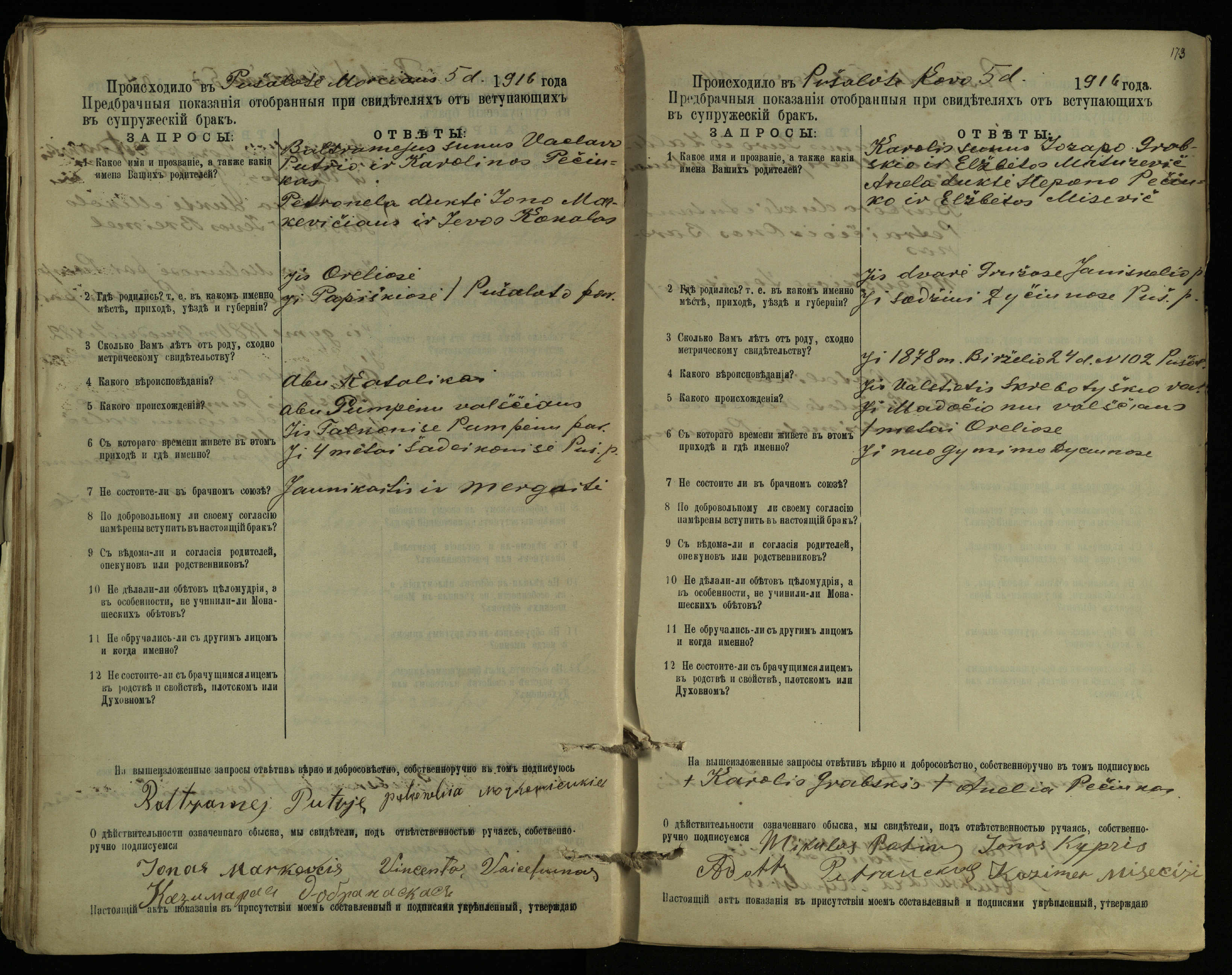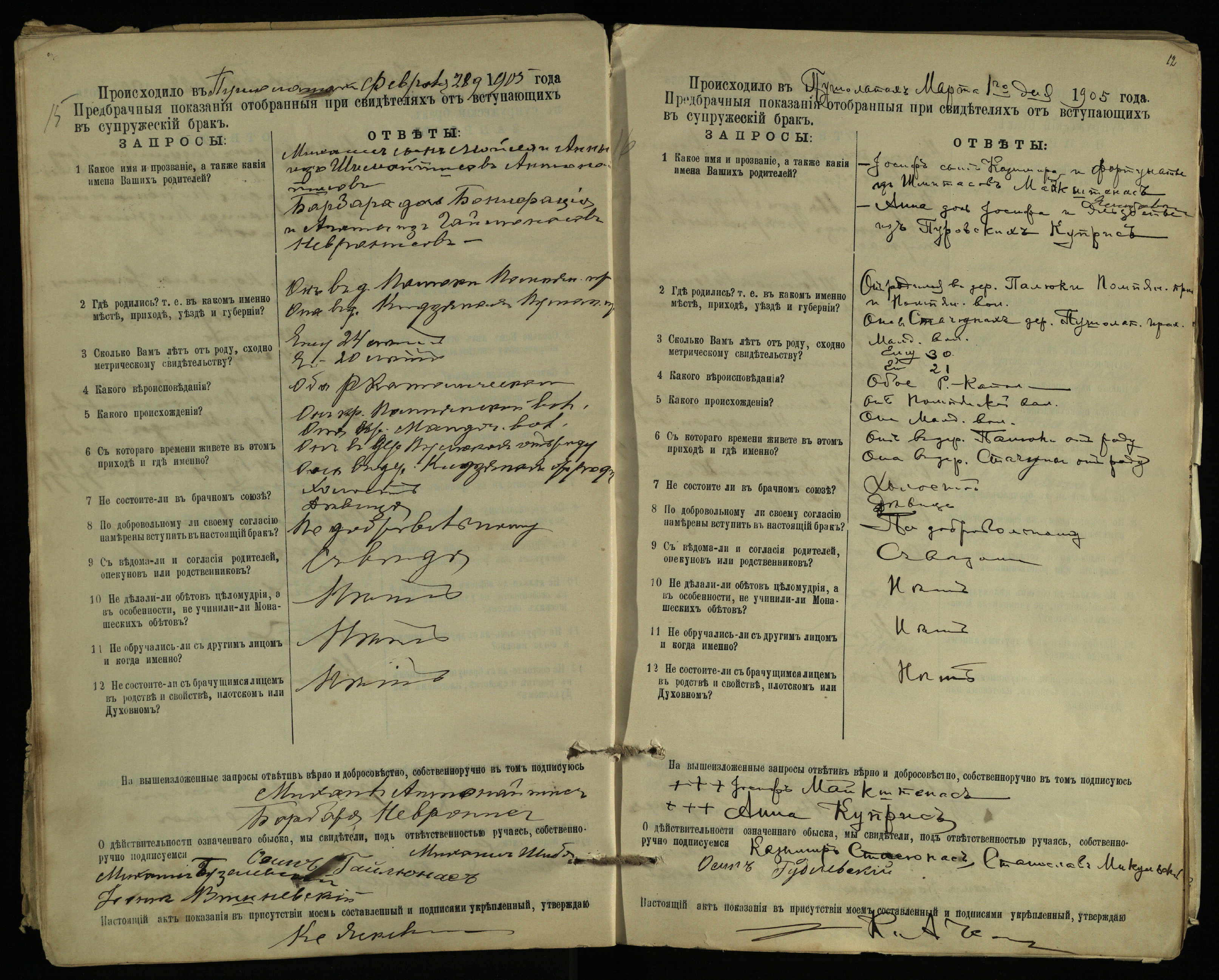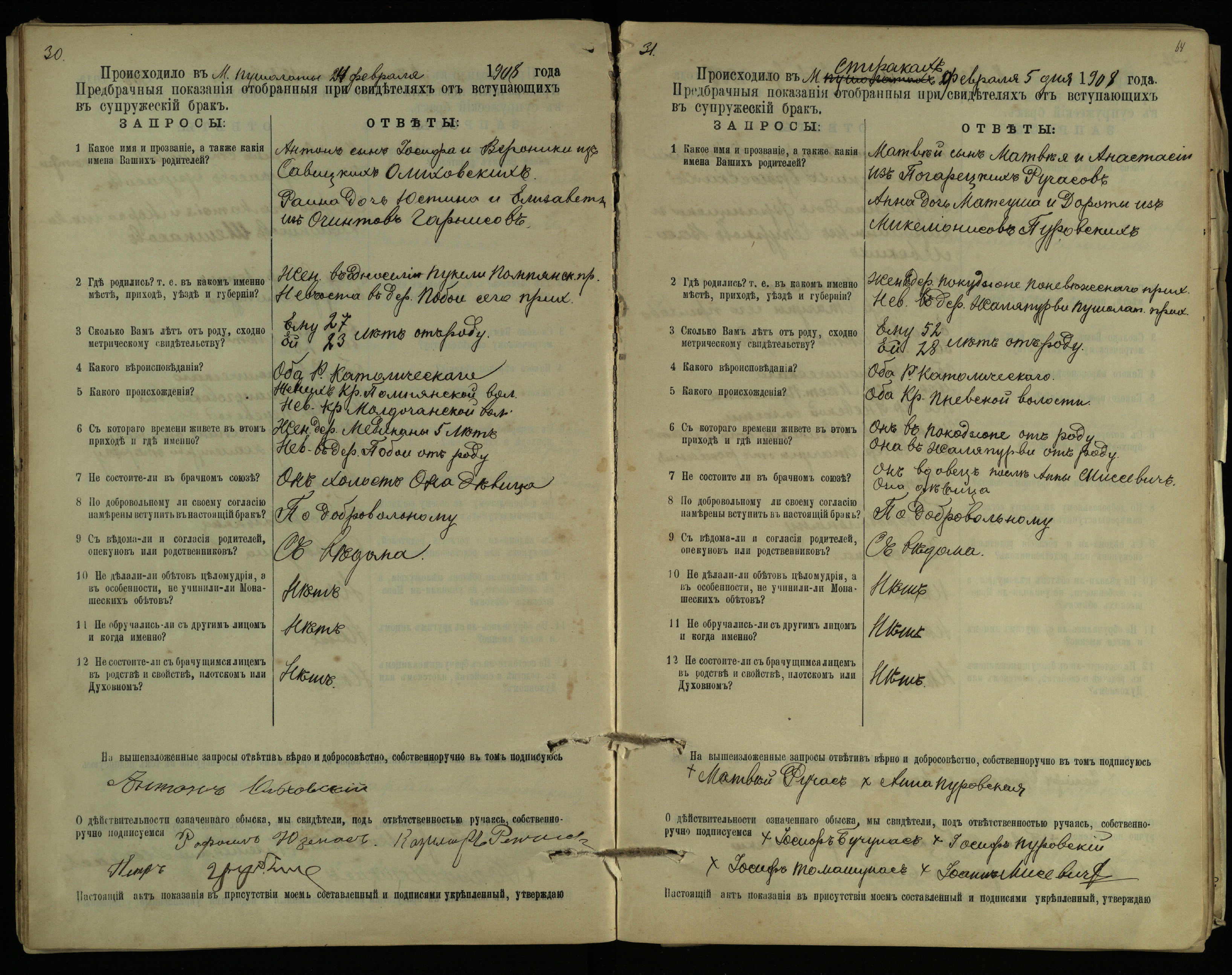 Pušaloto Romos katalikų parapijos bažnyčios 1904–1917 metų priešjungtuvinės apklausos knyga