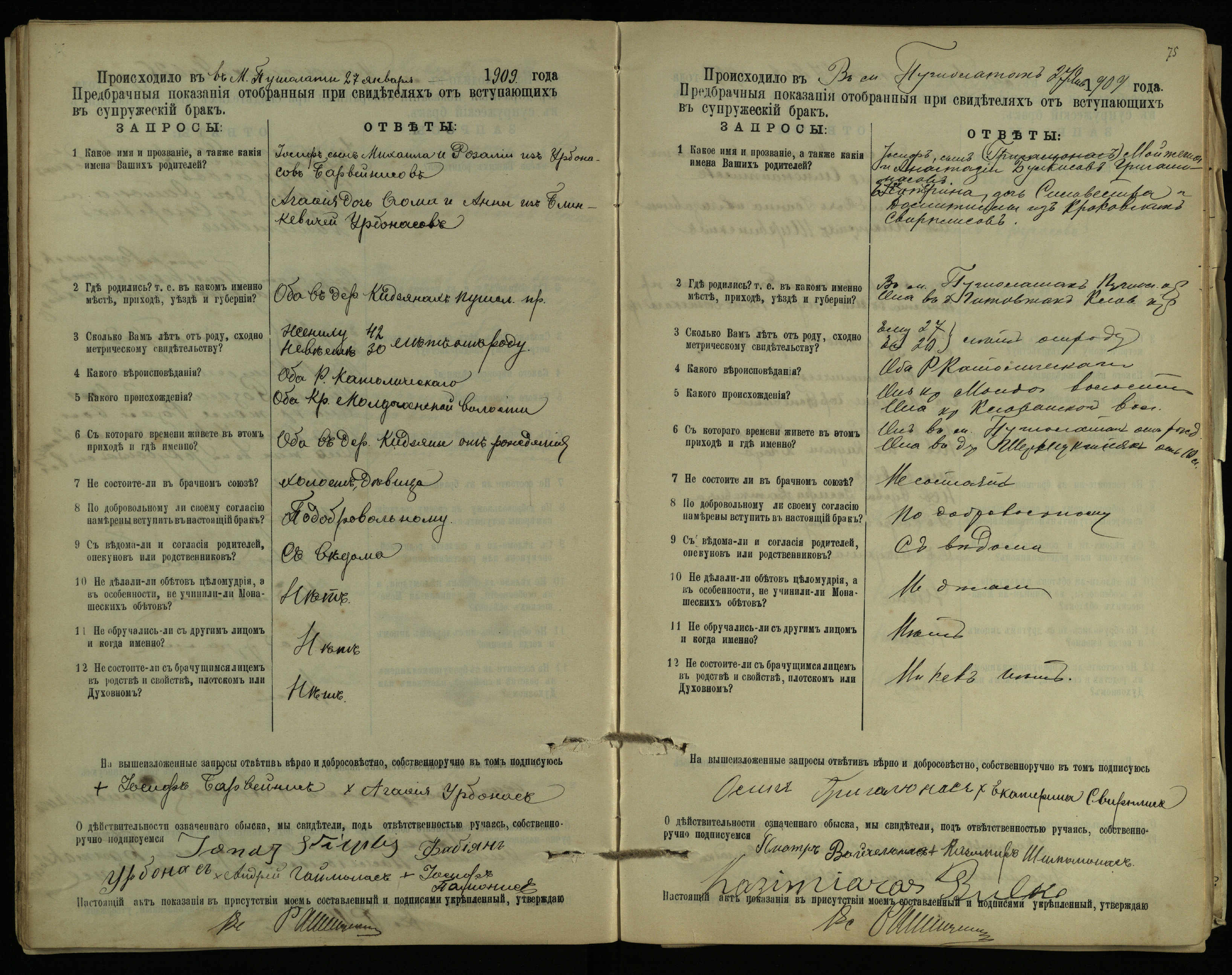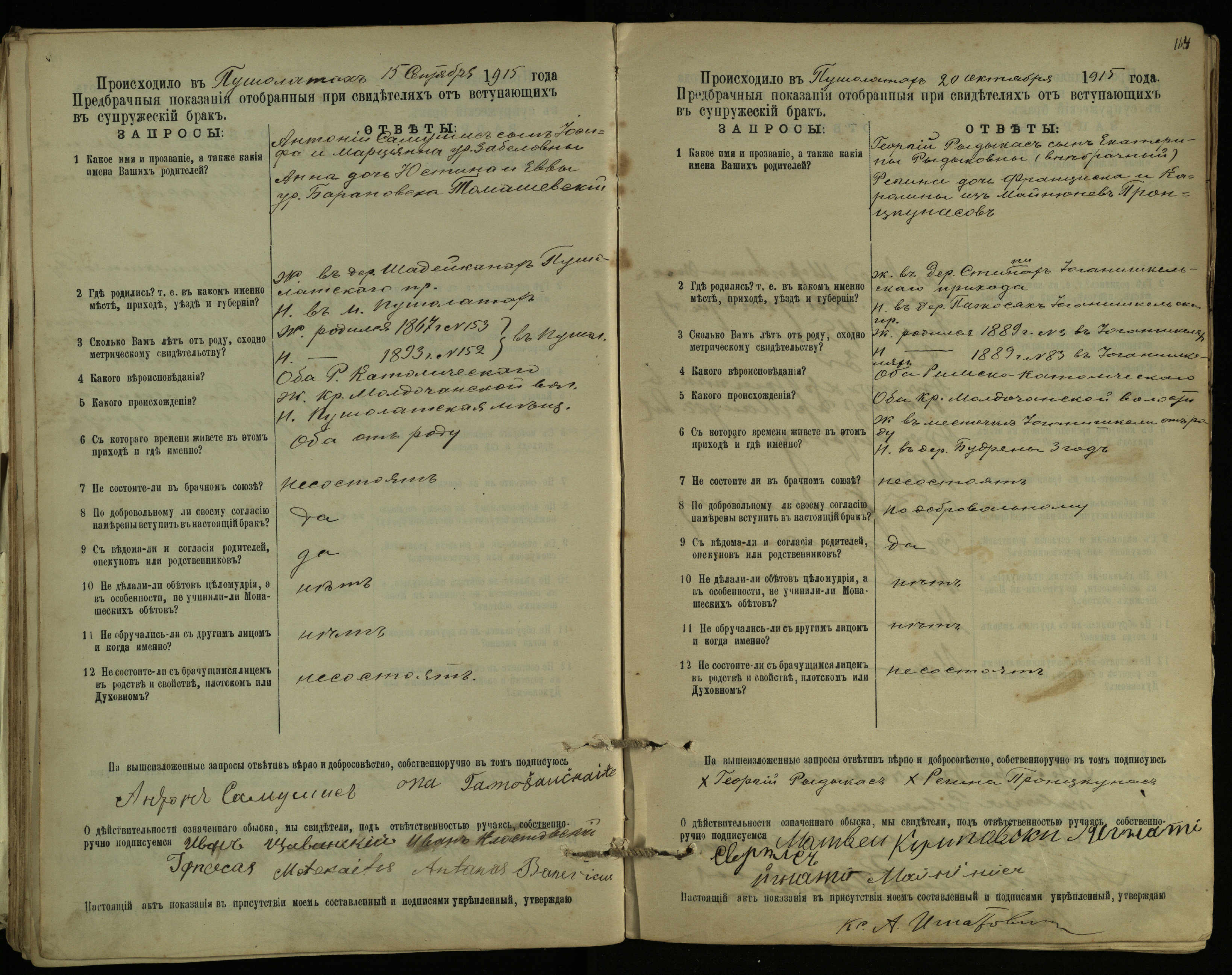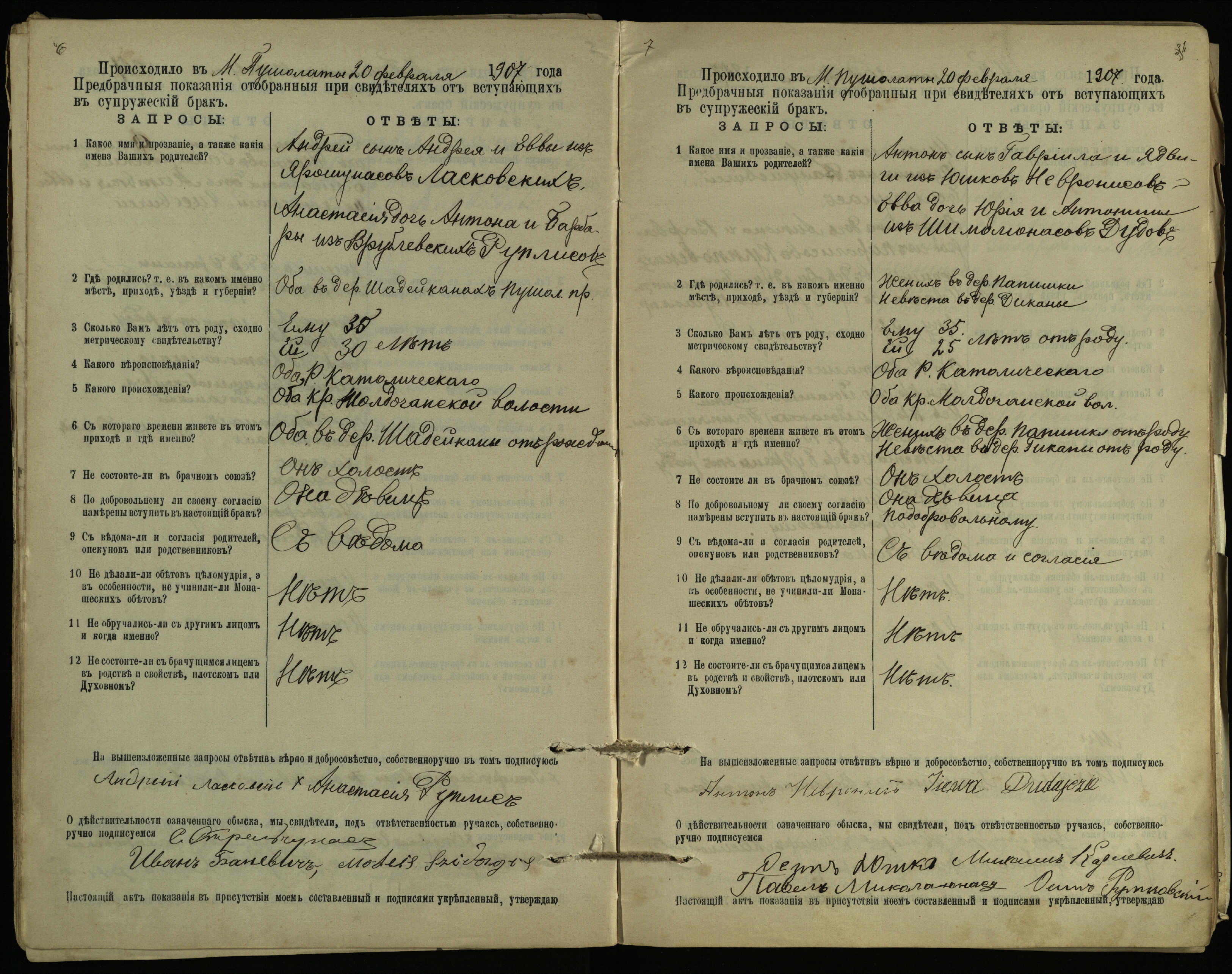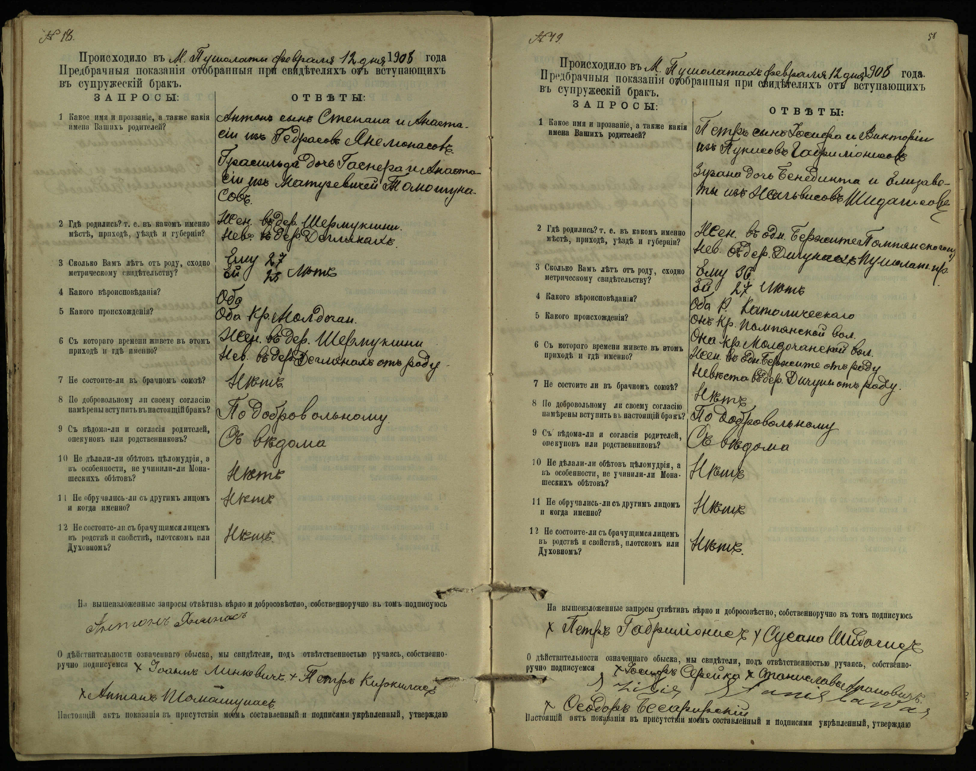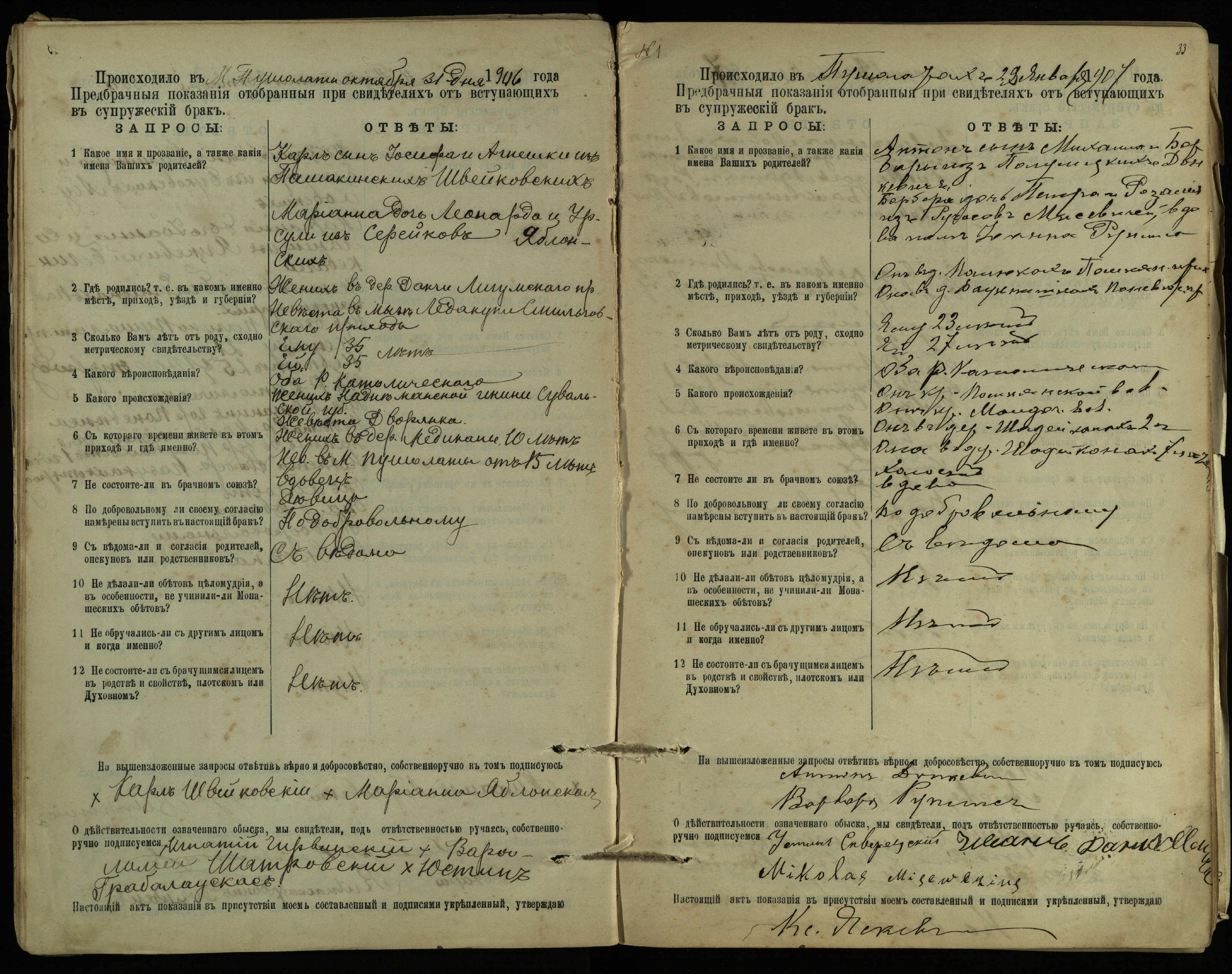 Pušaloto Romos katalikų parapijos bažnyčios 1904–1917 metų priešjungtuvinės apklausos knyga
