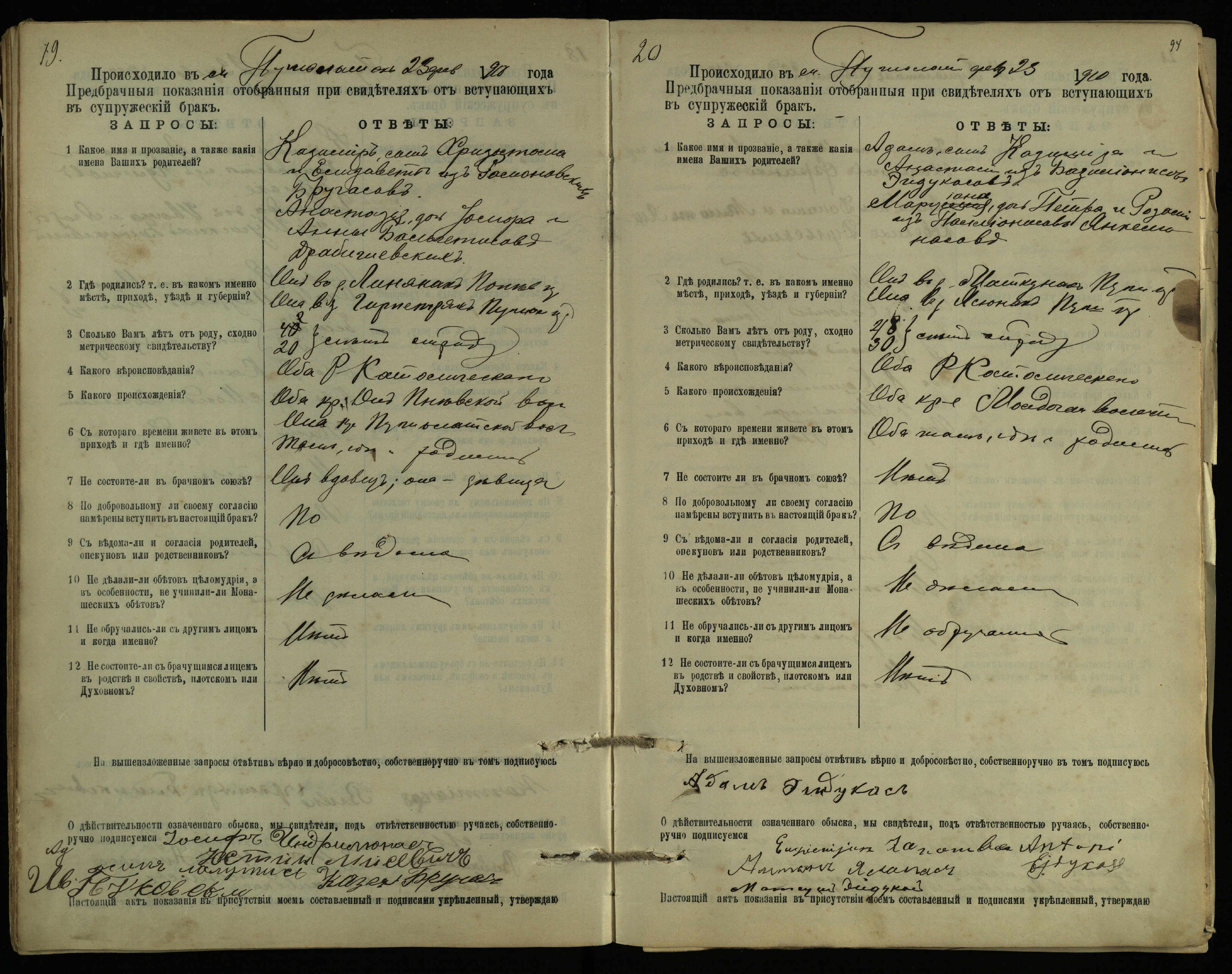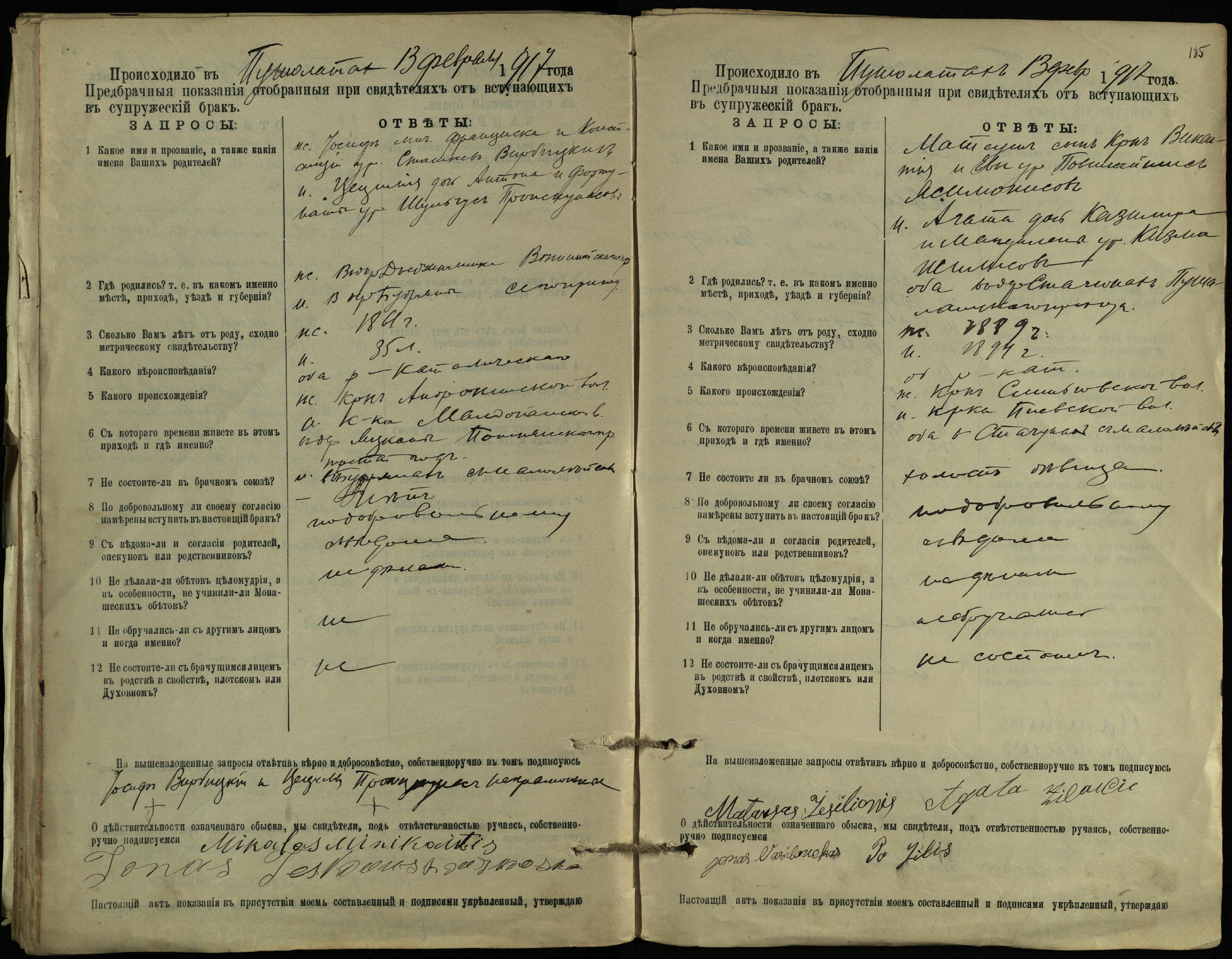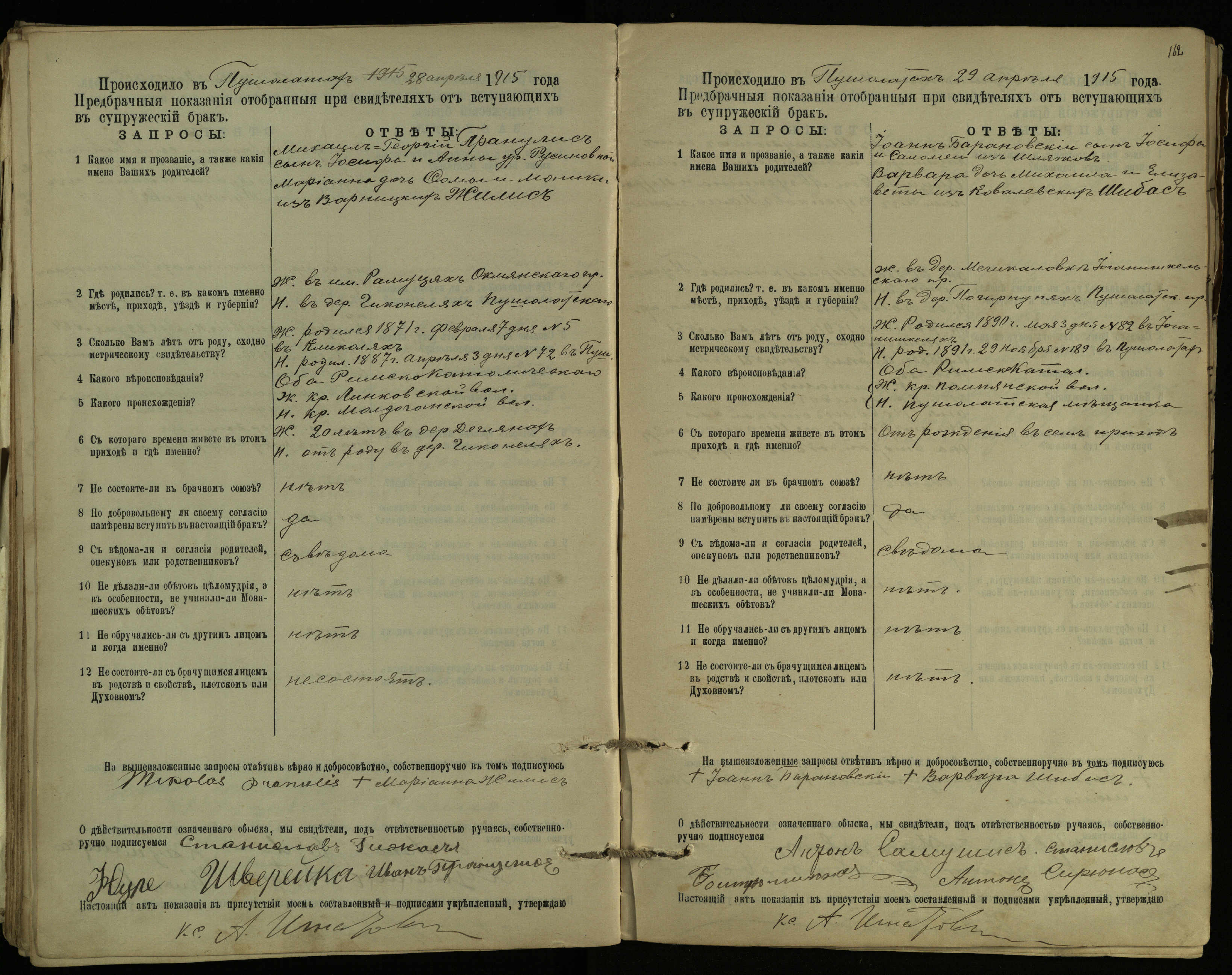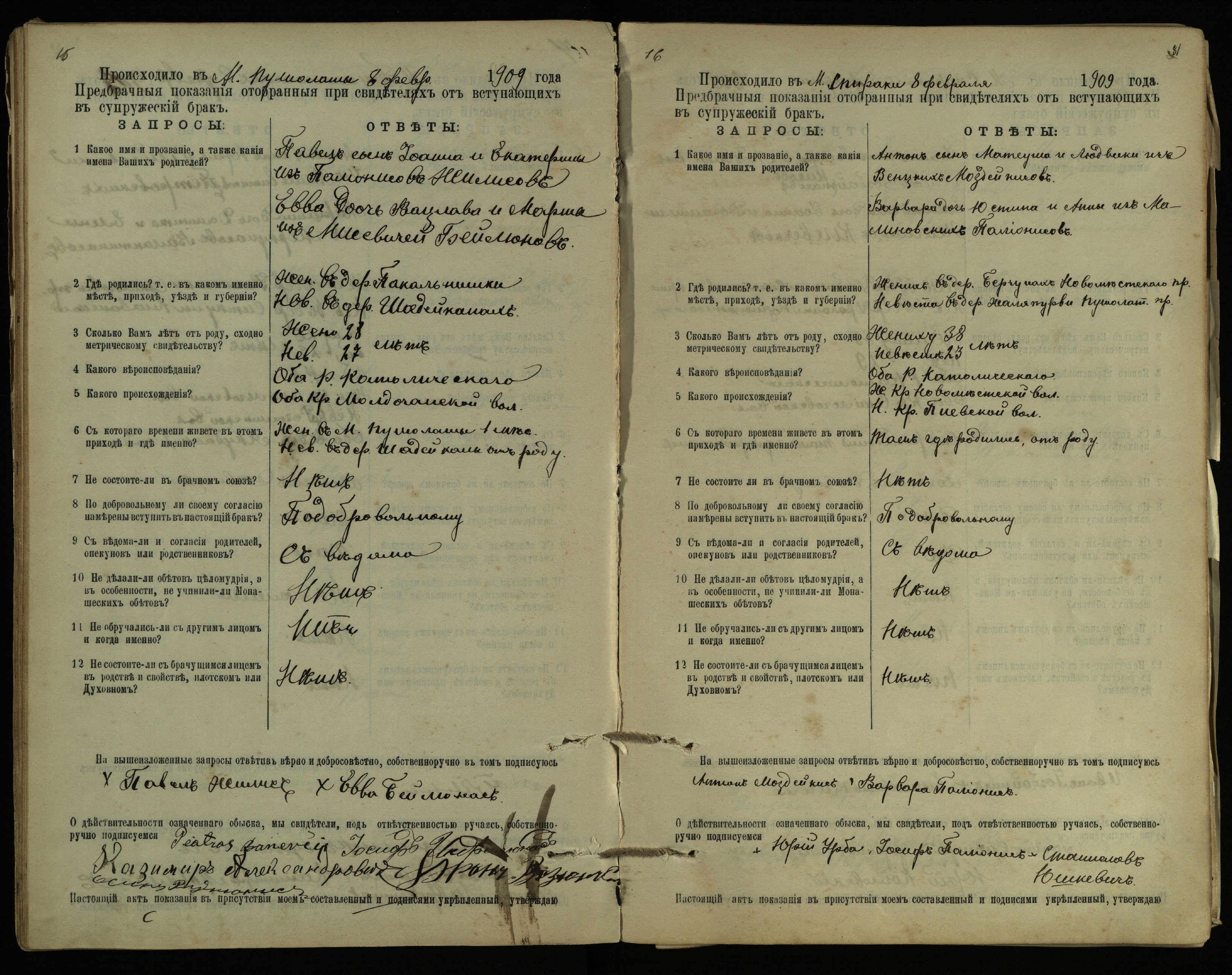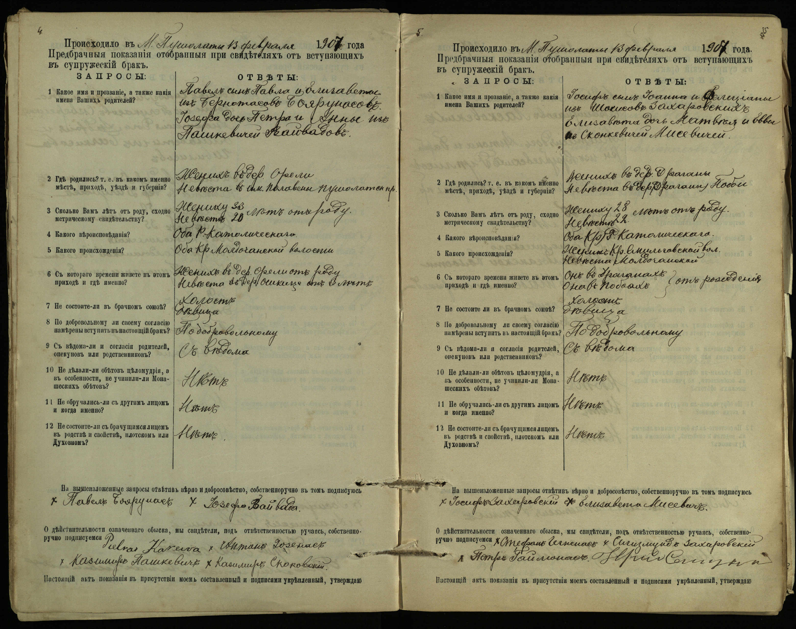 Pušaloto Romos katalikų parapijos bažnyčios 1904–1917 metų priešjungtuvinės apklausos knyga