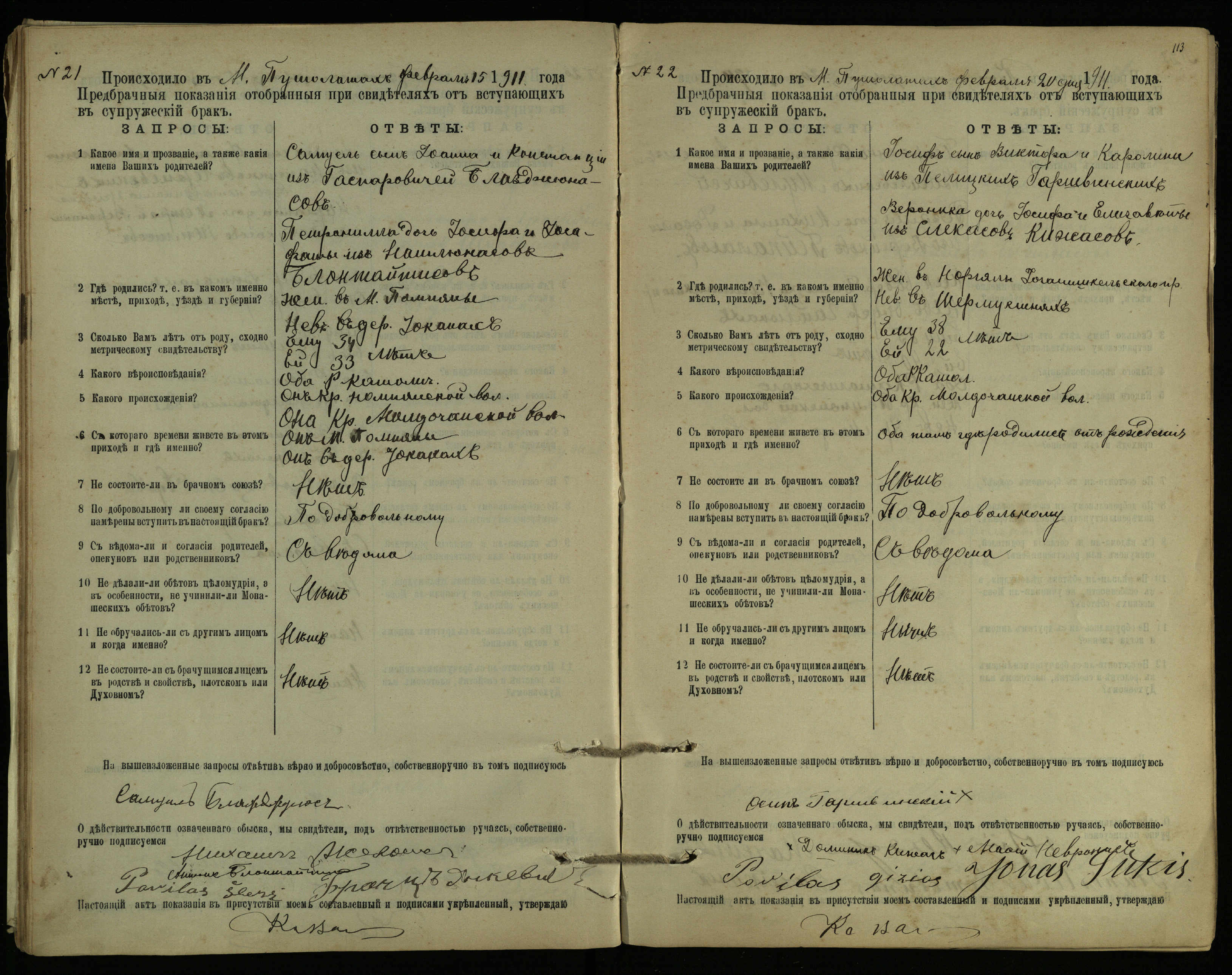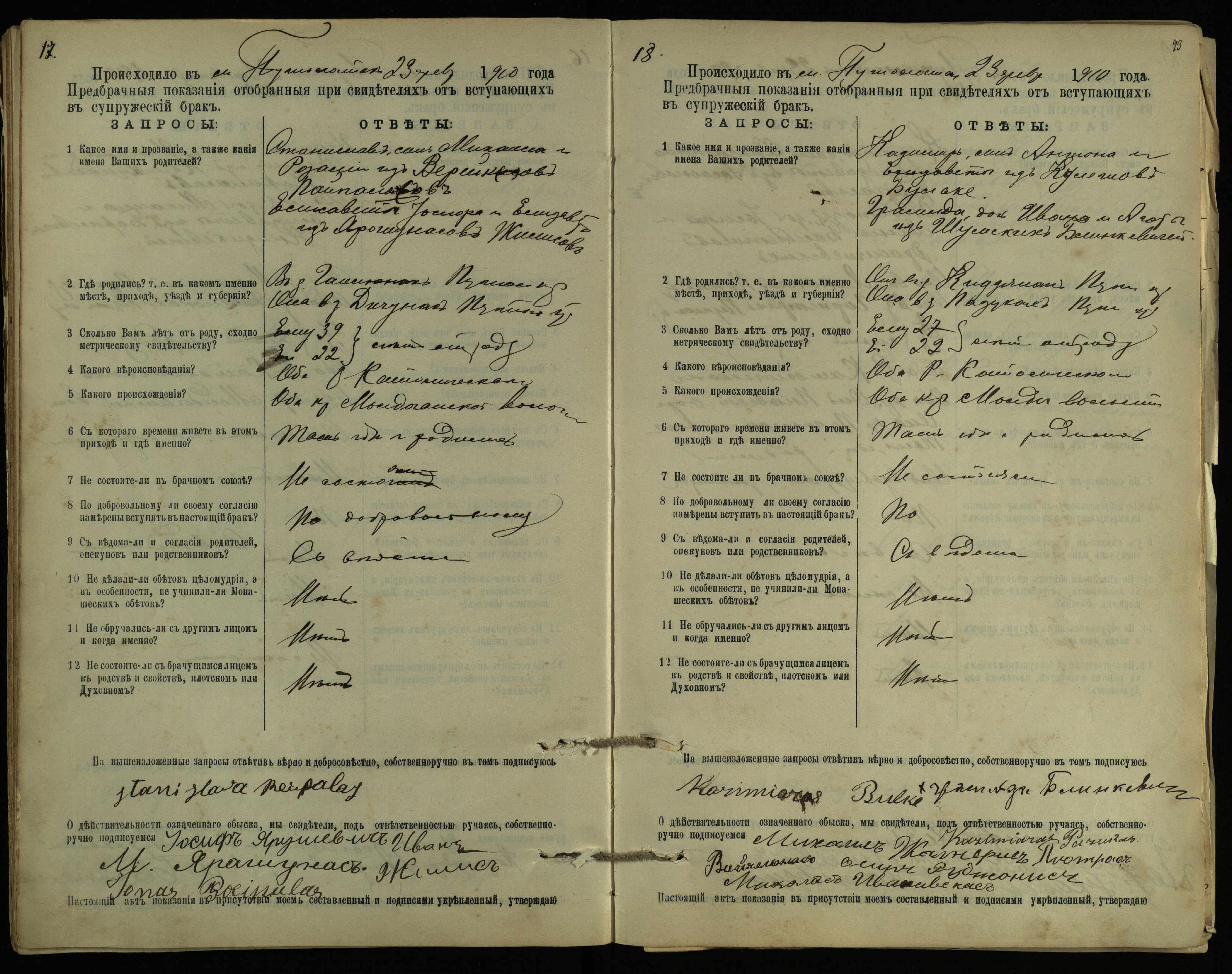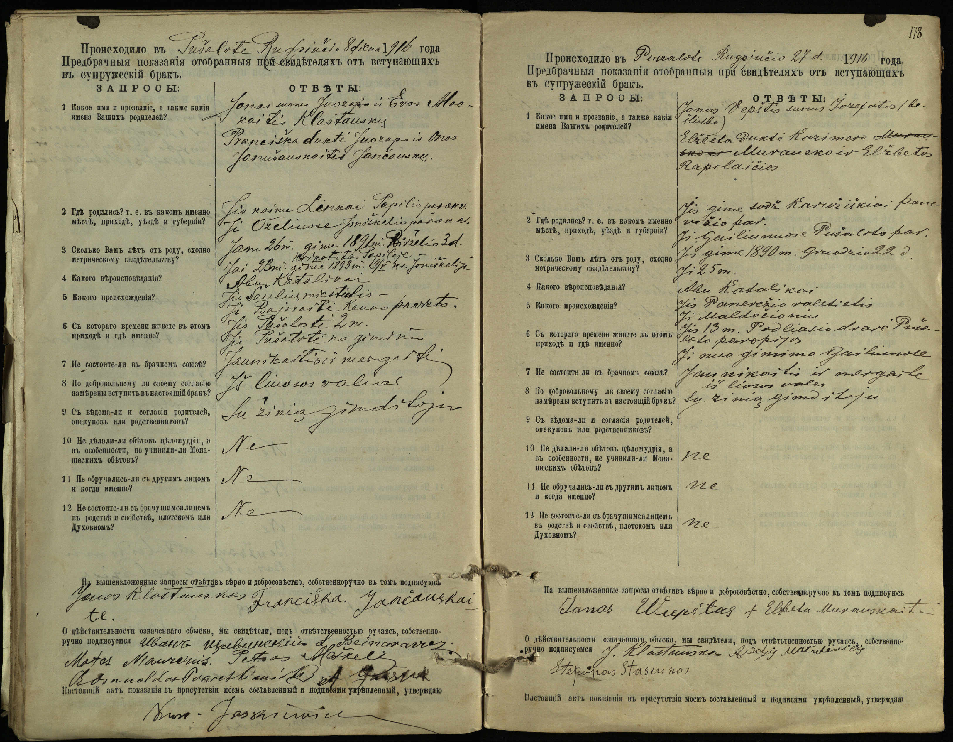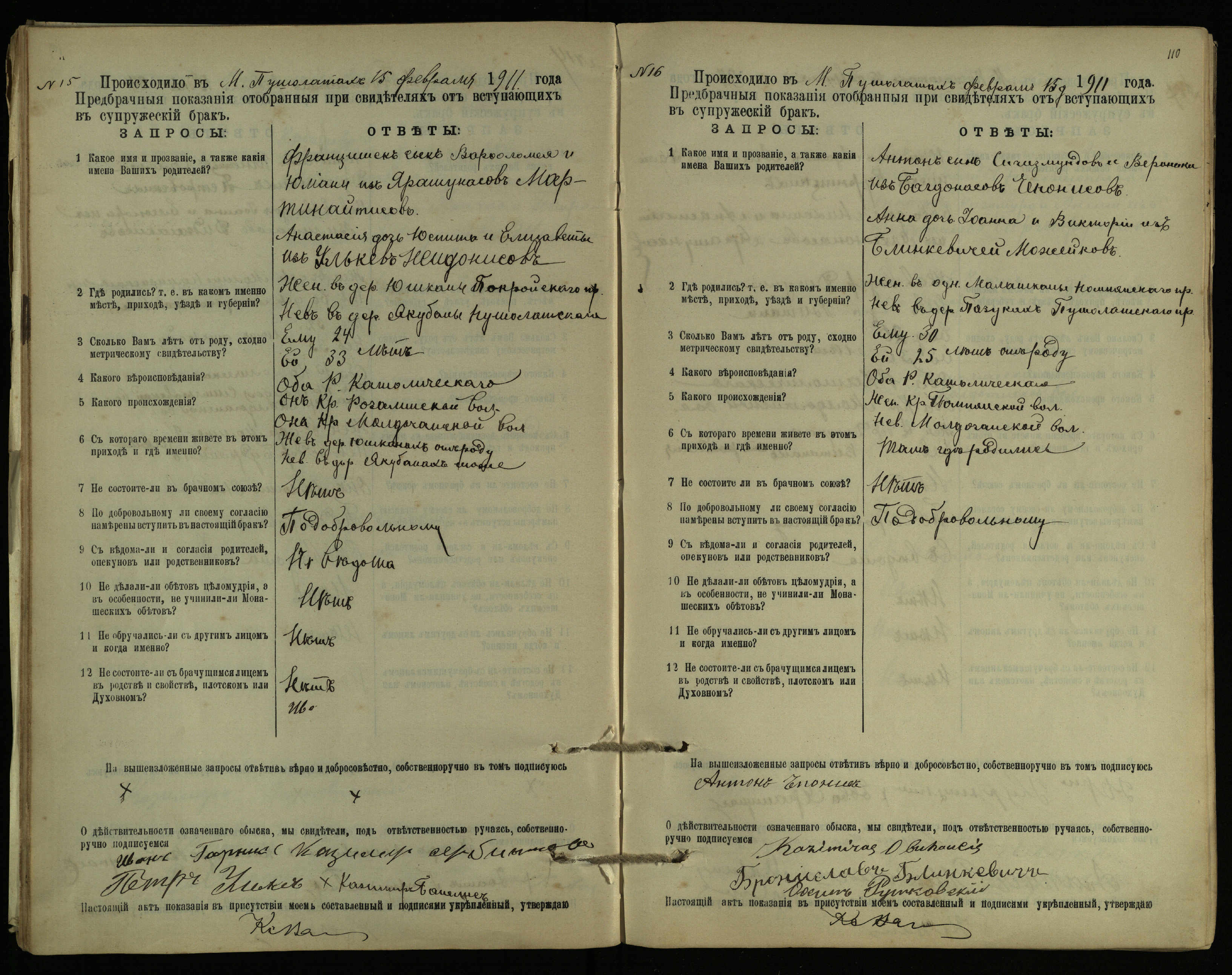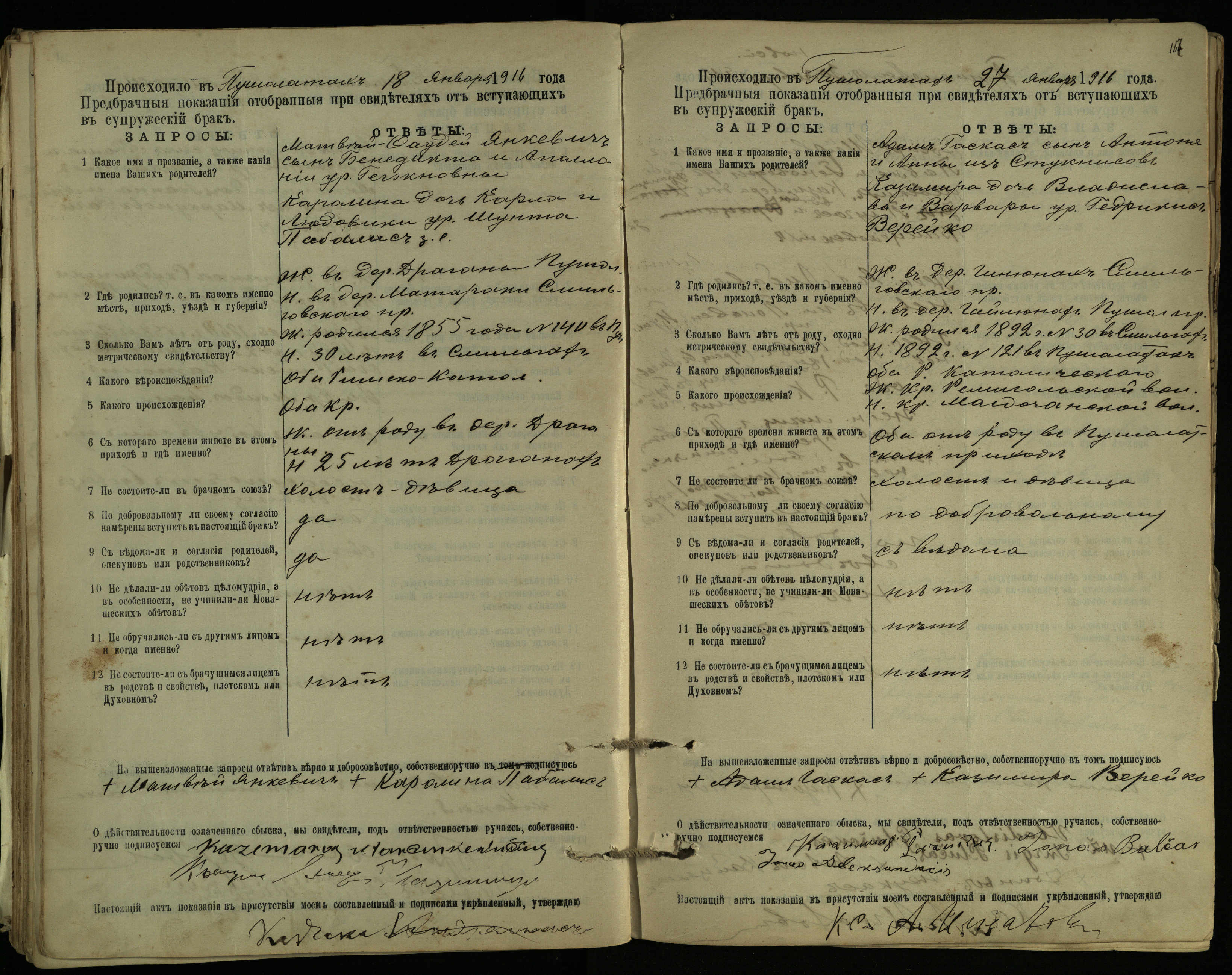 Pušaloto Romos katalikų parapijos bažnyčios 1904–1917 metų priešjungtuvinės apklausos knyga