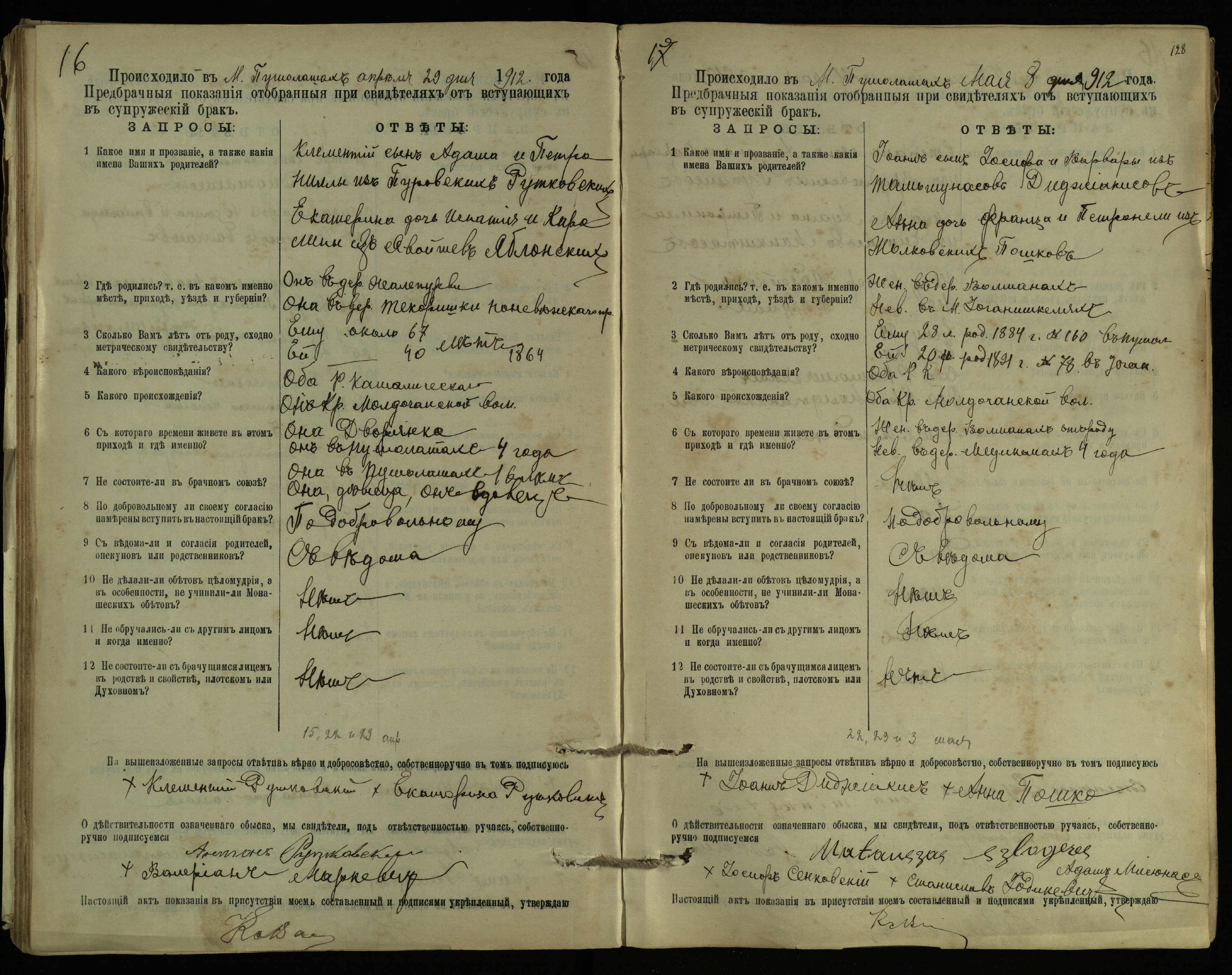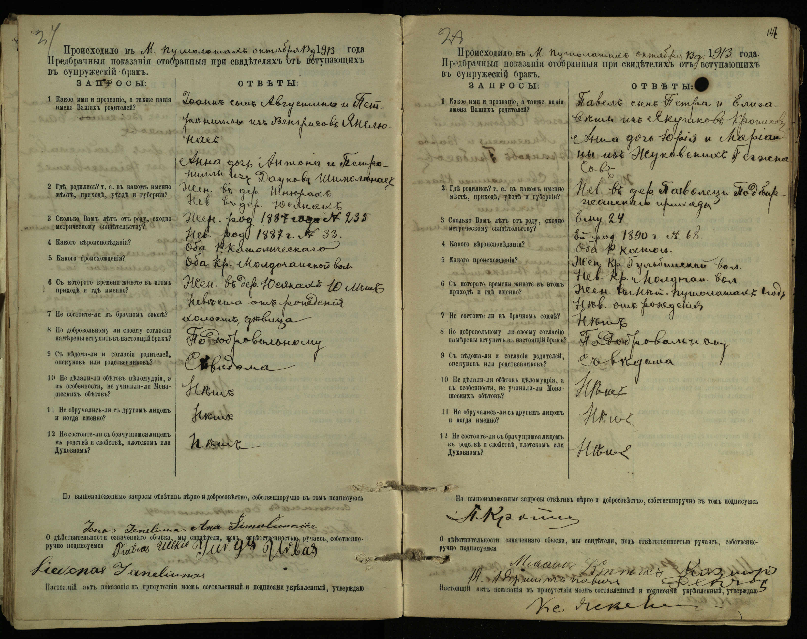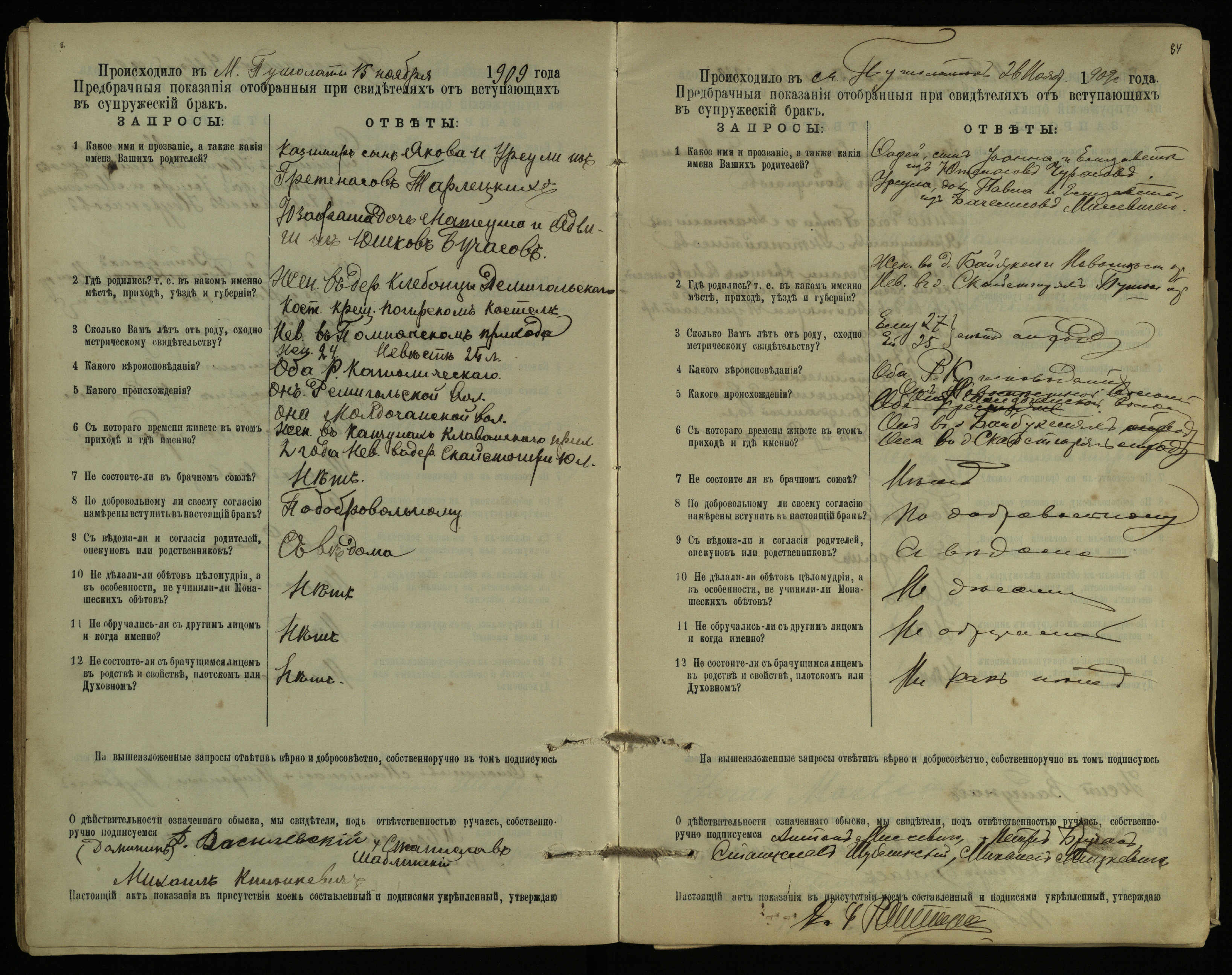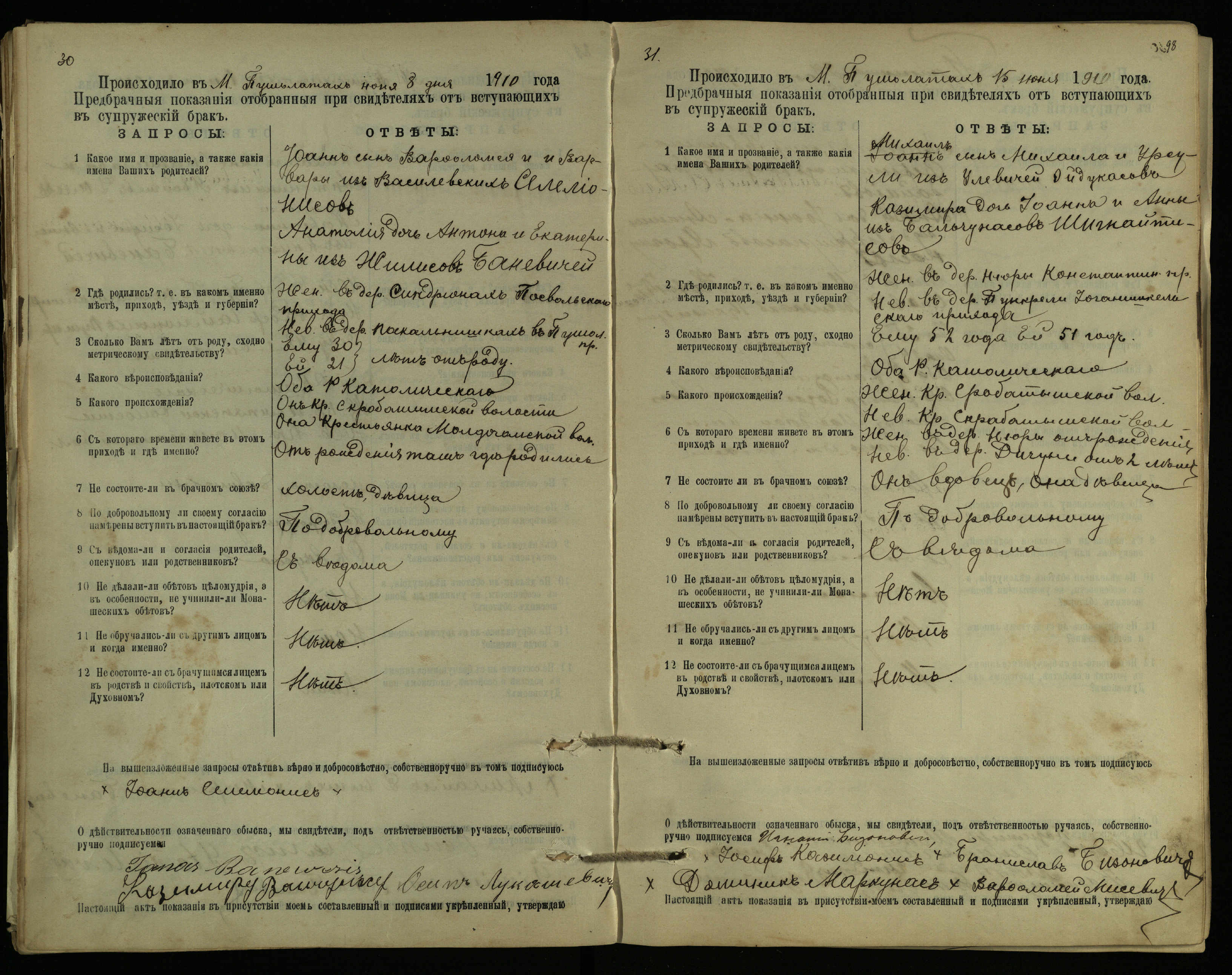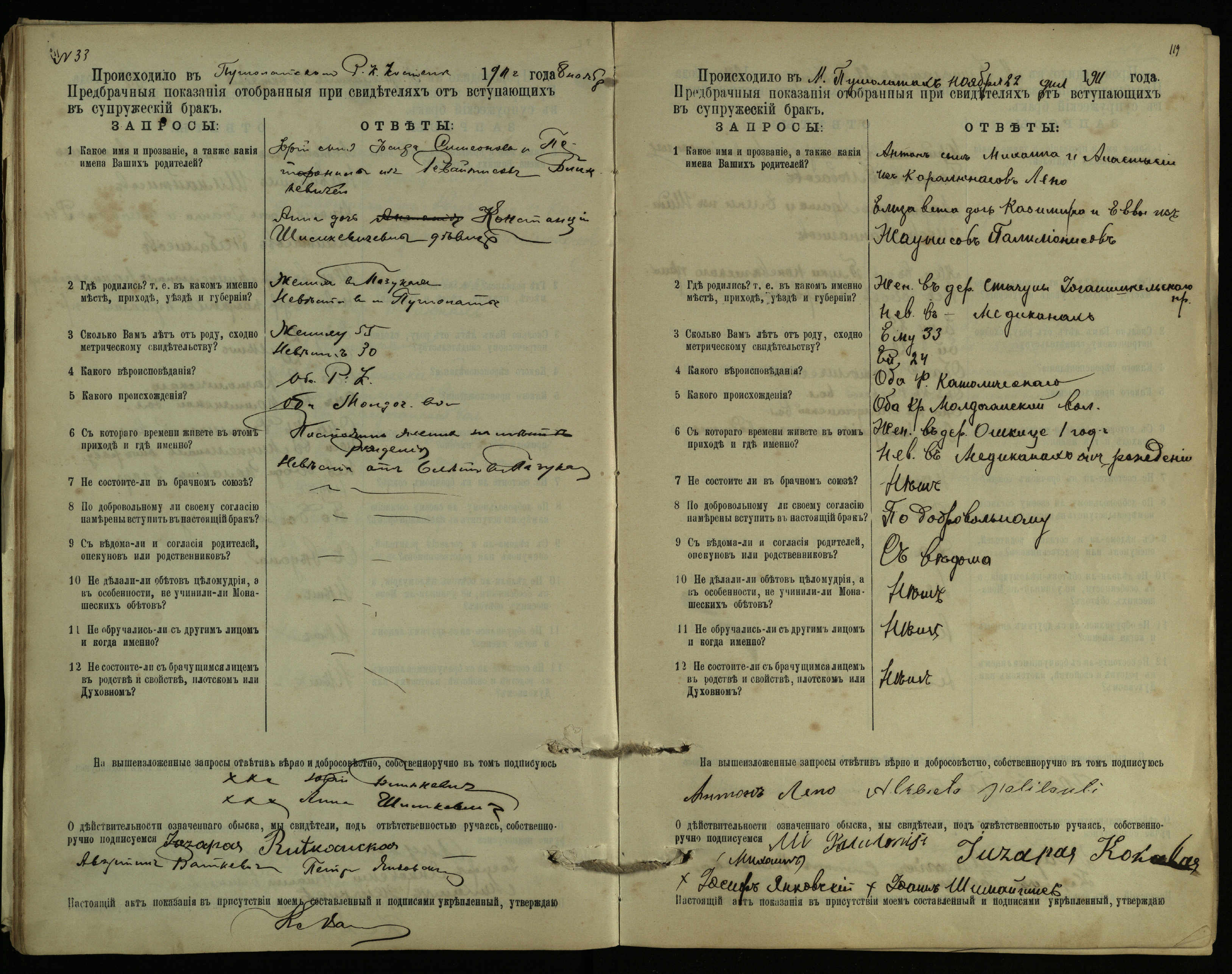 Pušaloto Romos katalikų parapijos bažnyčios 1904–1917 metų priešjungtuvinės apklausos knyga