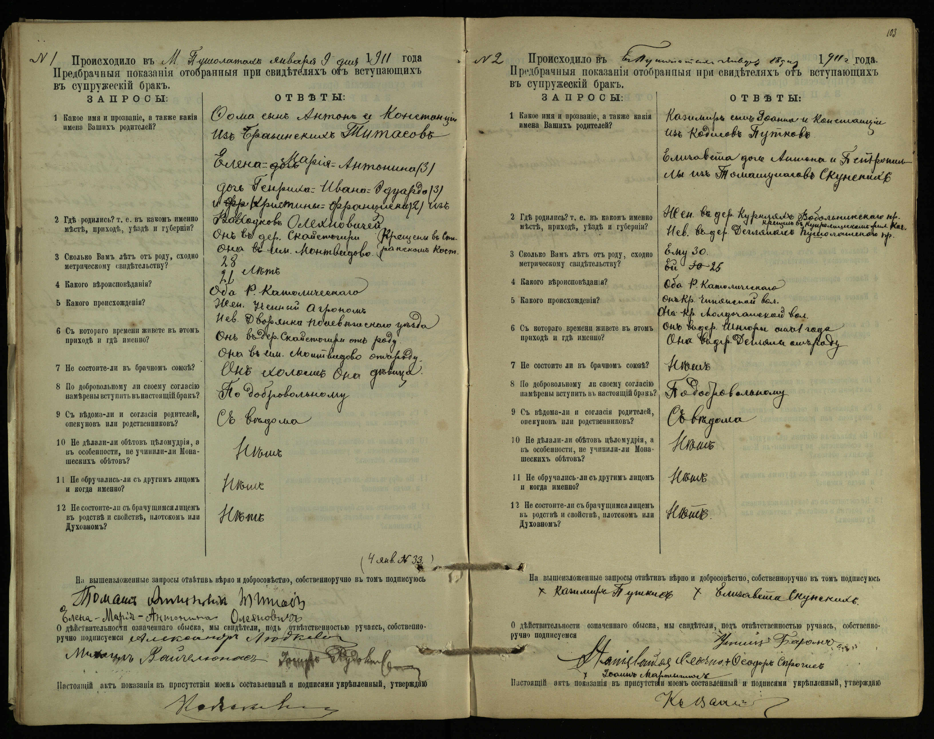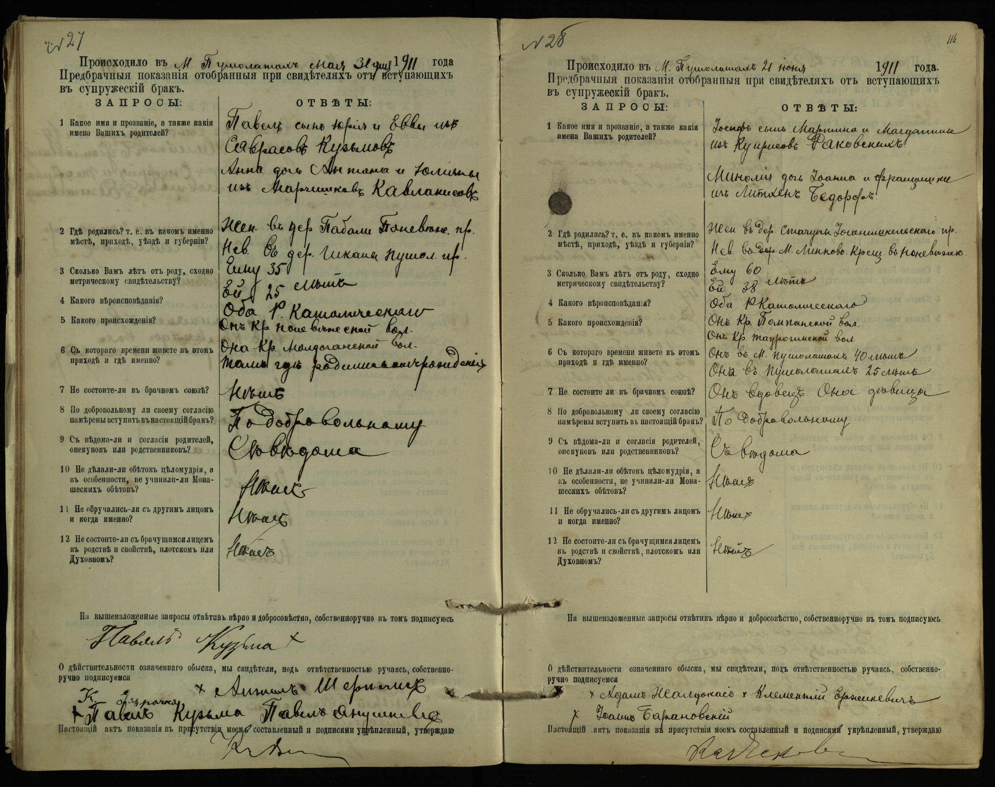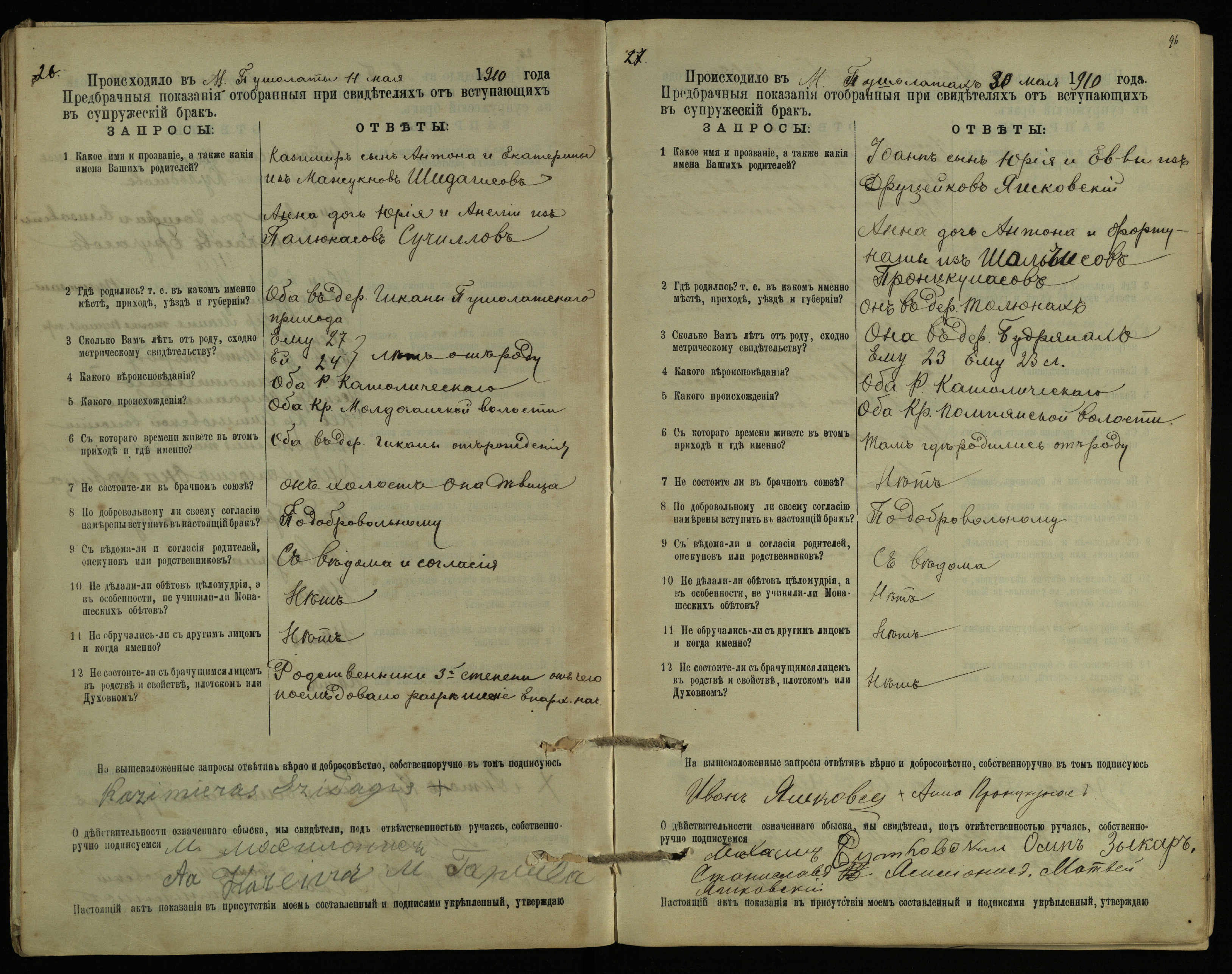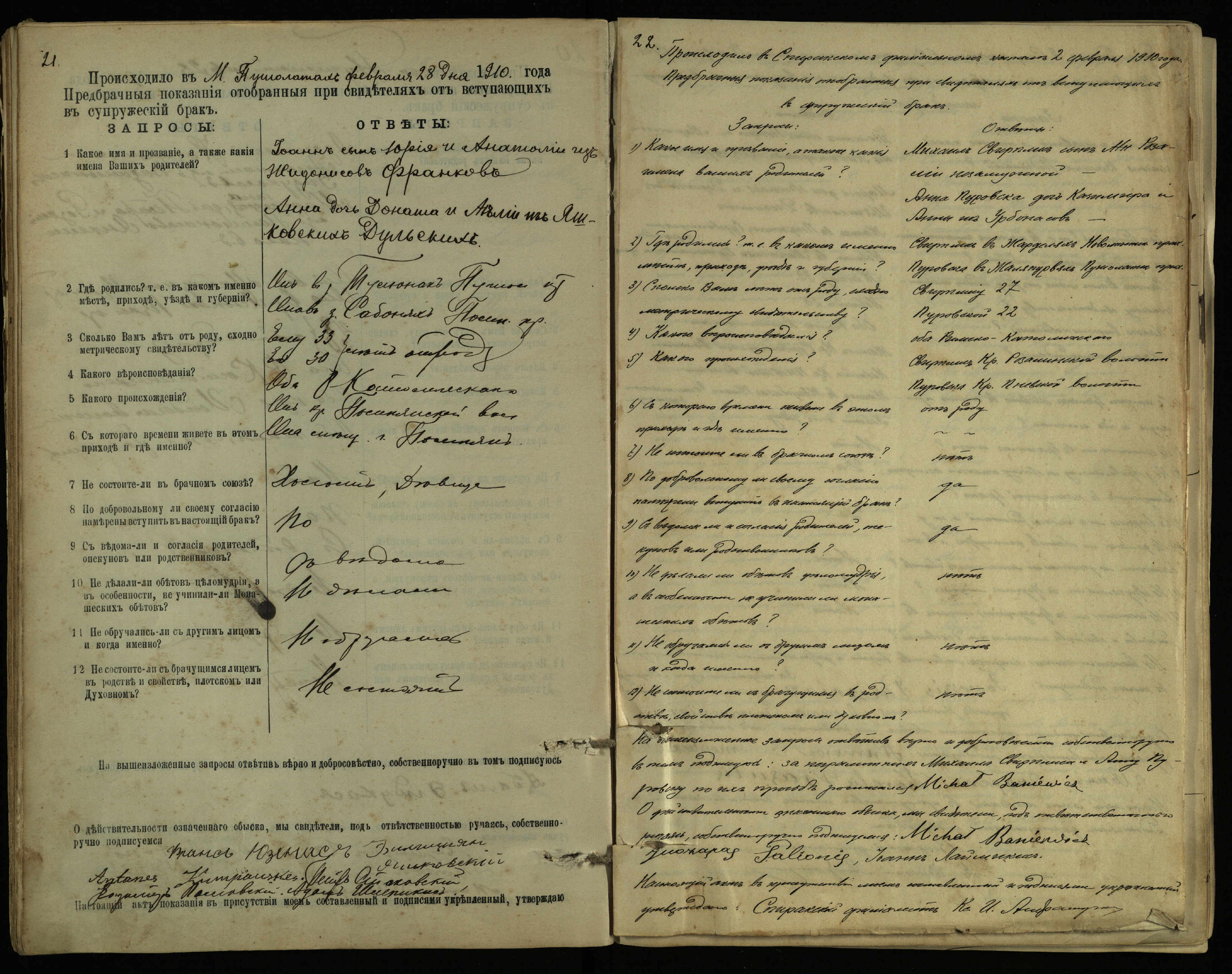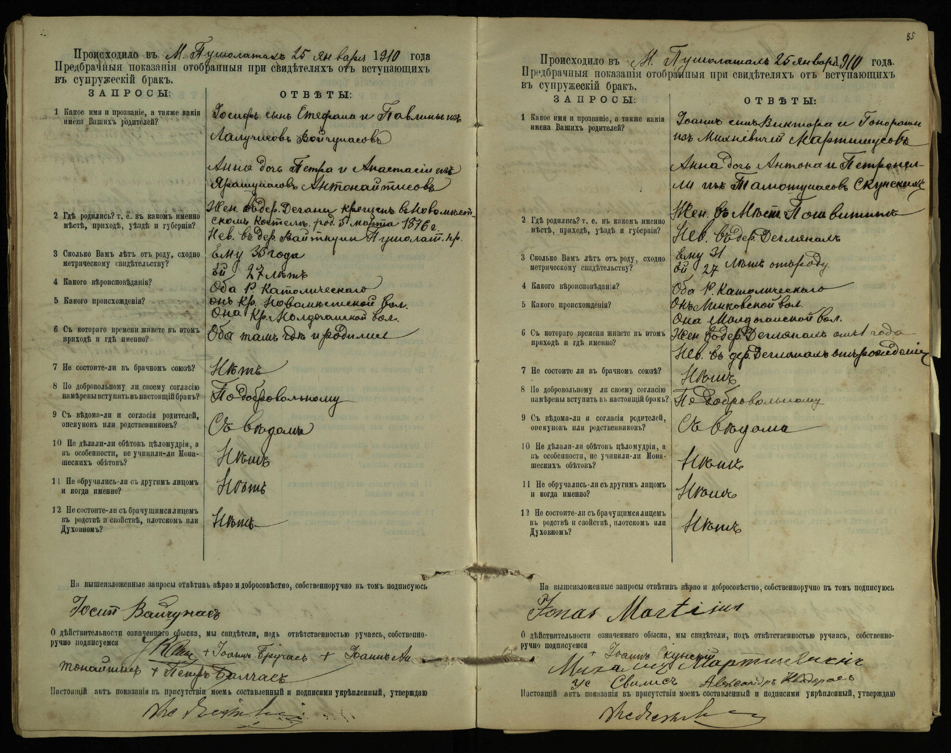 Pušaloto Romos katalikų parapijos bažnyčios 1904–1917 metų priešjungtuvinės apklausos knyga