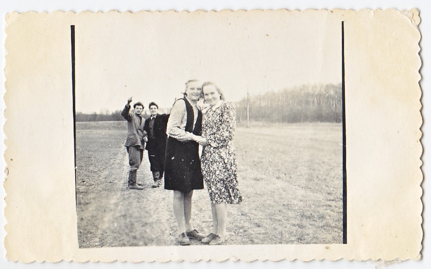Emilija Petrauskaitė (centre iš kairės pirma) su draugais, dešinėje pusėje matosi Jono Levanavičiaus miškelis