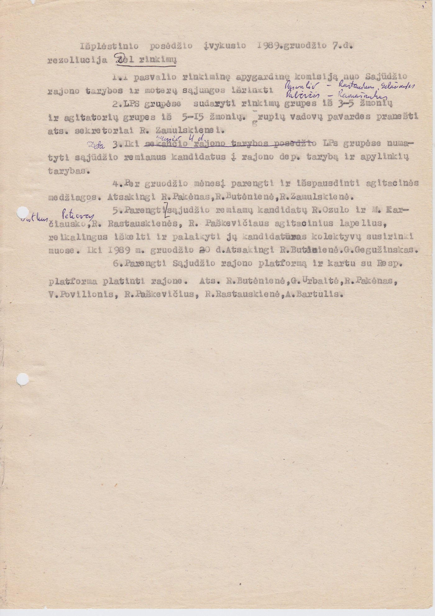 Išplėstinio posėdžio, įvykusio 1989 m. gruodžio 7 d., rezoliucija dėl rinkimų