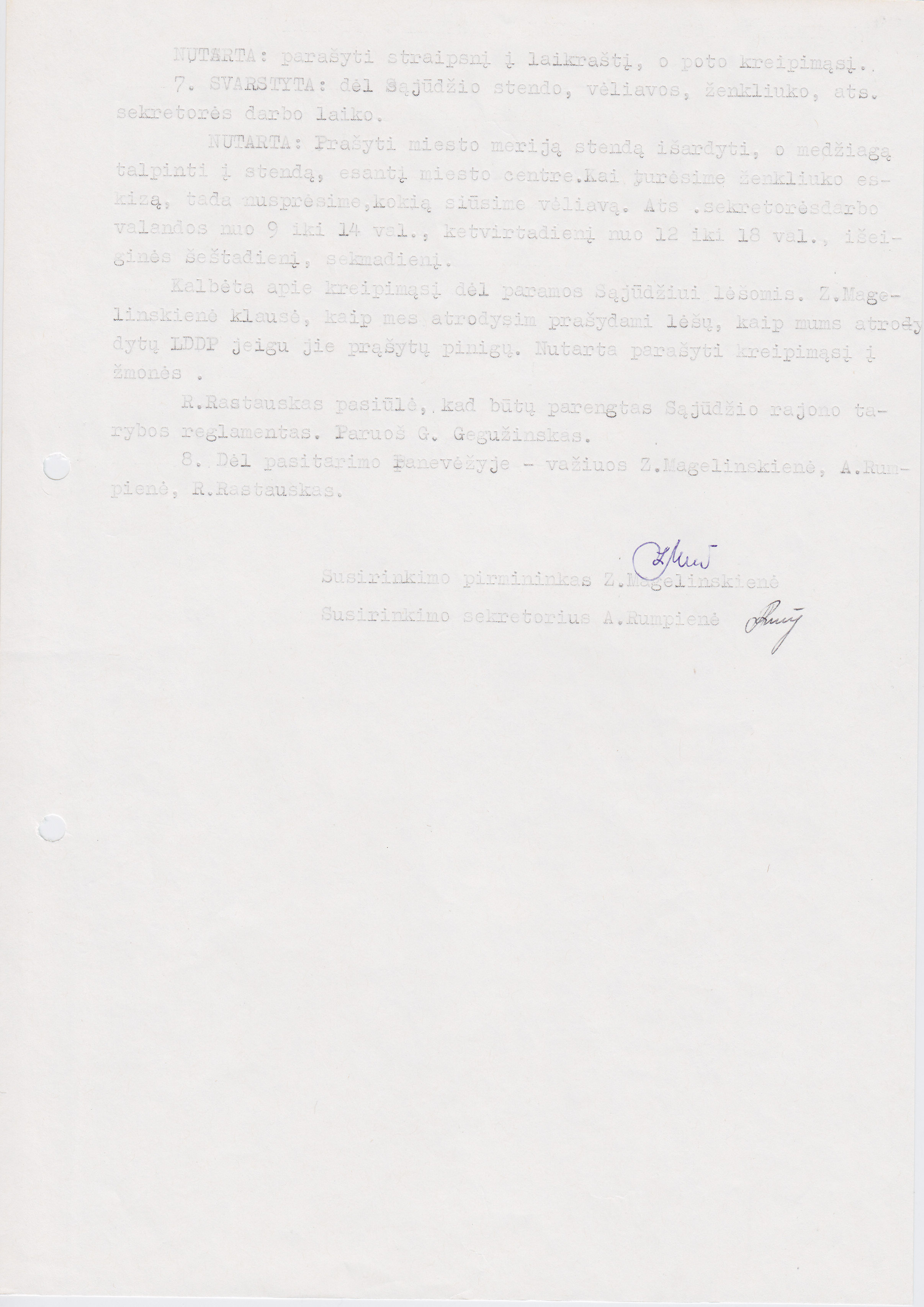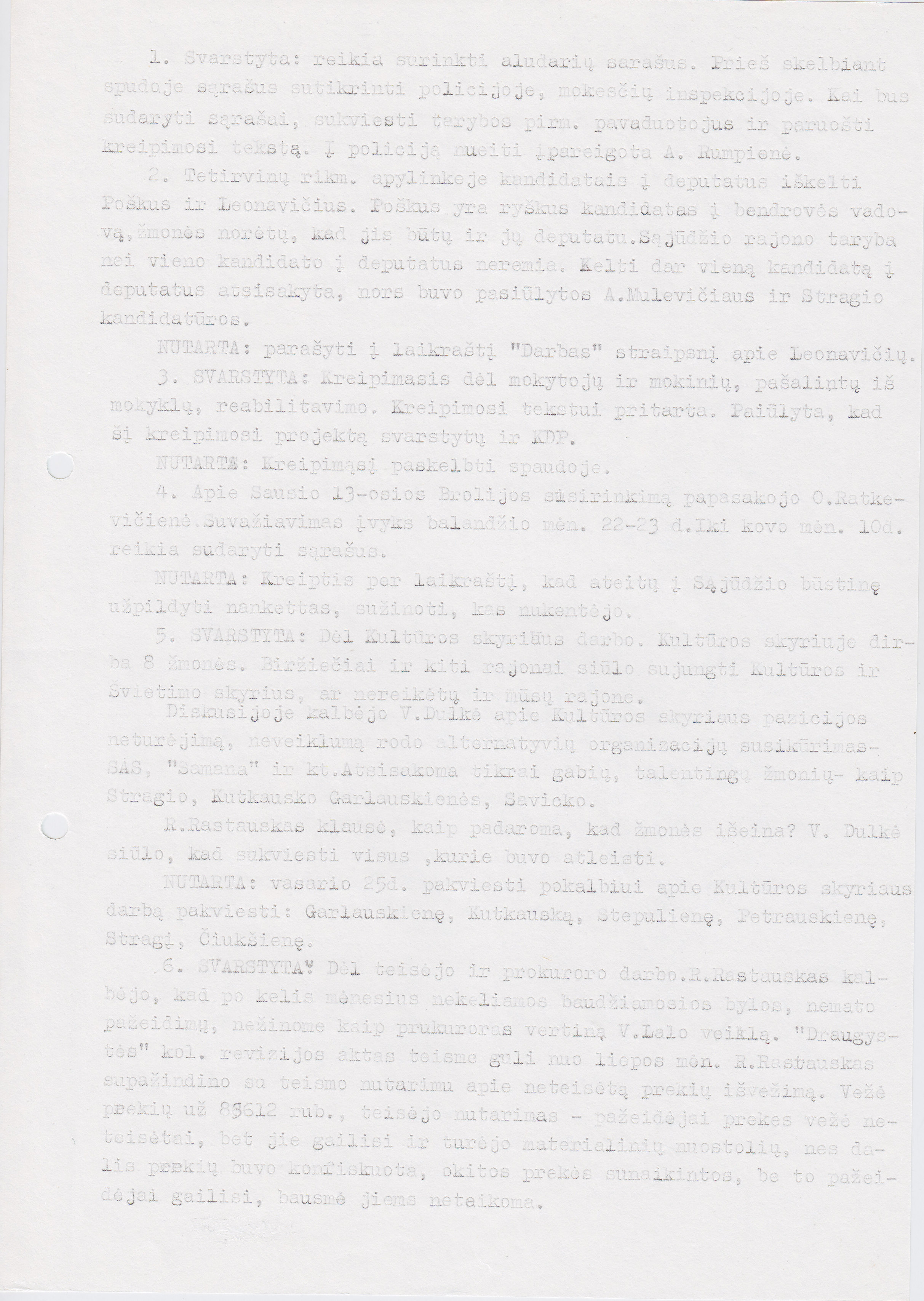 Lietuvos Sajūdžio Pasvalio rajono susirinkimo, įvykusio 1992 m. vasario 20 d., PROTOKOLAS Nr. 5