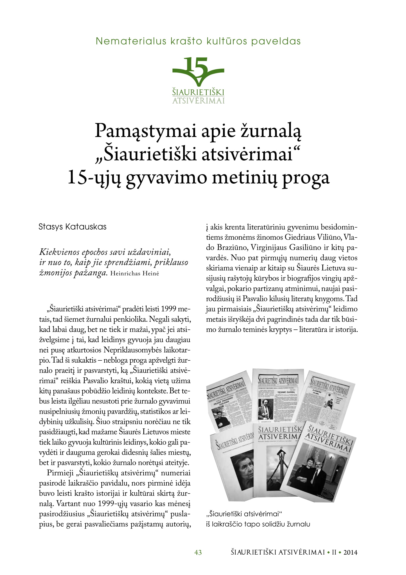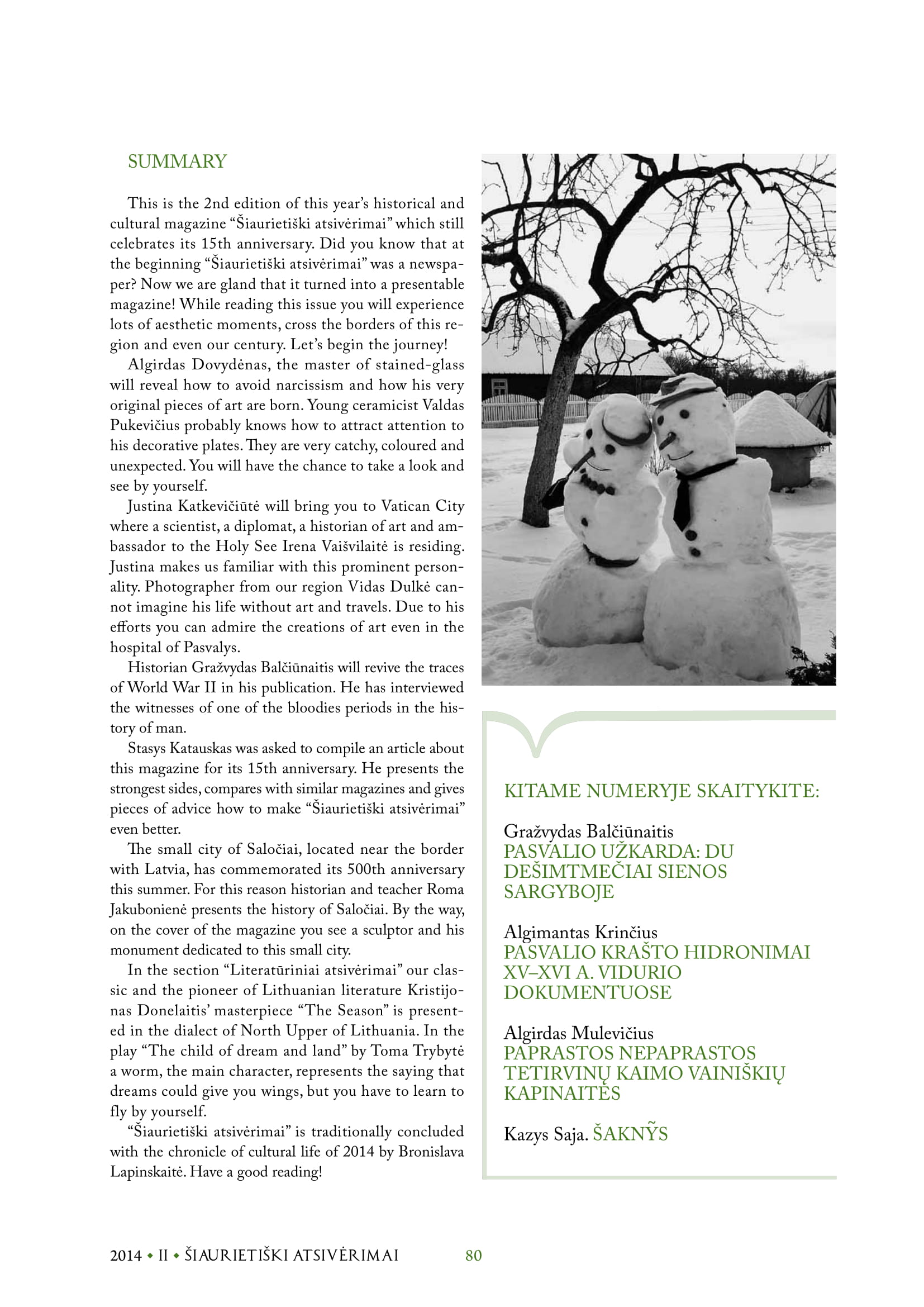 Šiaurietiški atsivėrimai : Pasvalio krašto istorijos ir kultūros žurnalas 2014, nr. 2 (37)