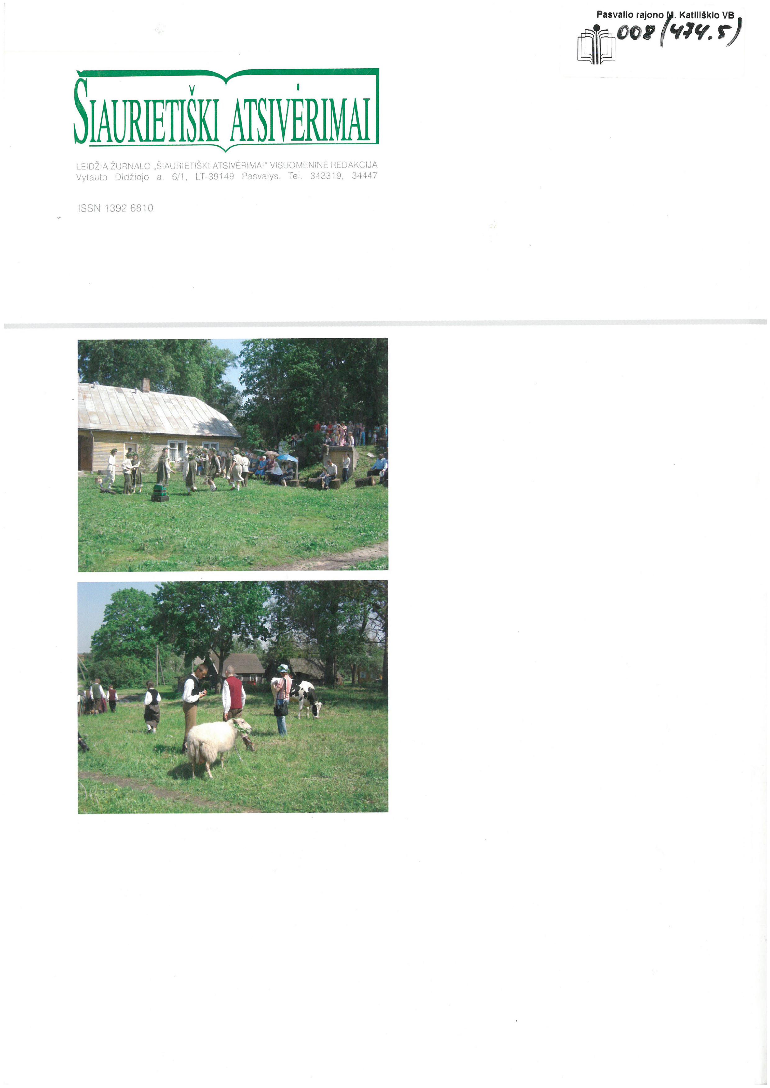 Šiaurietiški atsivėrimai : Pasvalio krašto istorijos ir kultūros žurnalas 2007, nr. 1 (22)