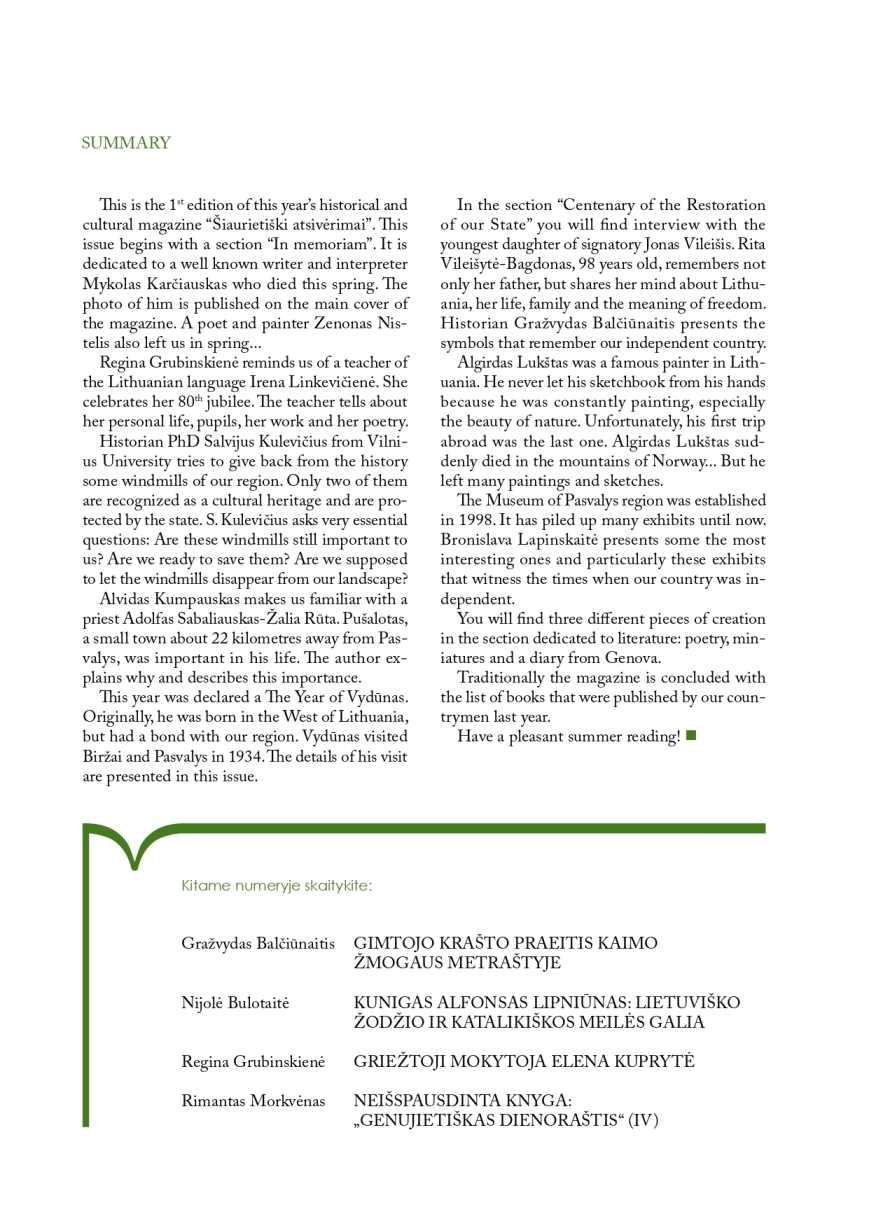 Šiaurietiški atsivėrimai : Pasvalio krašto istorijos ir kultūros žurnalas 2018, nr. 1 (44)