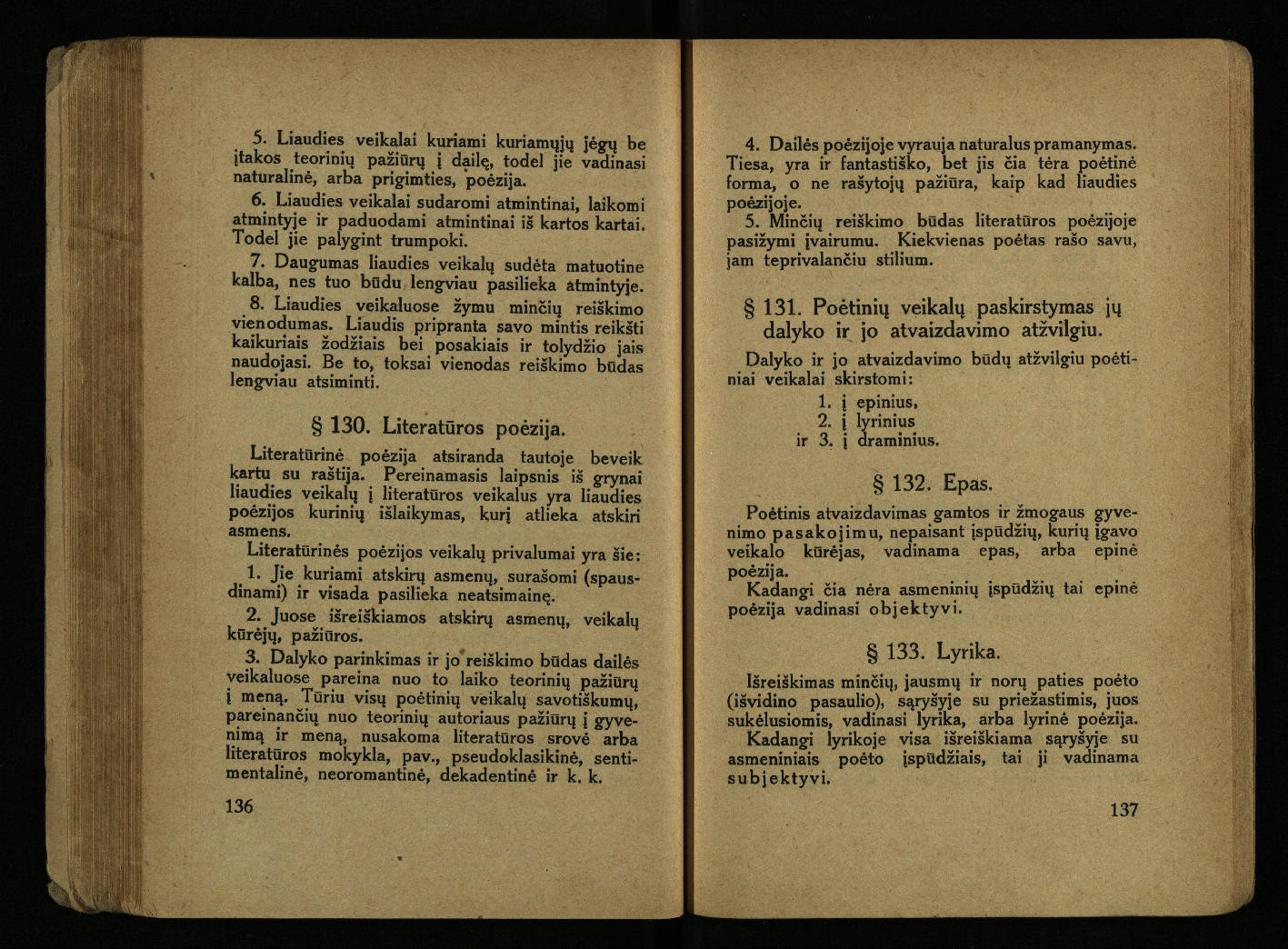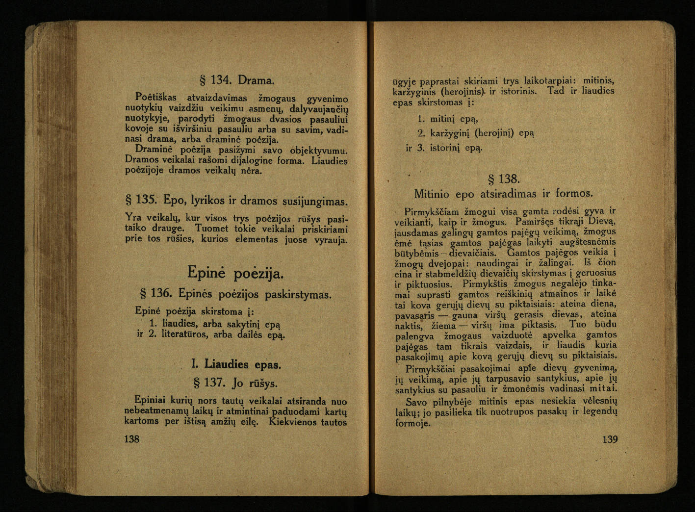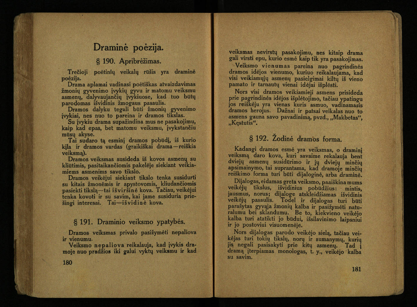 Literatūros teorija : vadovėlis aukštesniosioms mokykloms / K. Bizauskas. – 3 -ias leid. – Kaunas, 1922. – 199 p.
