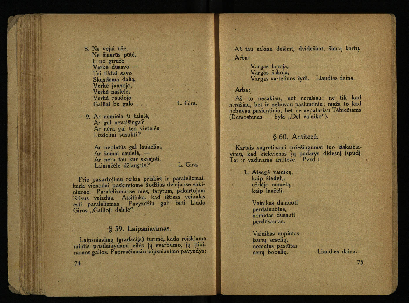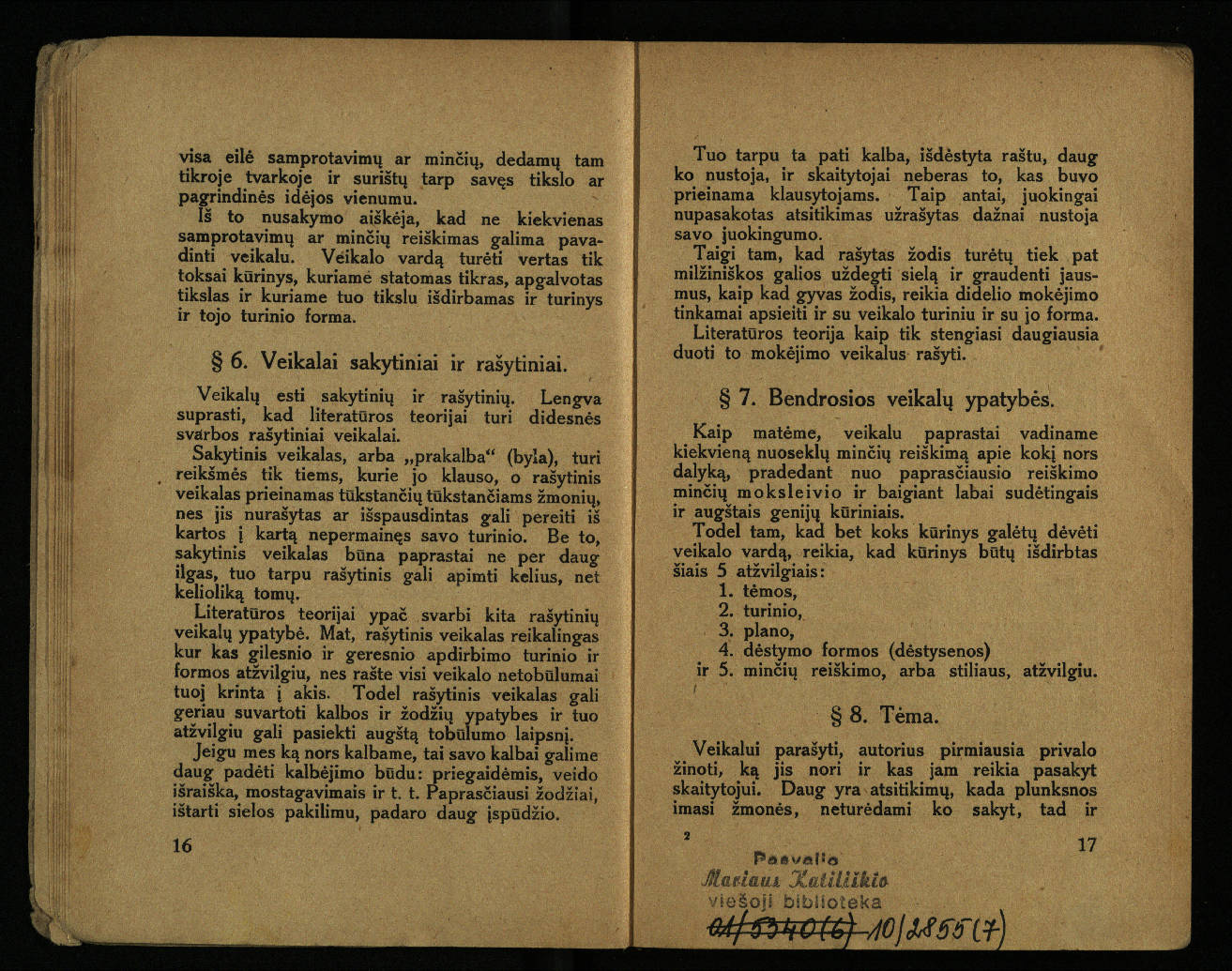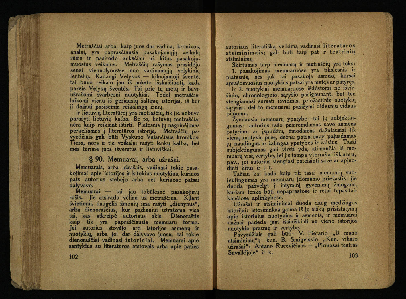 Literatūros teorija : vadovėlis aukštesniosioms mokykloms / K. Bizauskas. – 3 -ias leid. – Kaunas, 1922. – 199 p.