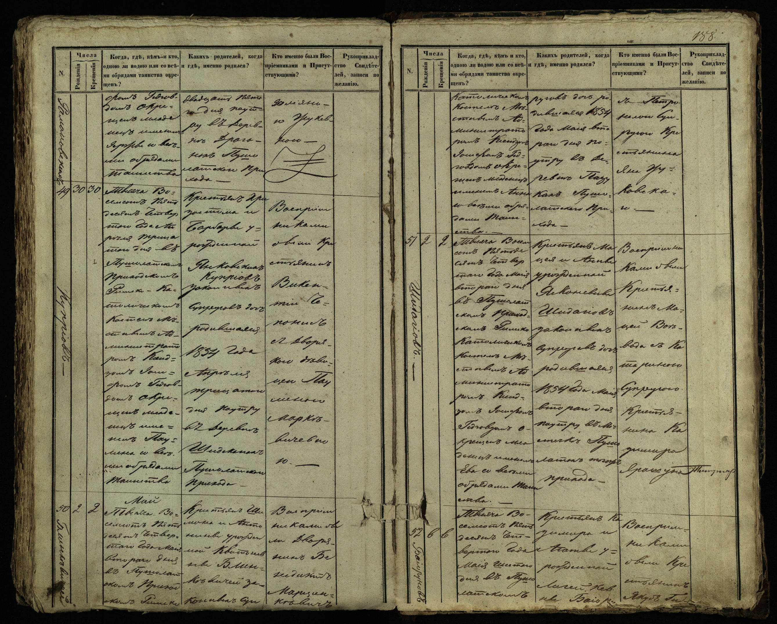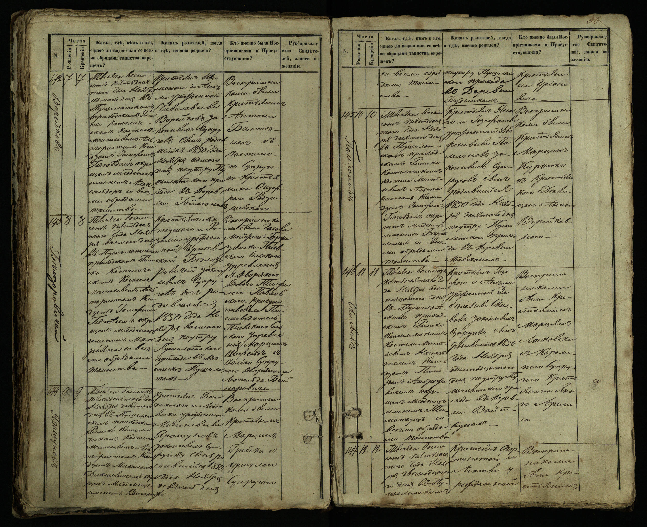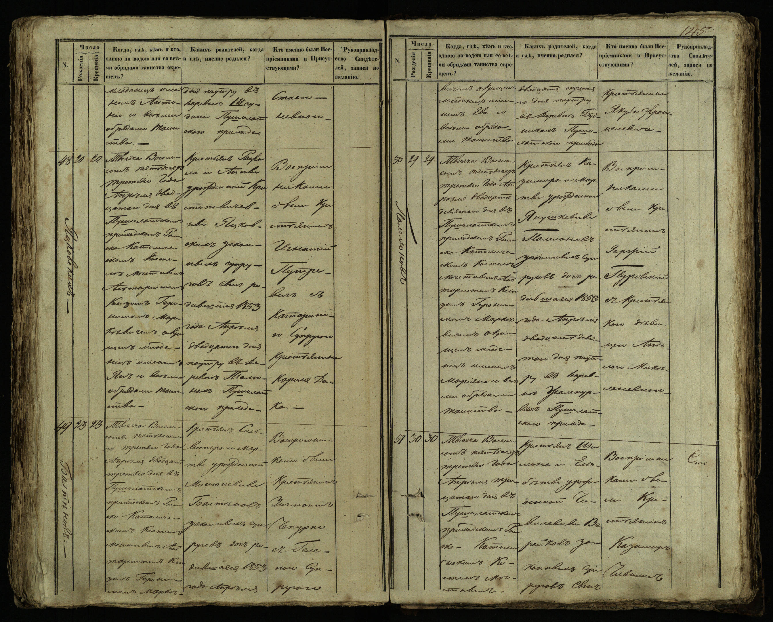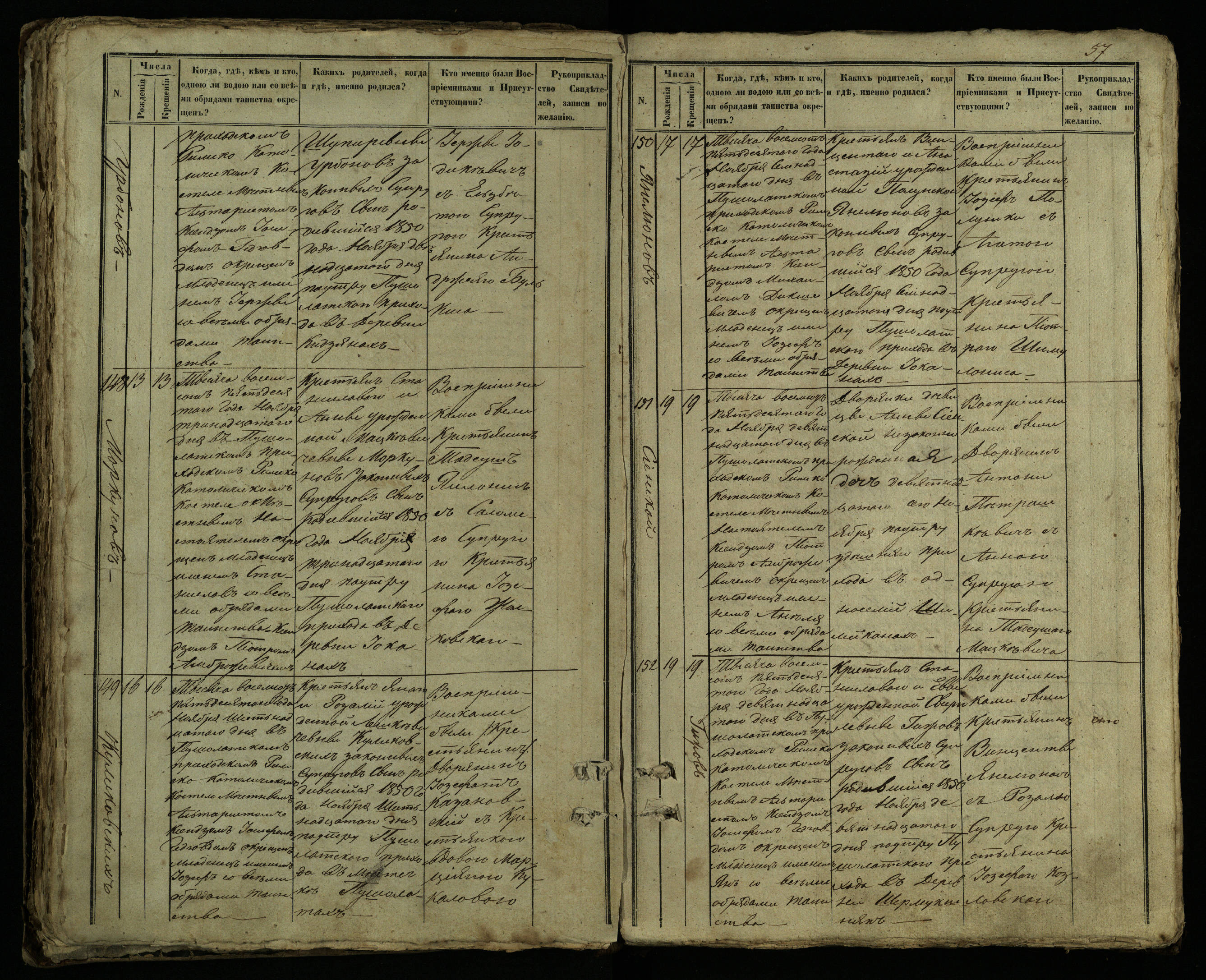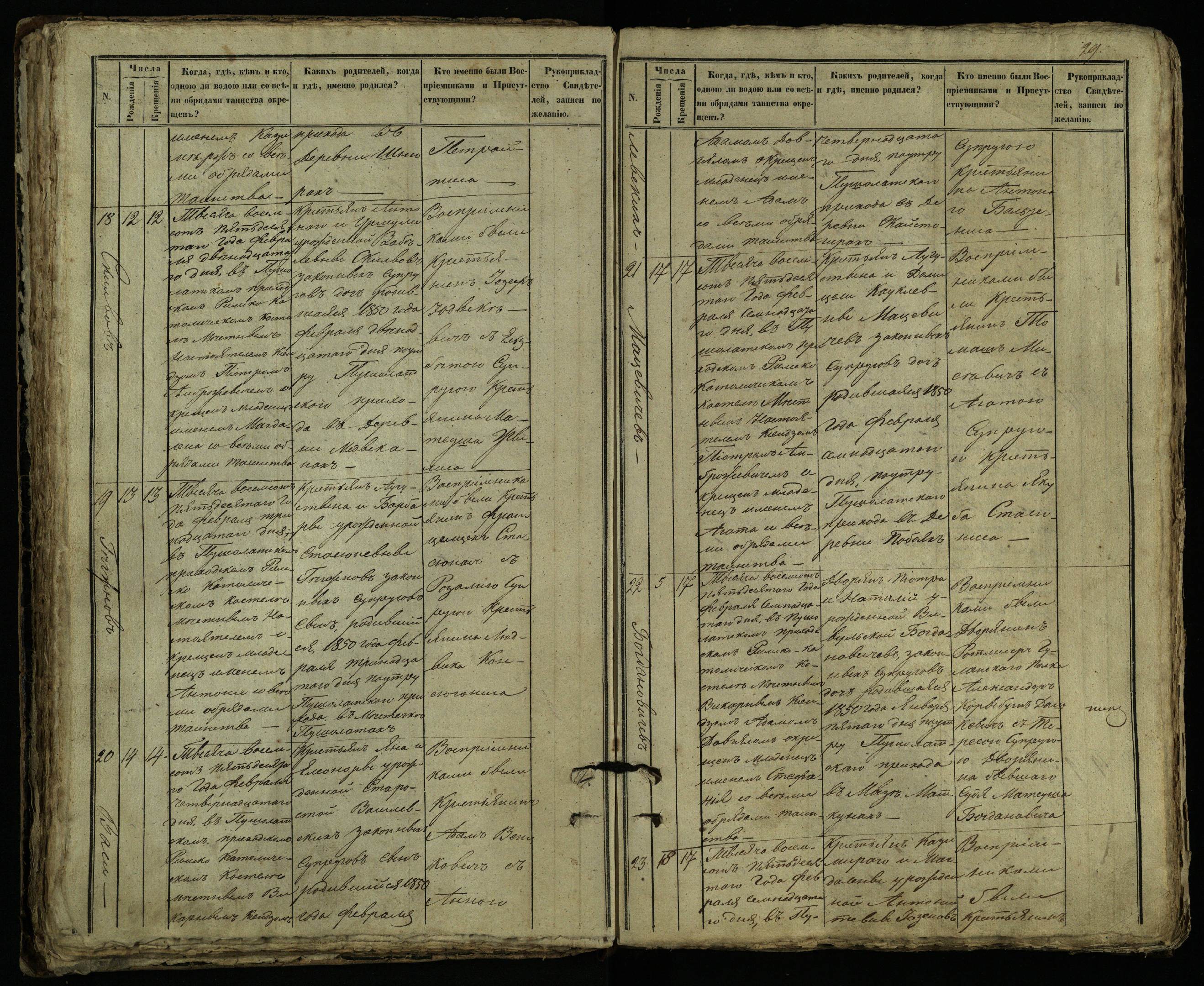 Pušaloto Romos katalikų parapijos bažnyčios 1849–1854 metų krikšto metrikų knyga