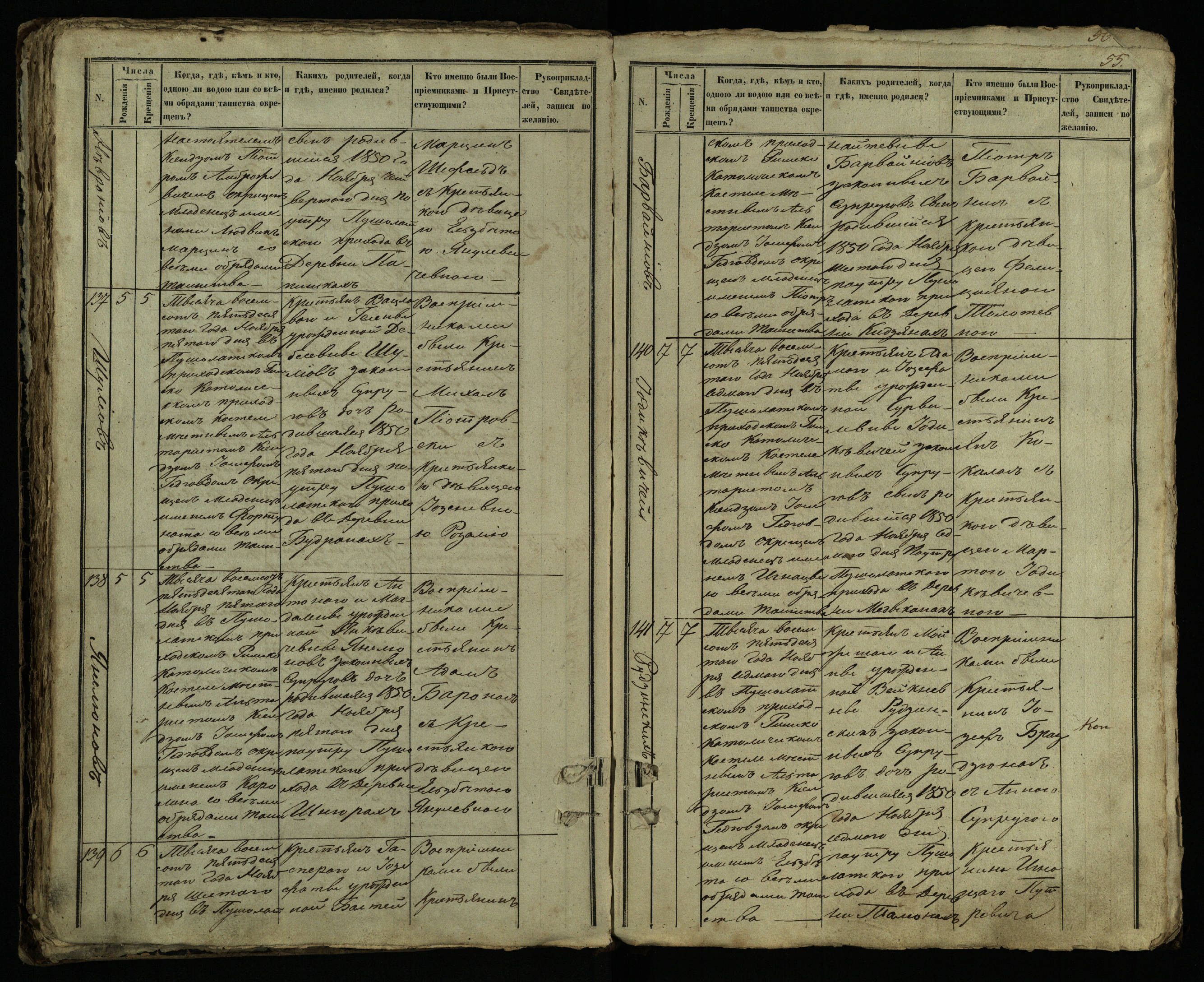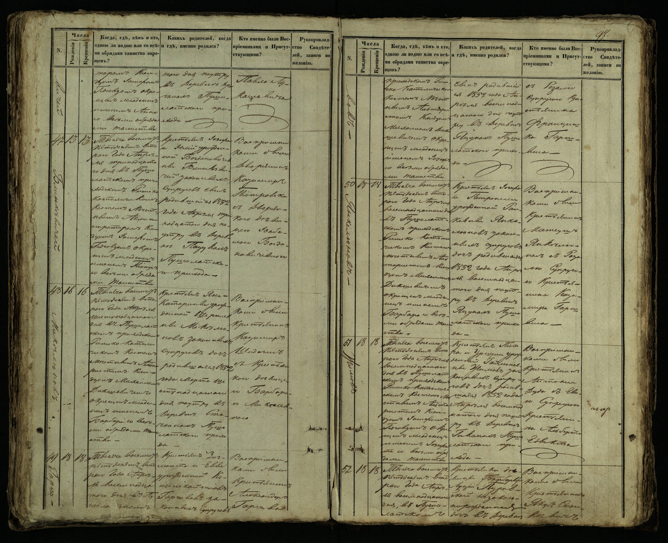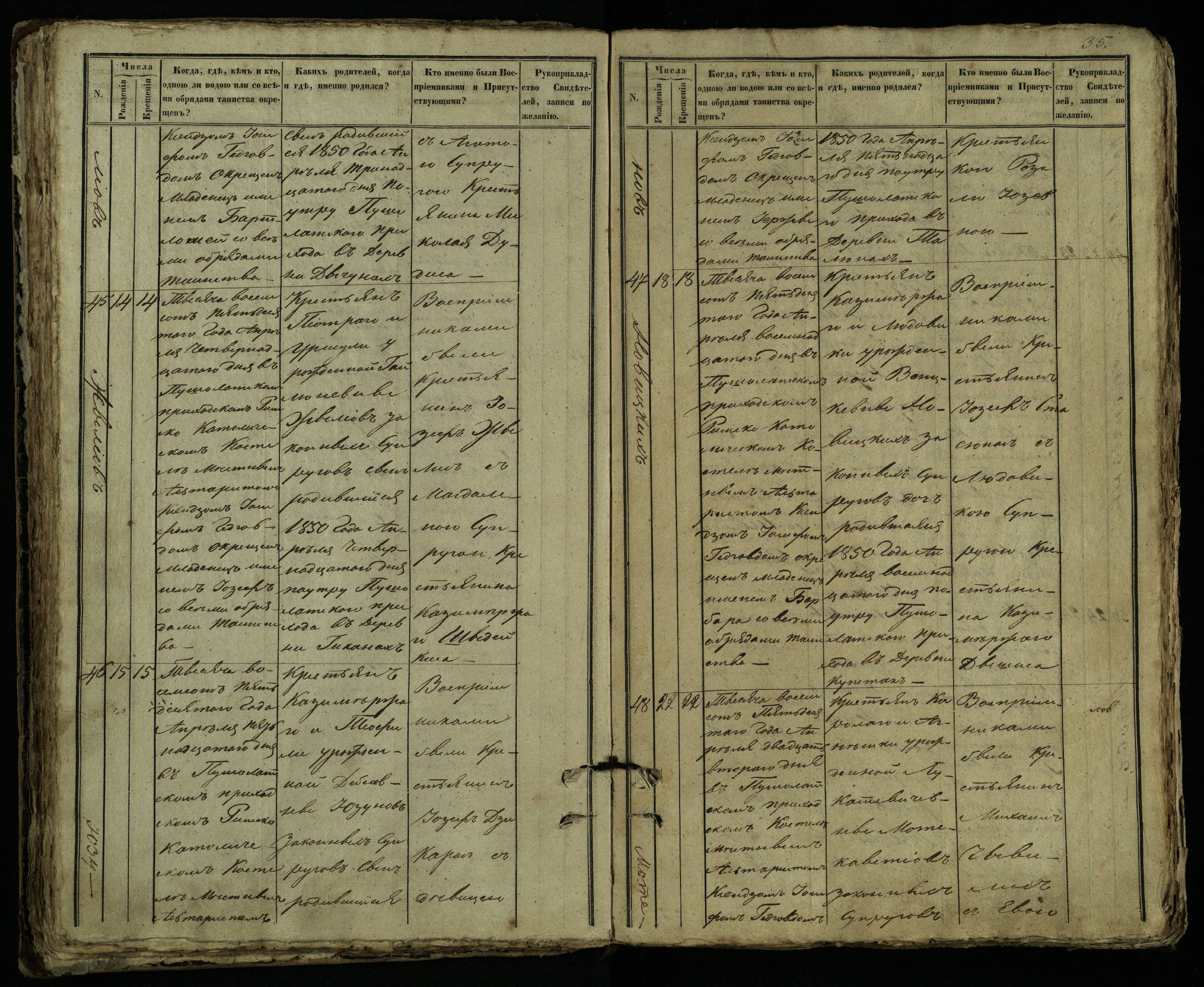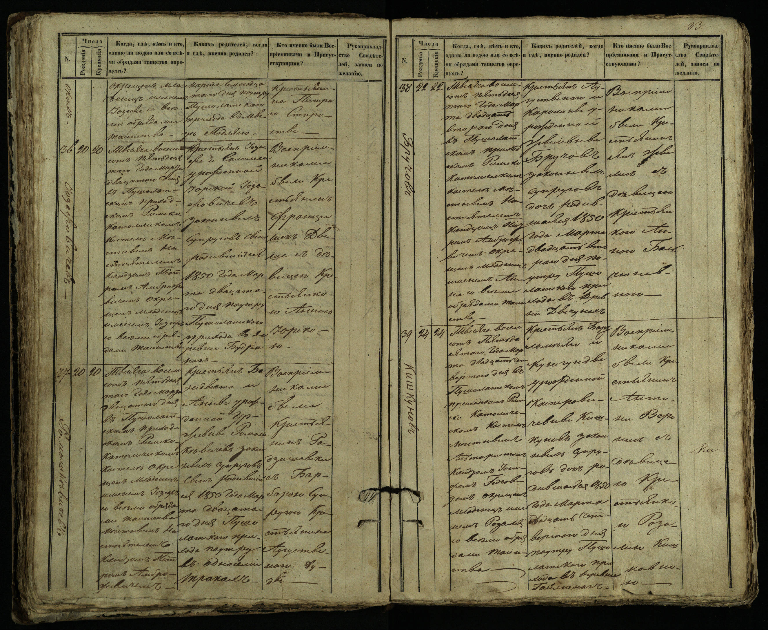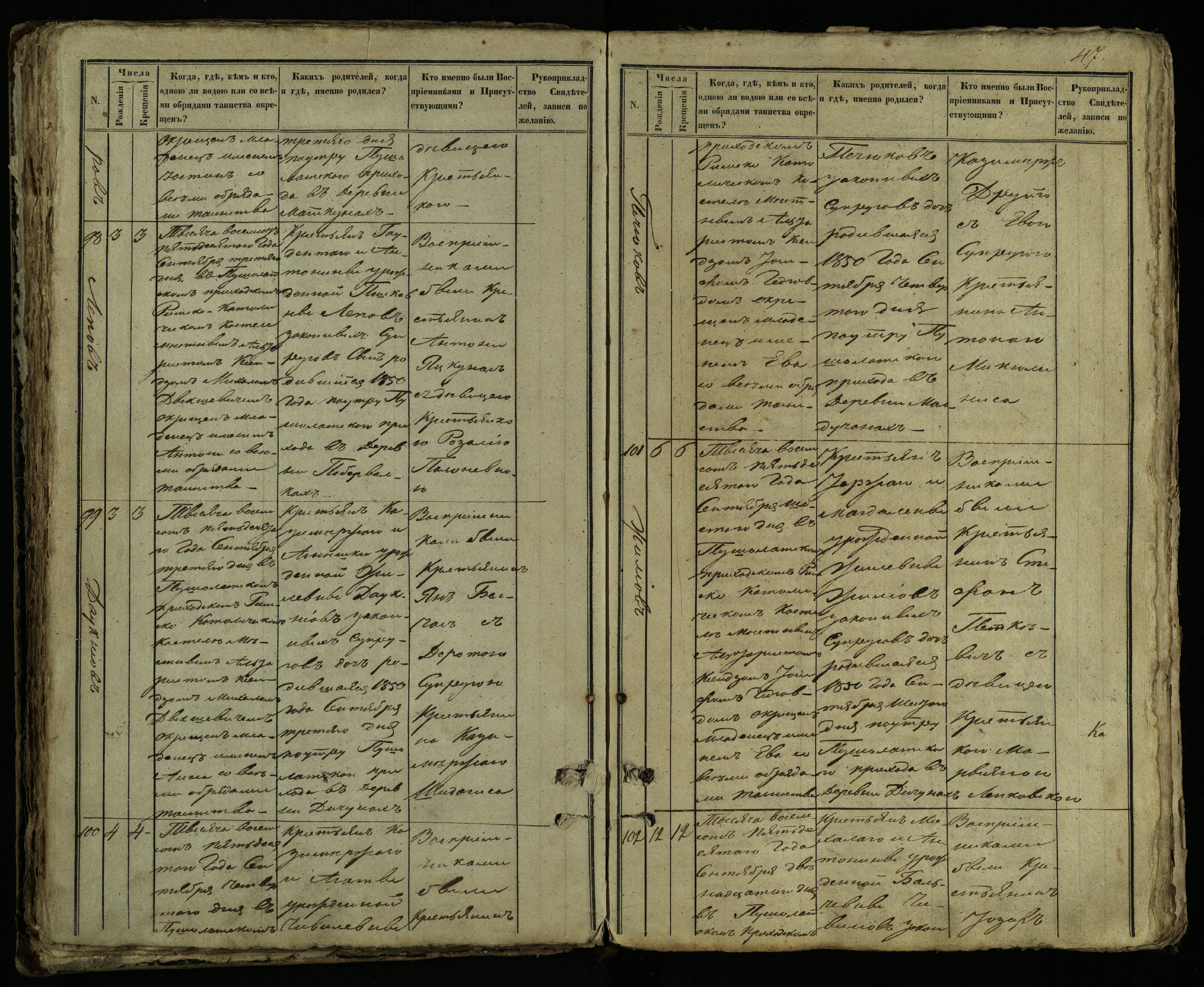 Pušaloto Romos katalikų parapijos bažnyčios 1849–1854 metų krikšto metrikų knyga