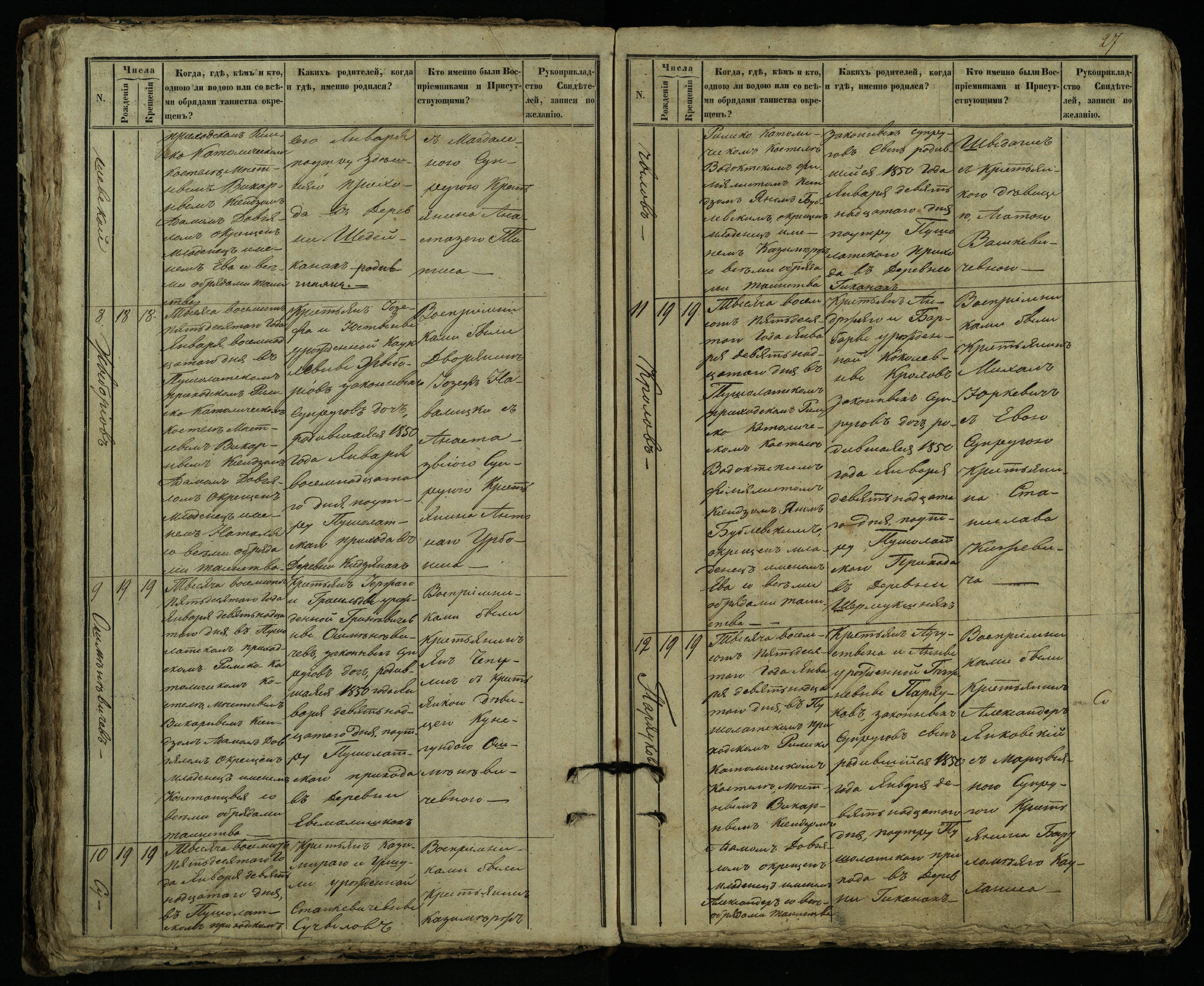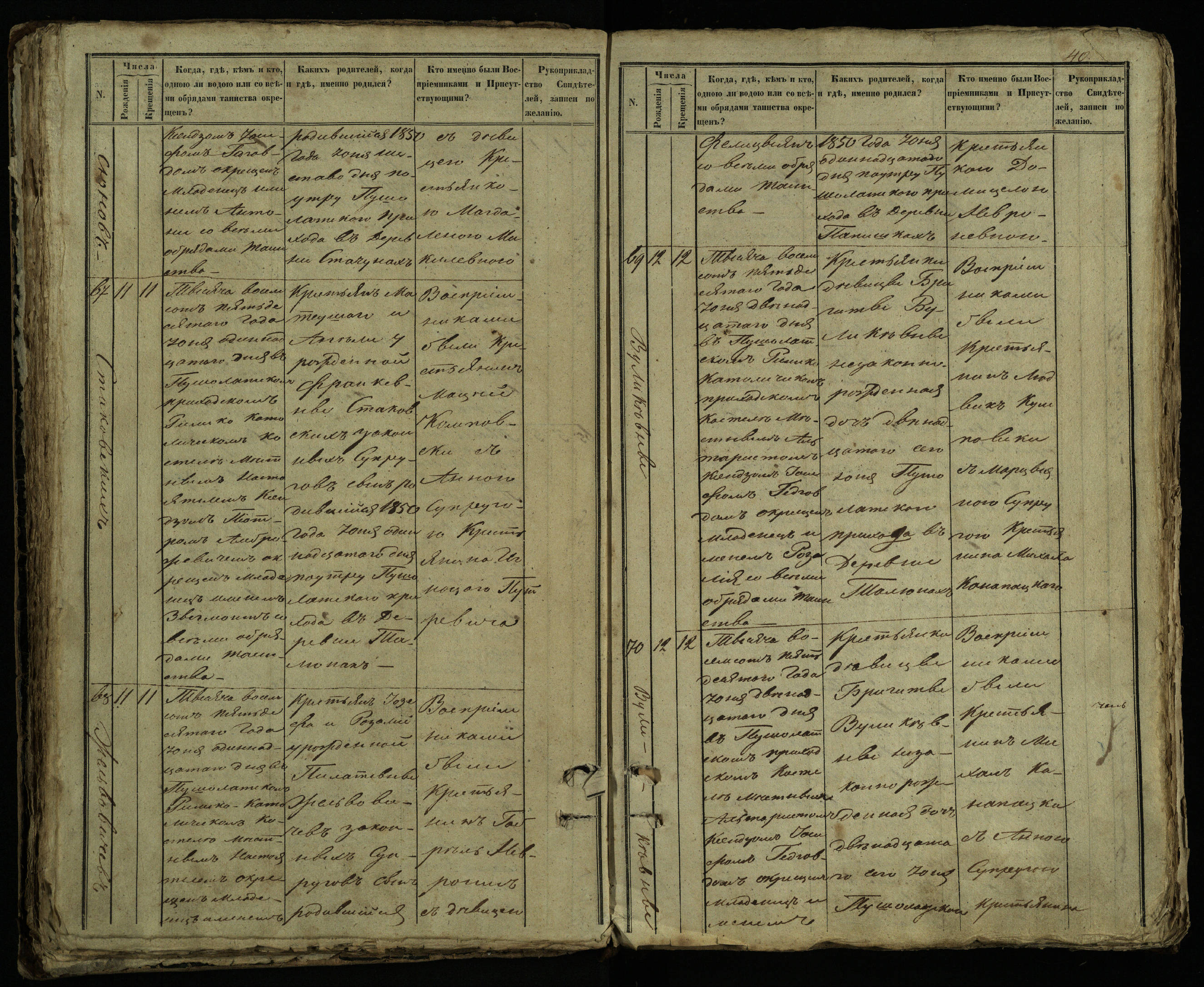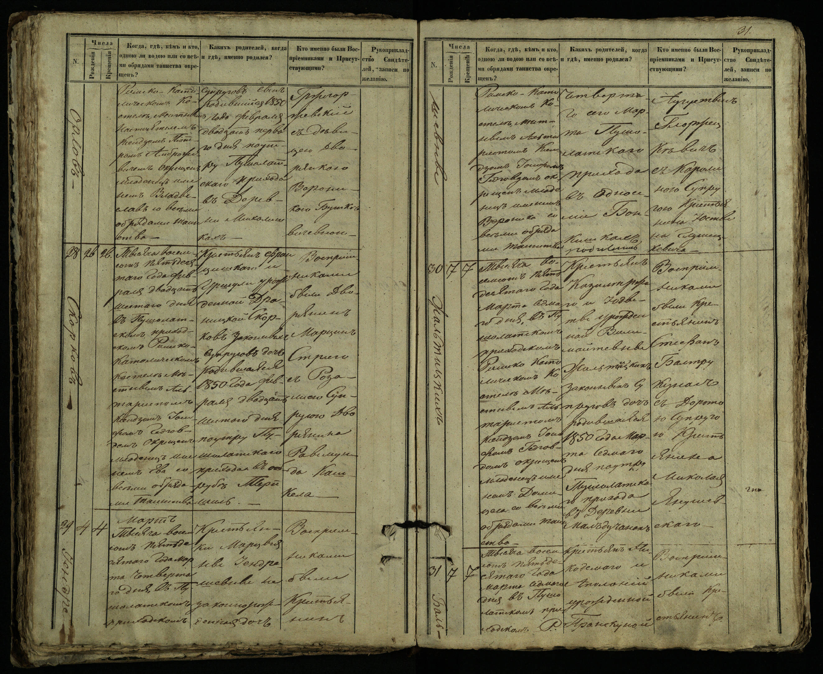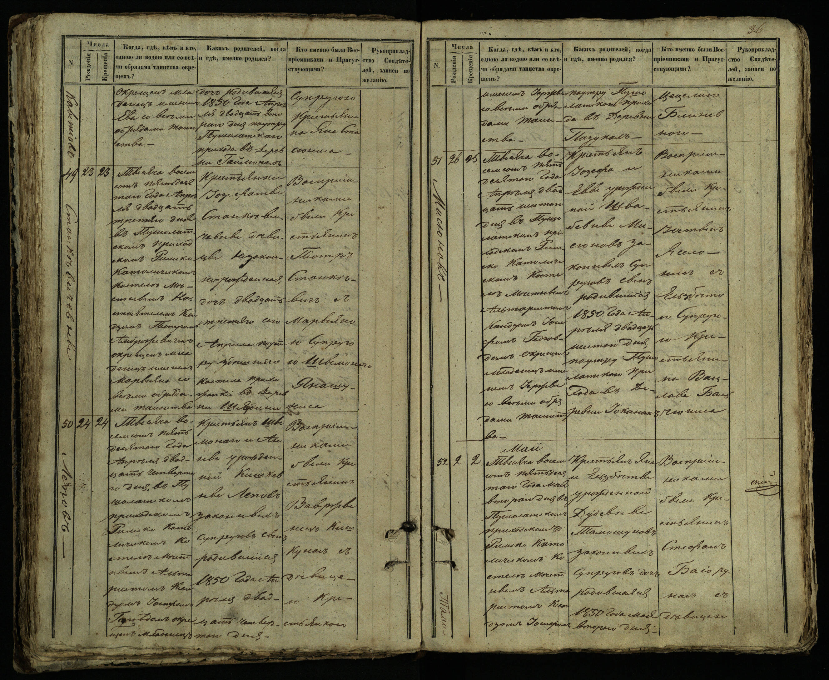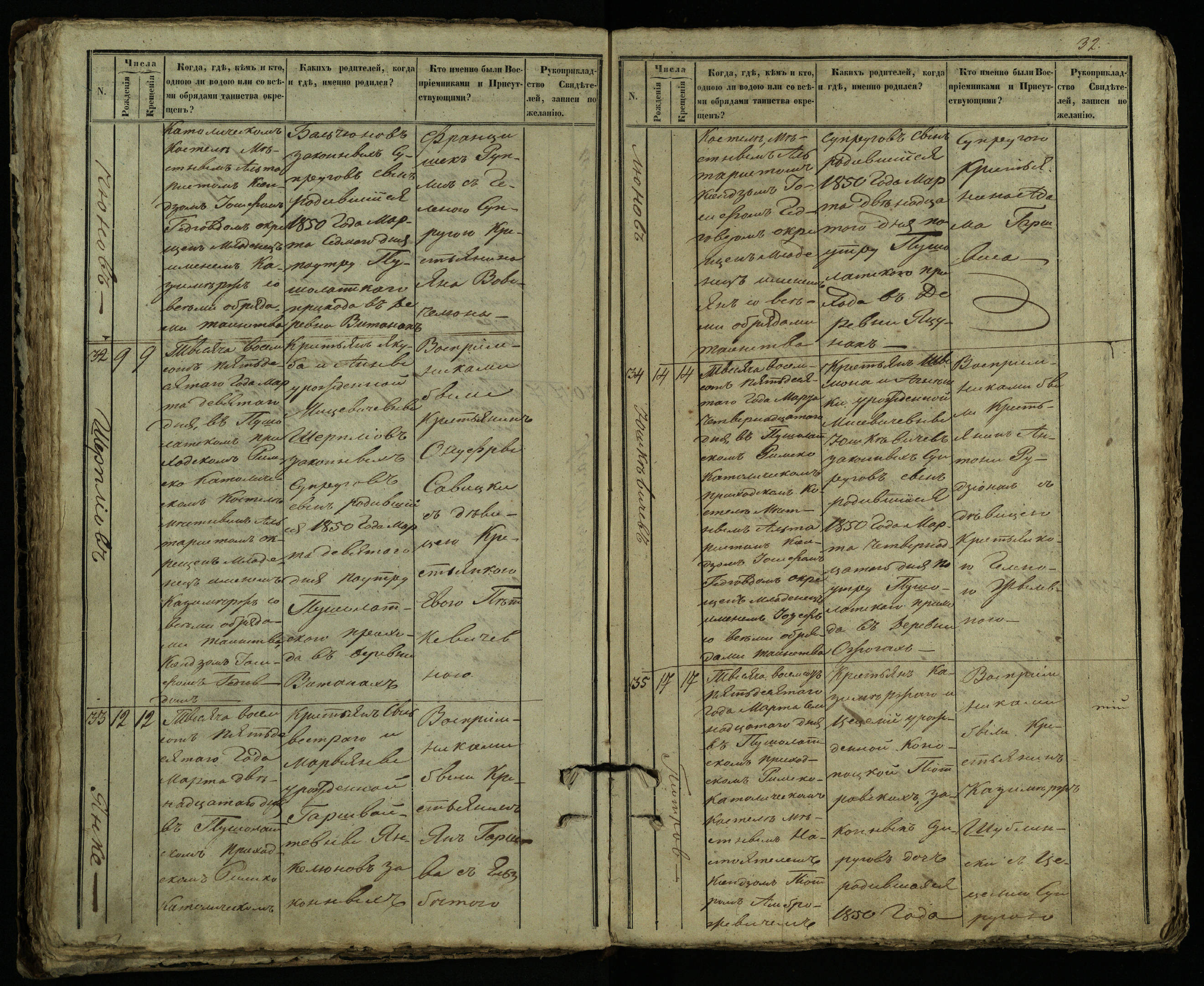 Pušaloto Romos katalikų parapijos bažnyčios 1849–1854 metų krikšto metrikų knyga
