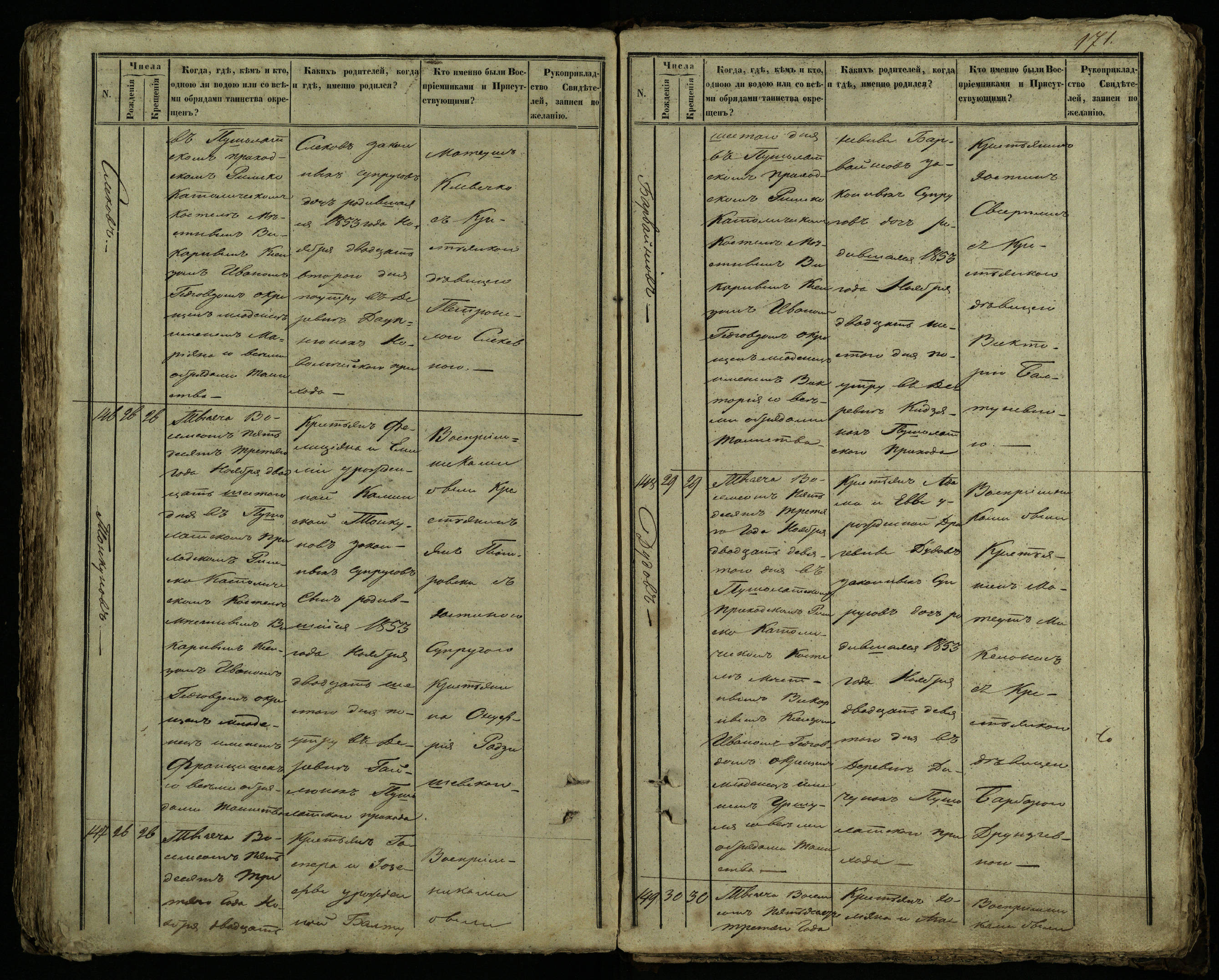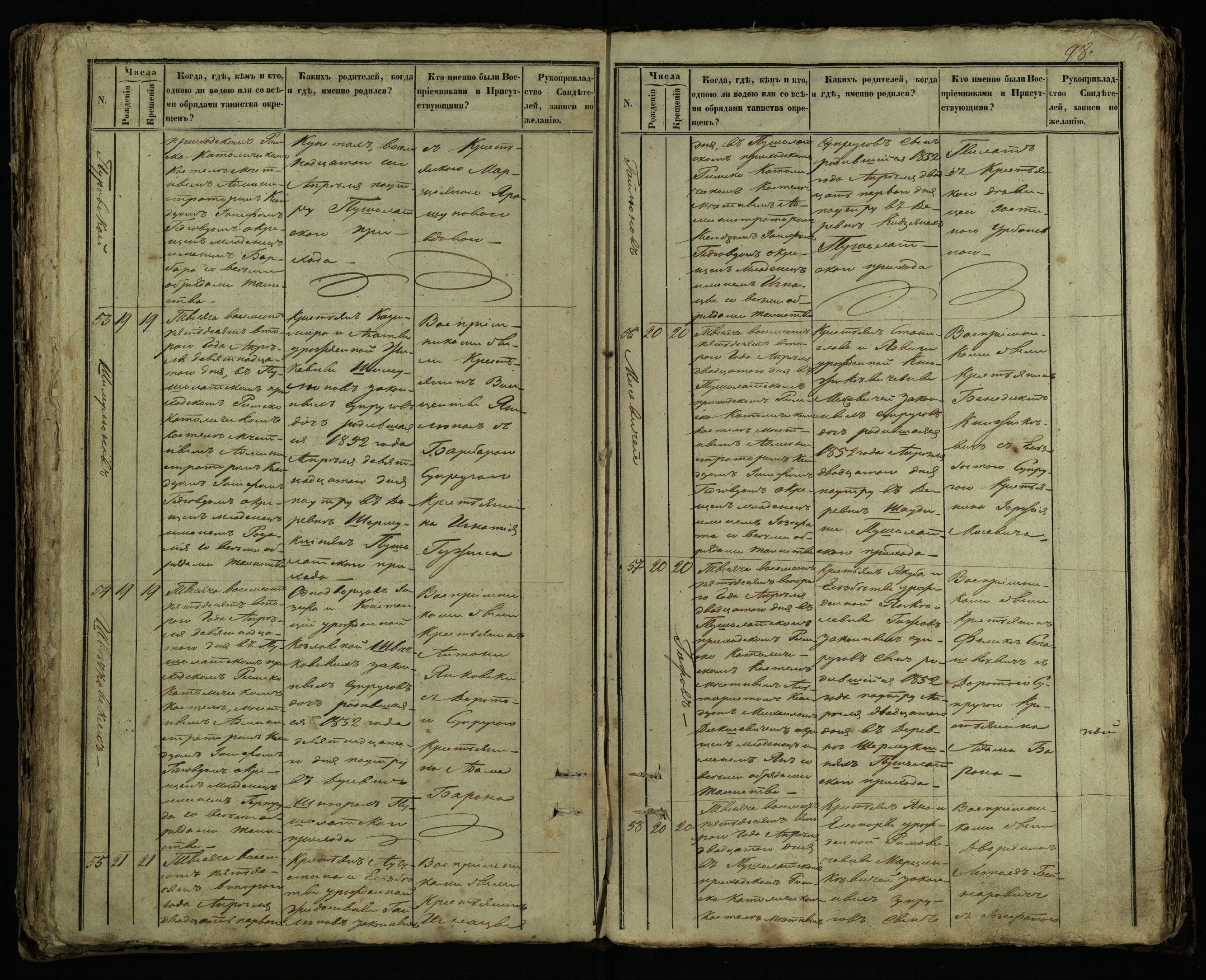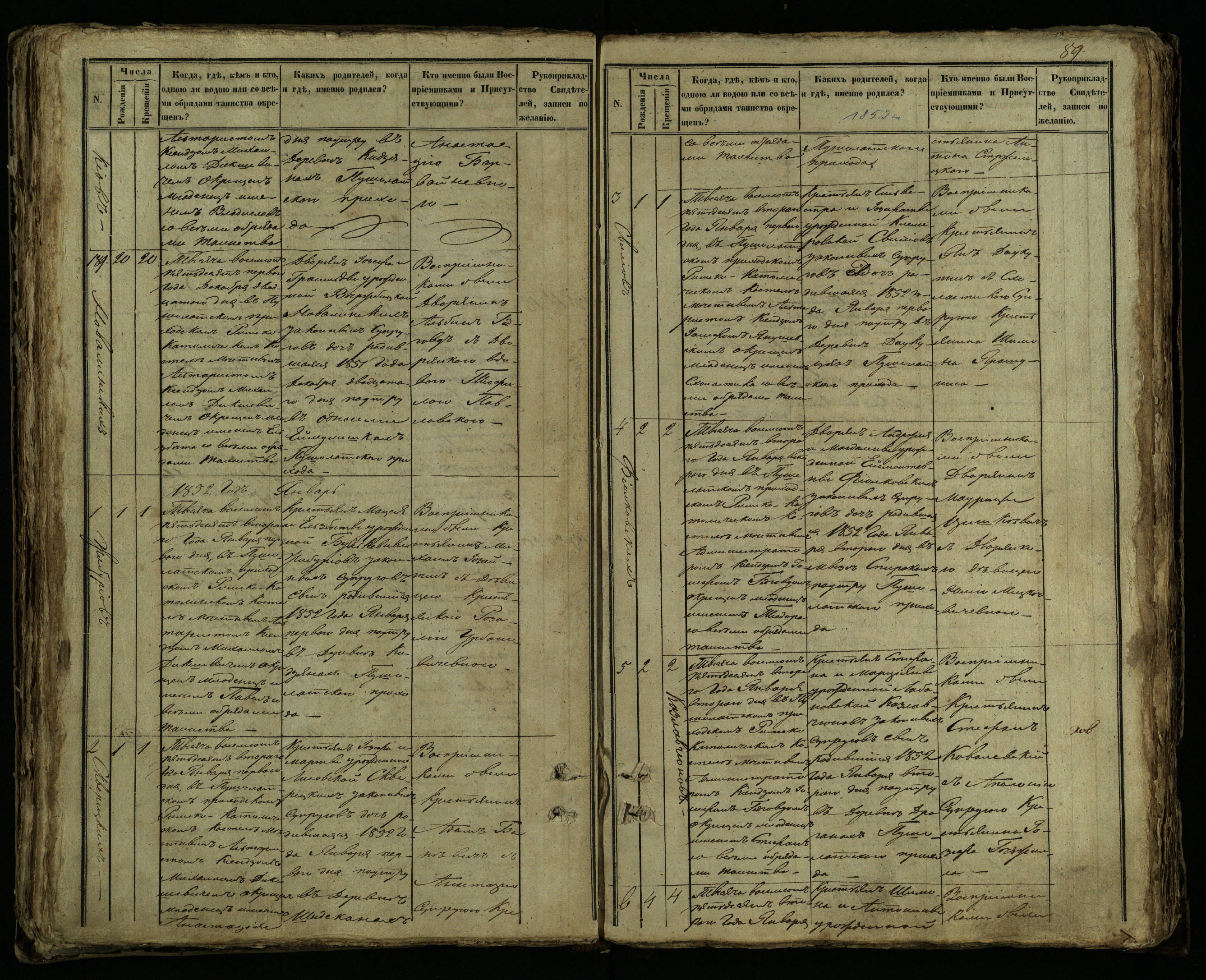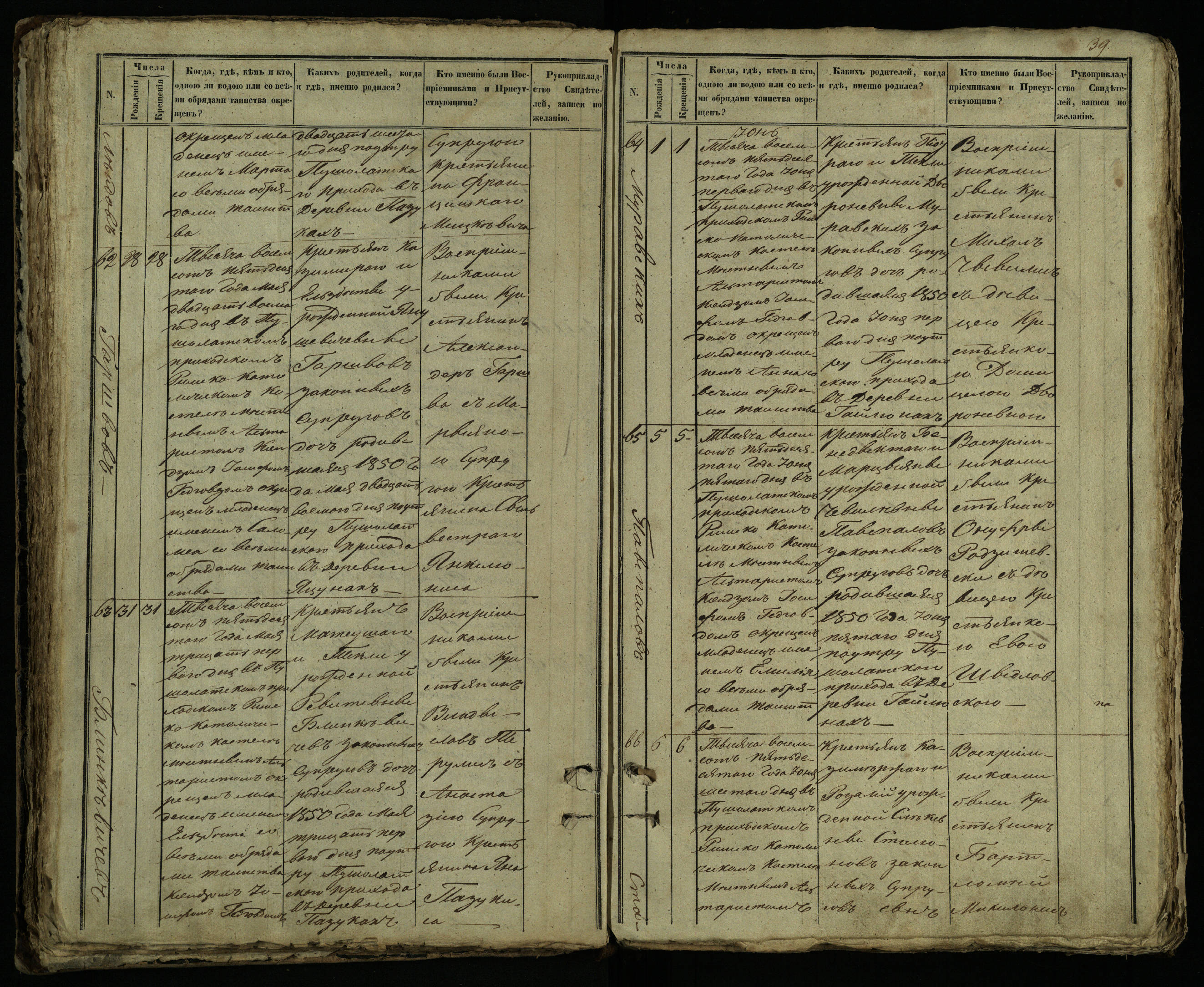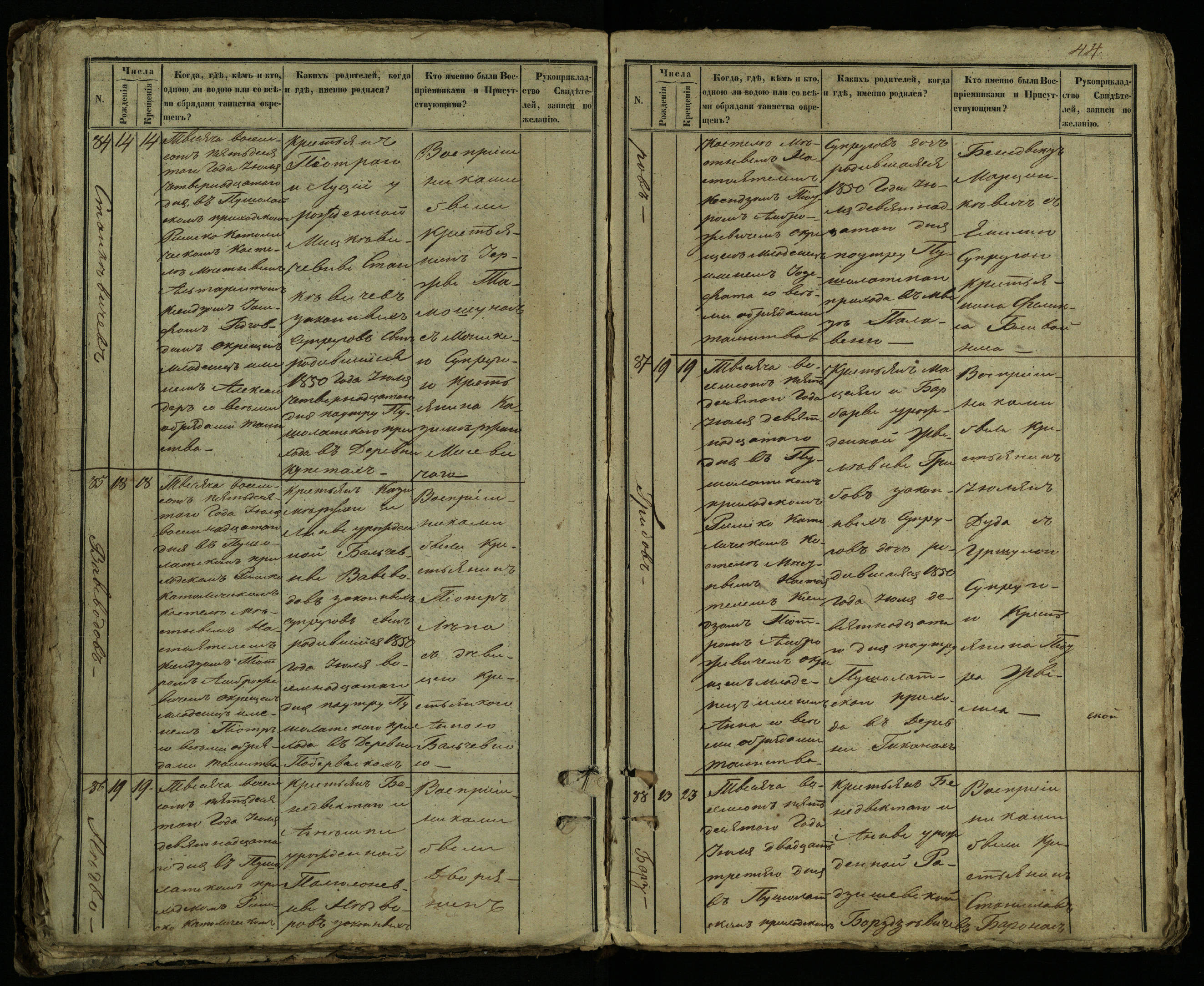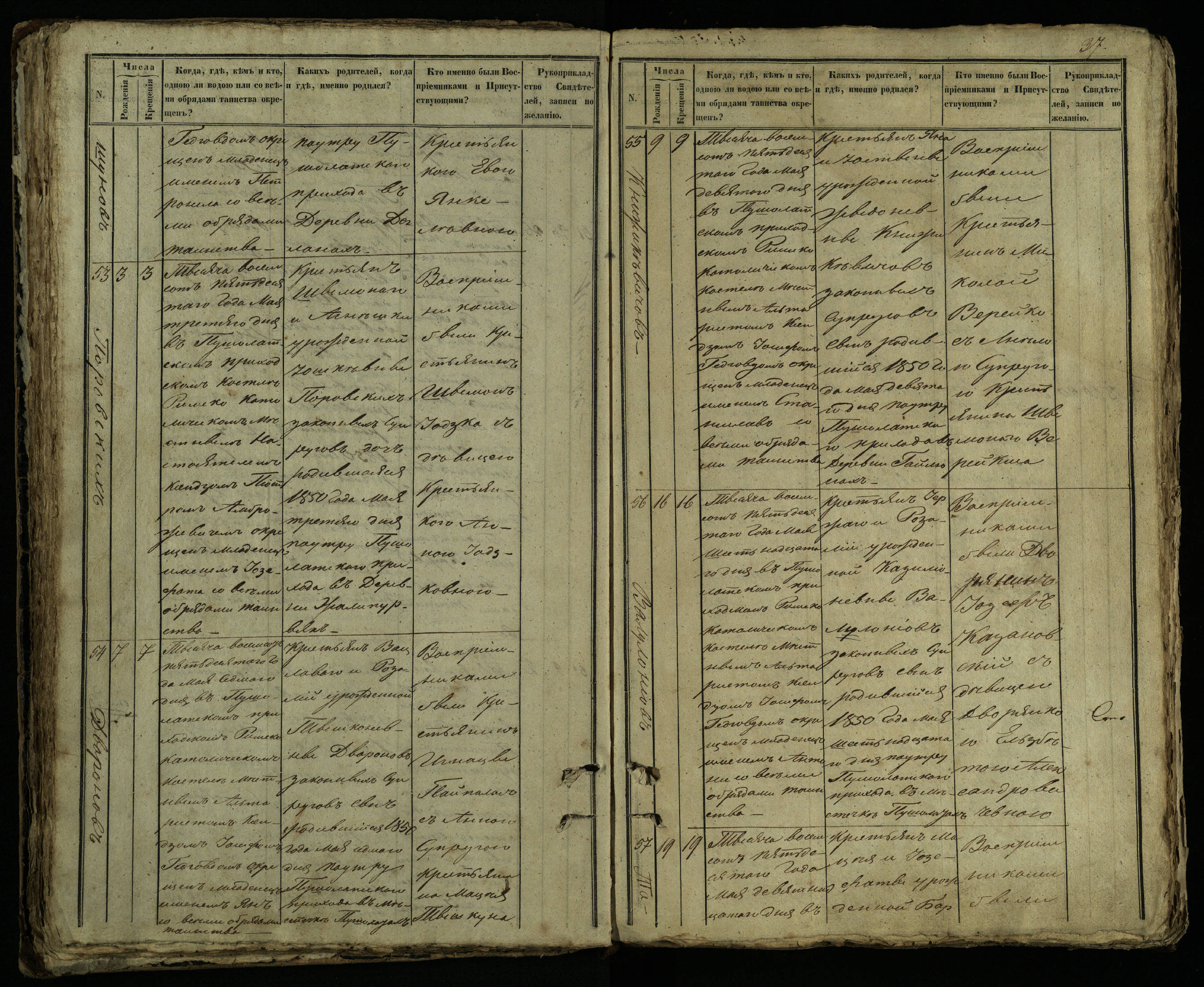 Pušaloto Romos katalikų parapijos bažnyčios 1849–1854 metų krikšto metrikų knyga