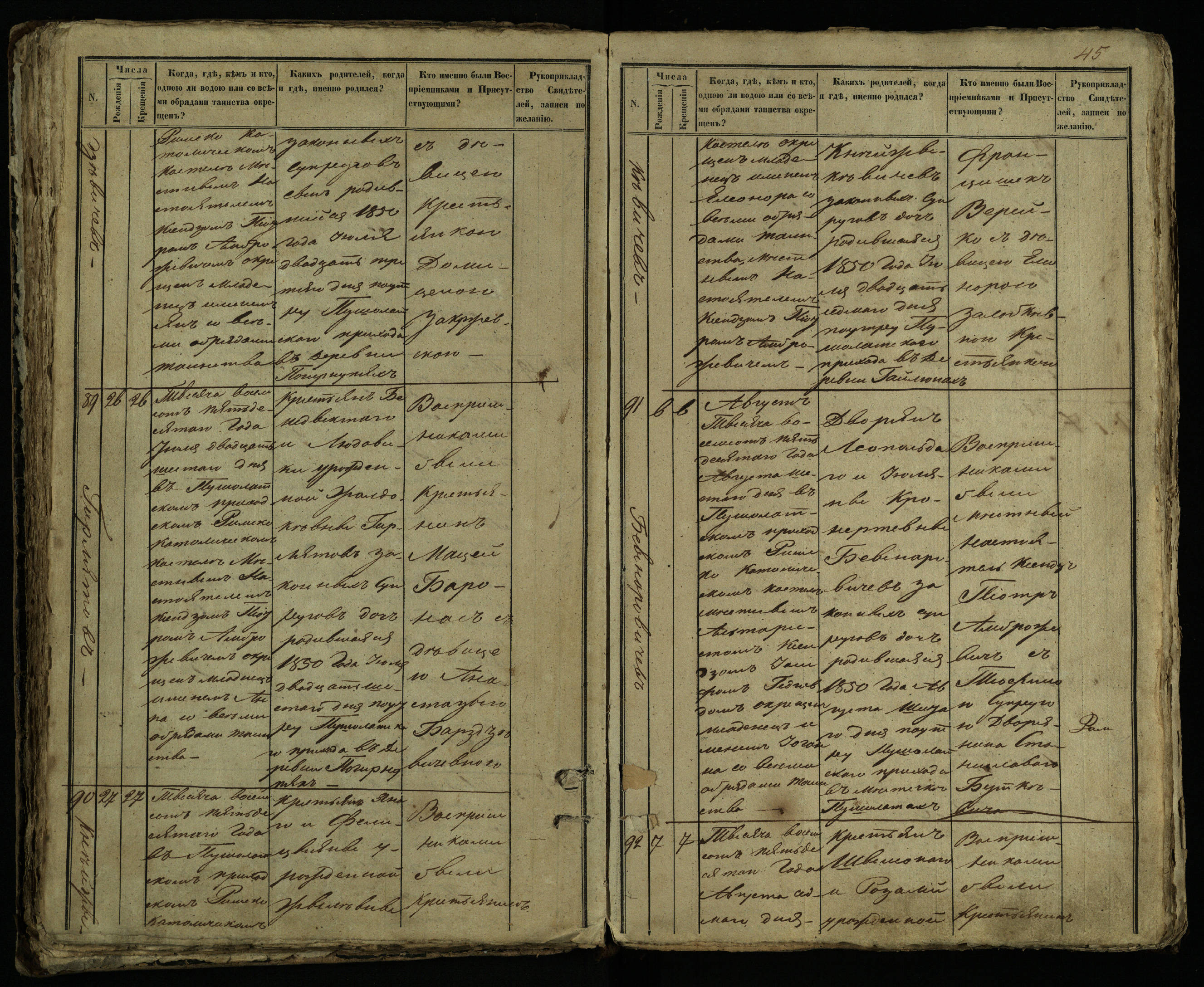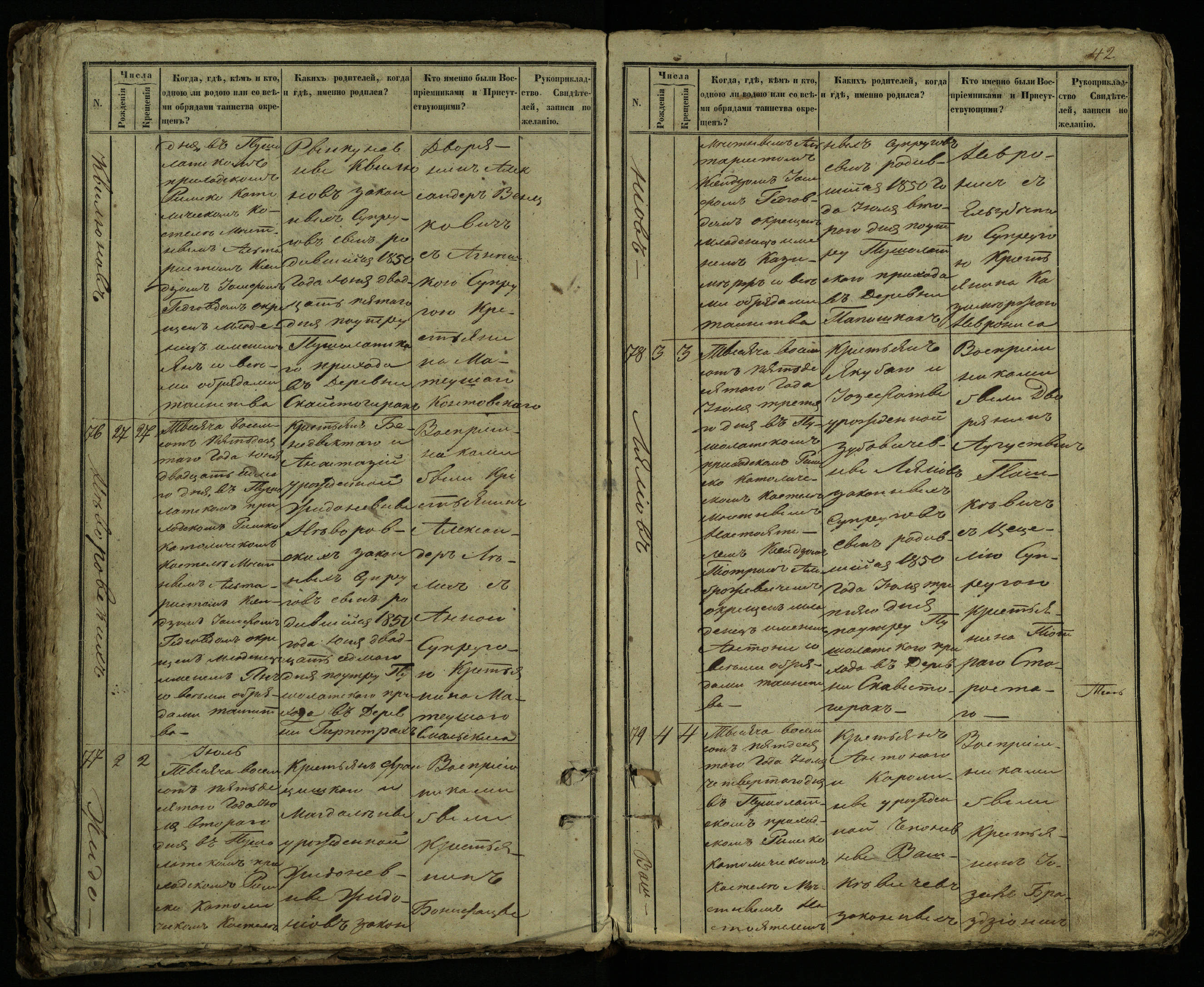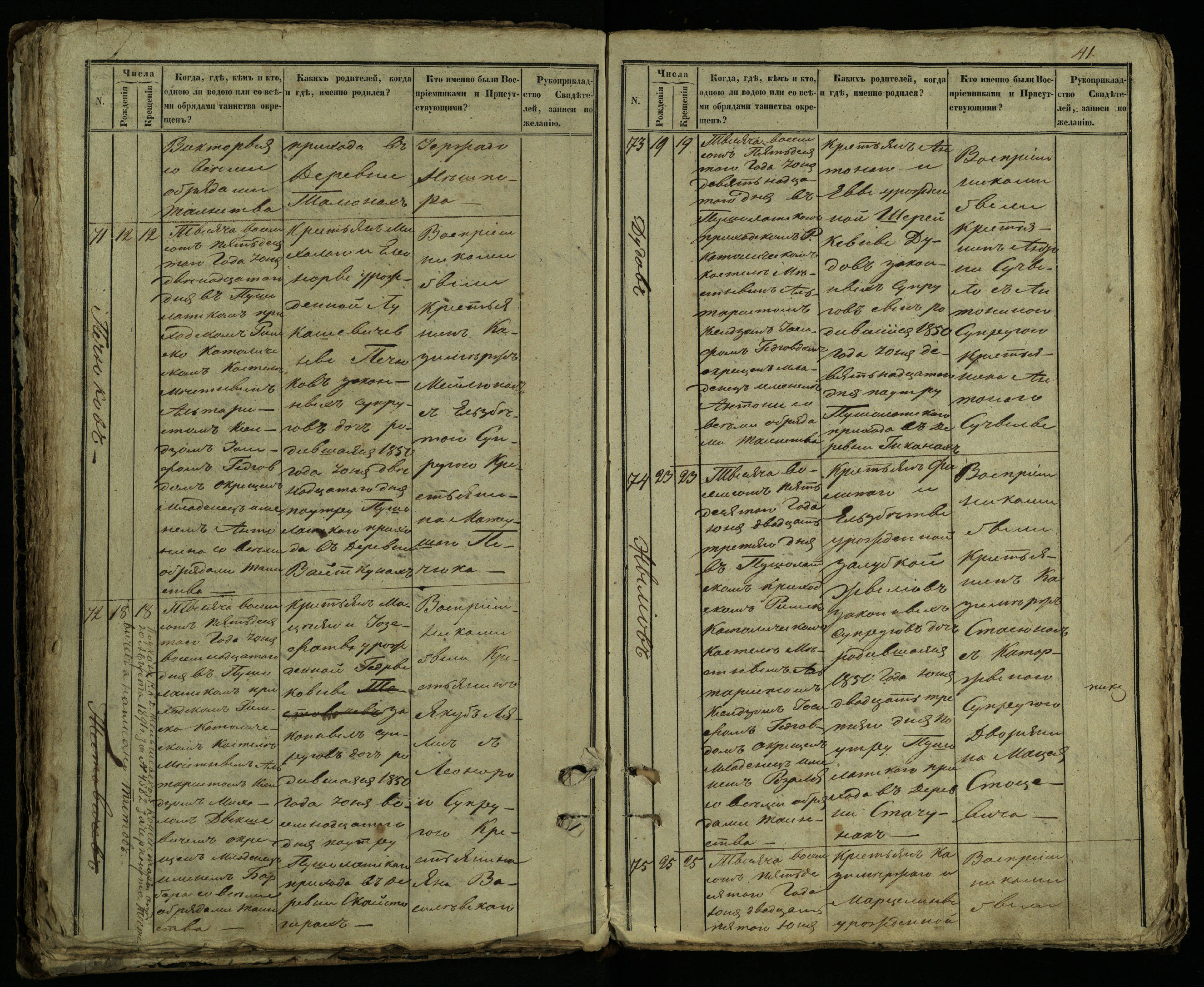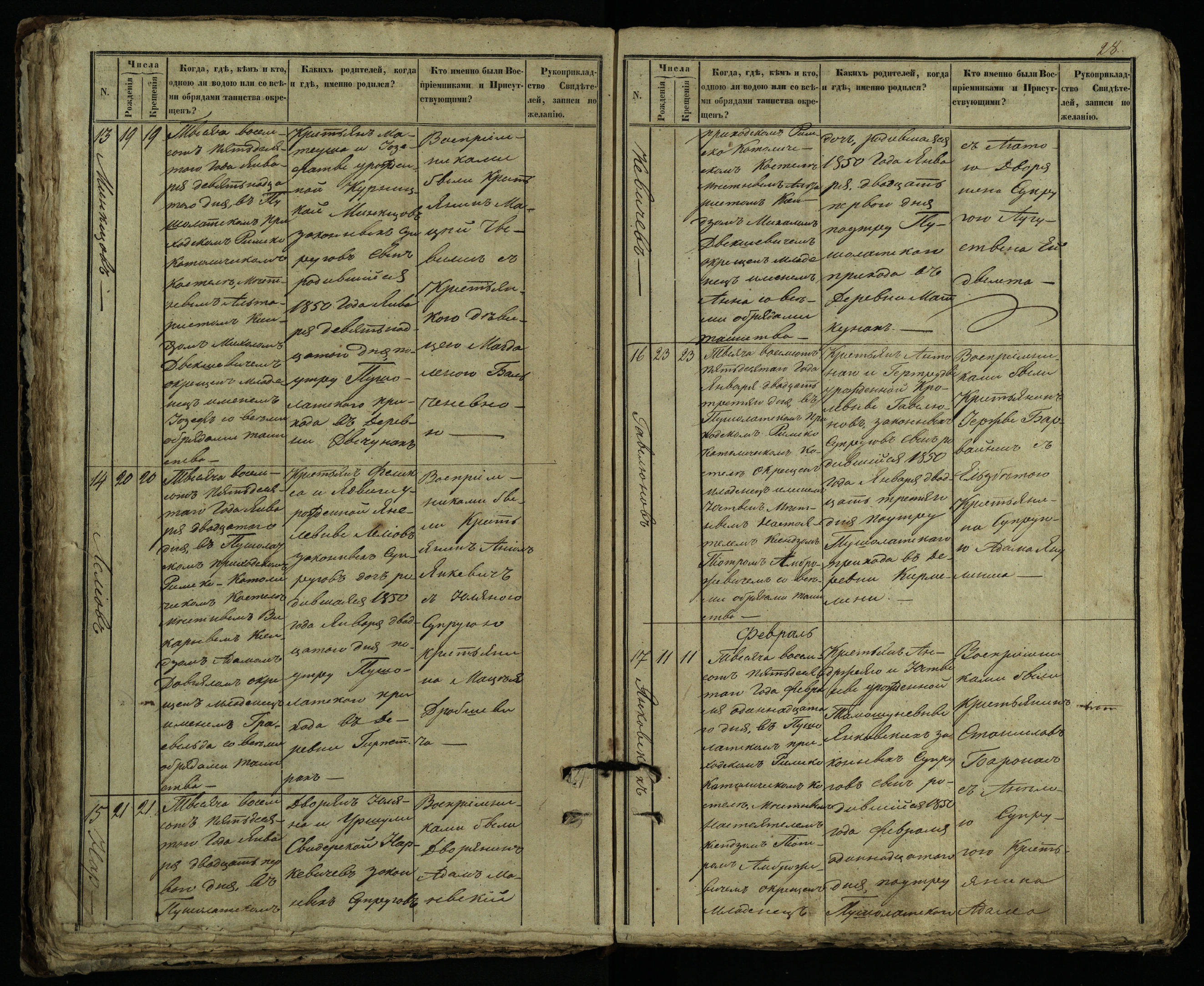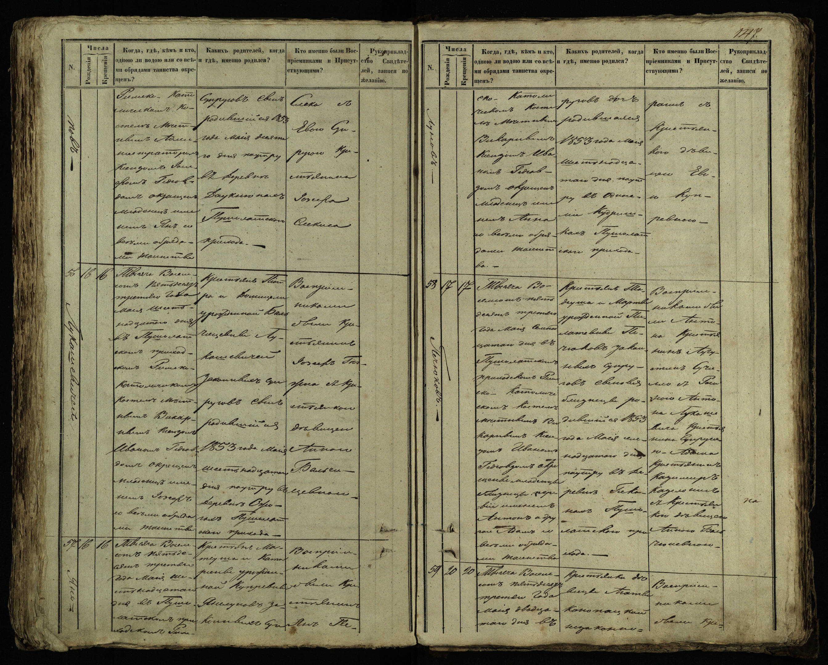 Pušaloto Romos katalikų parapijos bažnyčios 1849–1854 metų krikšto metrikų knyga
