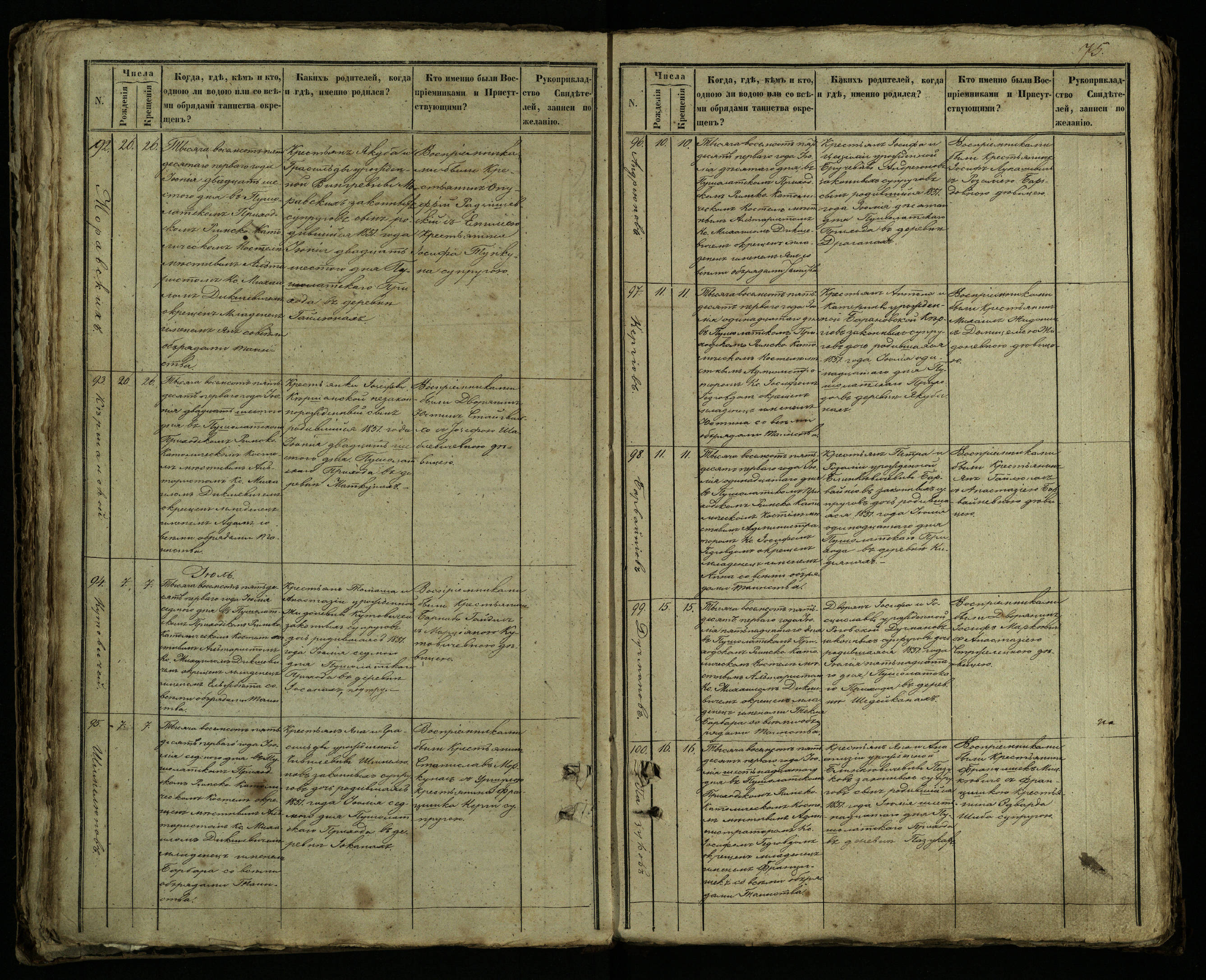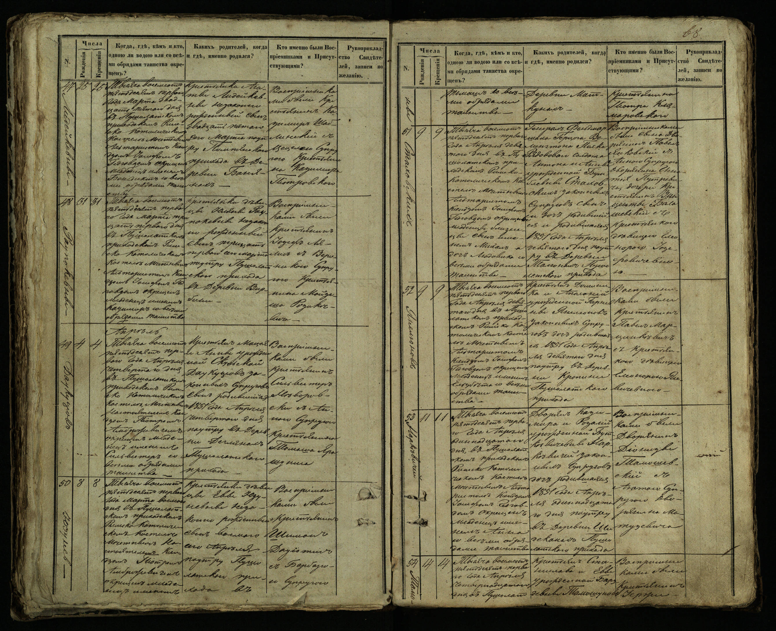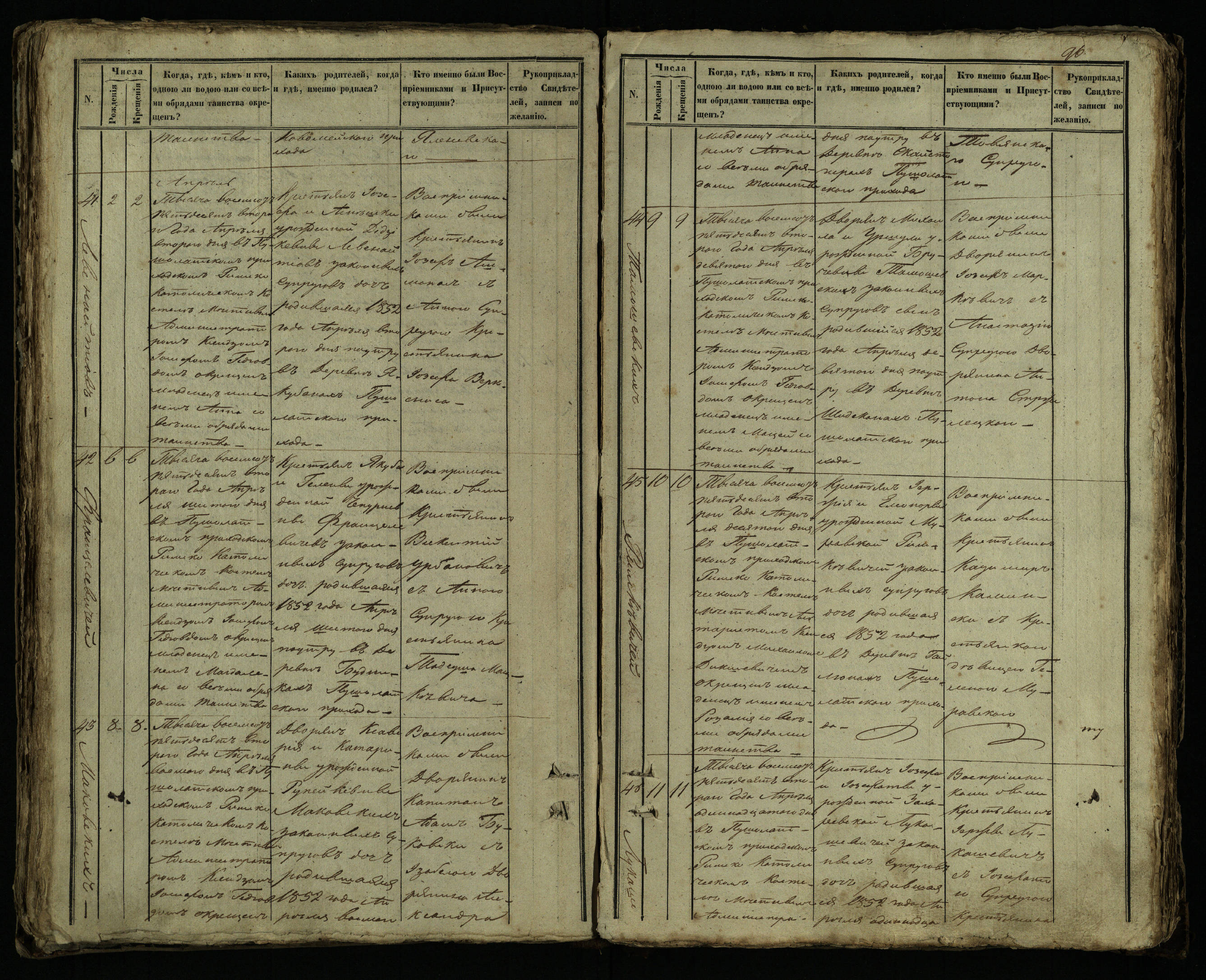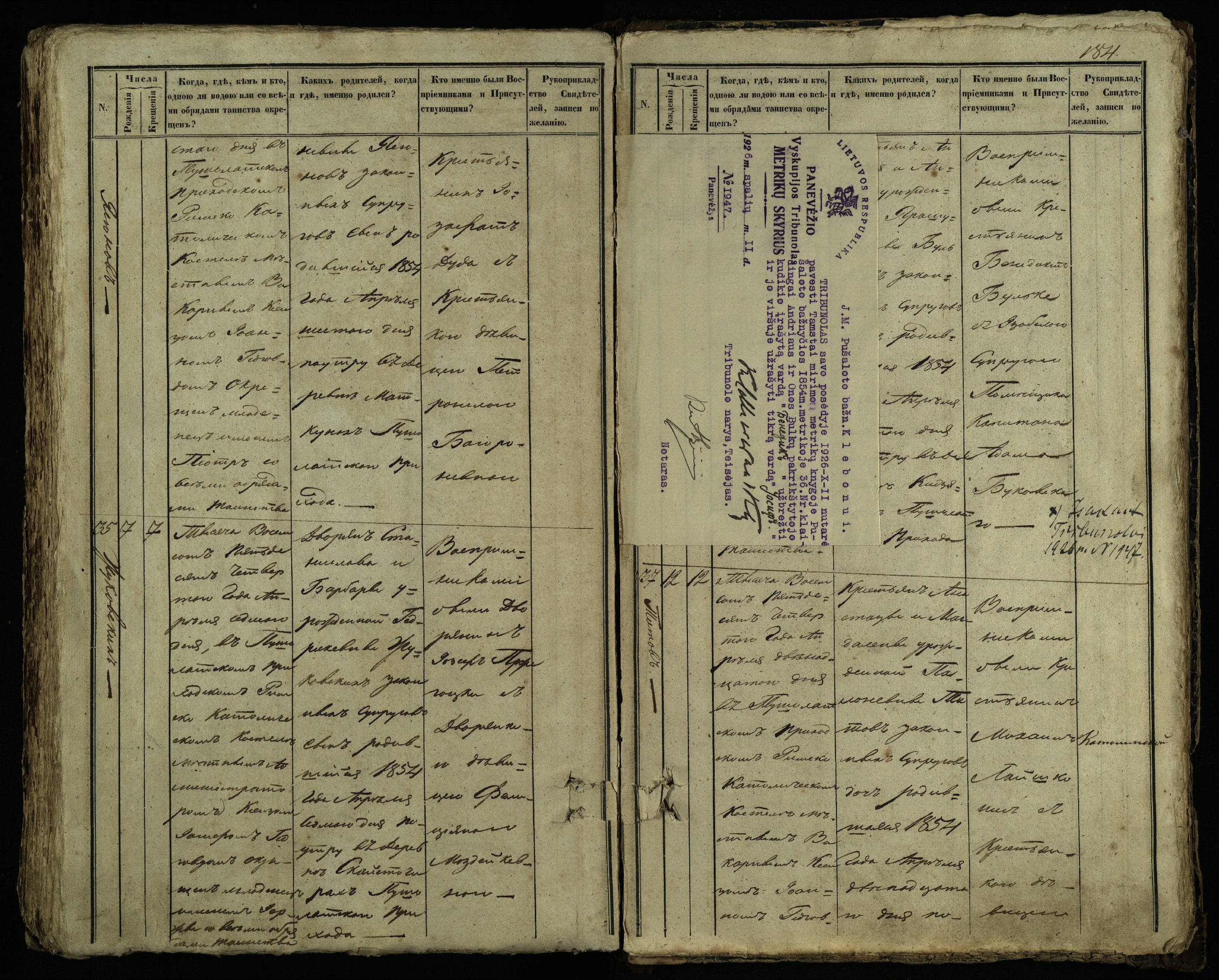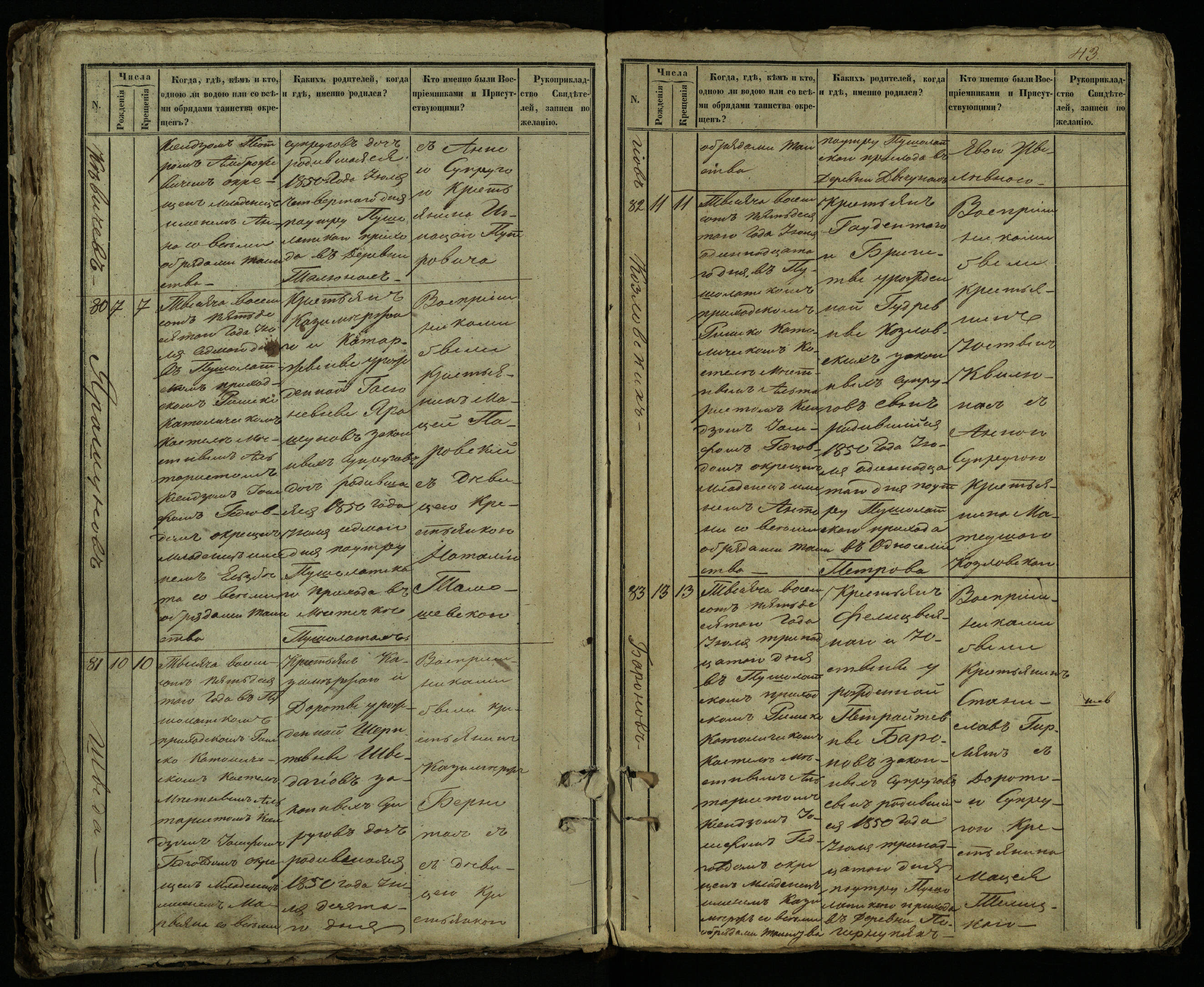Pušaloto Romos katalikų parapijos bažnyčios 1849–1854 metų krikšto metrikų knyga