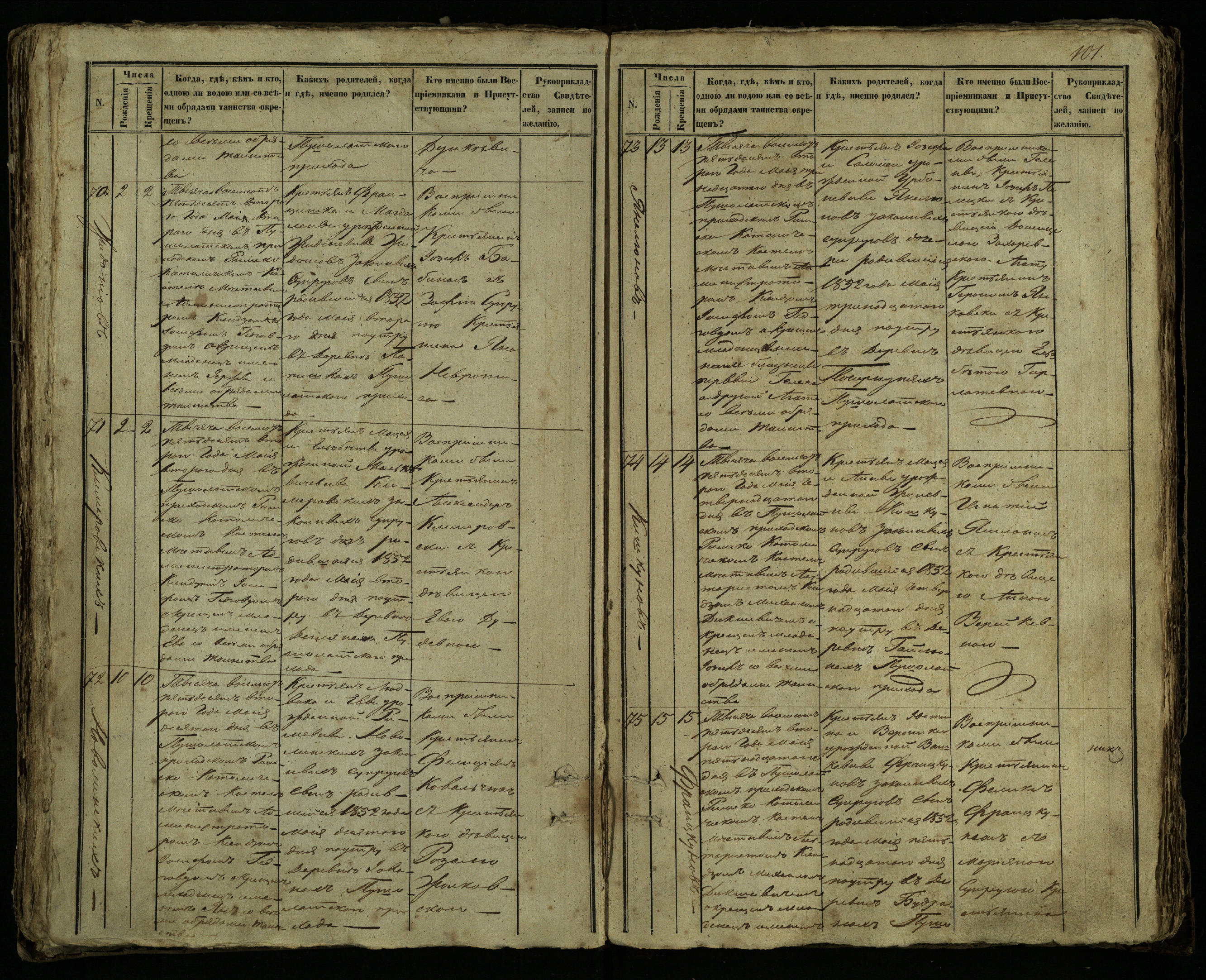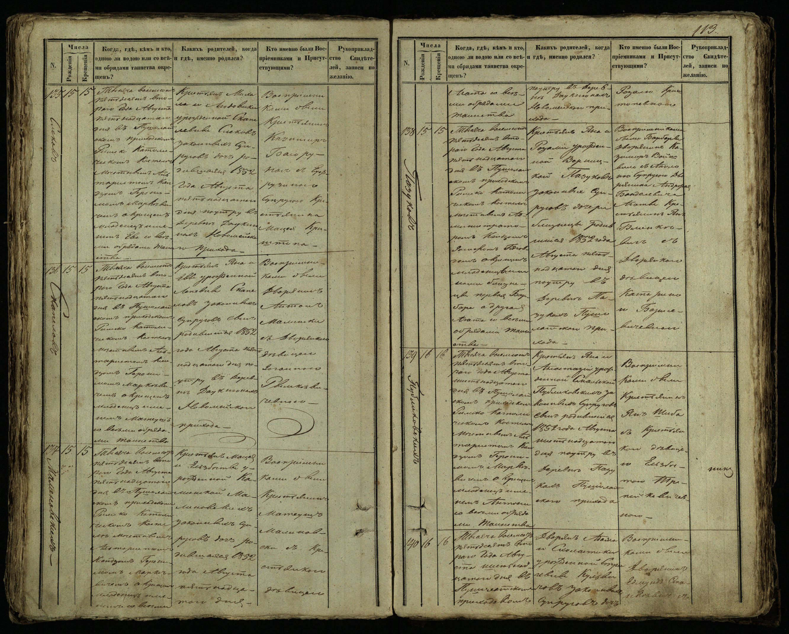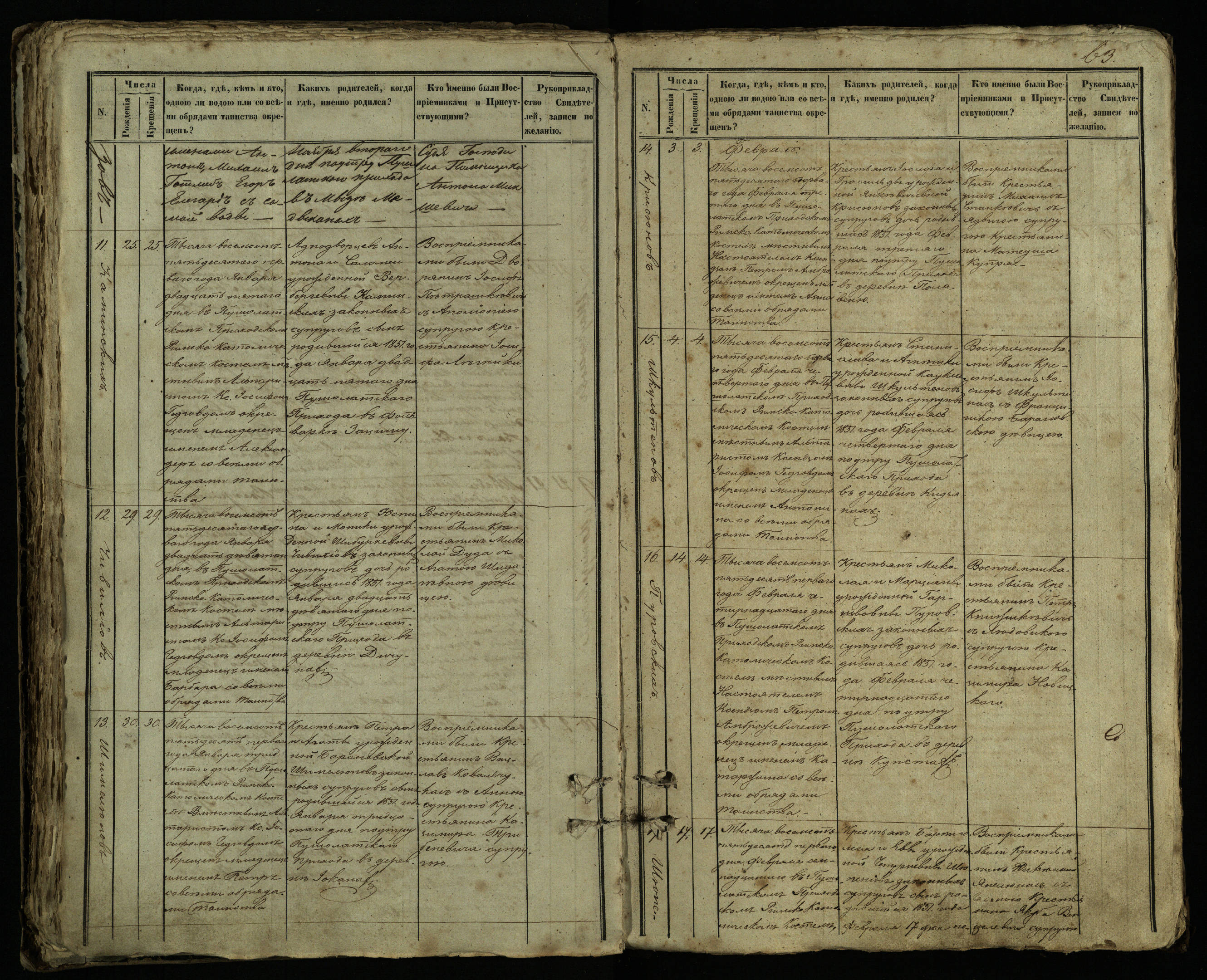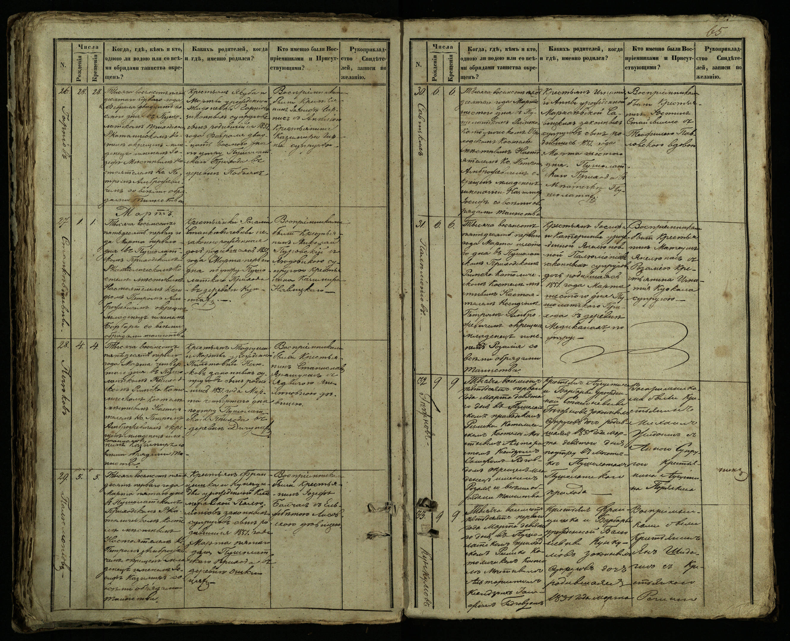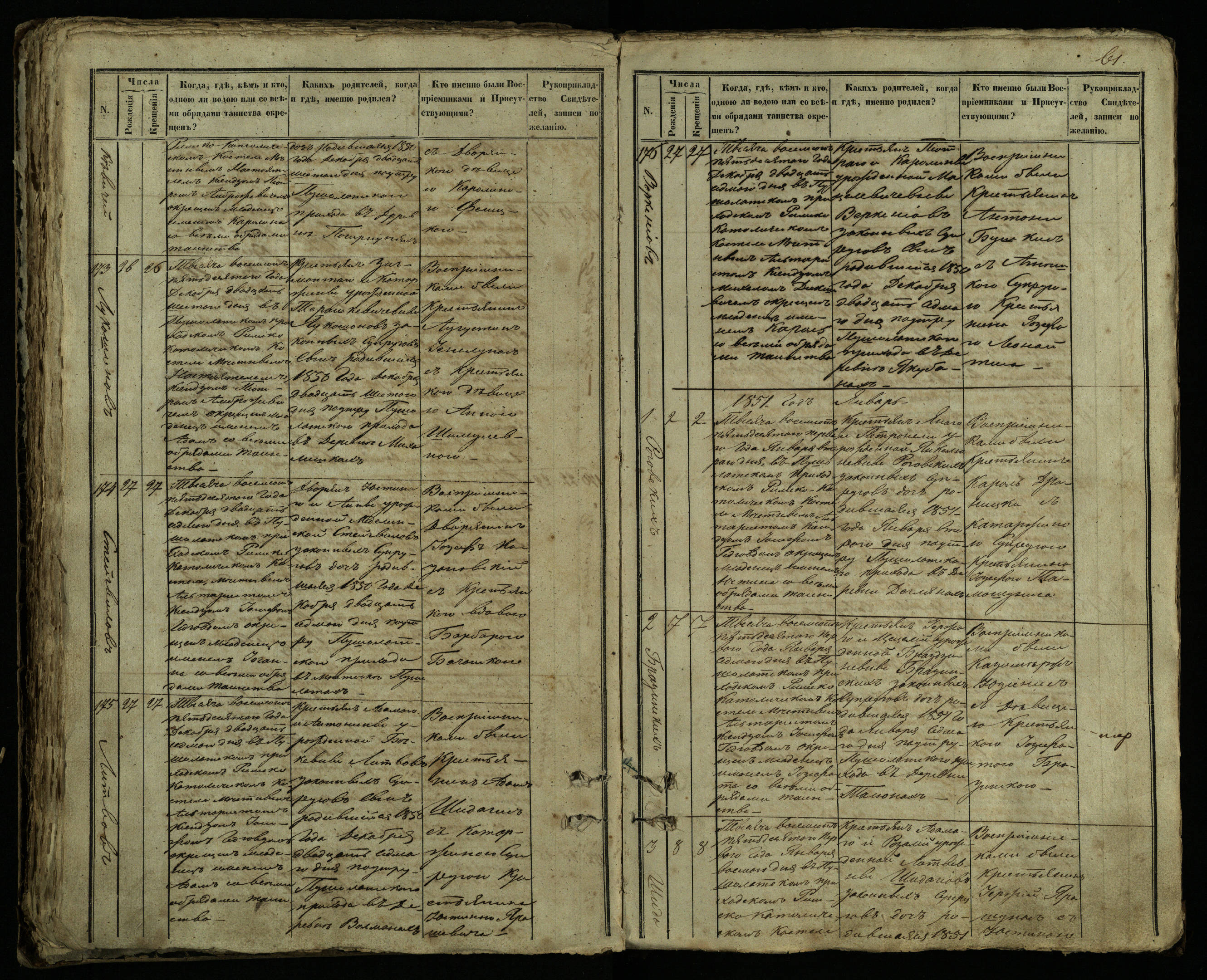 Pušaloto Romos katalikų parapijos bažnyčios 1849–1854 metų krikšto metrikų knyga