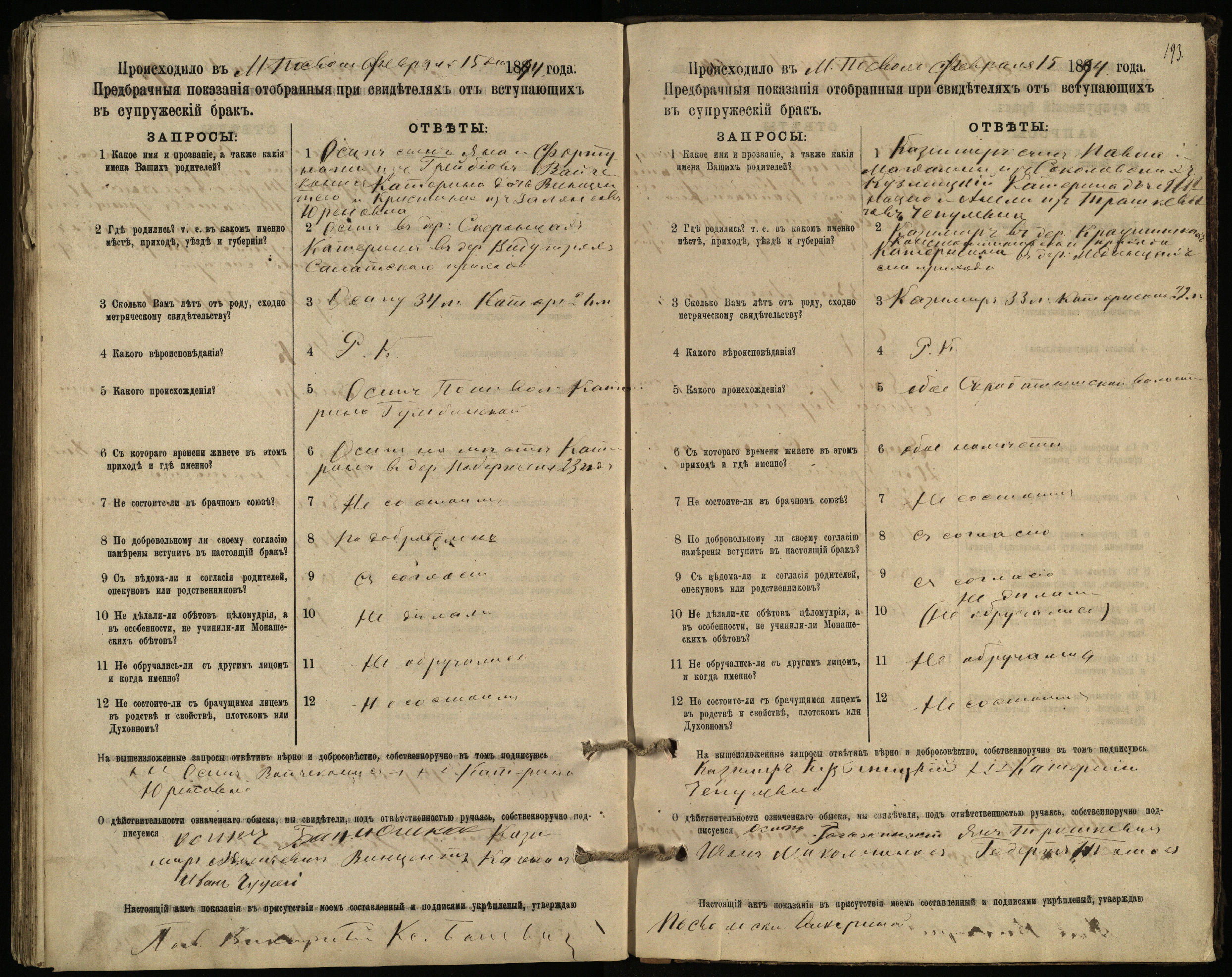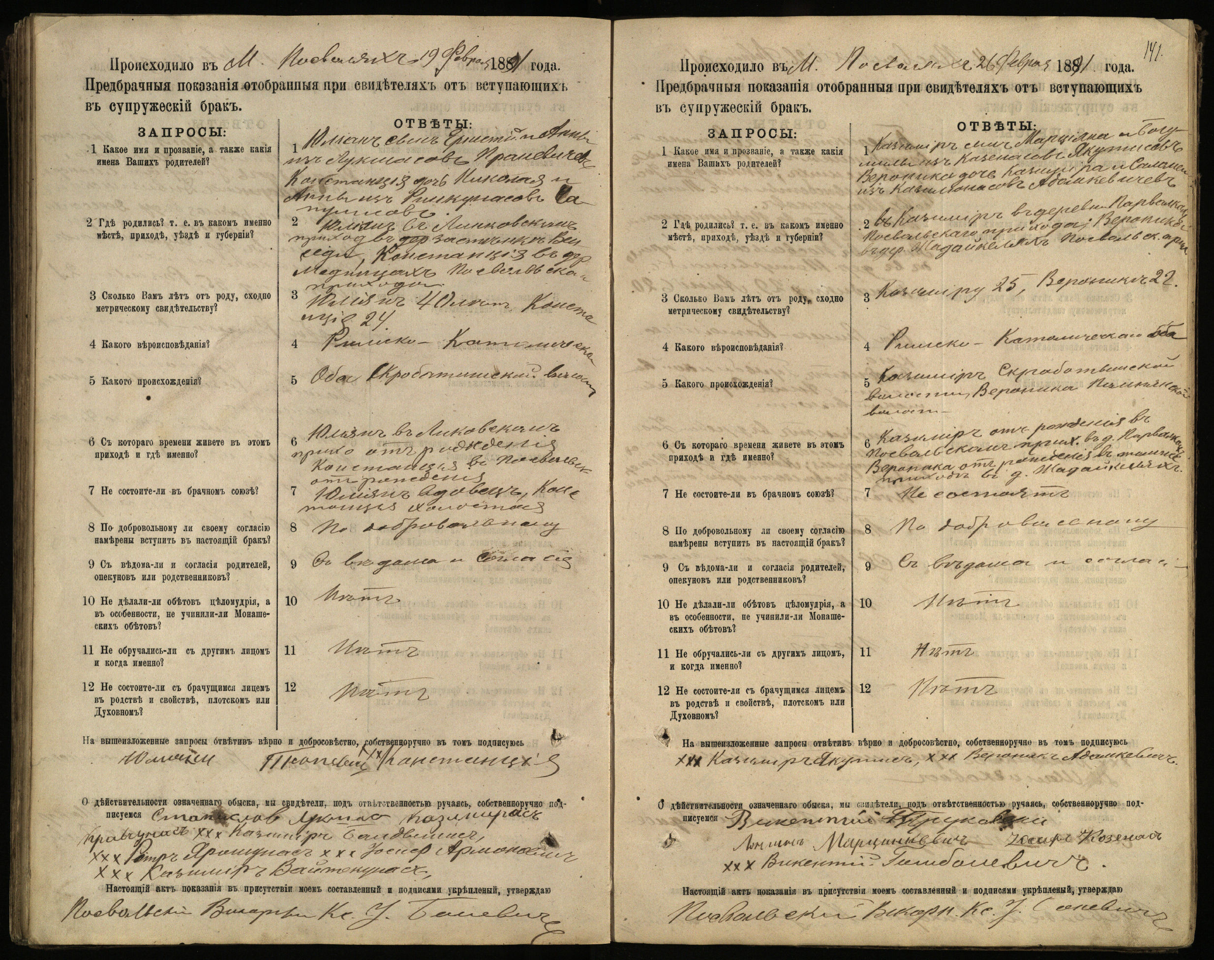 Pasvalio Romos katalikų parapijos bažnyčios 1885–1894 metų priešjungtuvinės apklausos knyga