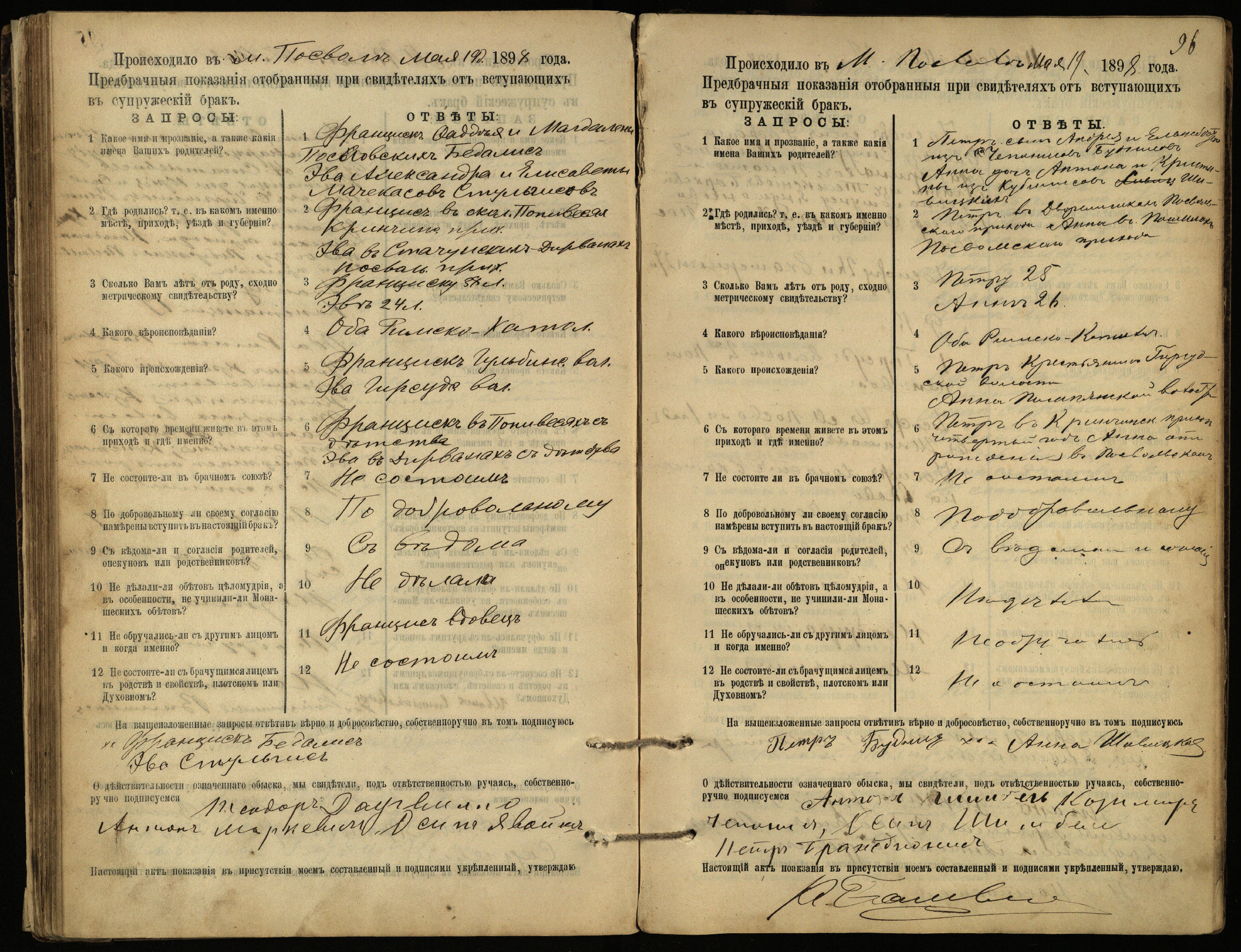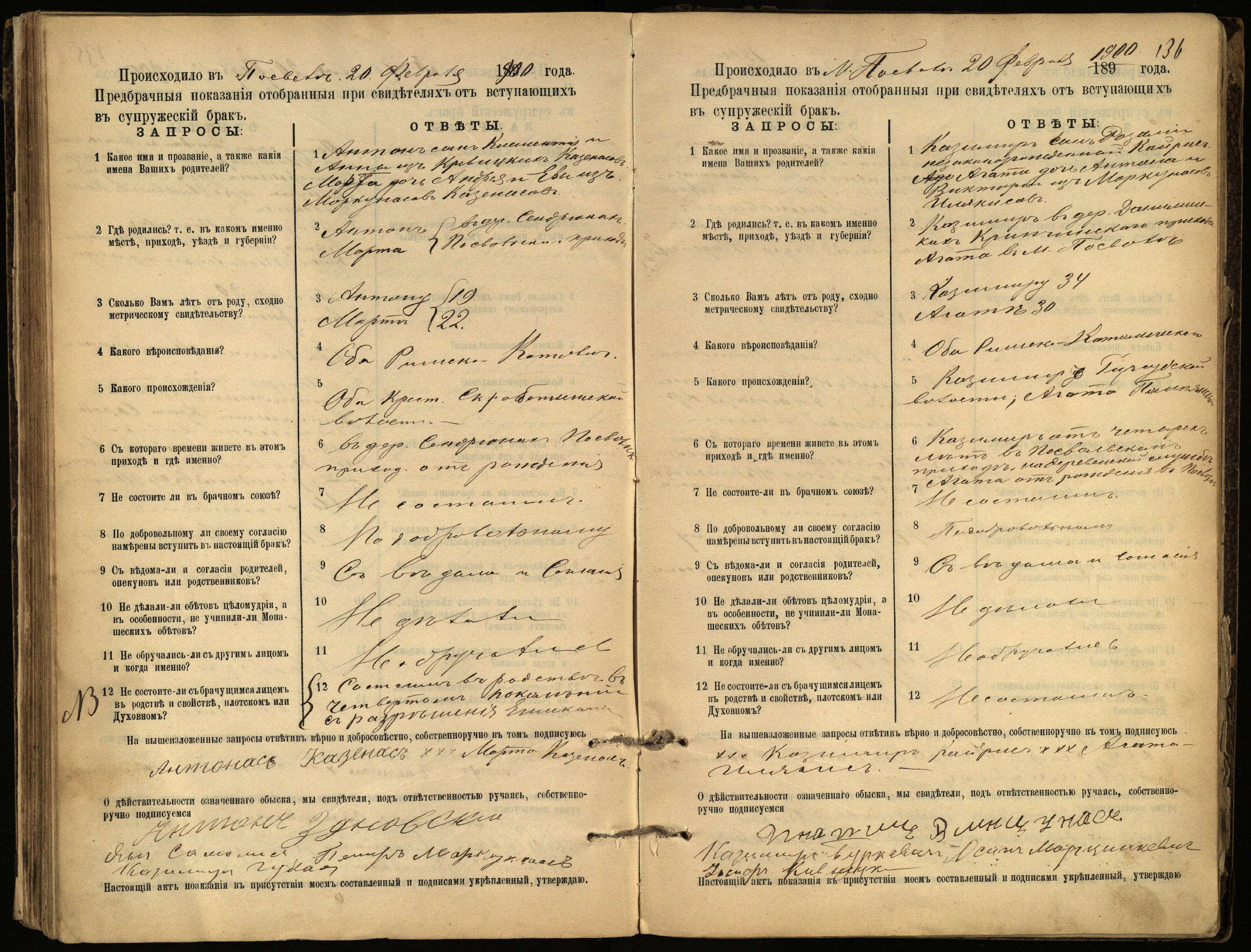 Pasvalio Romos katalikų parapijos bažnyčios 1894–1903 metų priešjungtuvinės apklausos knyga