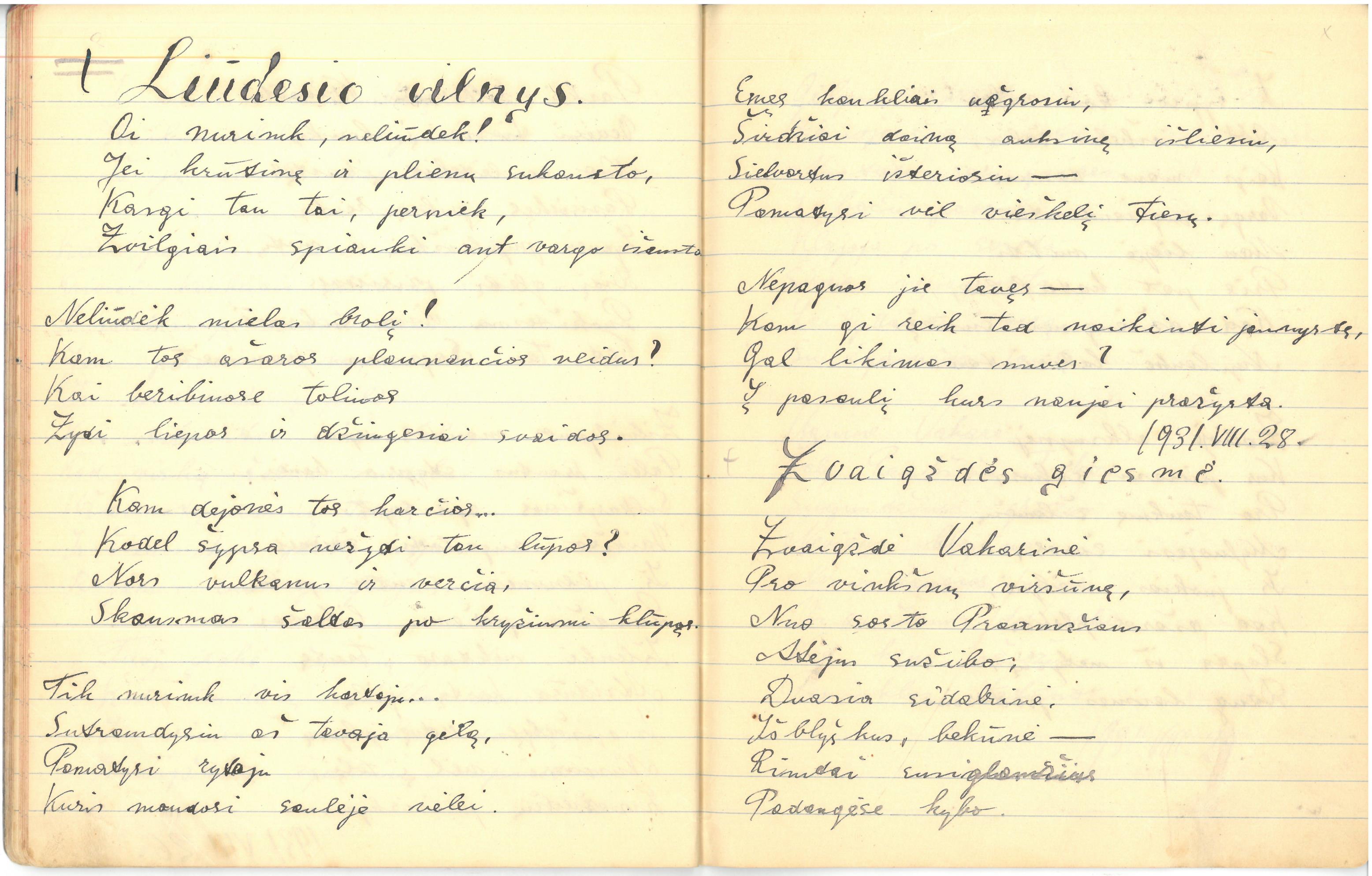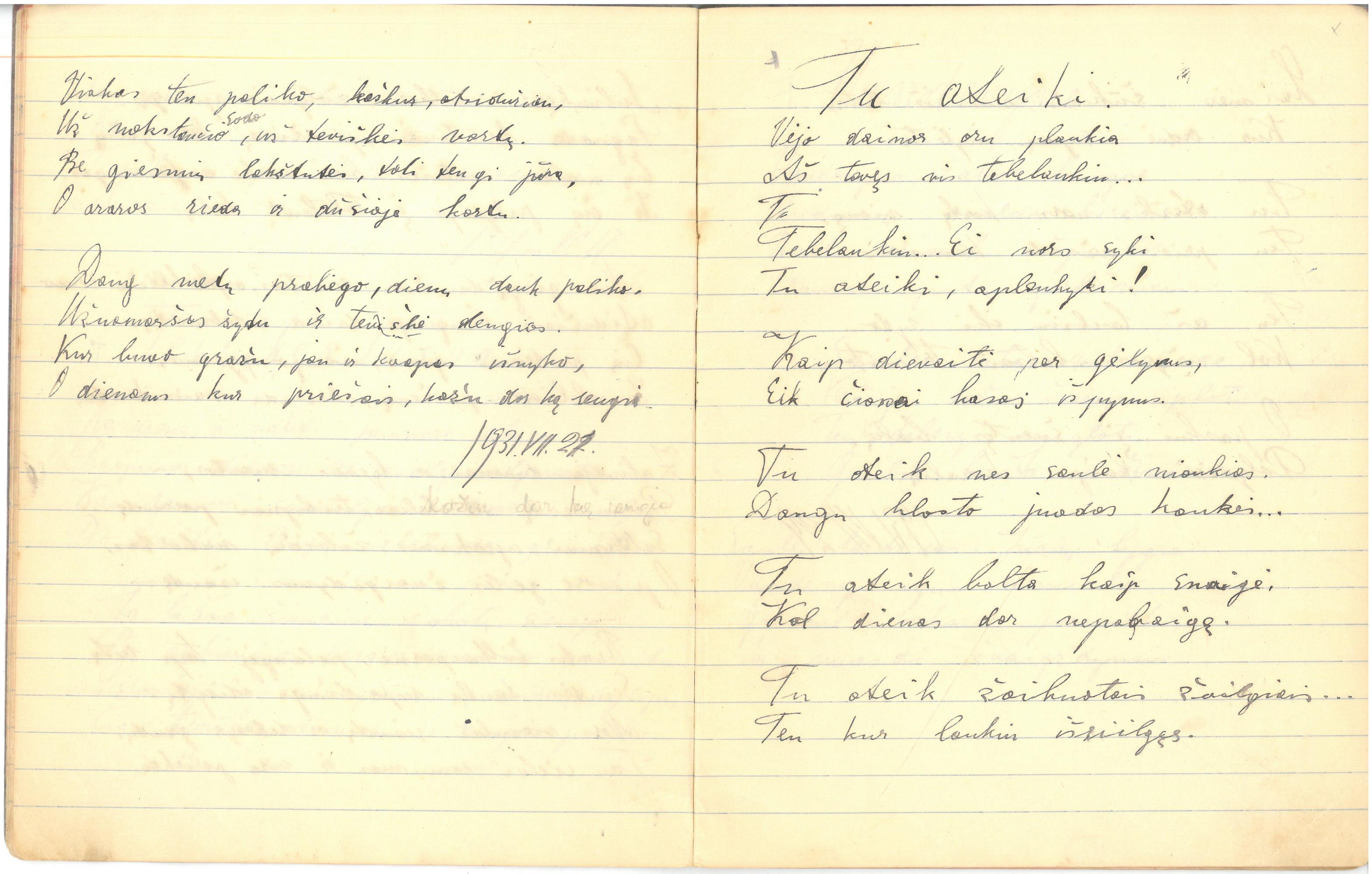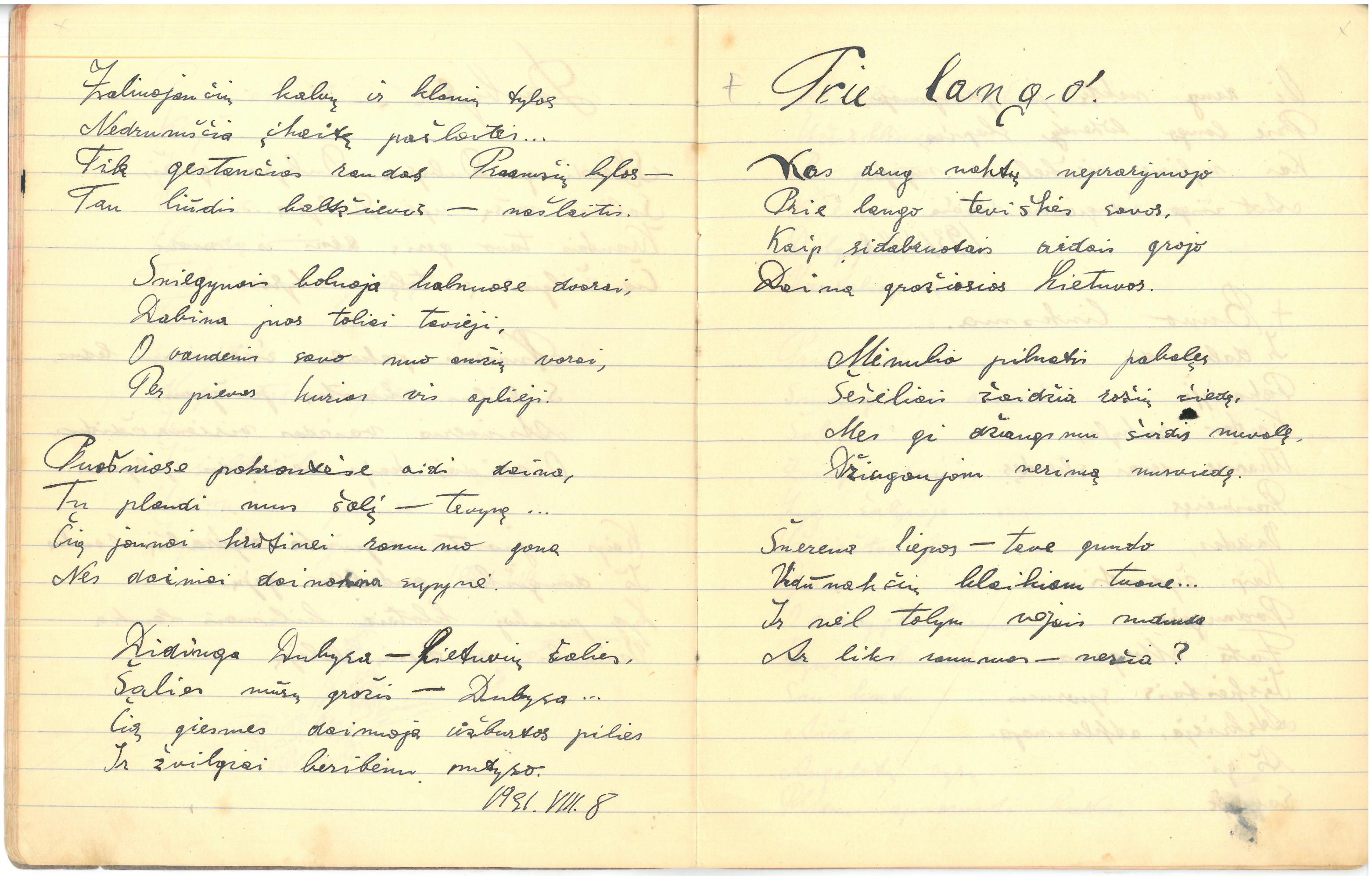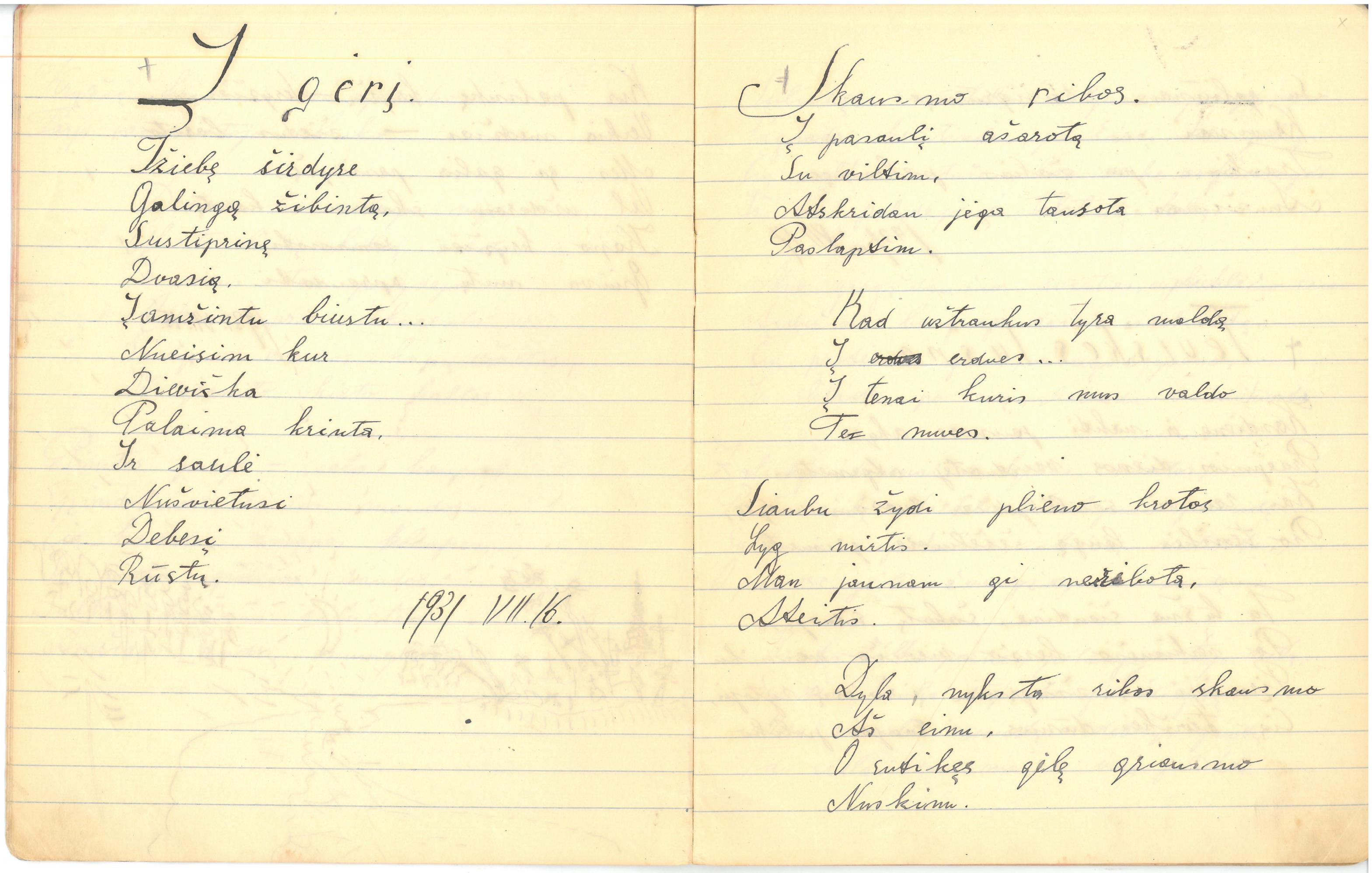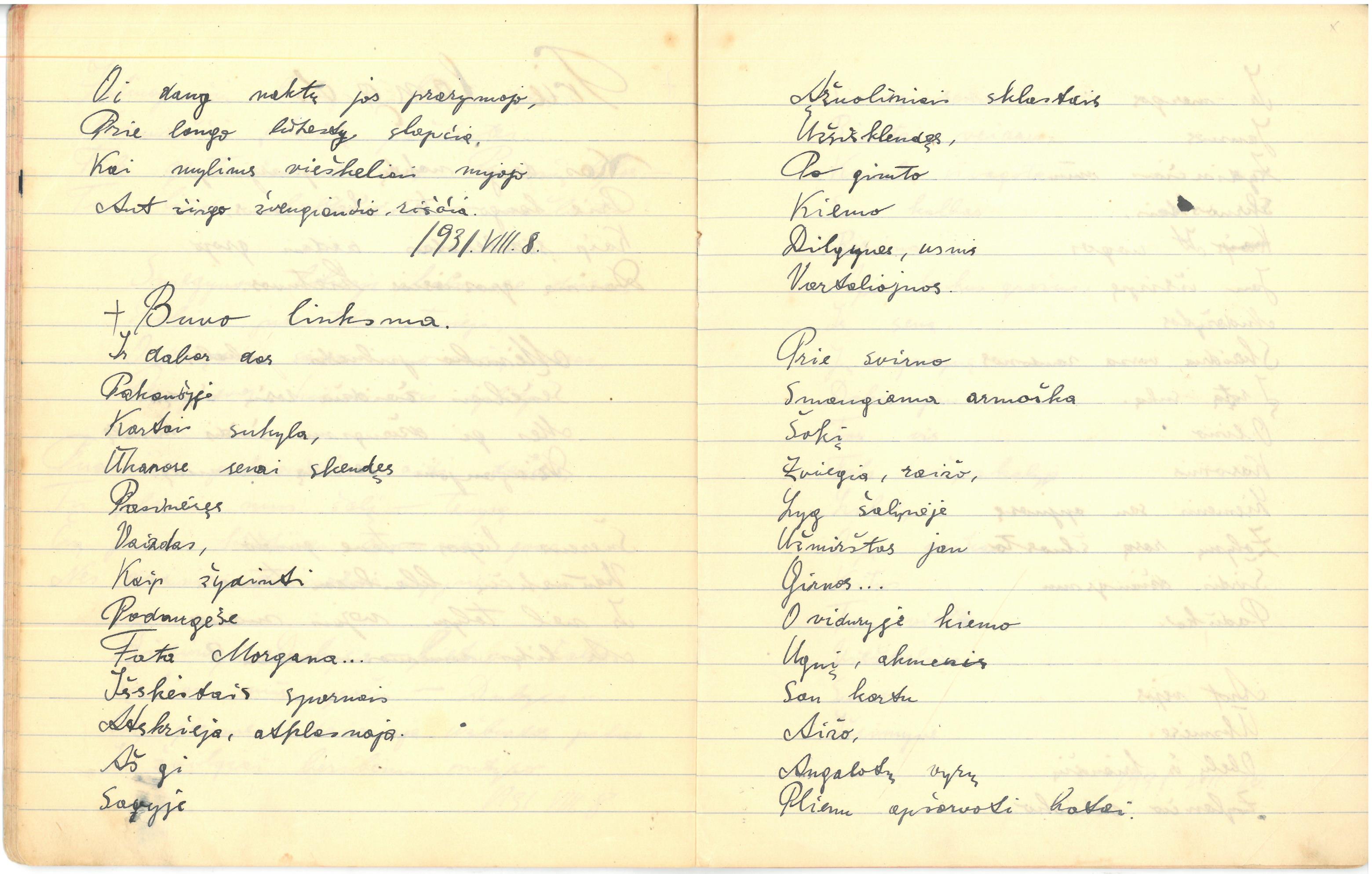 Albino Vaitkaus (Mariaus Katiliškio) eilėraščių sąsiuvinis „Mano žodžiai“. II dal. 1931 m.