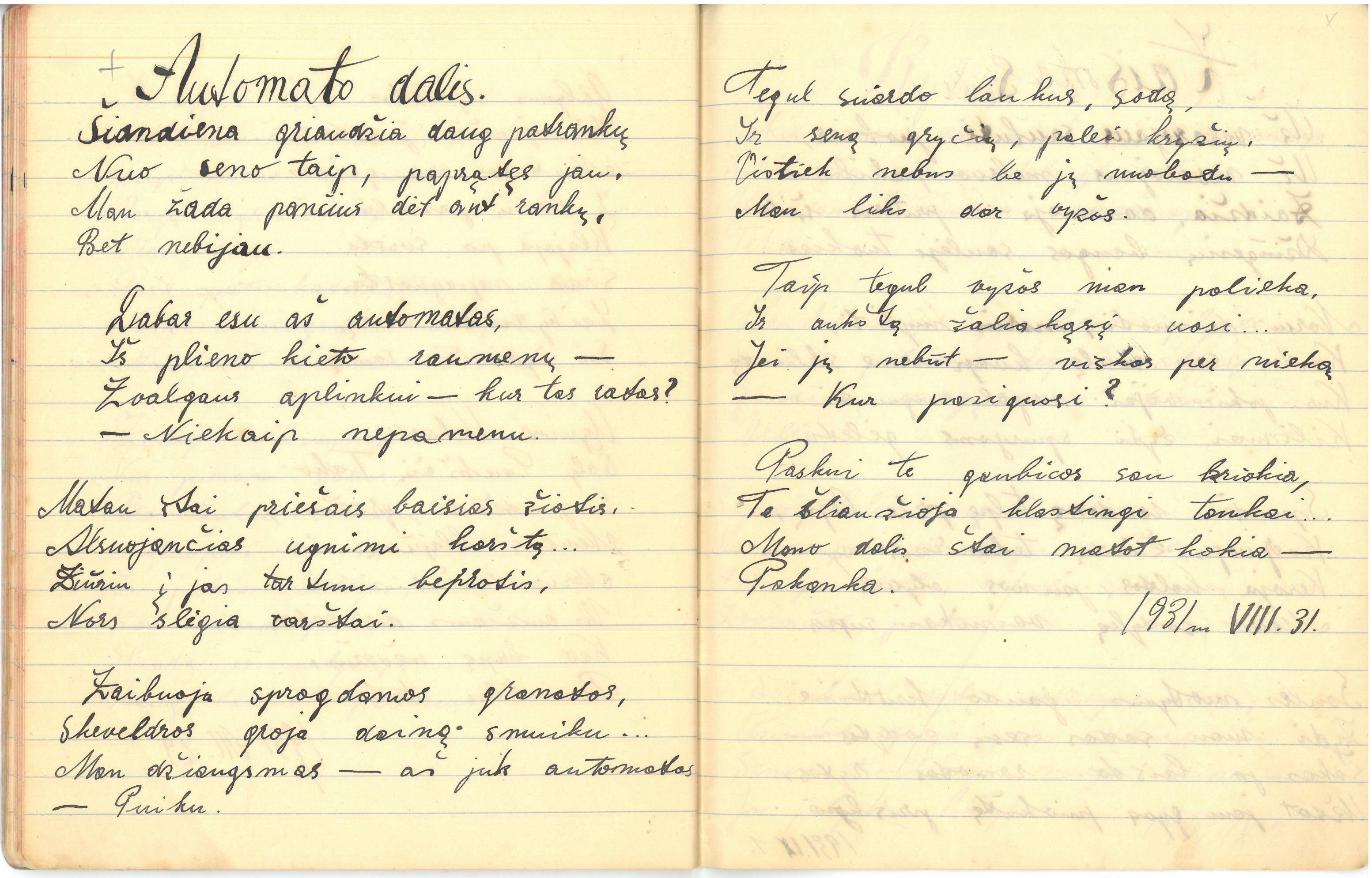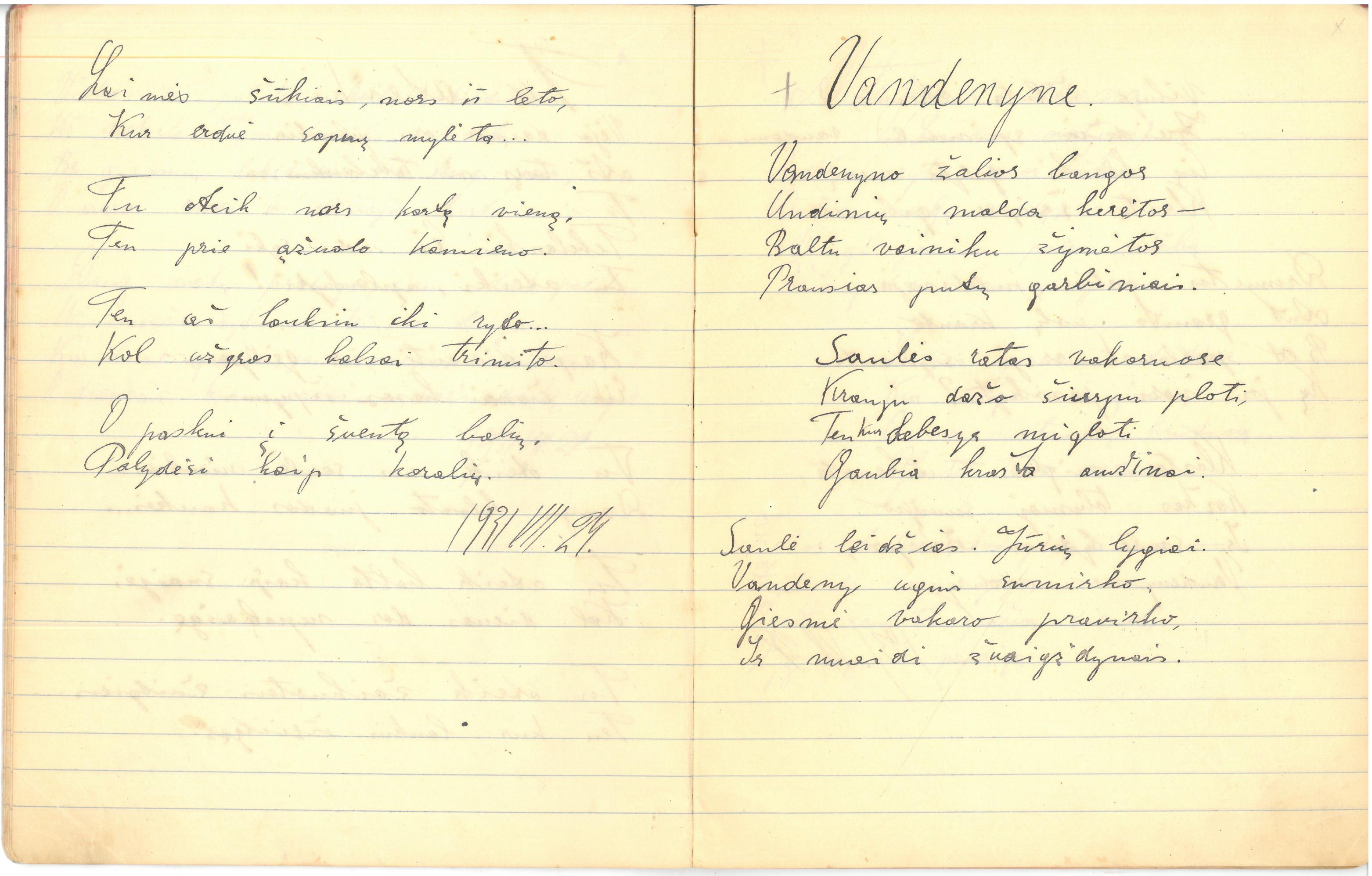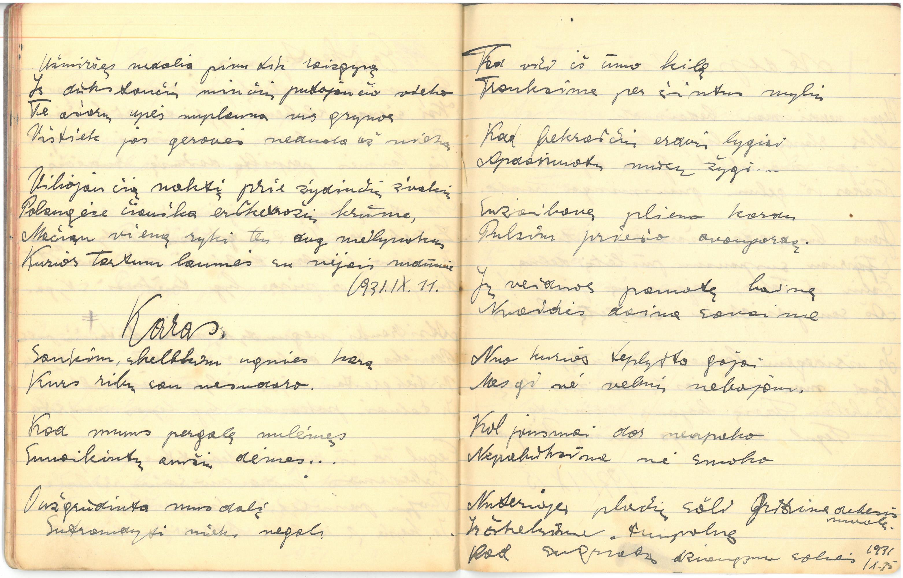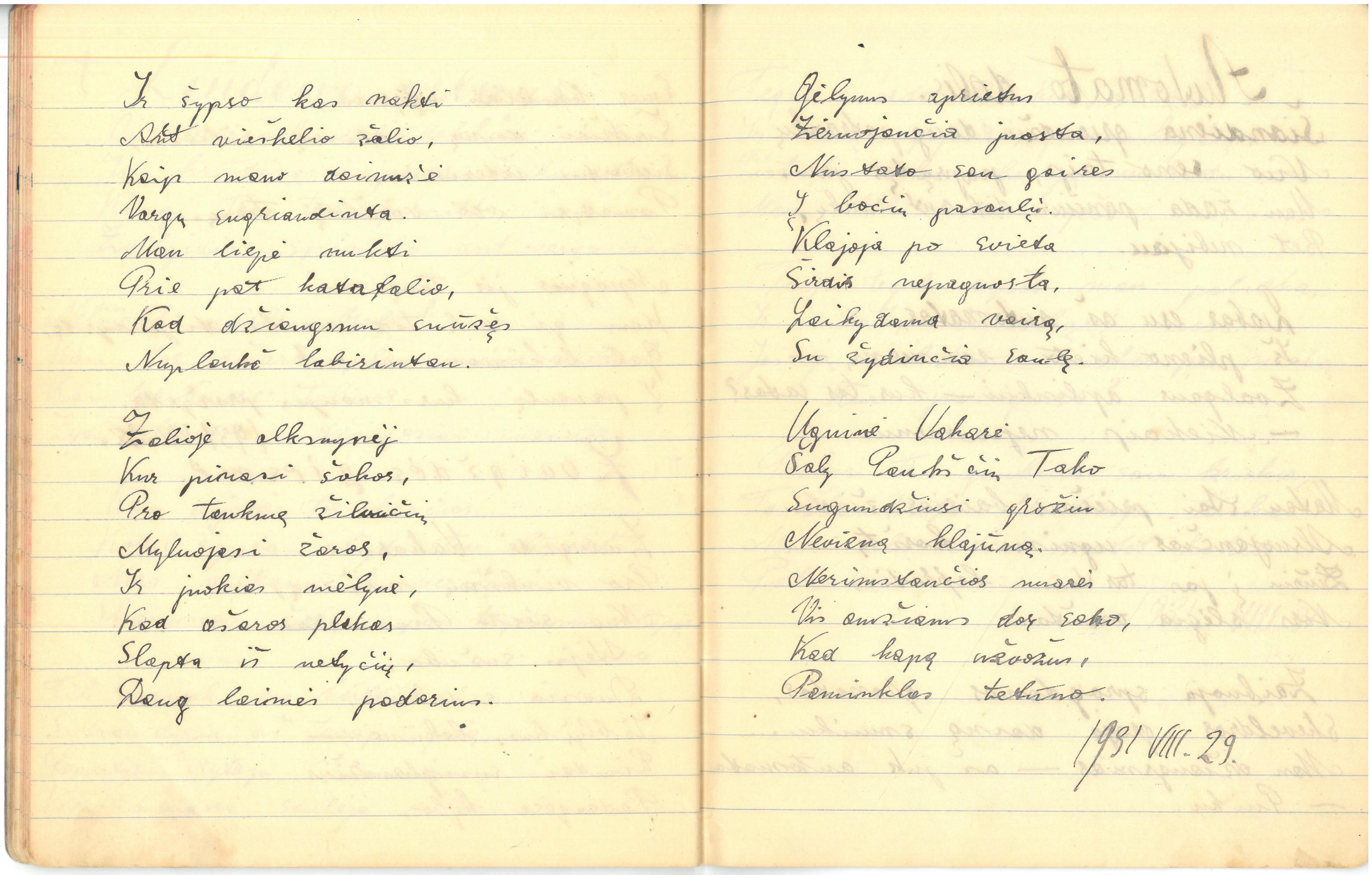 Albino Vaitkaus (Mariaus Katiliškio) eilėraščių sąsiuvinis „Mano žodžiai“. II dal. 1931 m.