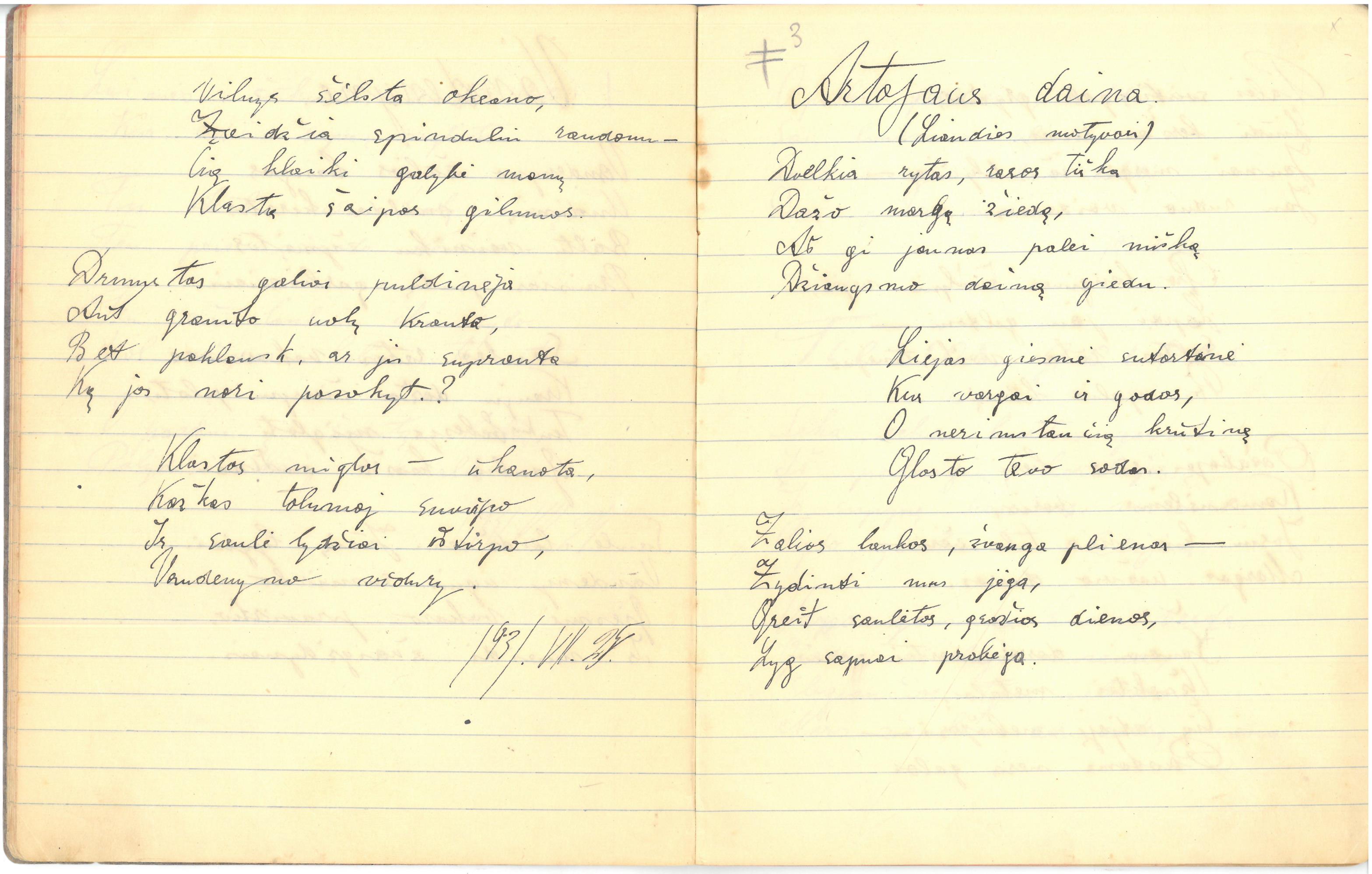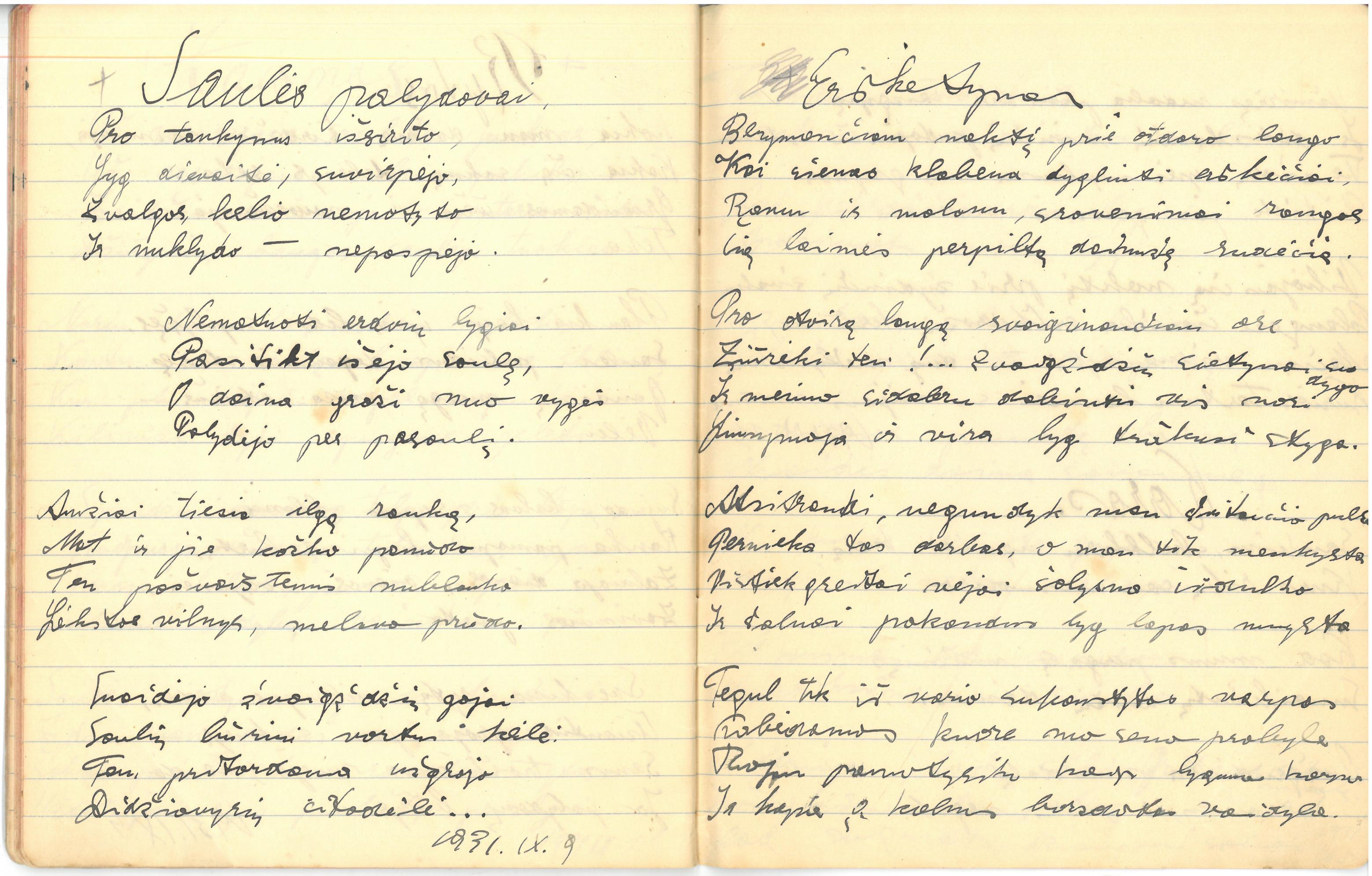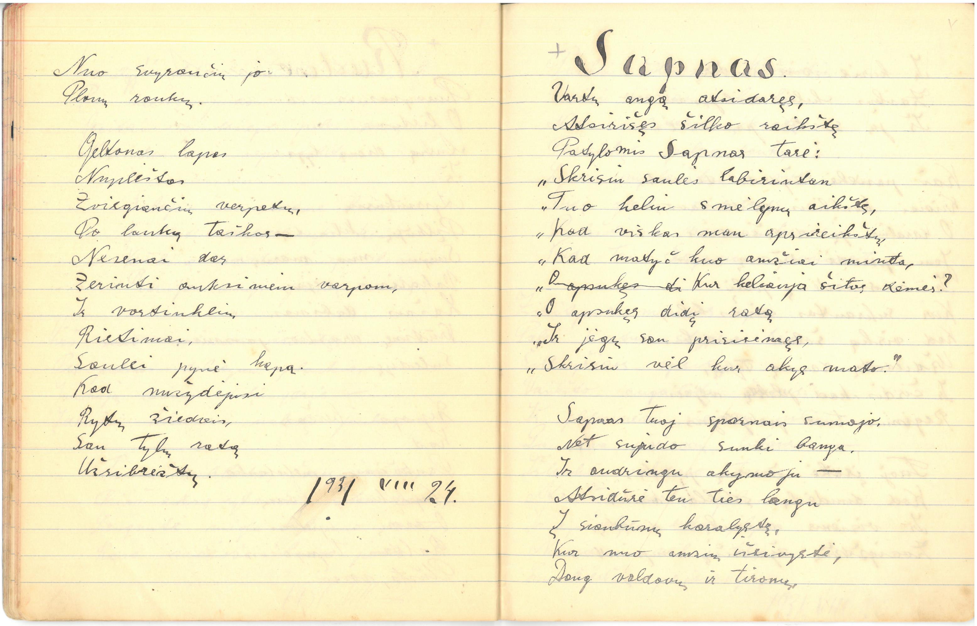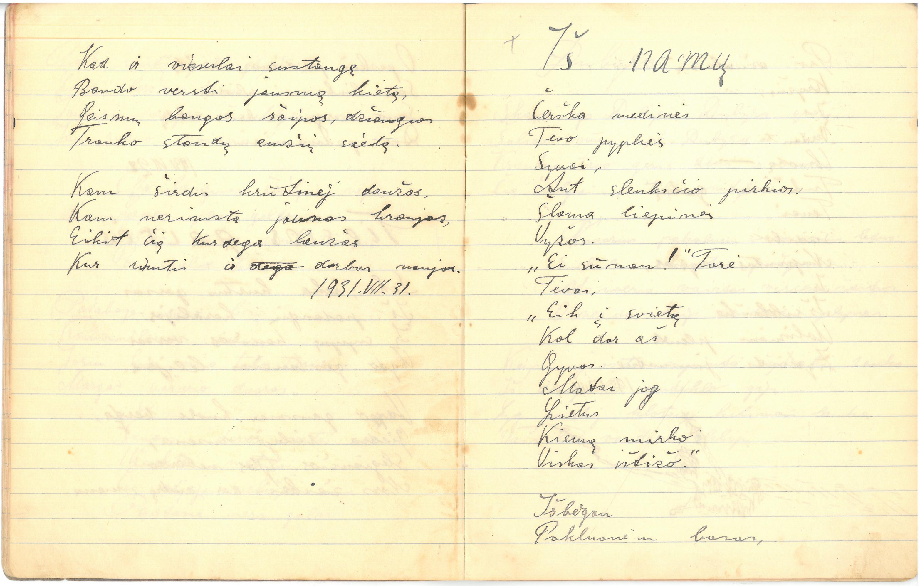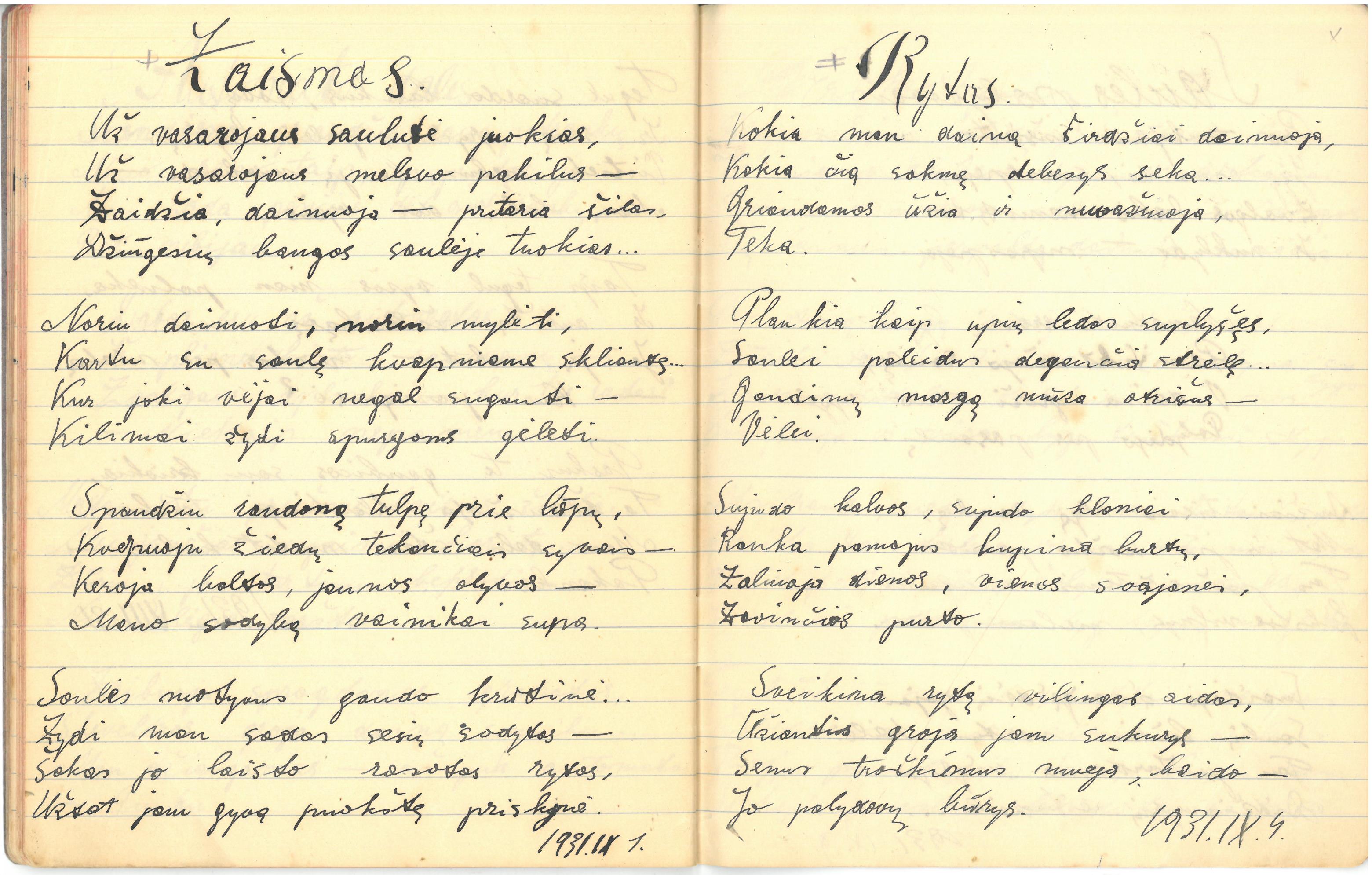 Albino Vaitkaus (Mariaus Katiliškio) eilėraščių sąsiuvinis „Mano žodžiai“. II dal. 1931 m.