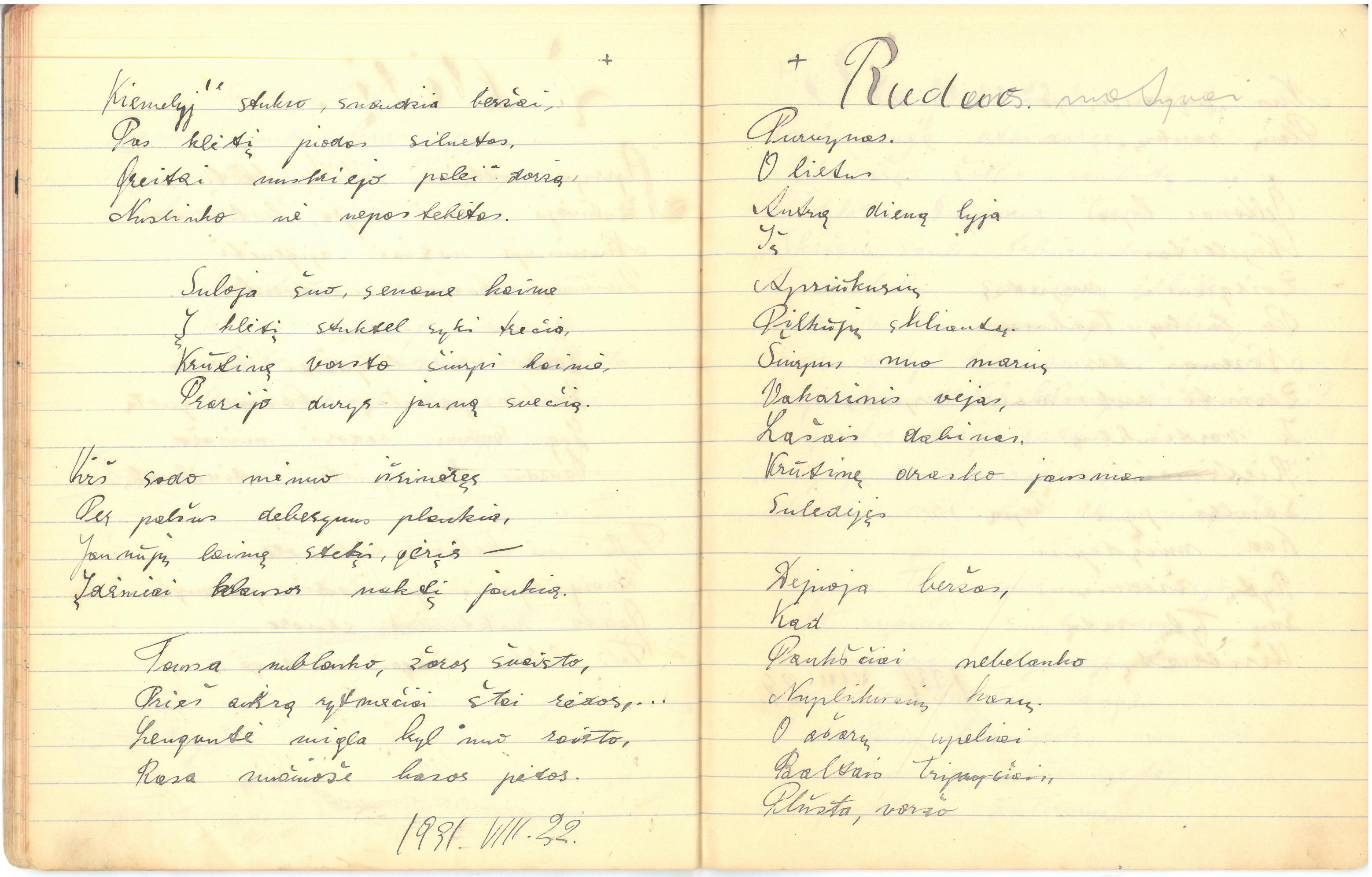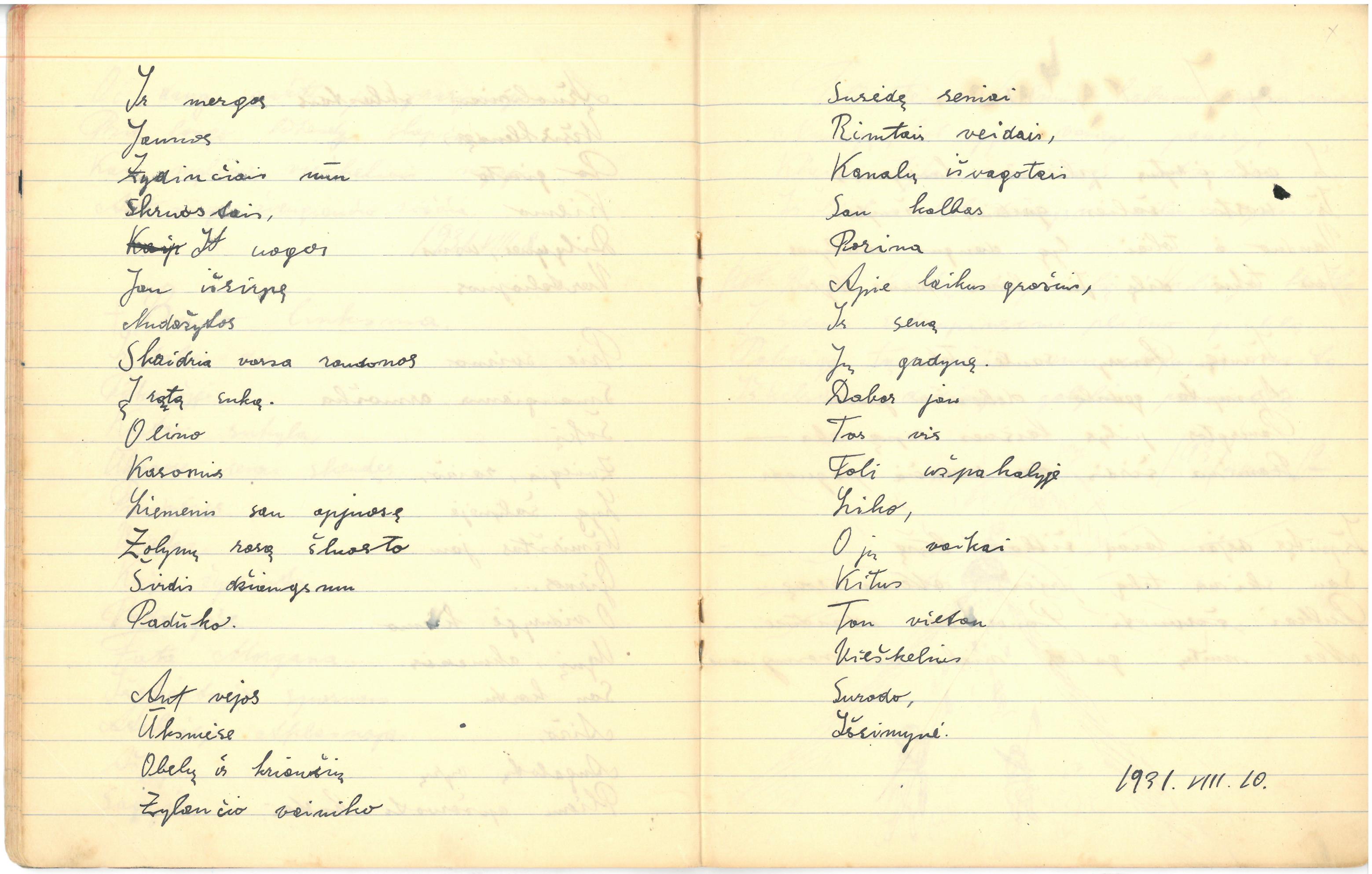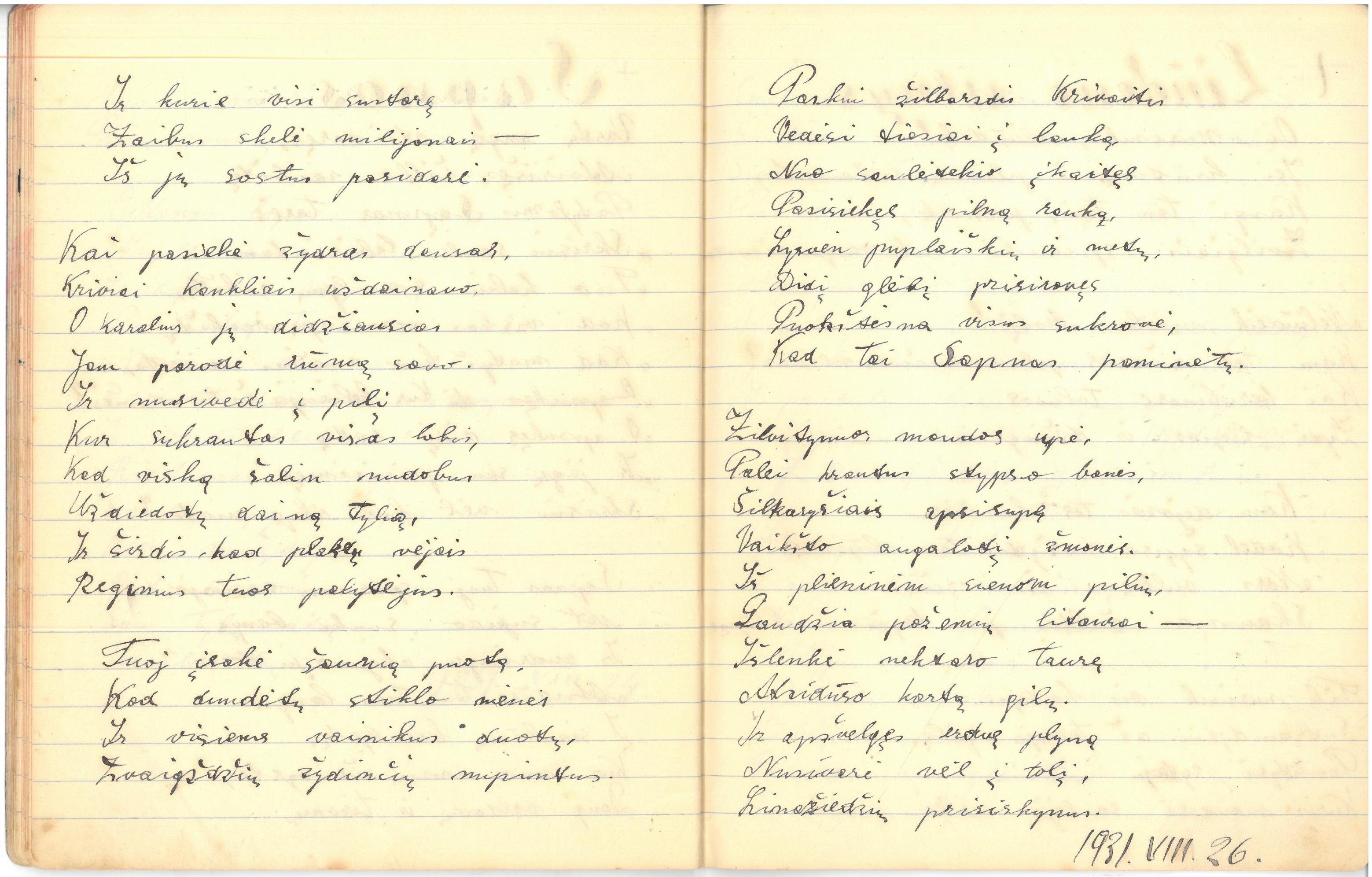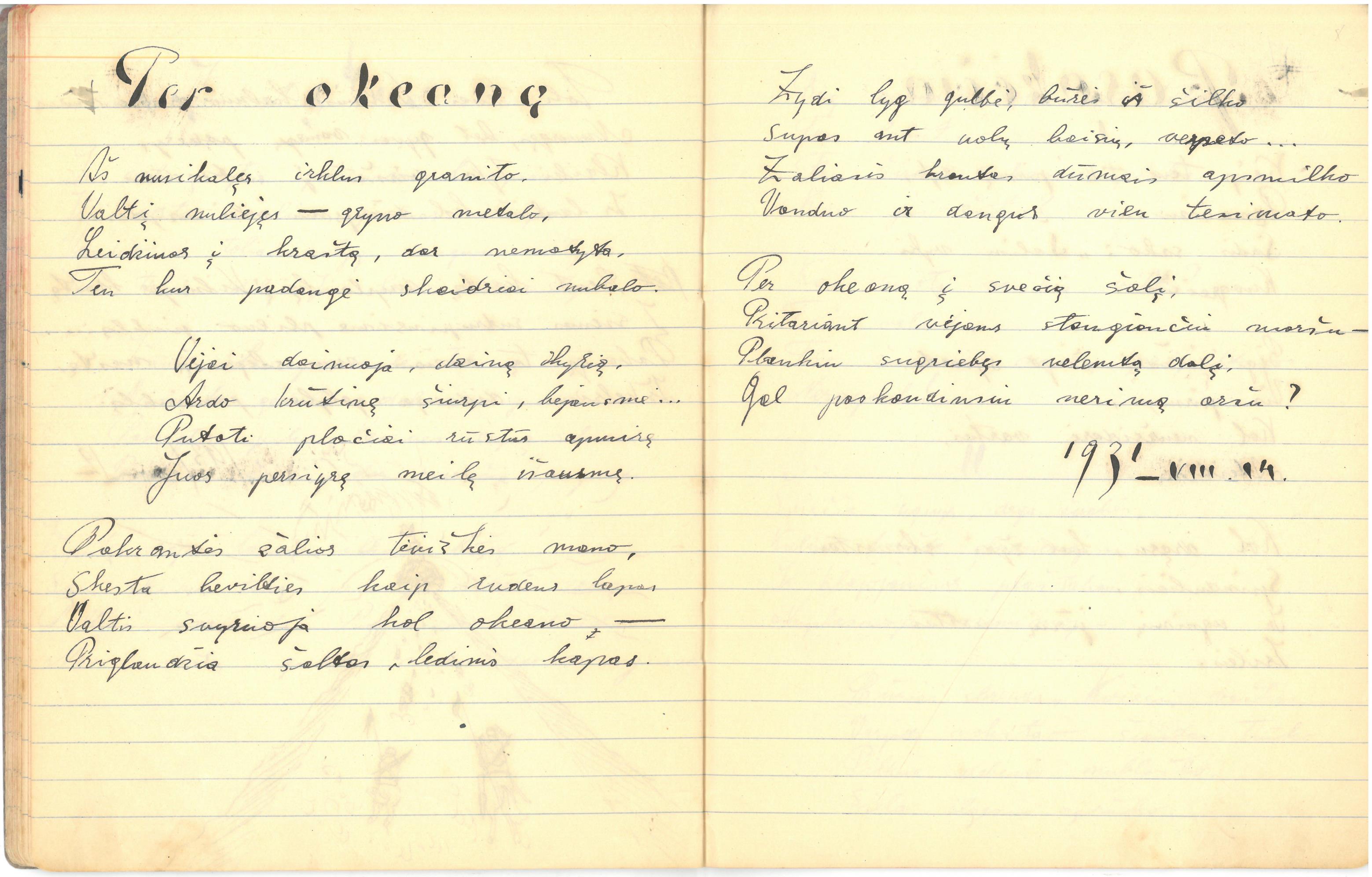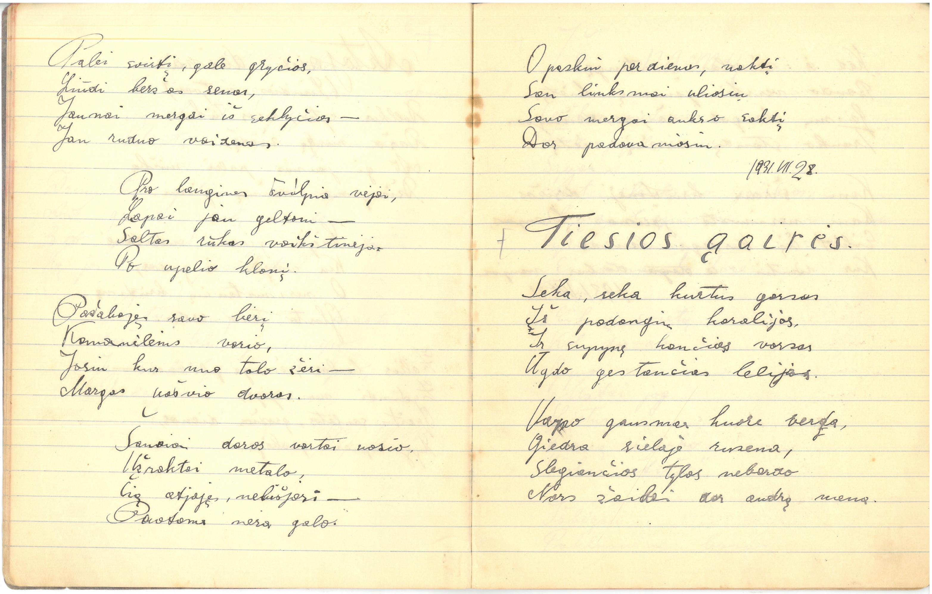 Albino Vaitkaus (Mariaus Katiliškio) eilėraščių sąsiuvinis „Mano žodžiai“. II dal. 1931 m.