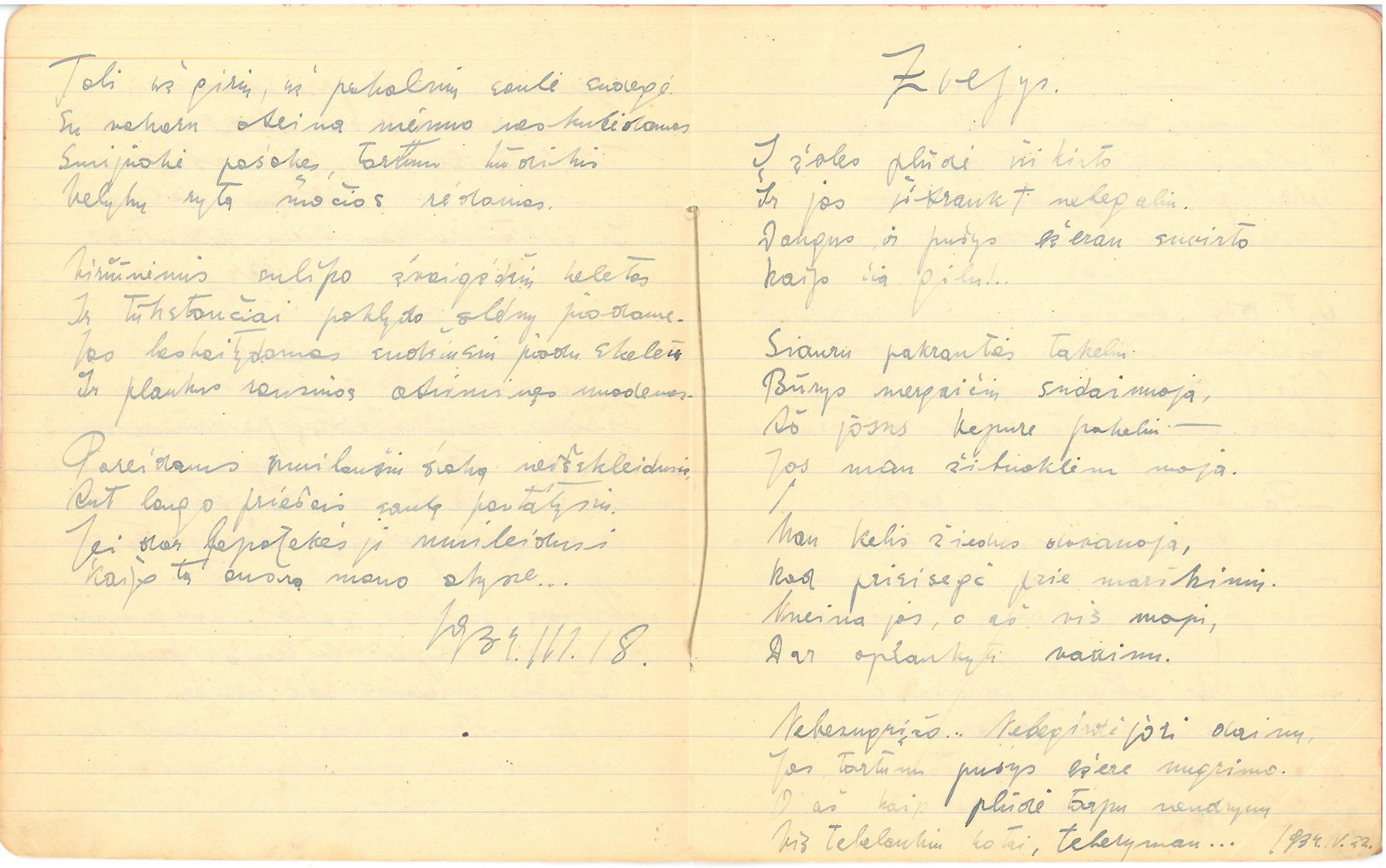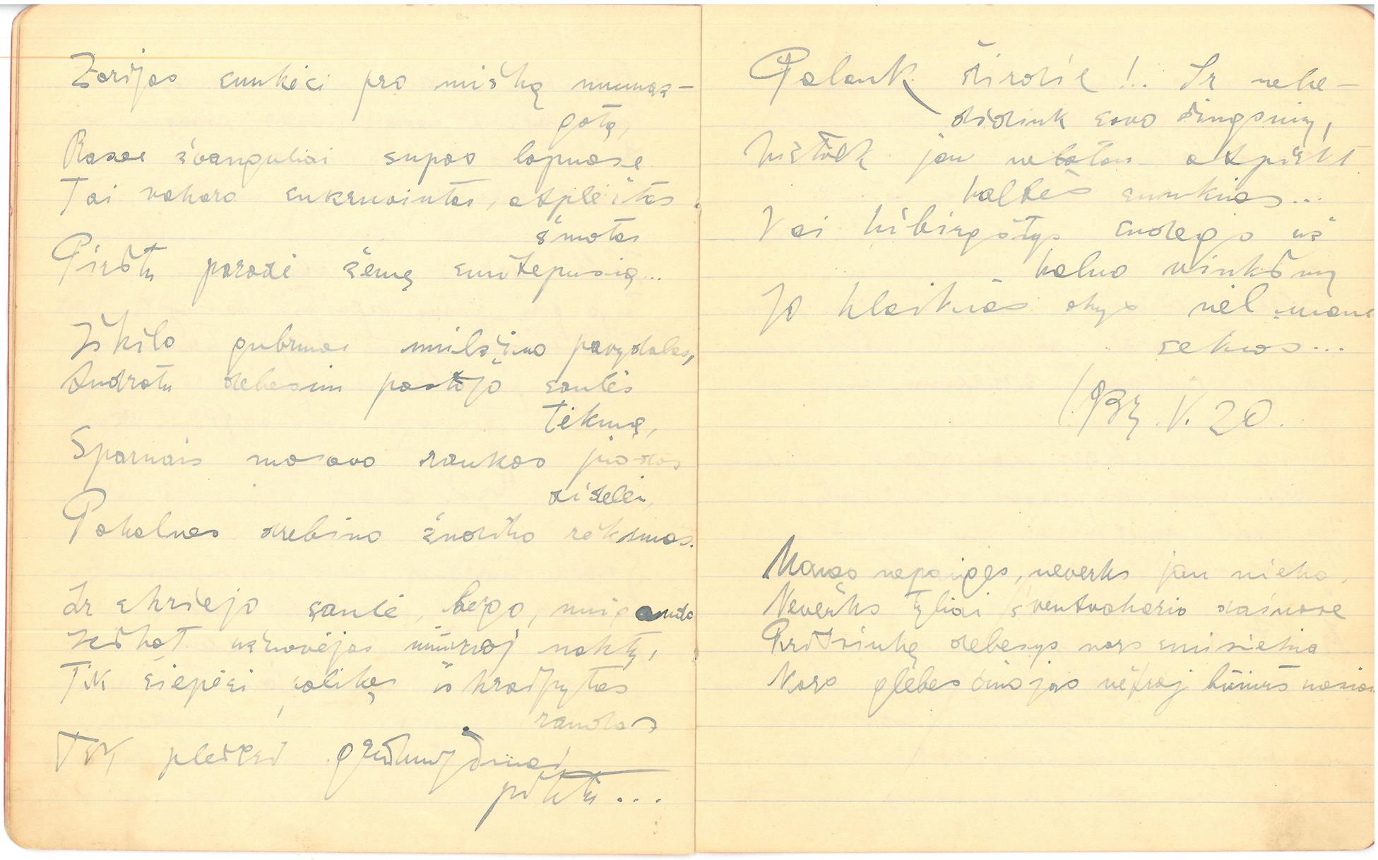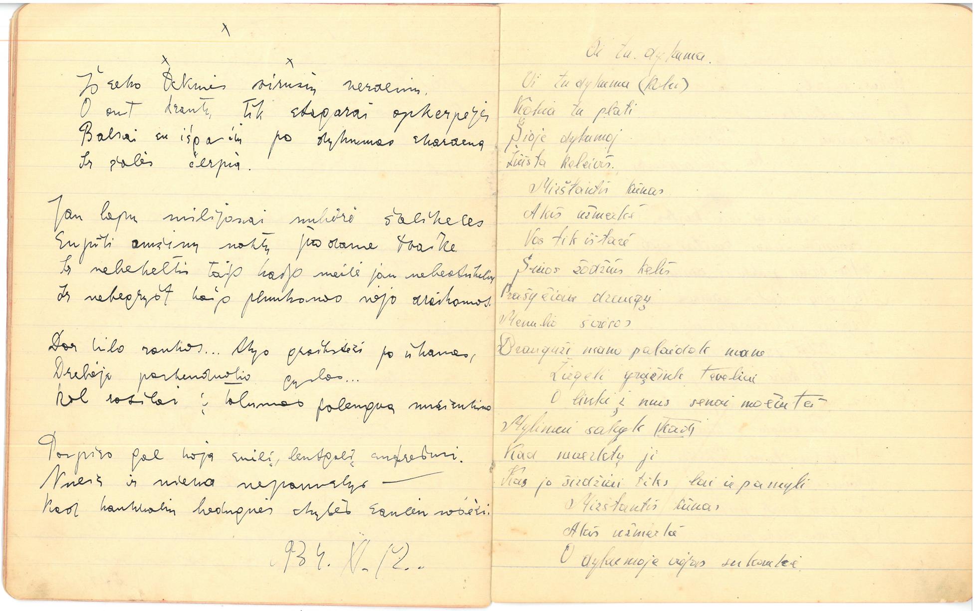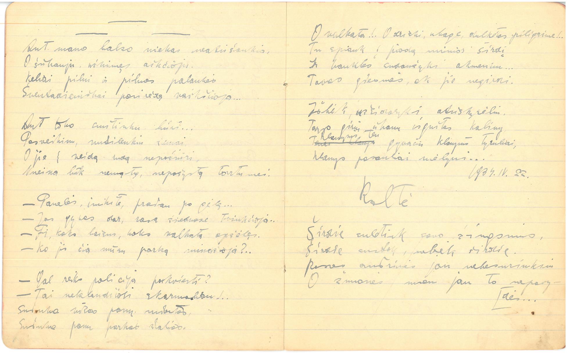 Albino Vaitkaus (Mariaus Katiliškio) eilėraščių sąsiuvinis. Pasirinktas slapyvardis – Juodis Danyla. 1933 m.
