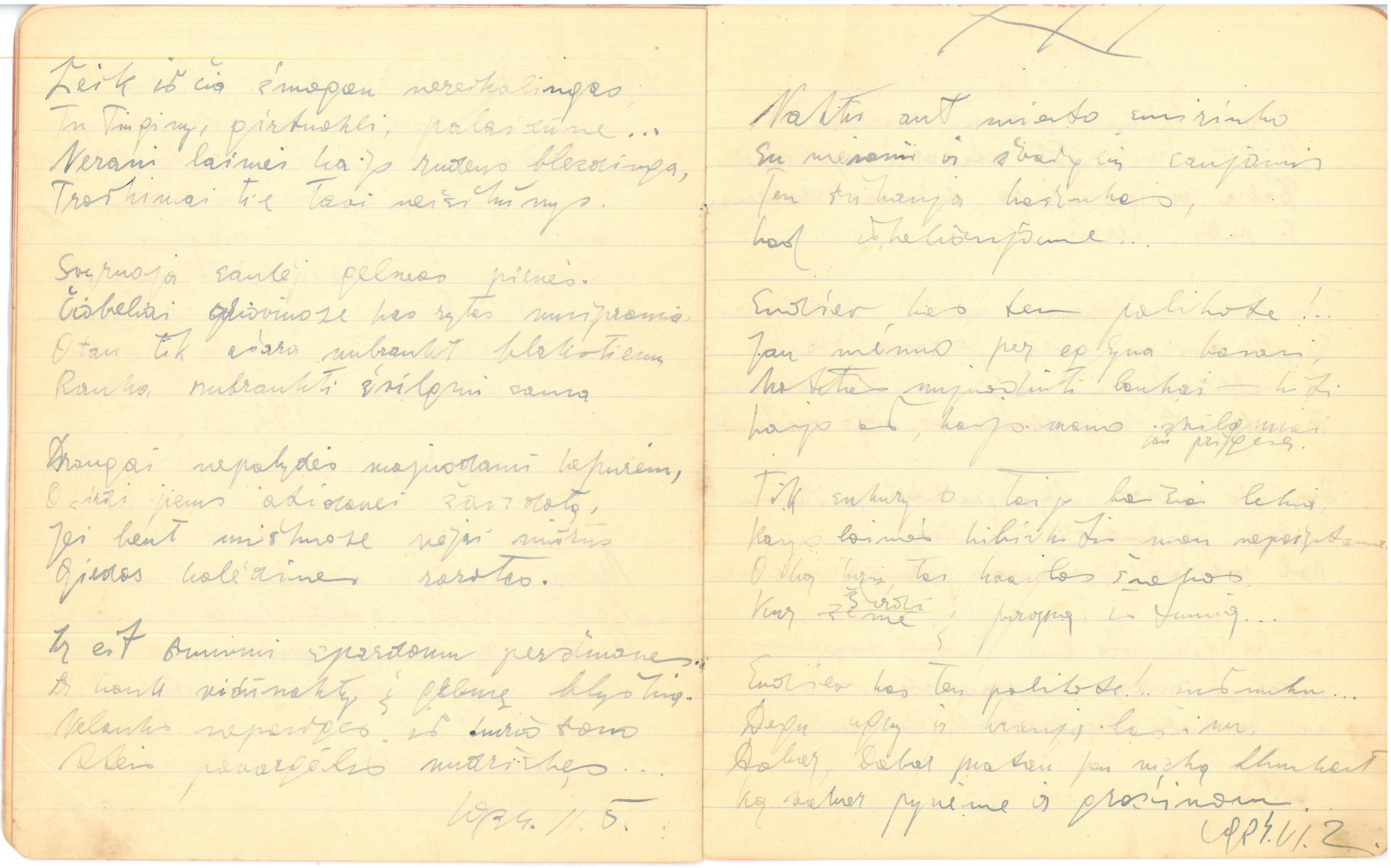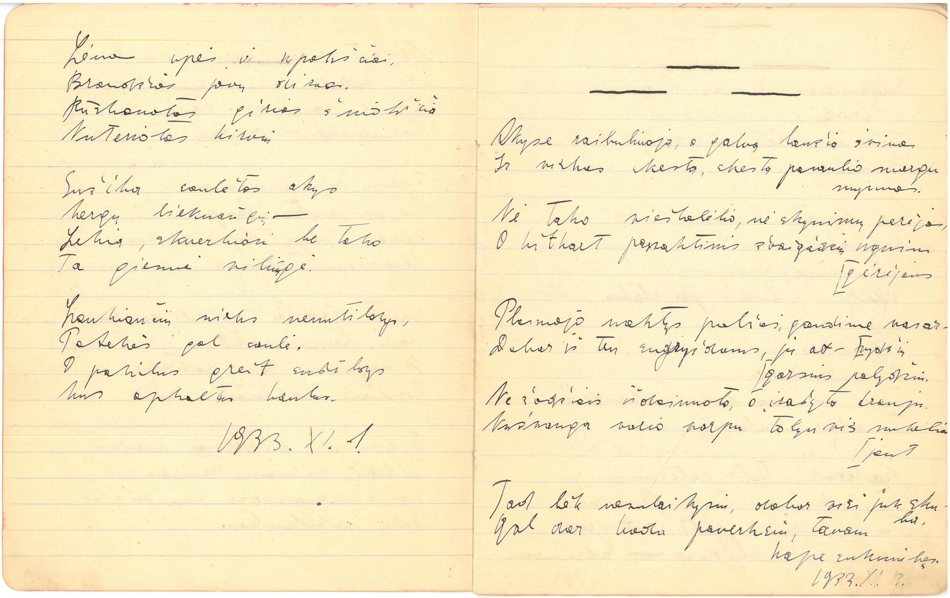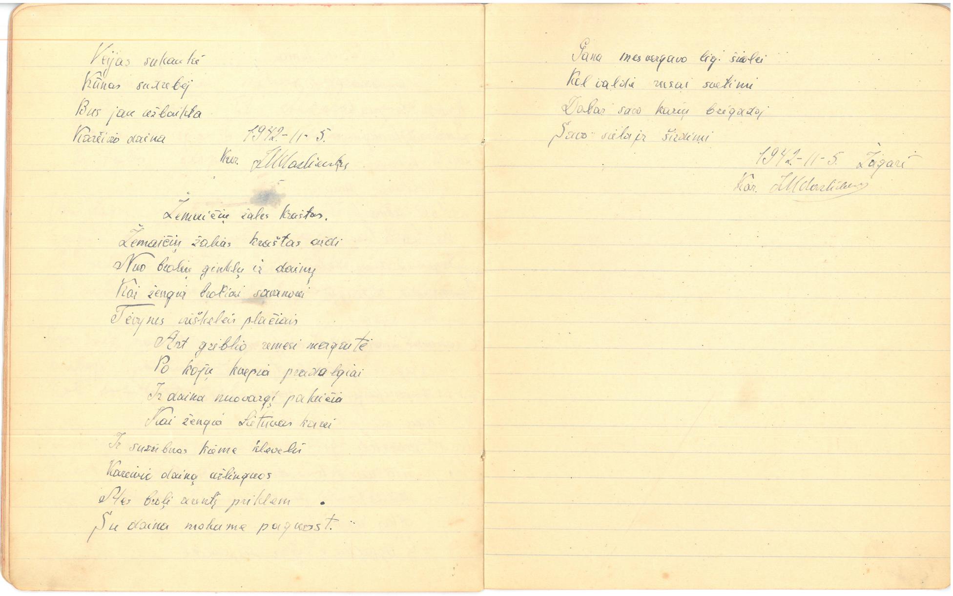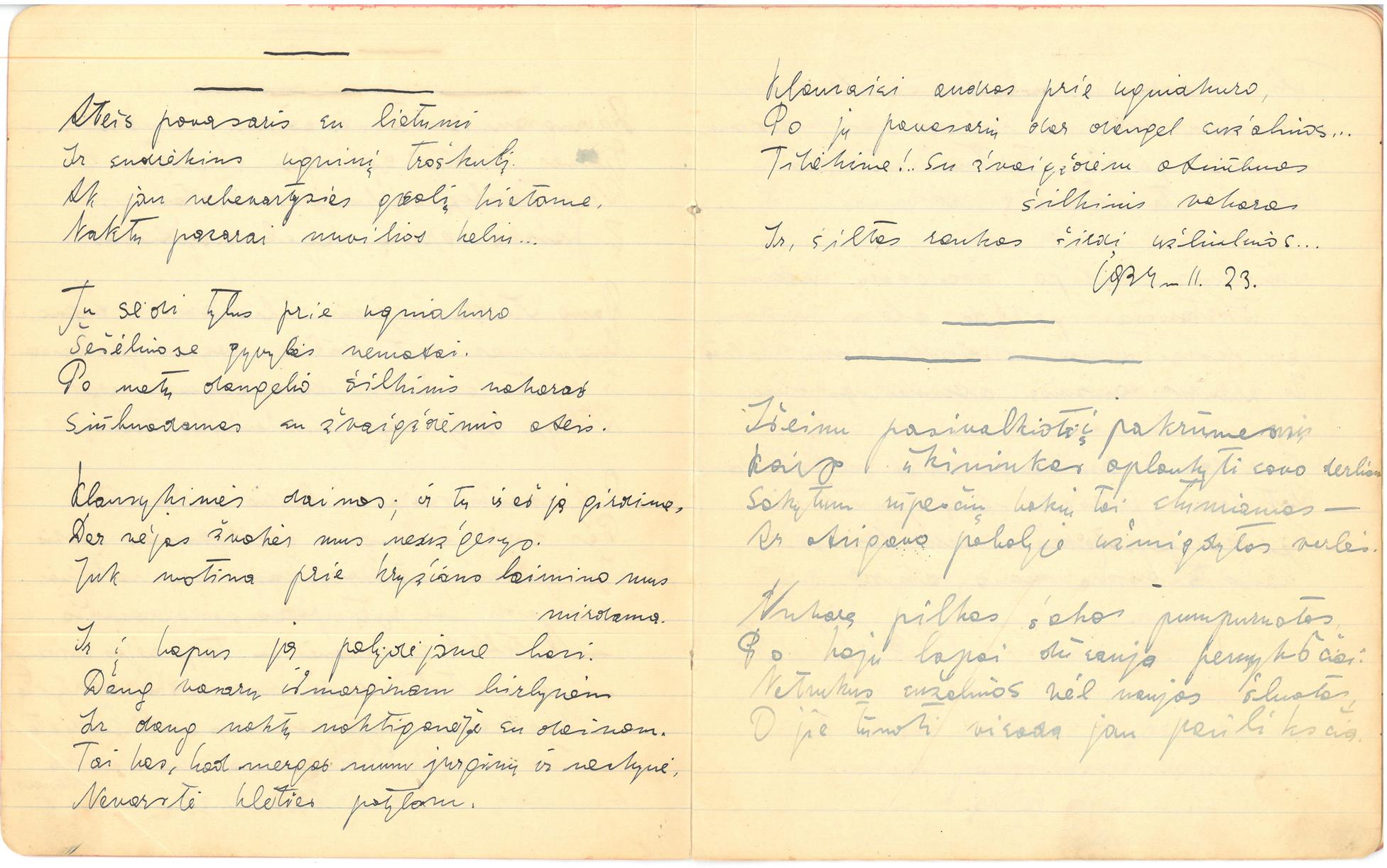 Albino Vaitkaus (Mariaus Katiliškio) eilėraščių sąsiuvinis. Pasirinktas slapyvardis – Juodis Danyla. 1933 m.