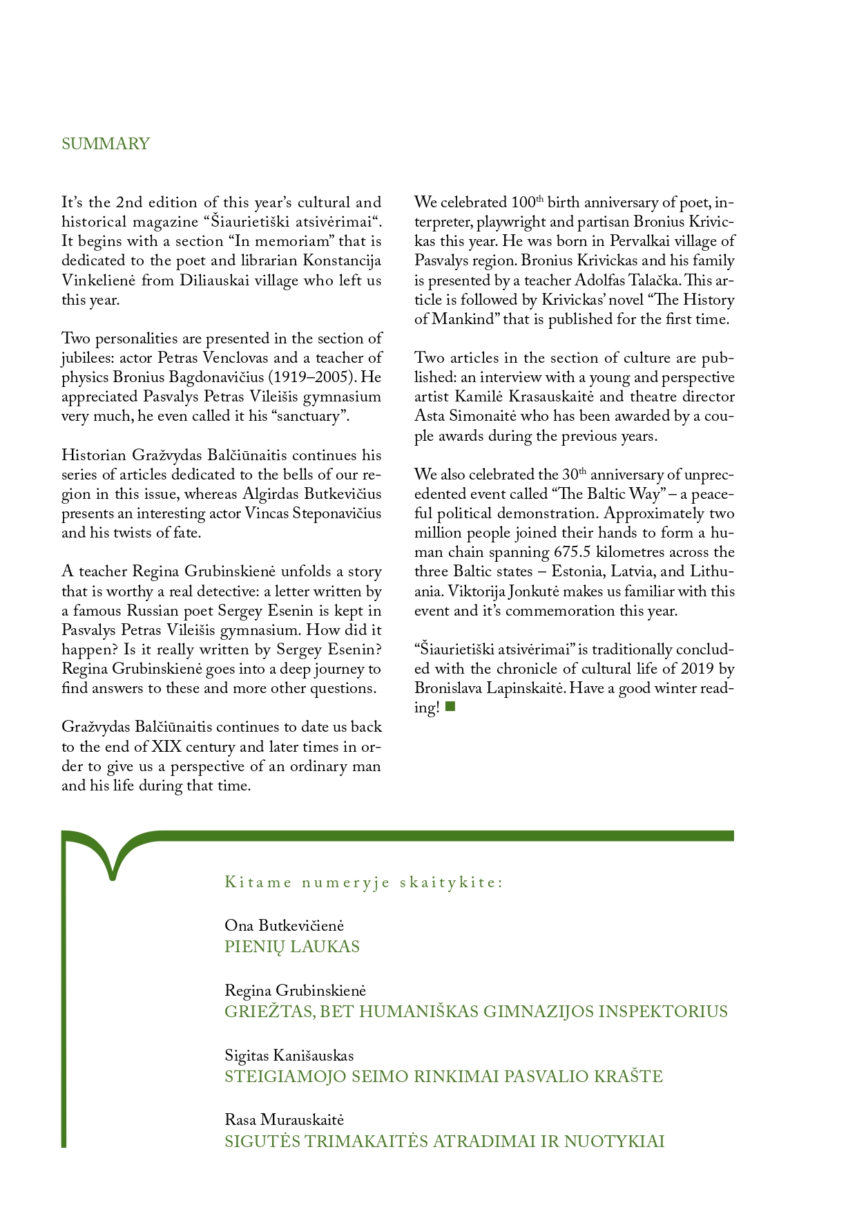 Šiaurietiški atsivėrimai : Pasvalio krašto istorijos ir kultūros žurnalas 2019, nr. 2 (47)