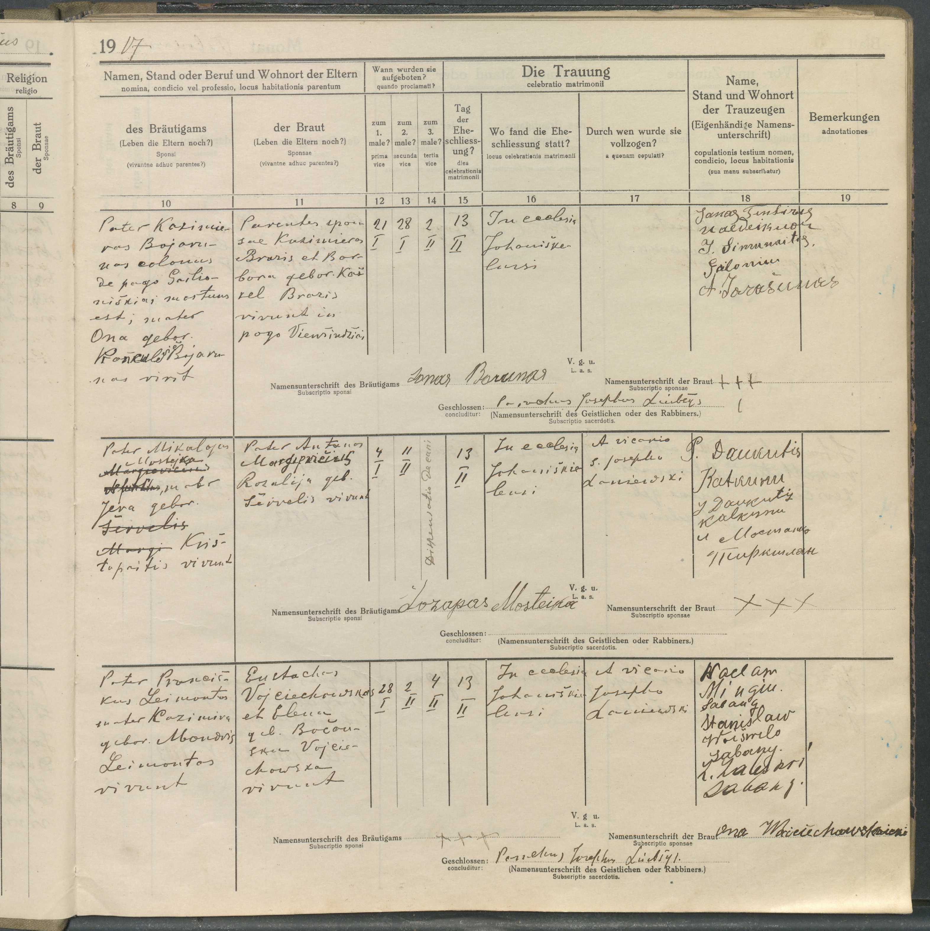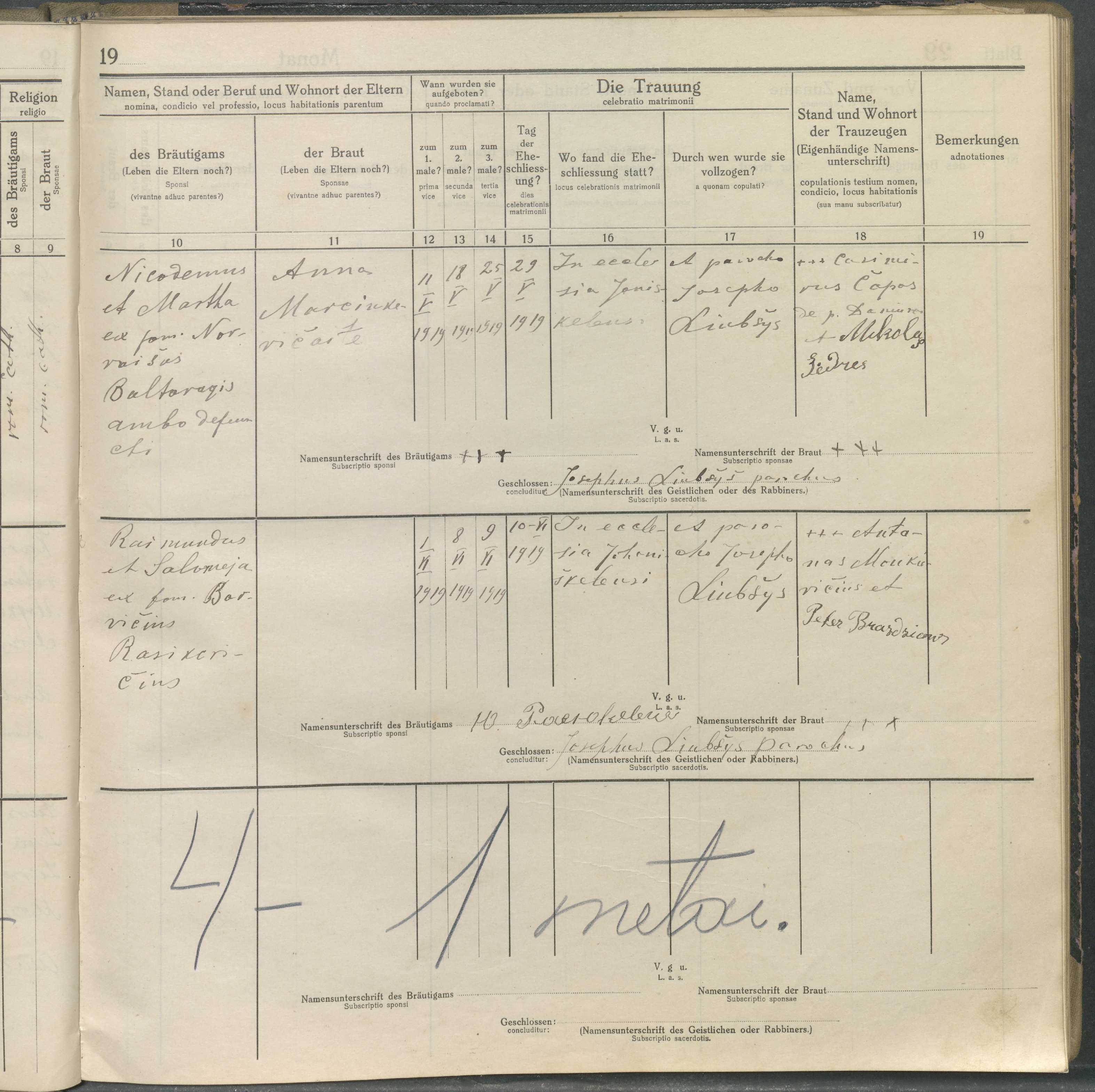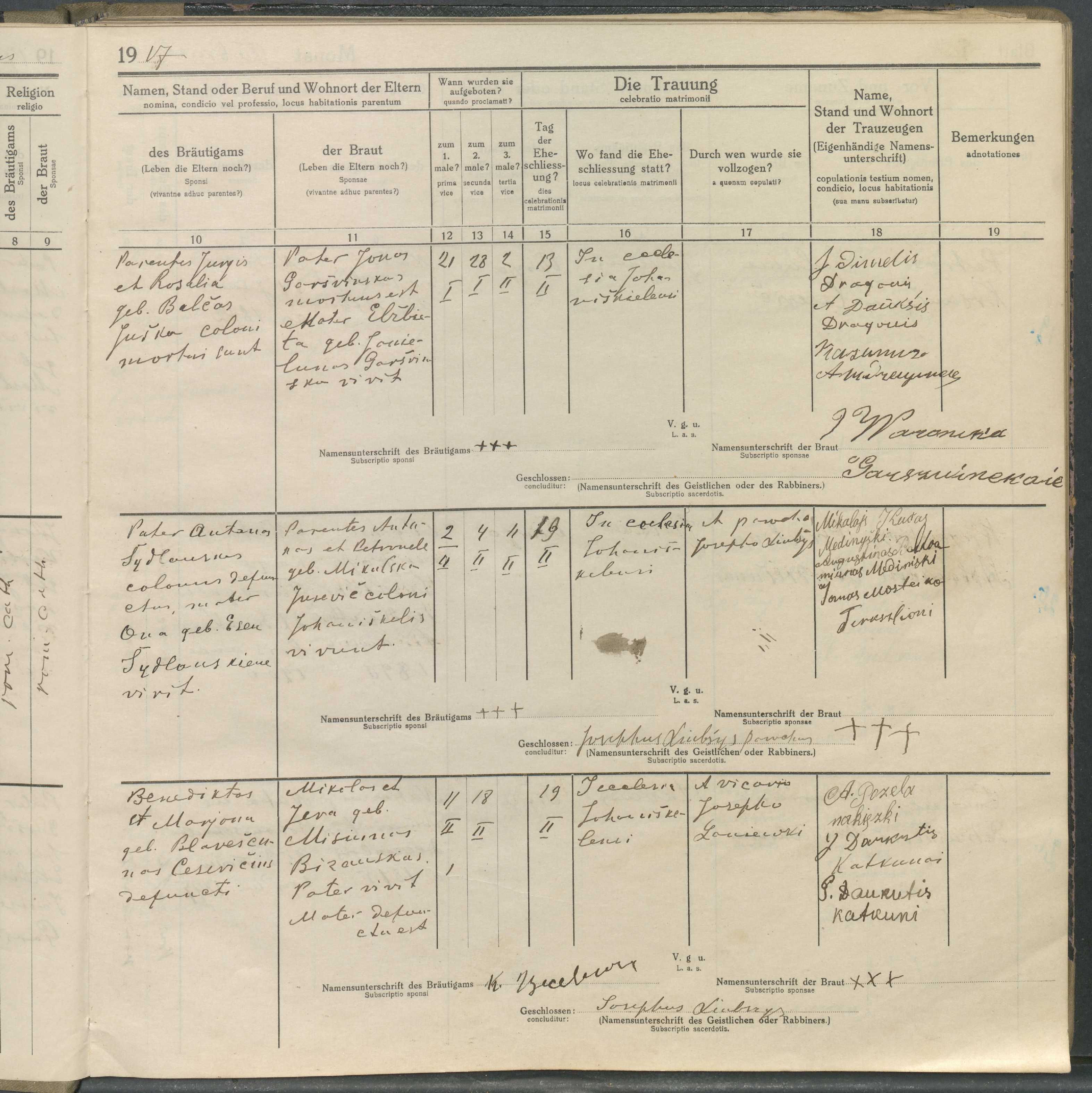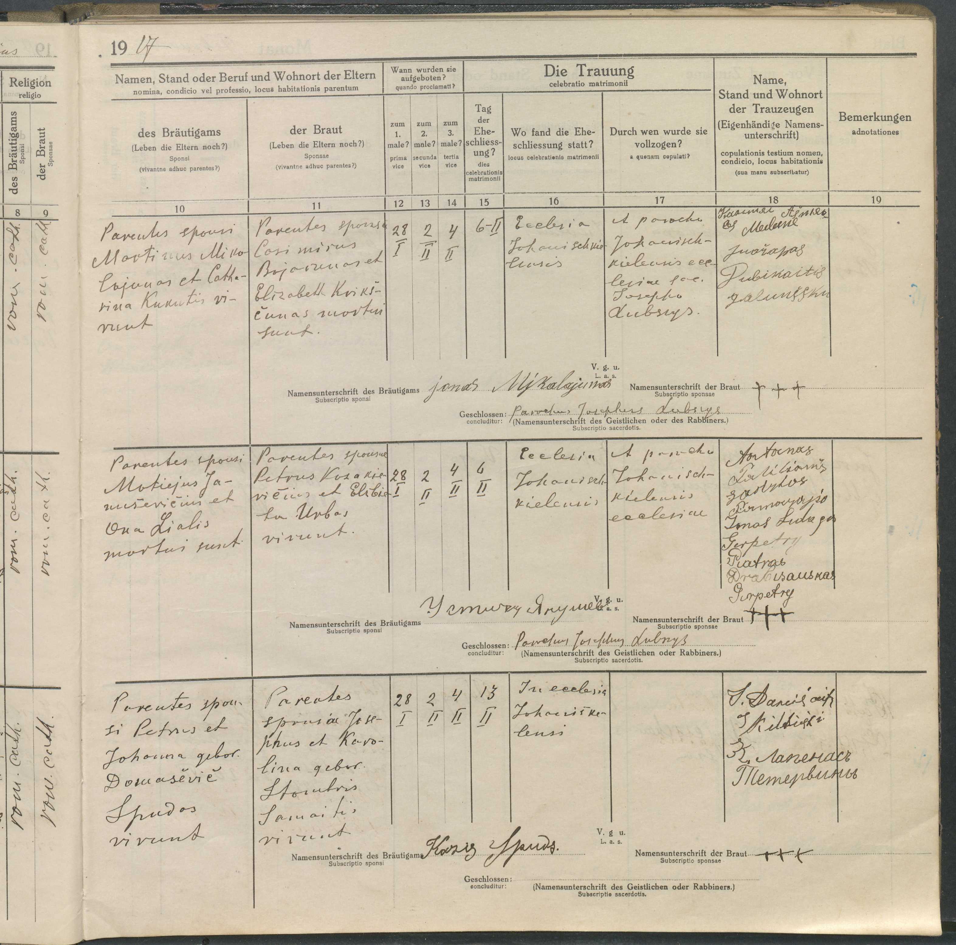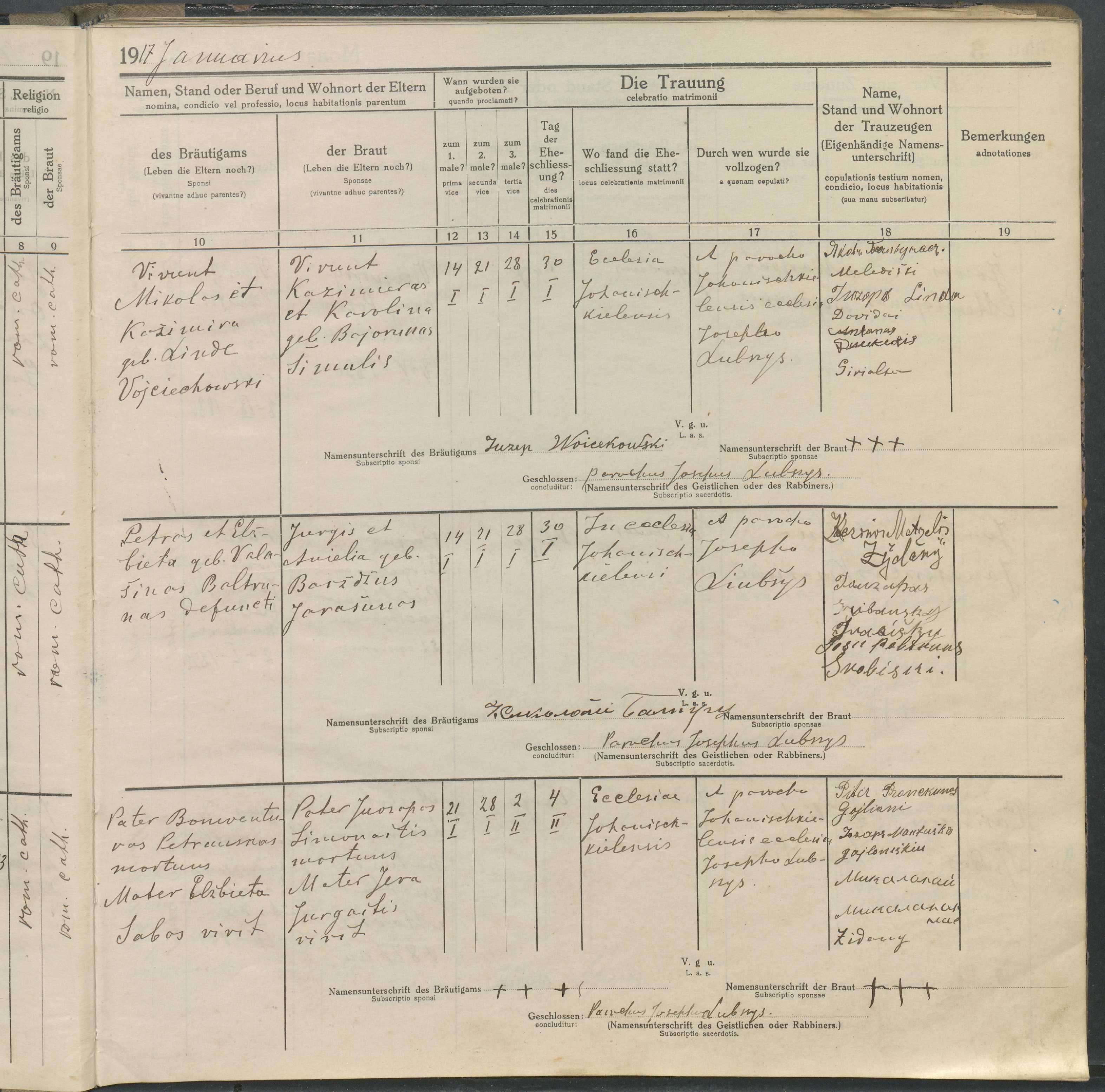 Joniškėlio Romos katalikų parapijos bažnyčios 1917–1919 metų jungtuvių metrikų knyga