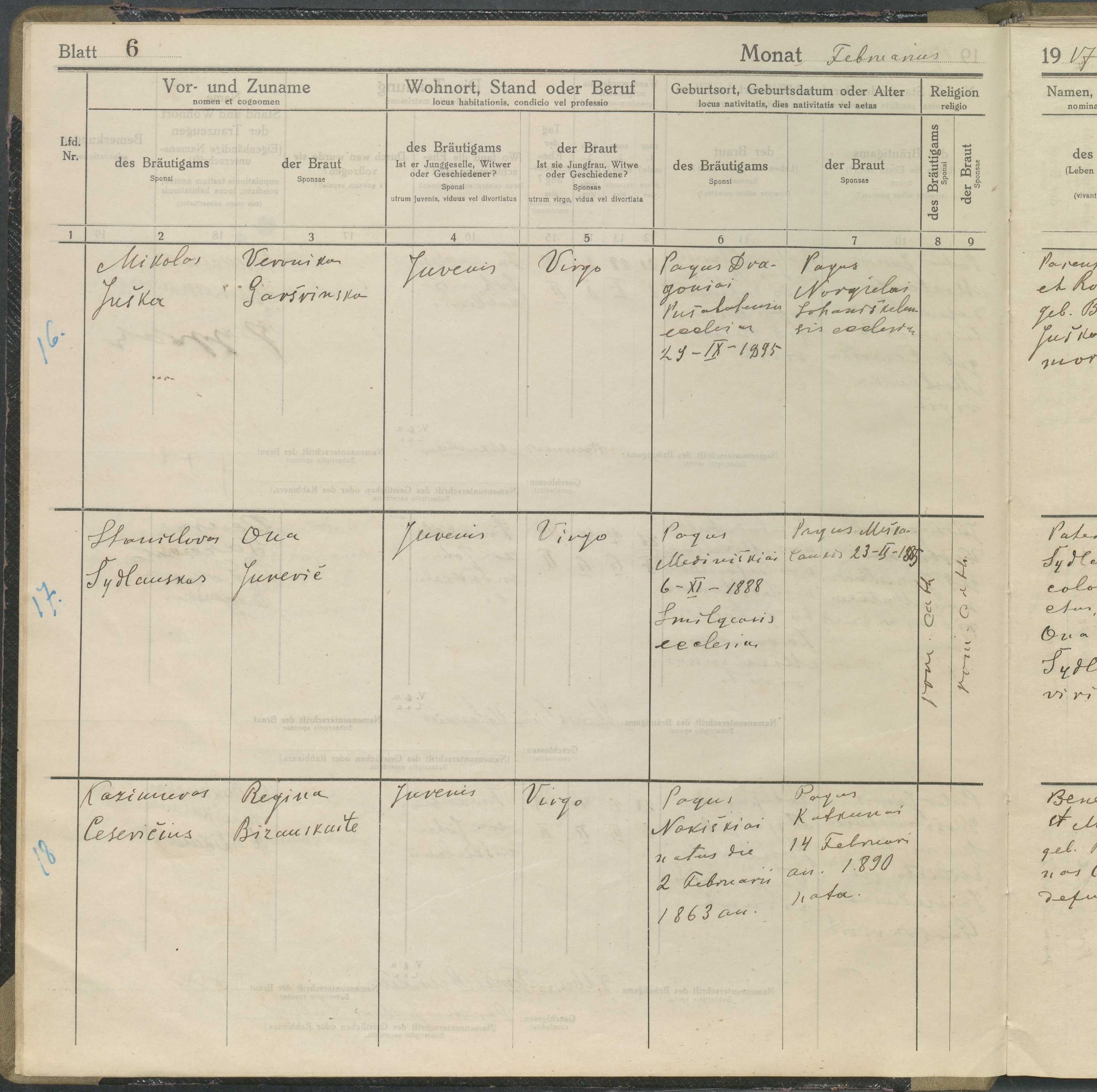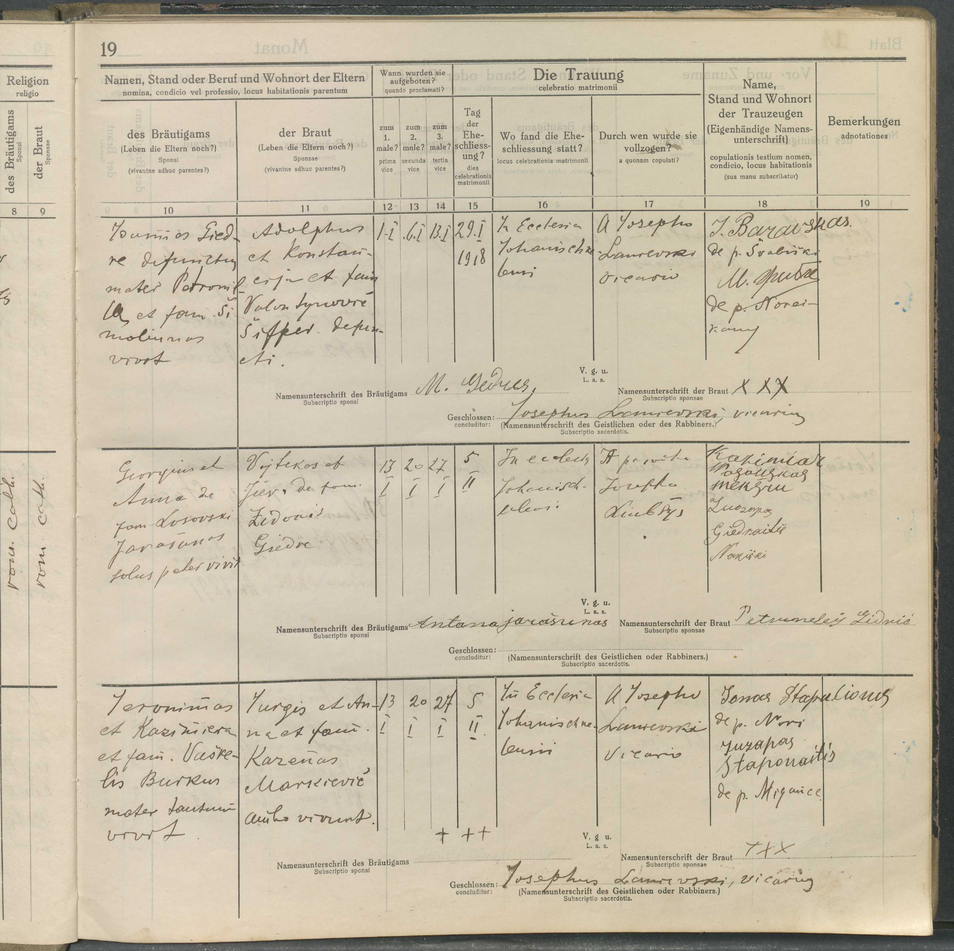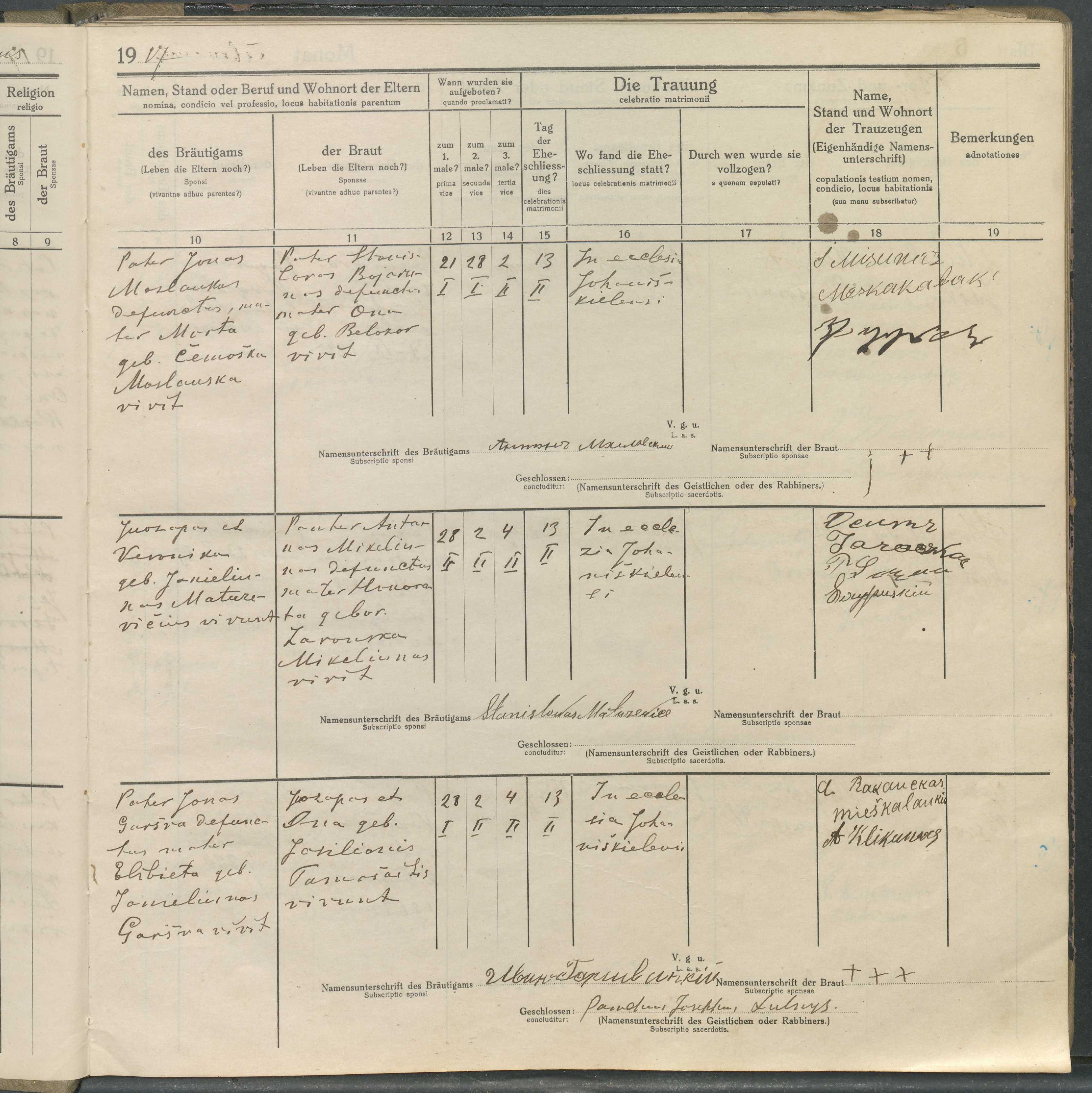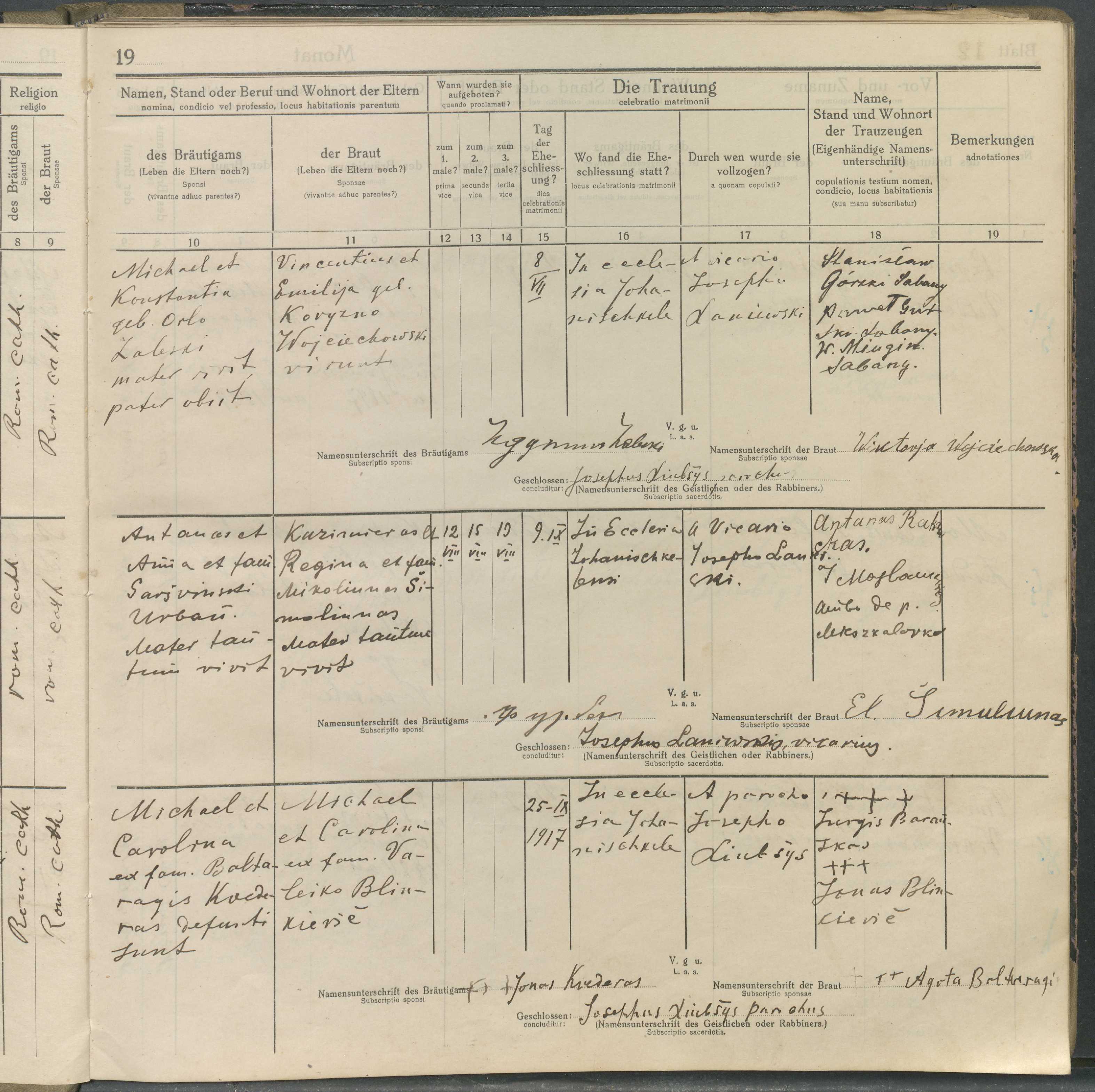 Joniškėlio Romos katalikų parapijos bažnyčios 1917–1919 metų jungtuvių metrikų knyga