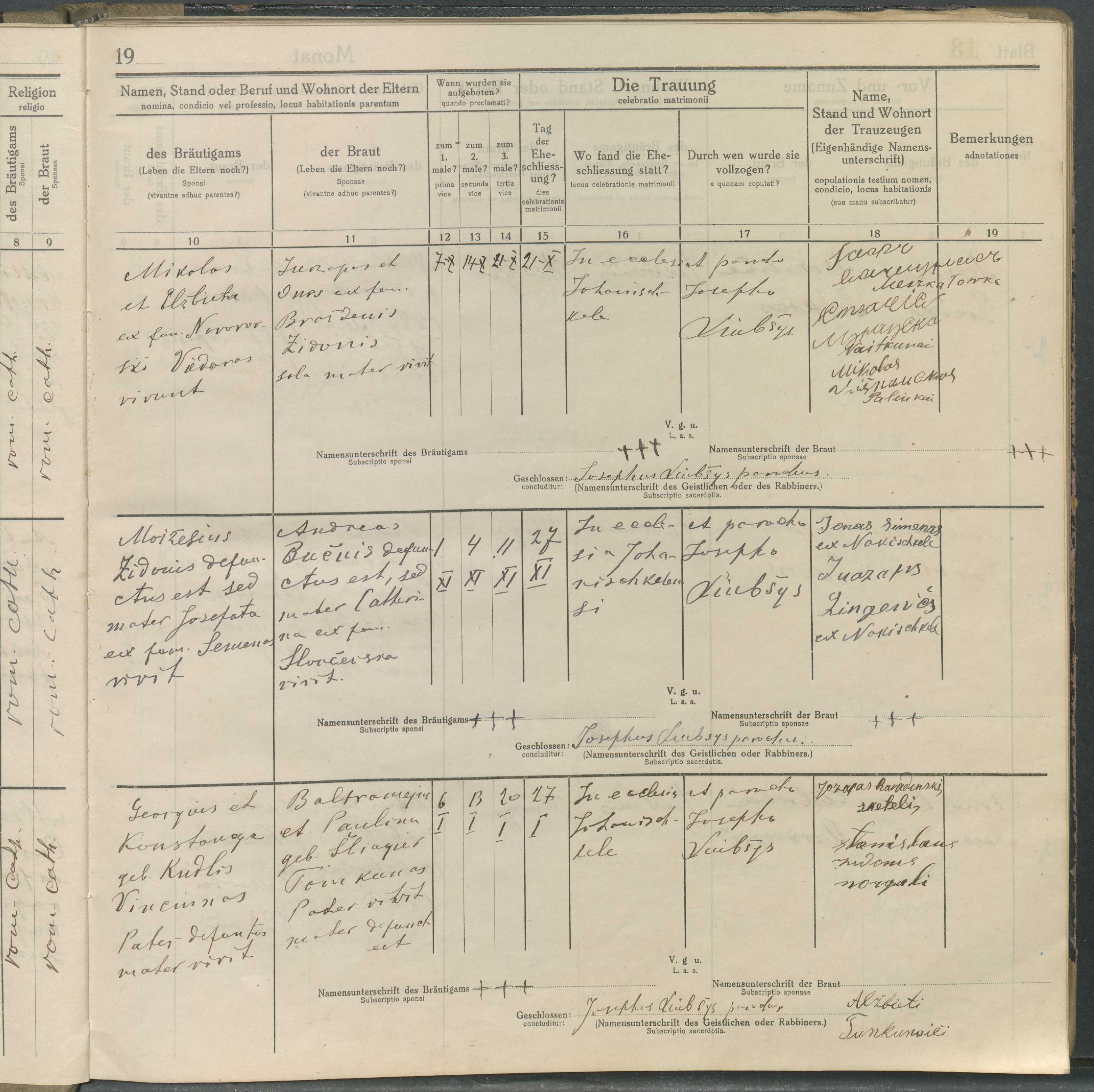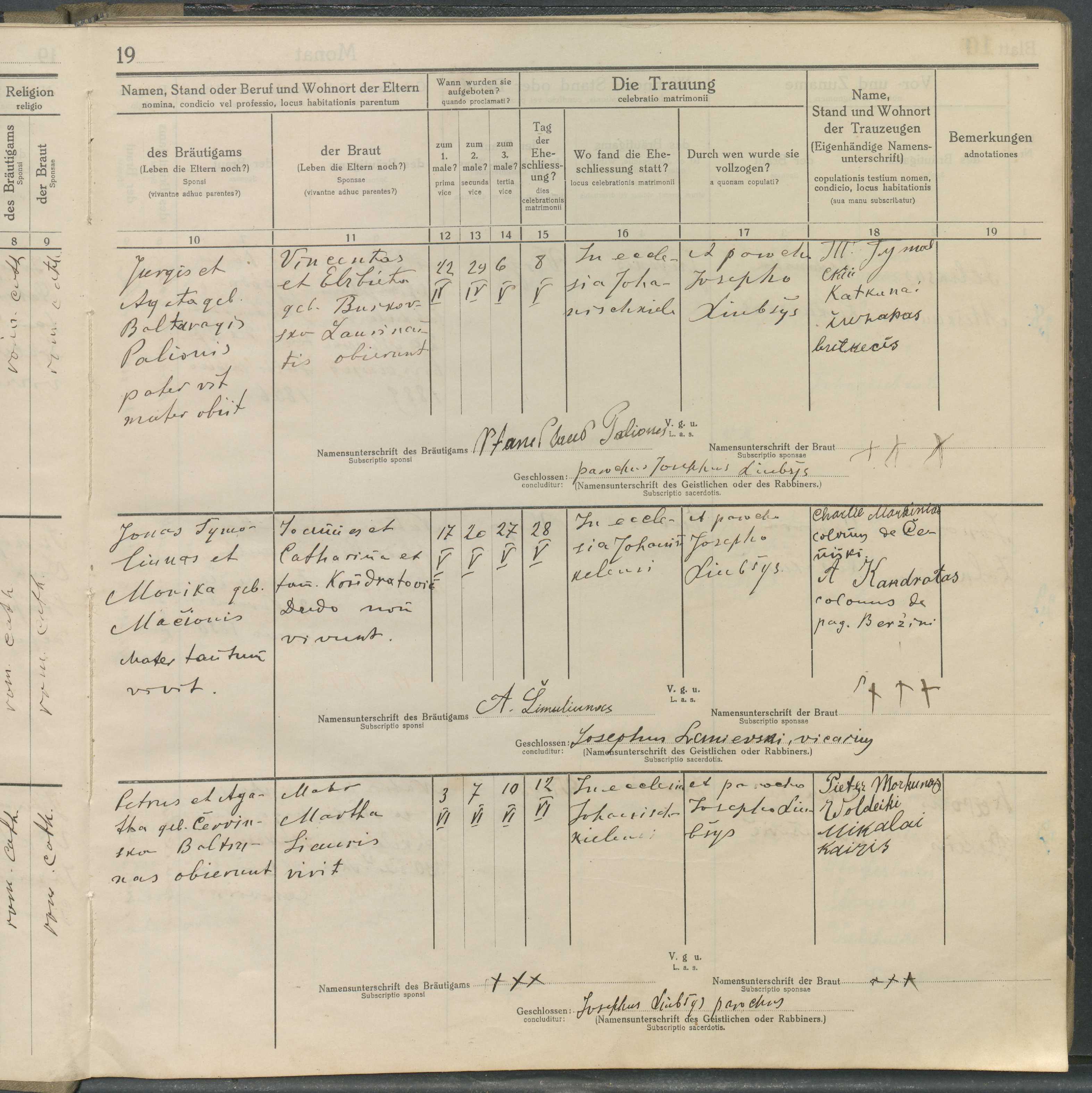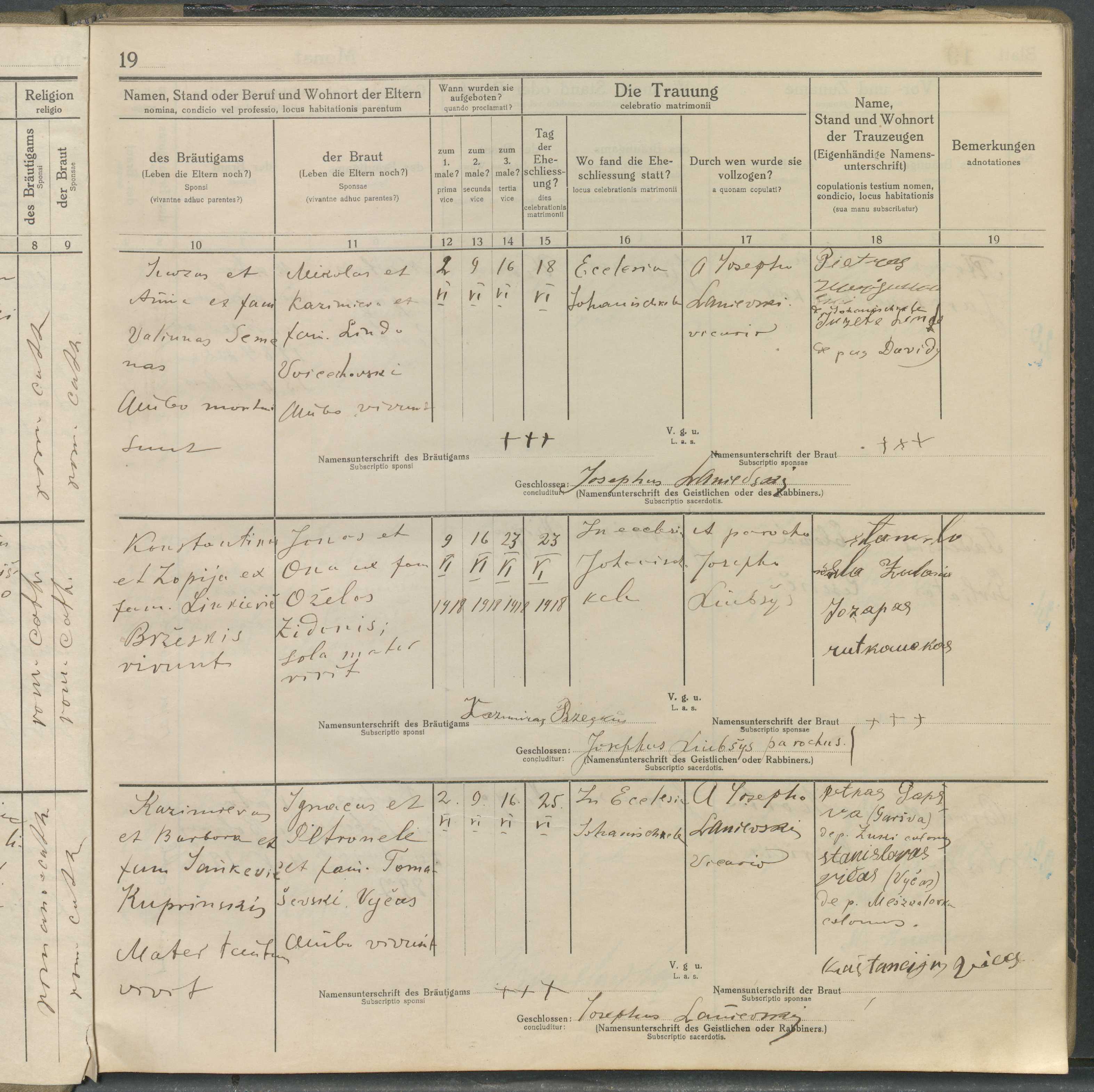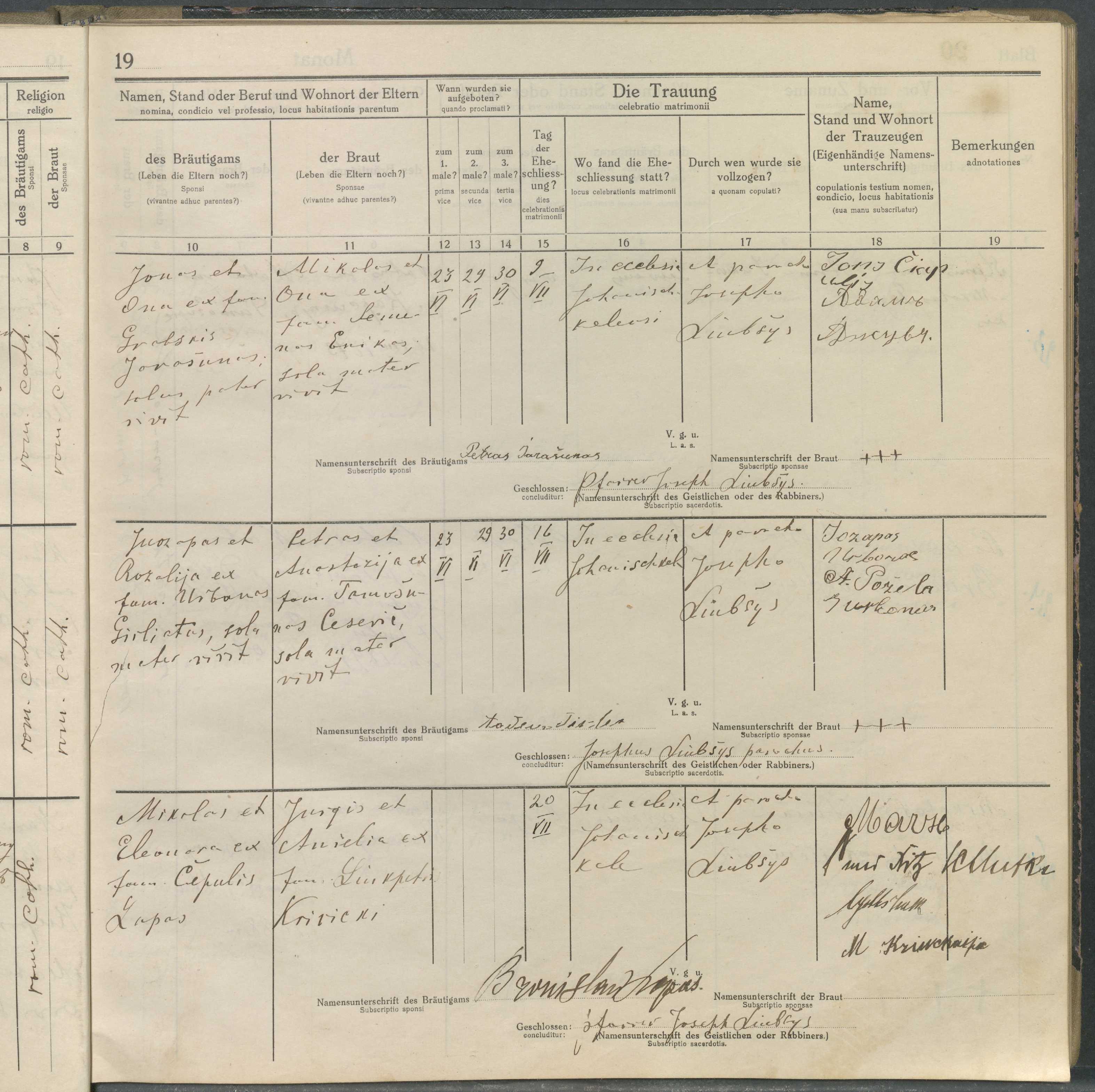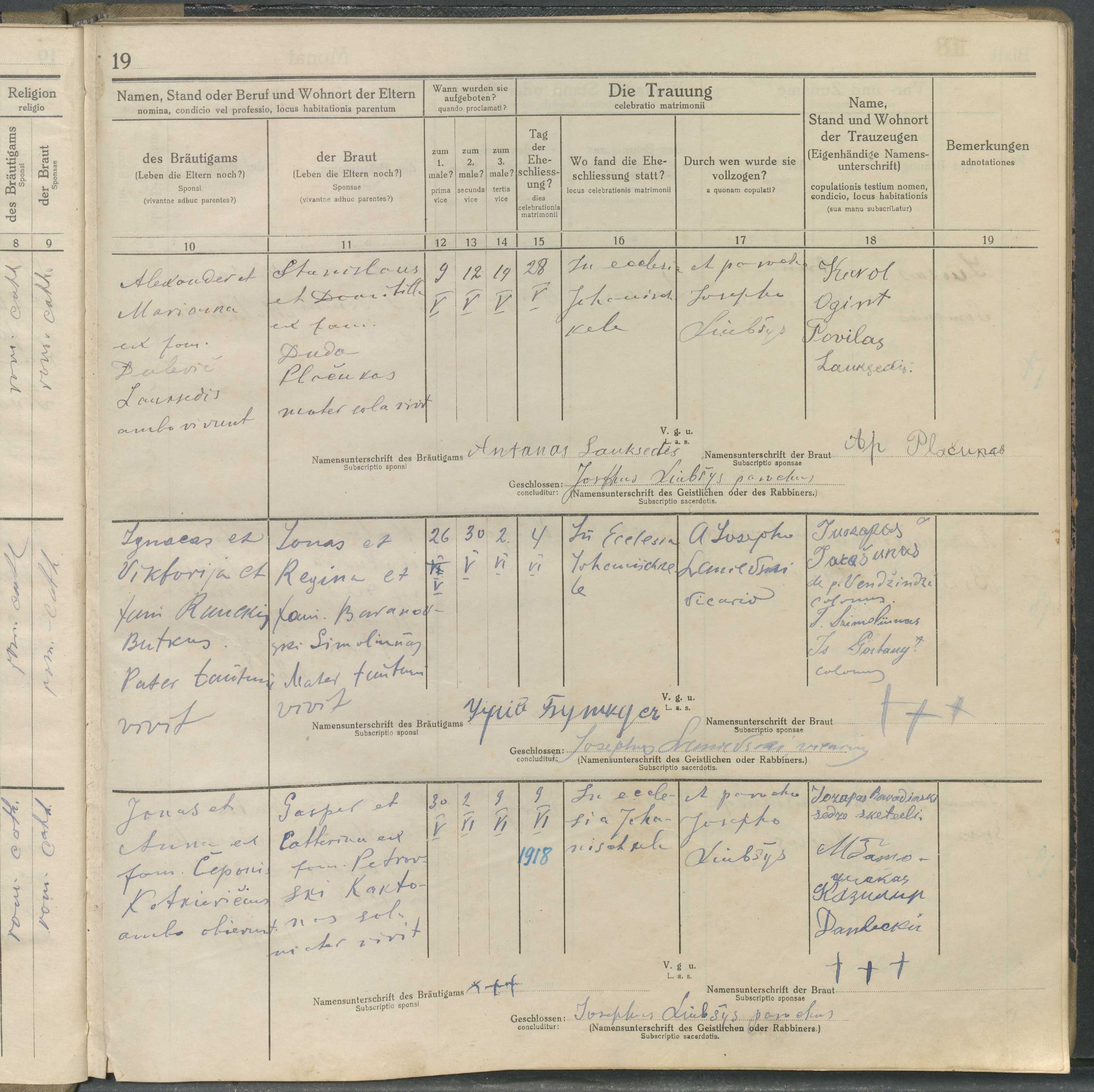 Joniškėlio Romos katalikų parapijos bažnyčios 1917–1919 metų jungtuvių metrikų knyga