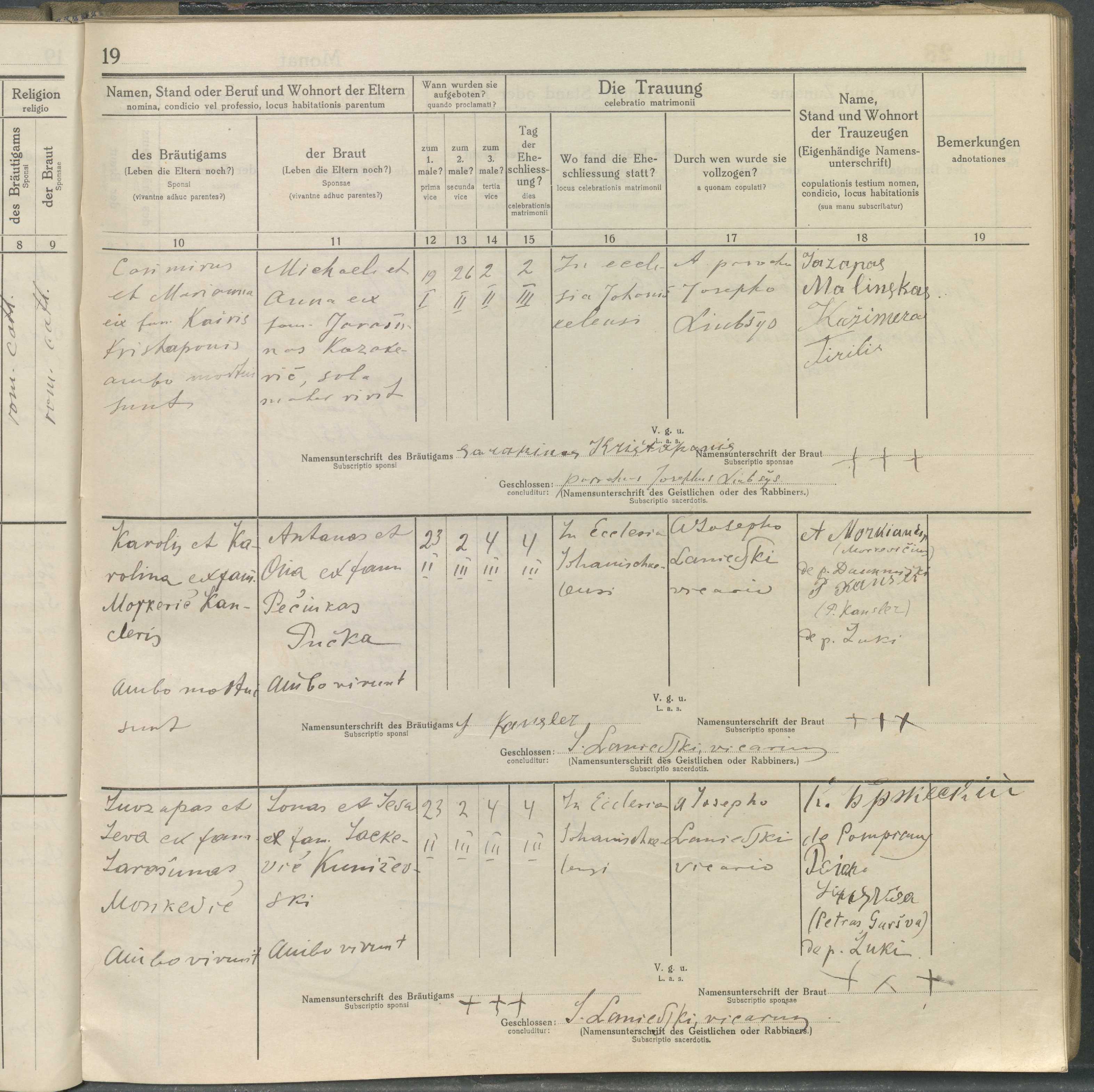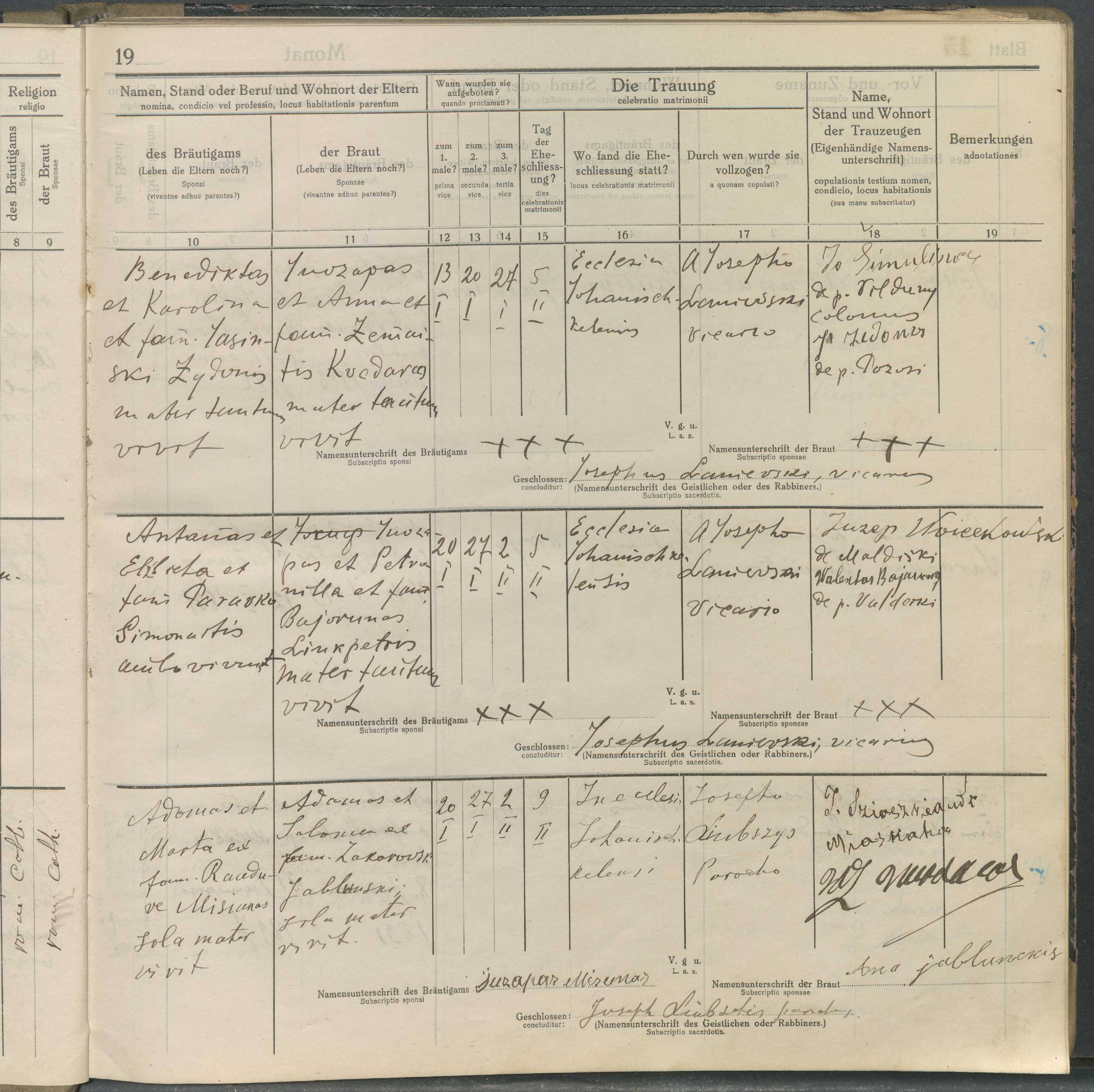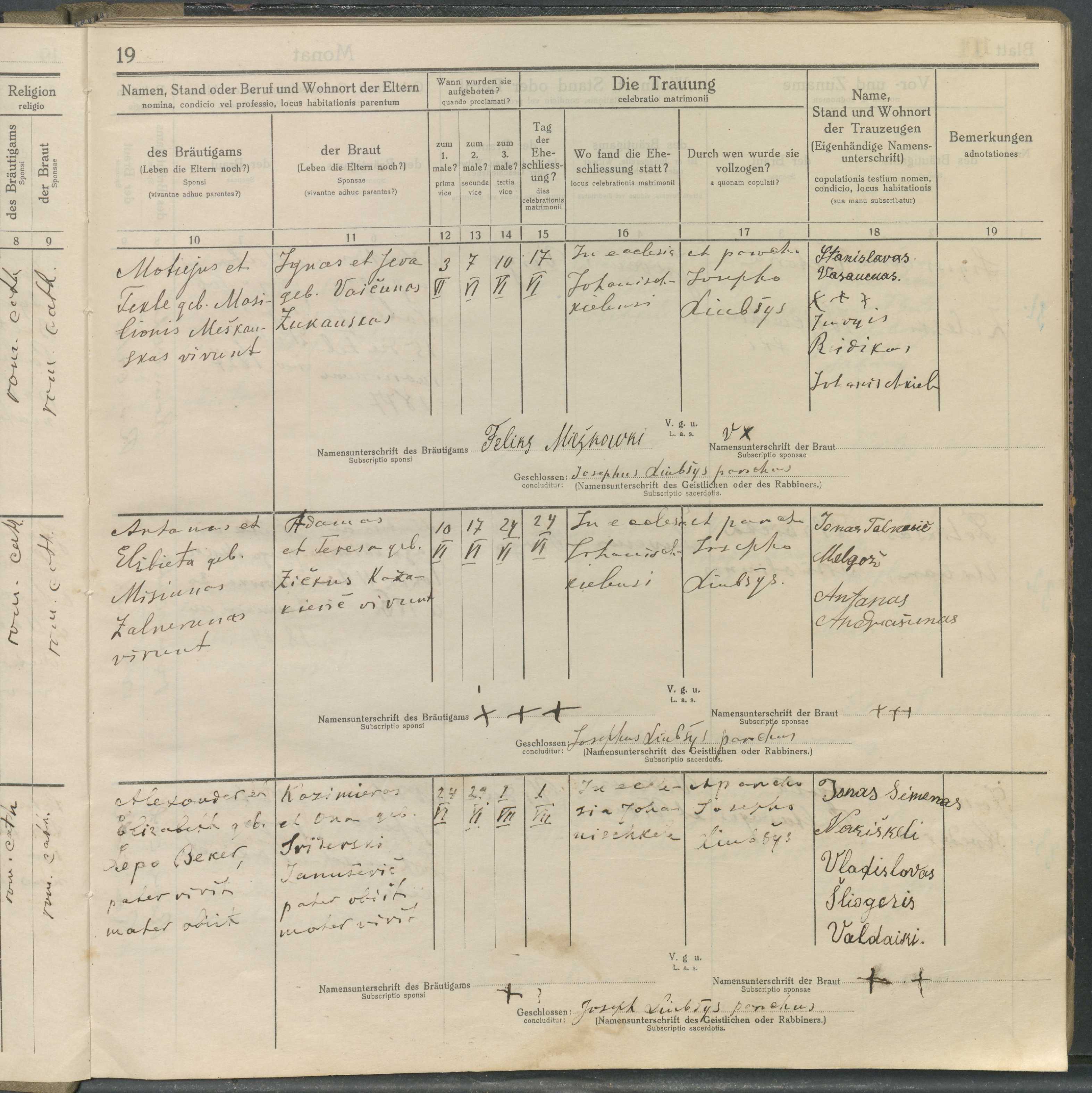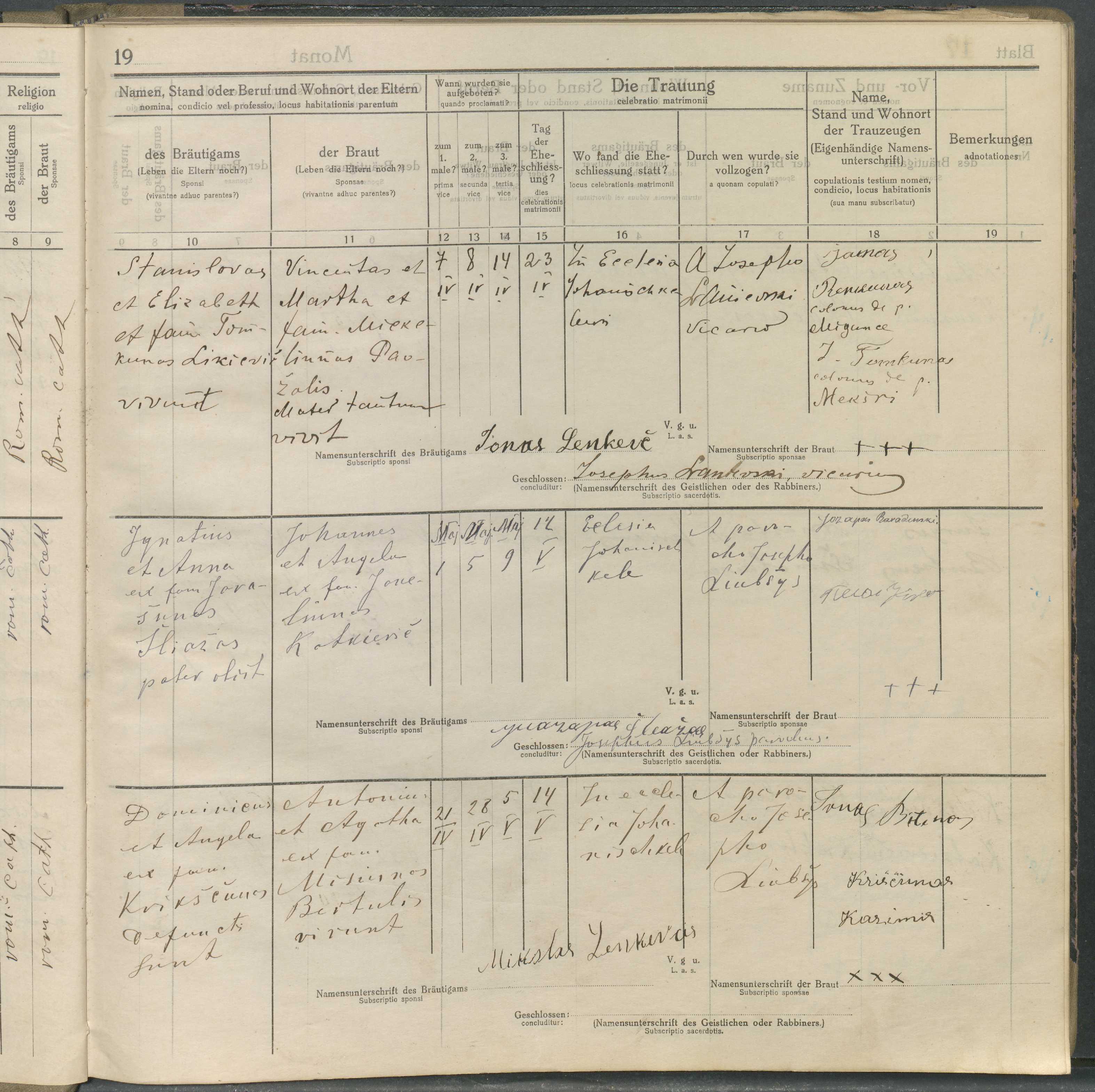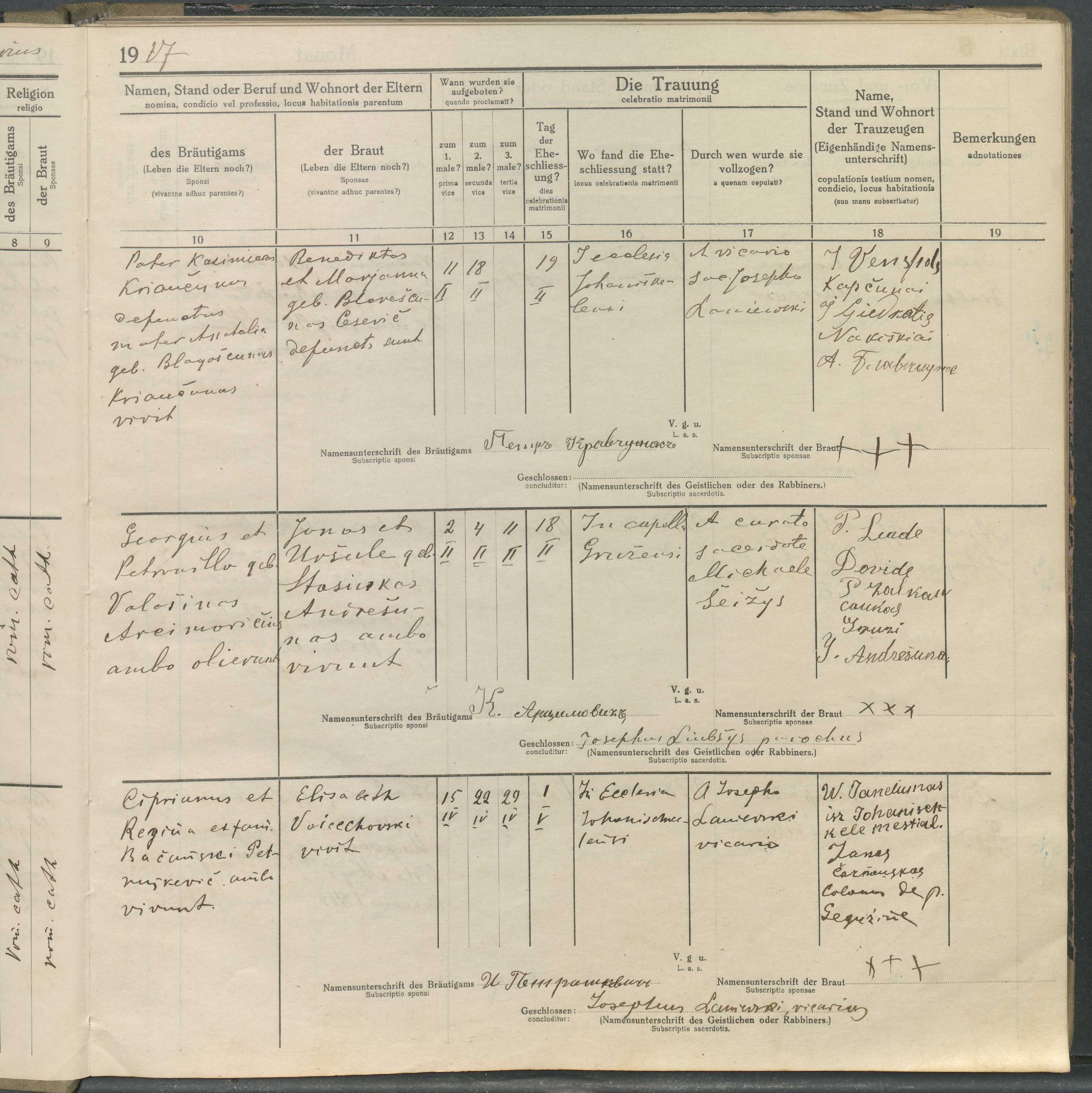 Joniškėlio Romos katalikų parapijos bažnyčios 1917–1919 metų jungtuvių metrikų knyga