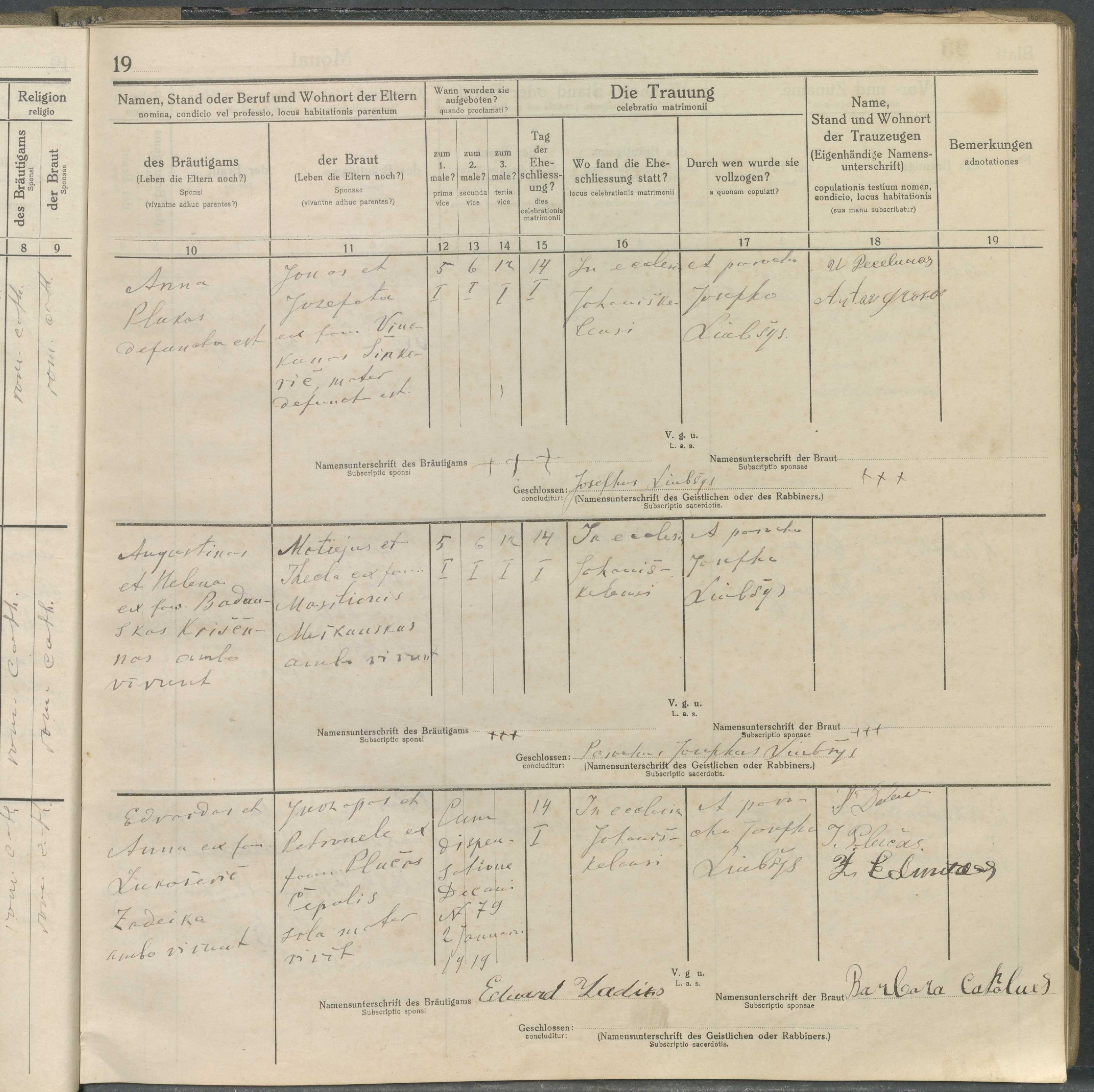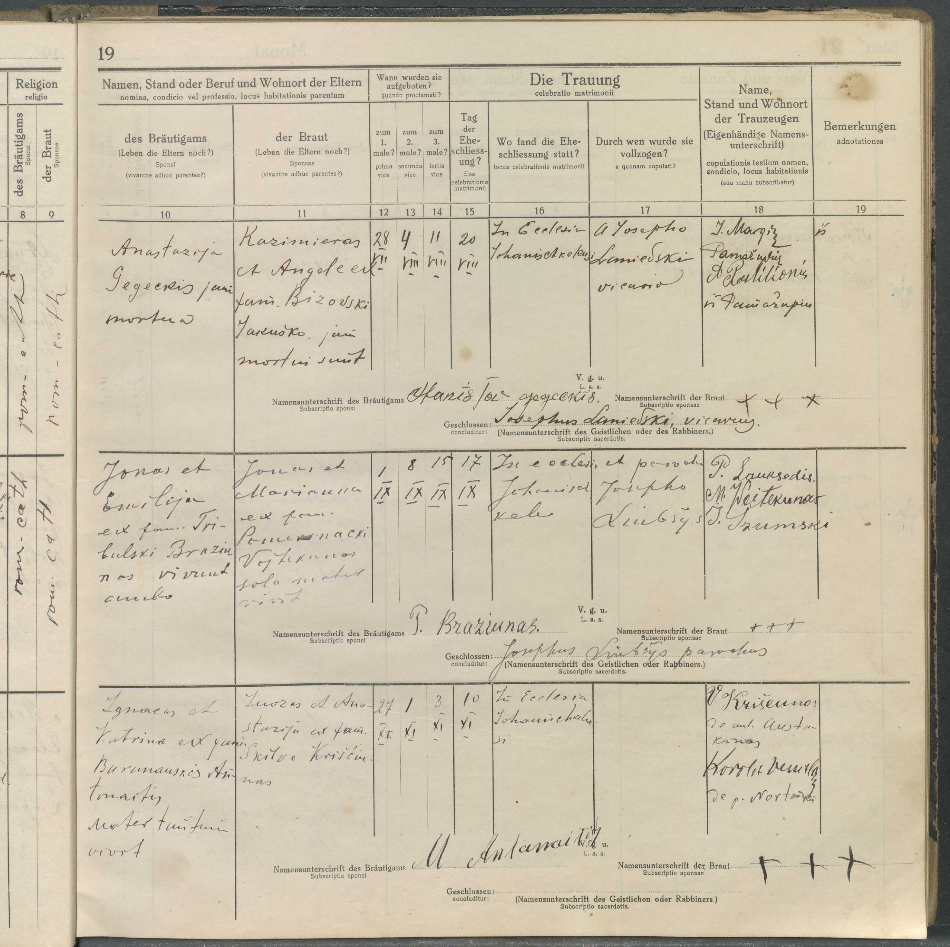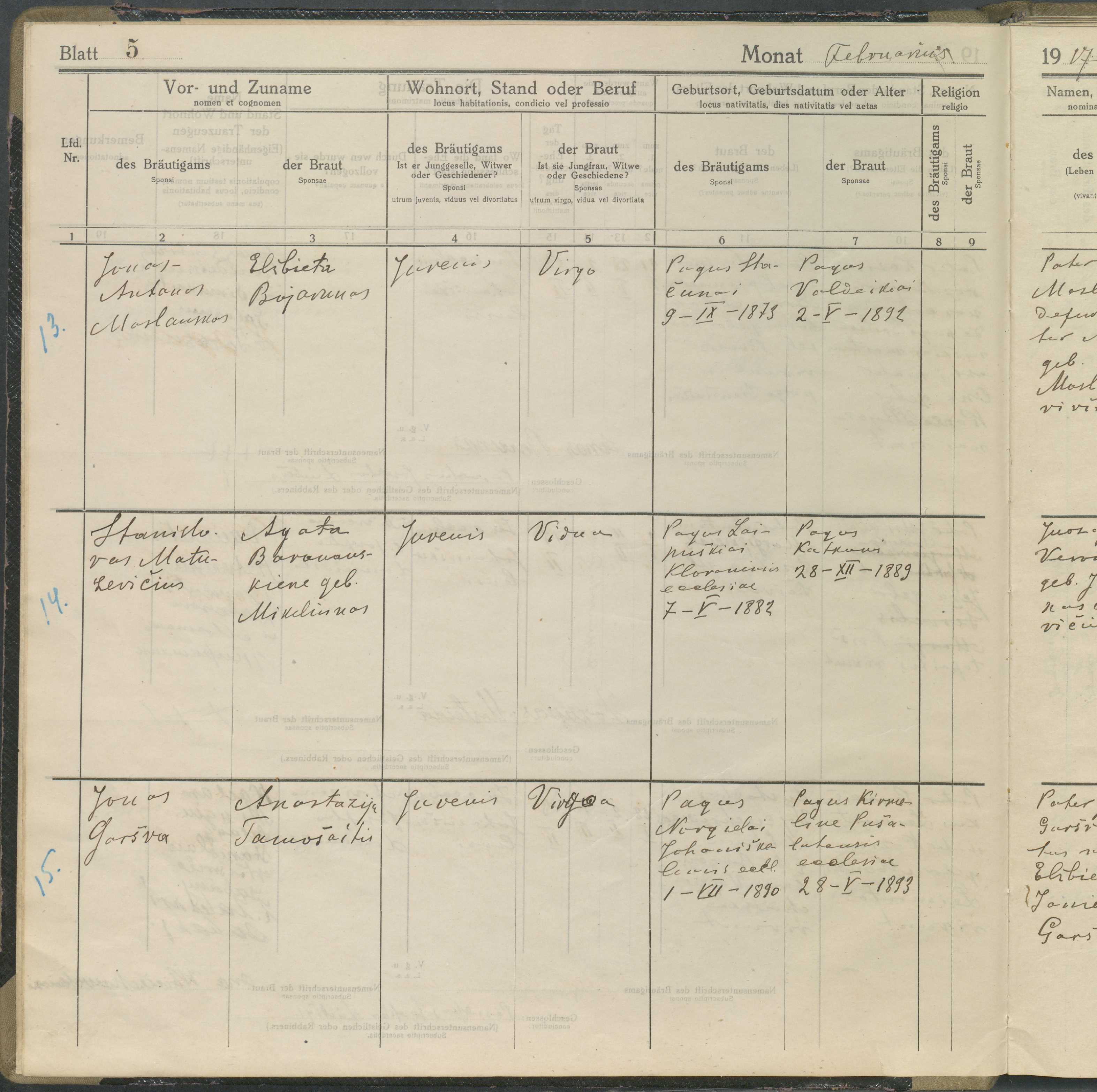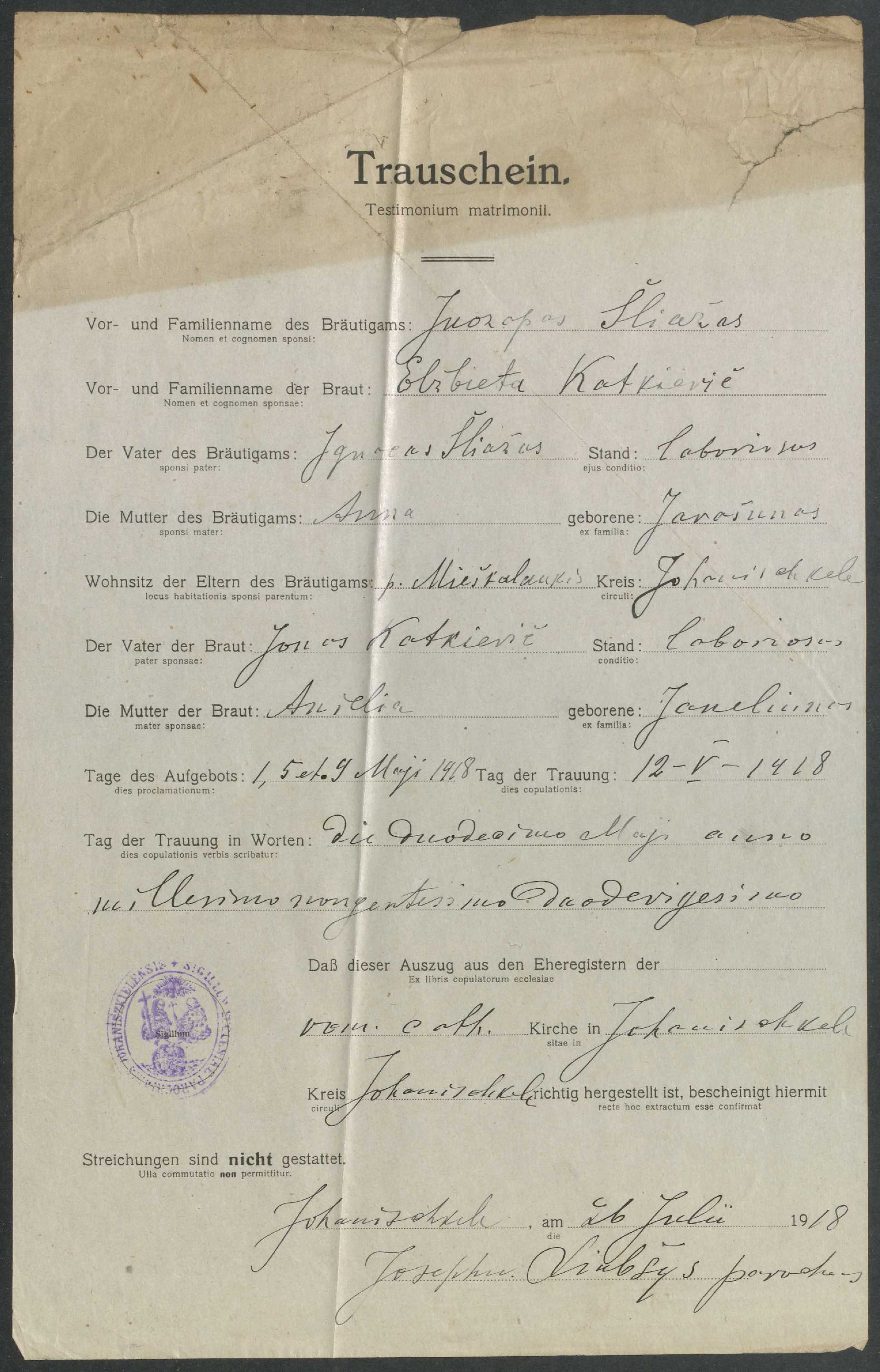 Joniškėlio Romos katalikų parapijos bažnyčios 1917–1919 metų jungtuvių metrikų knyga