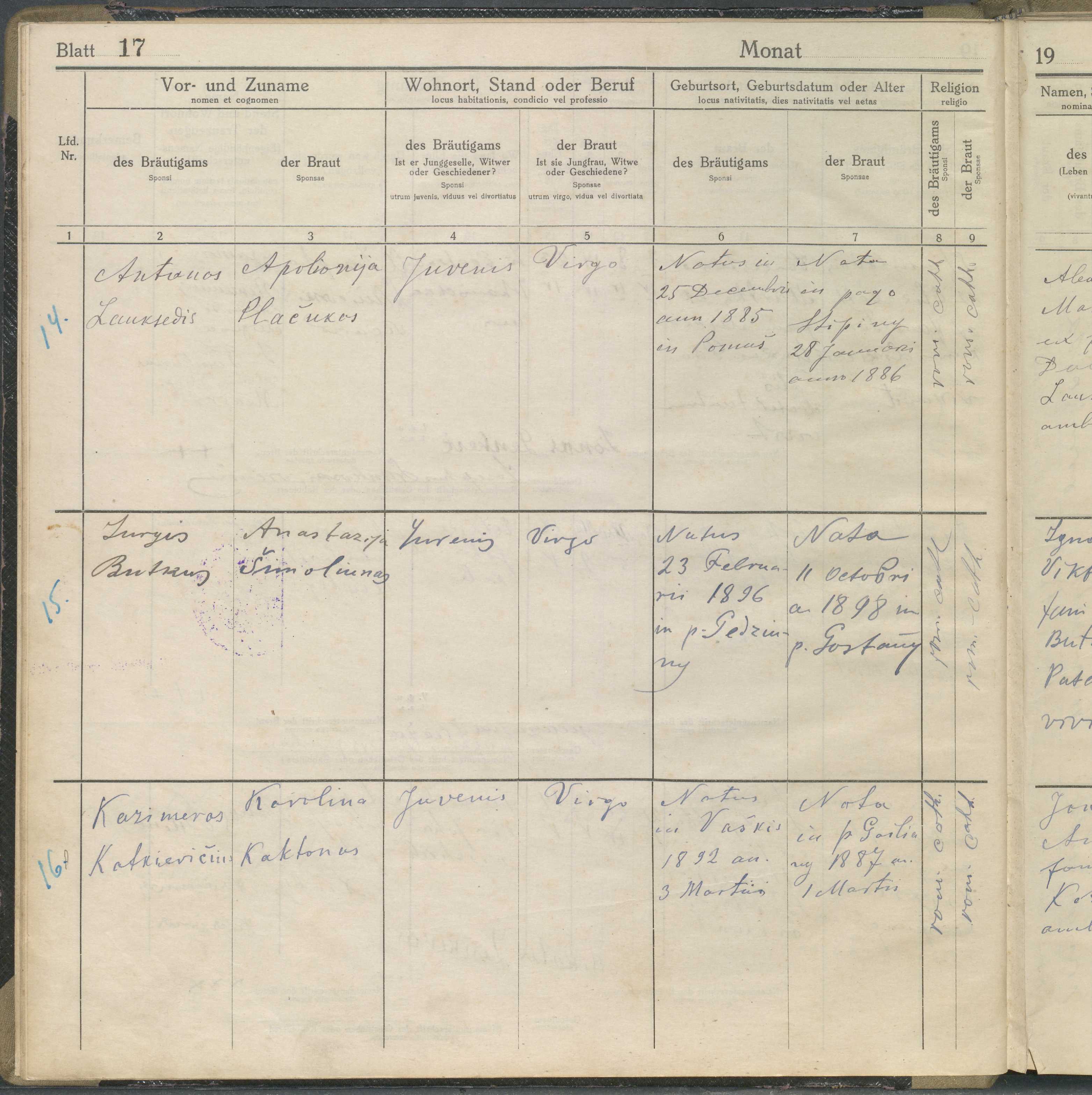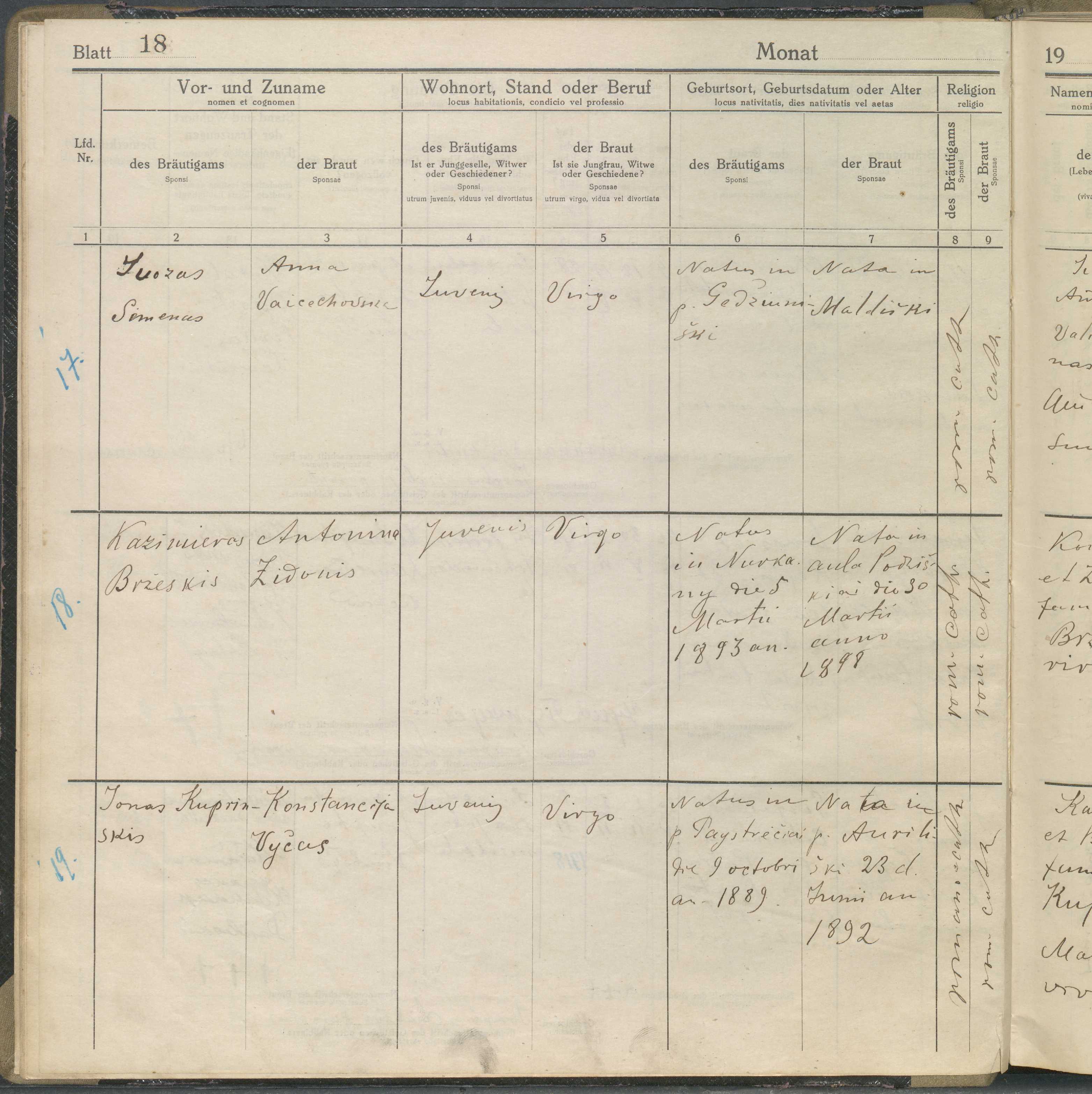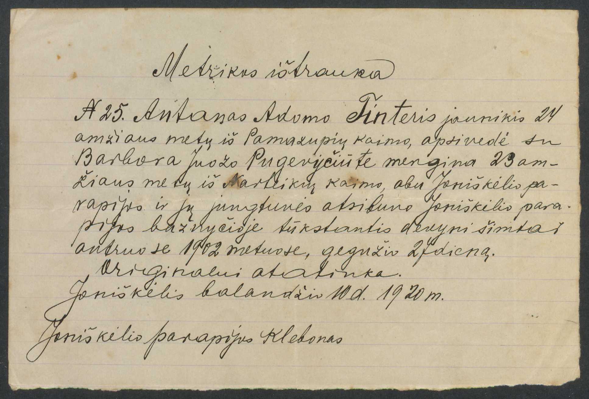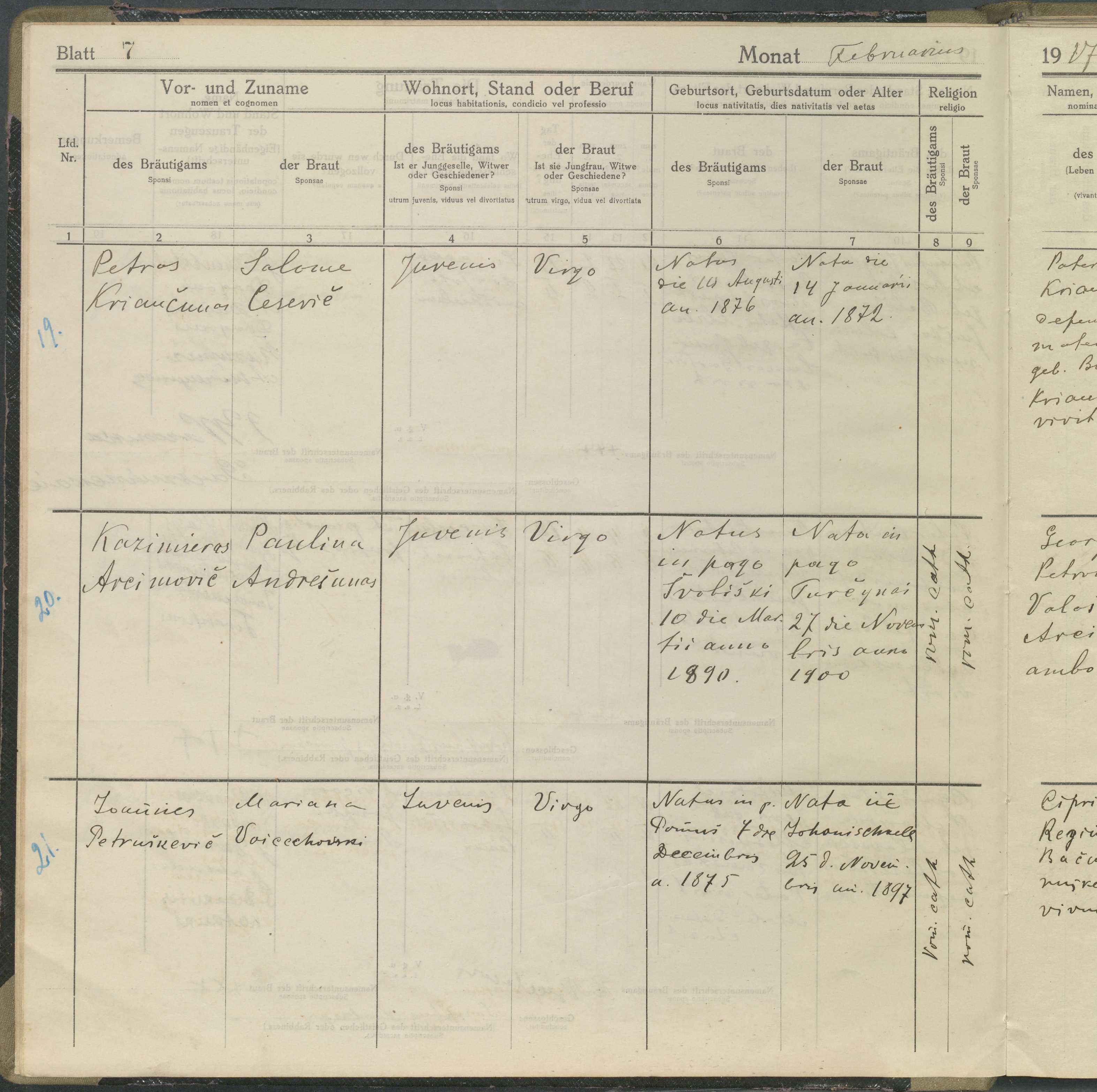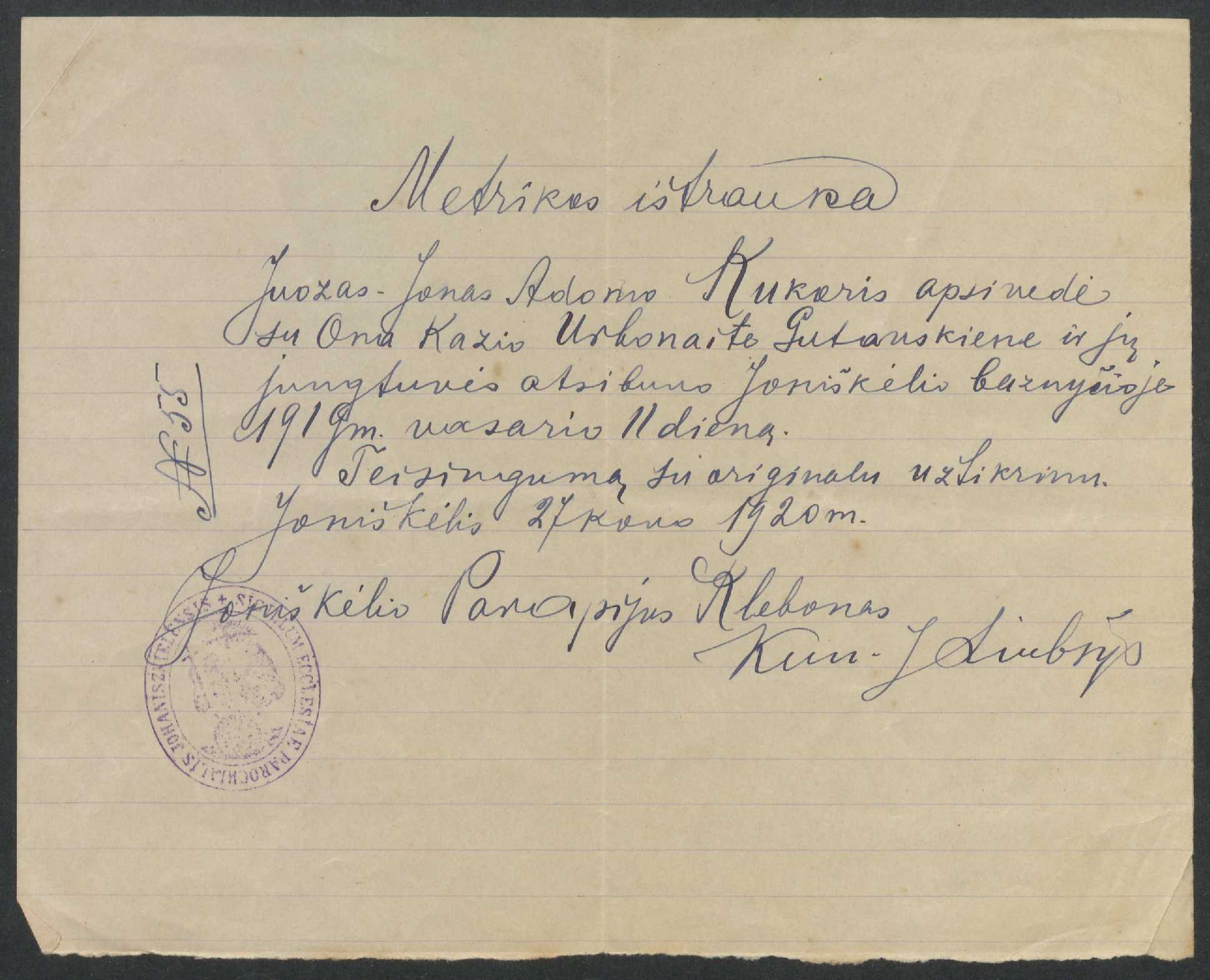 Joniškėlio Romos katalikų parapijos bažnyčios 1917–1919 metų jungtuvių metrikų knyga