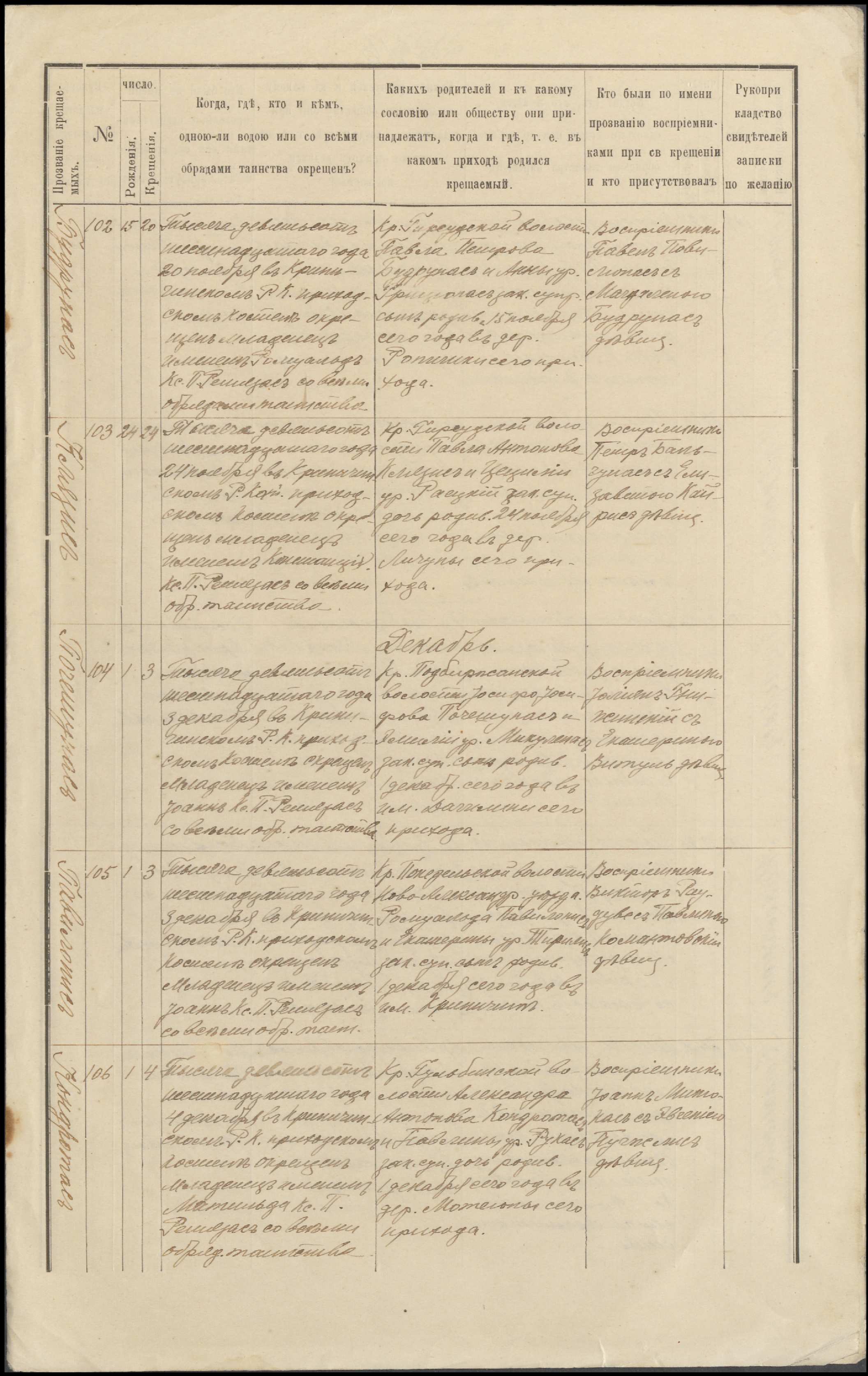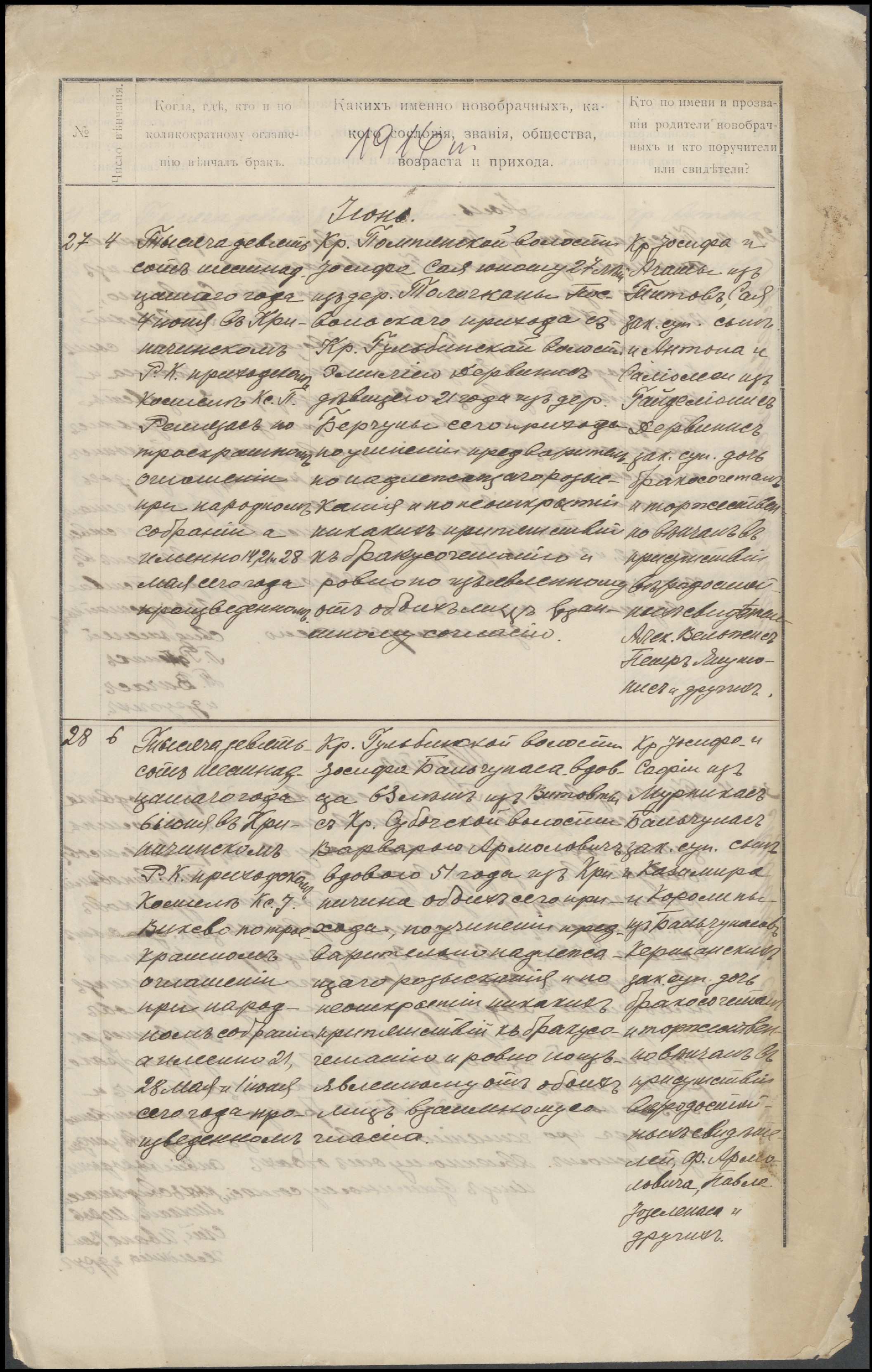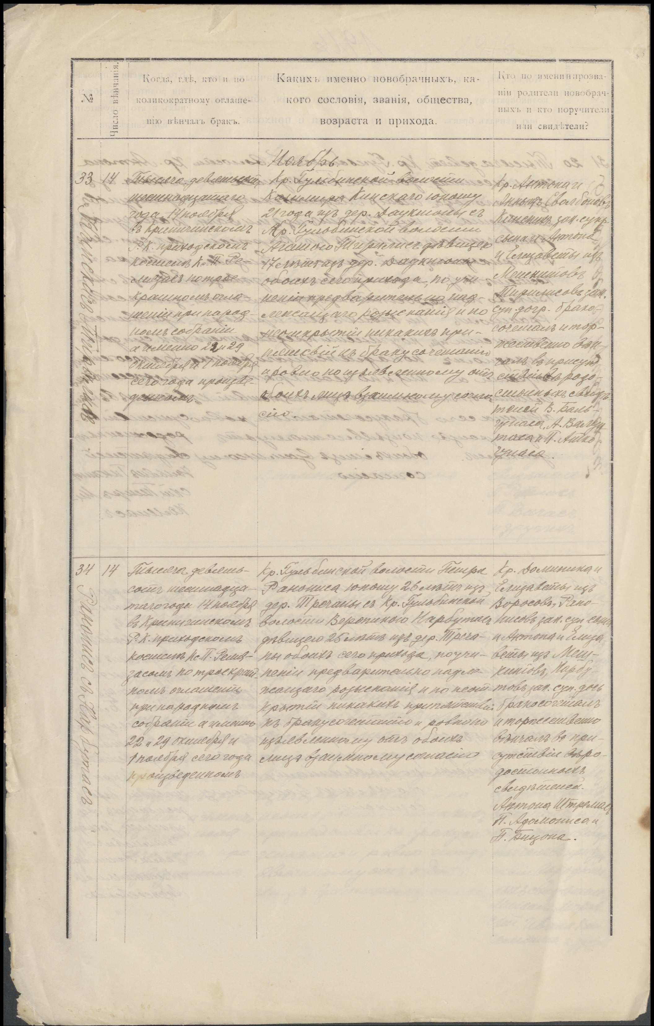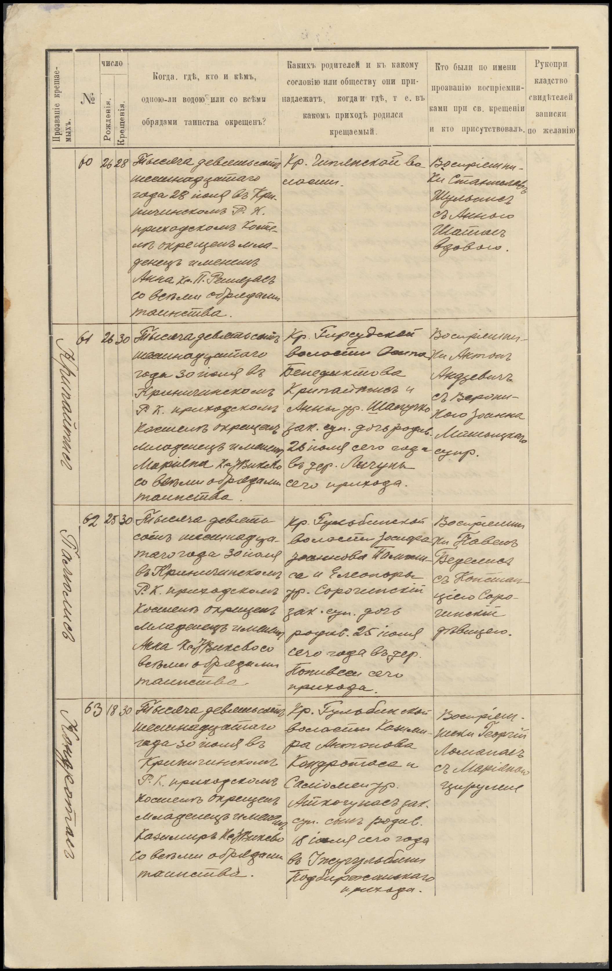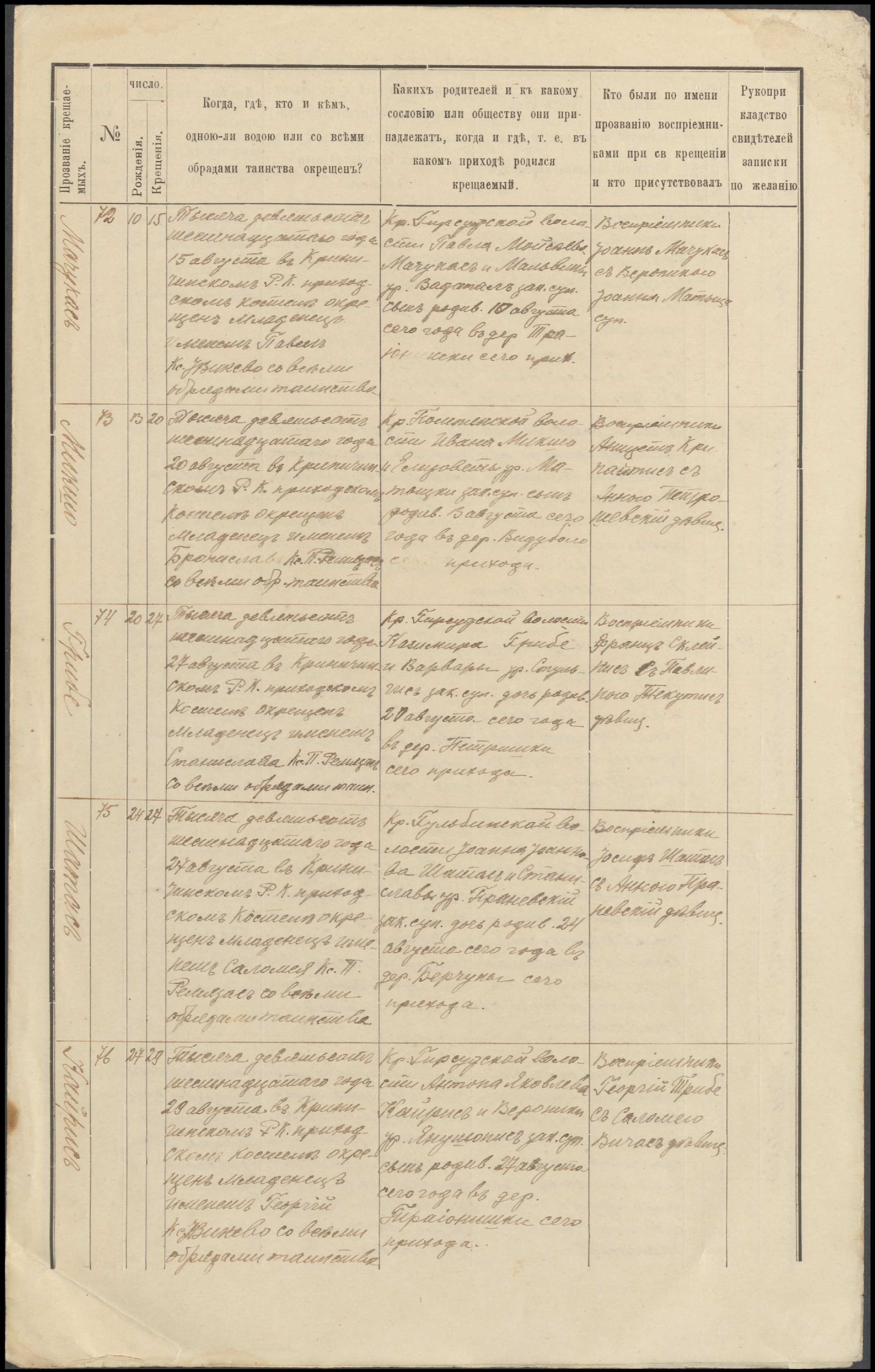 Krinčino Romos katalikų parapijos bažnyčios 1916 metų krikšto ir jungtuvių metrikų kopijos, fragmentai