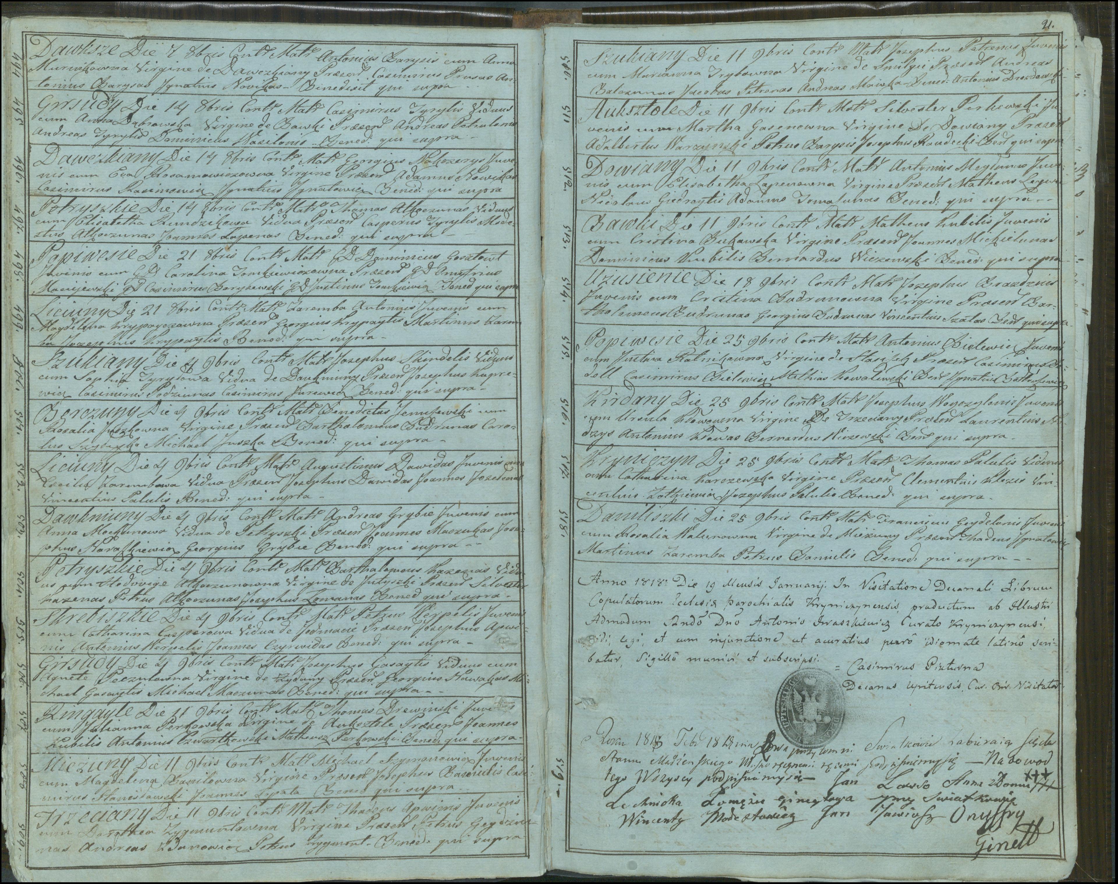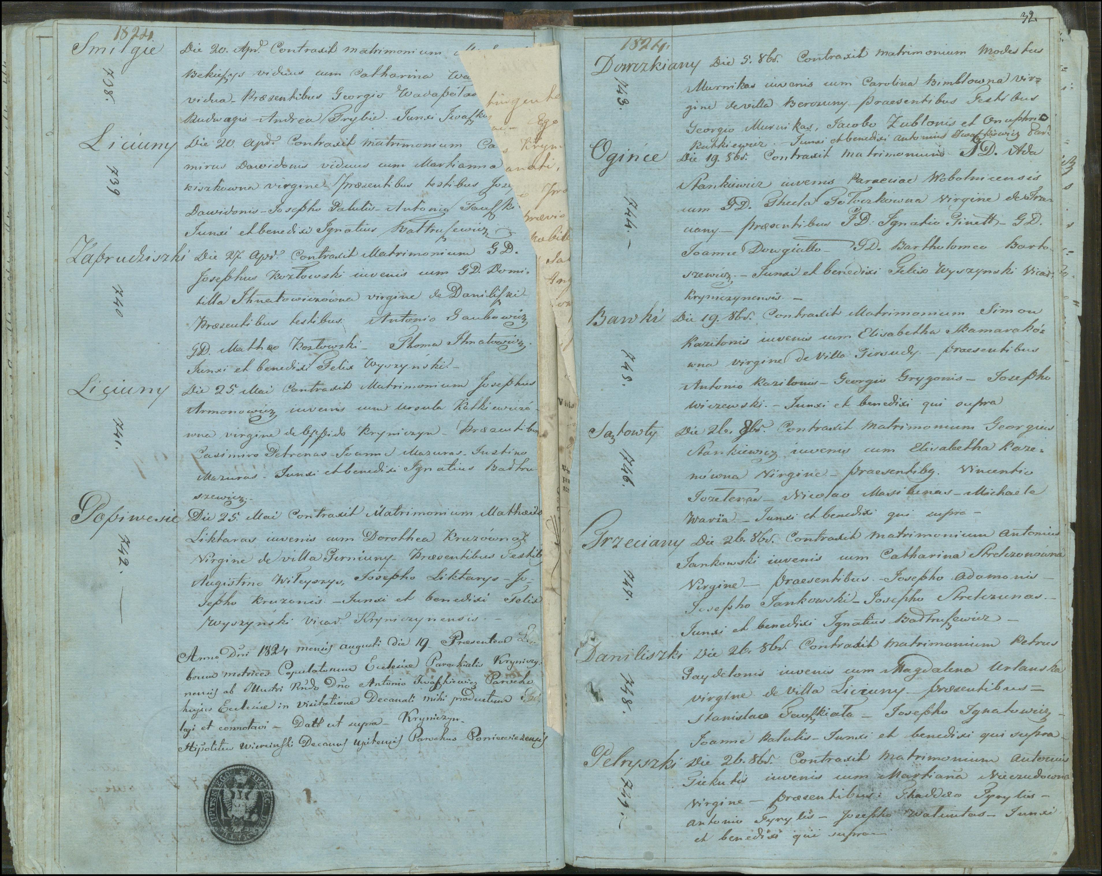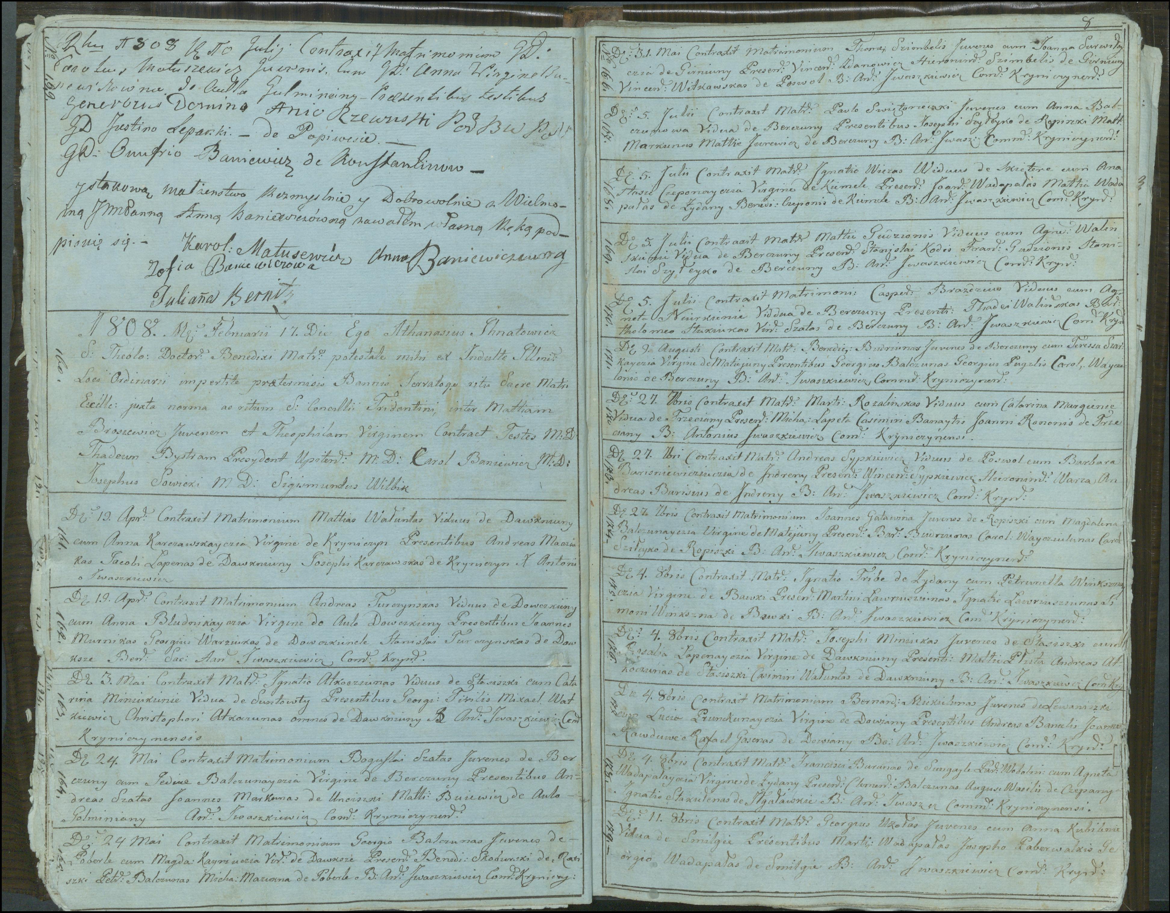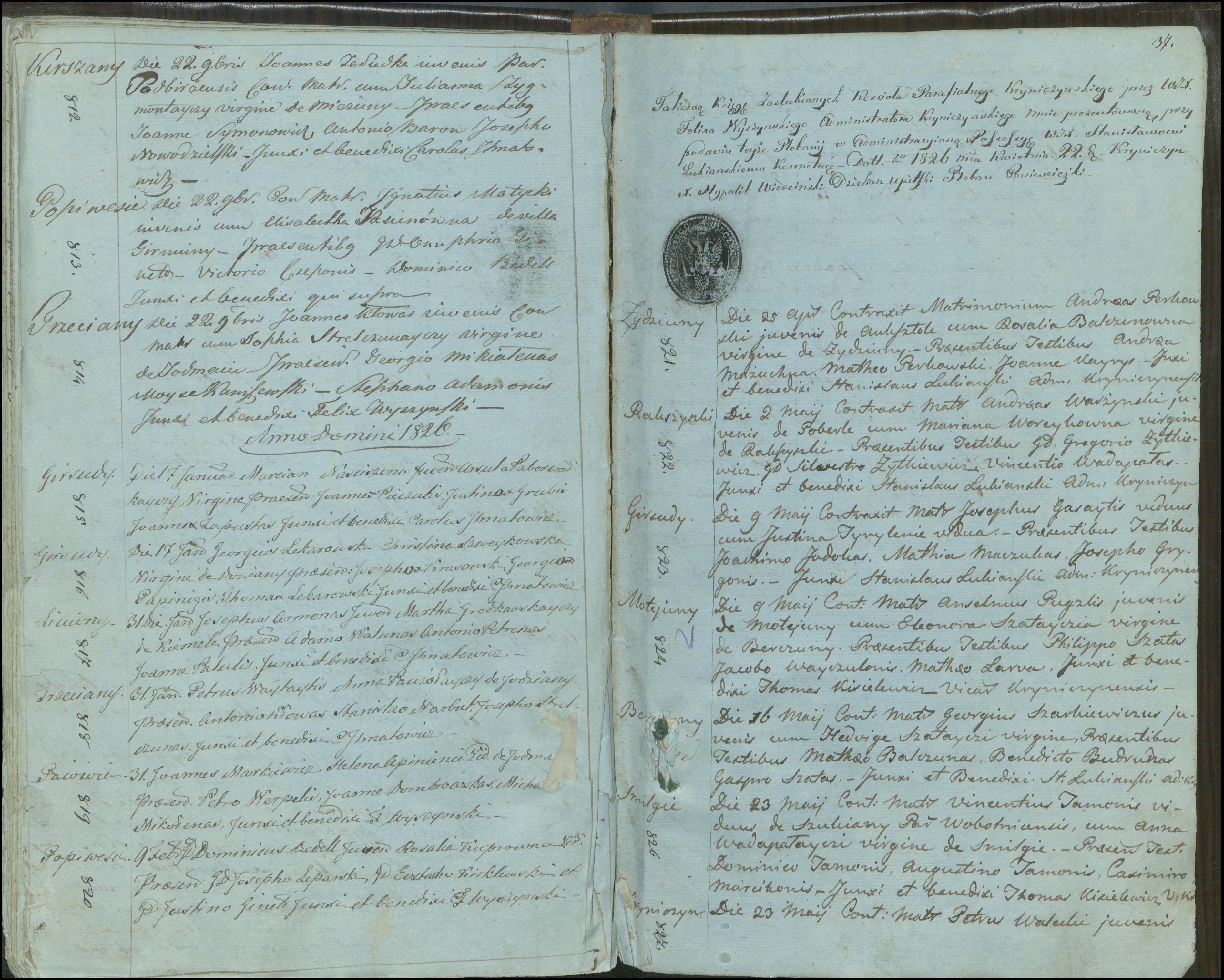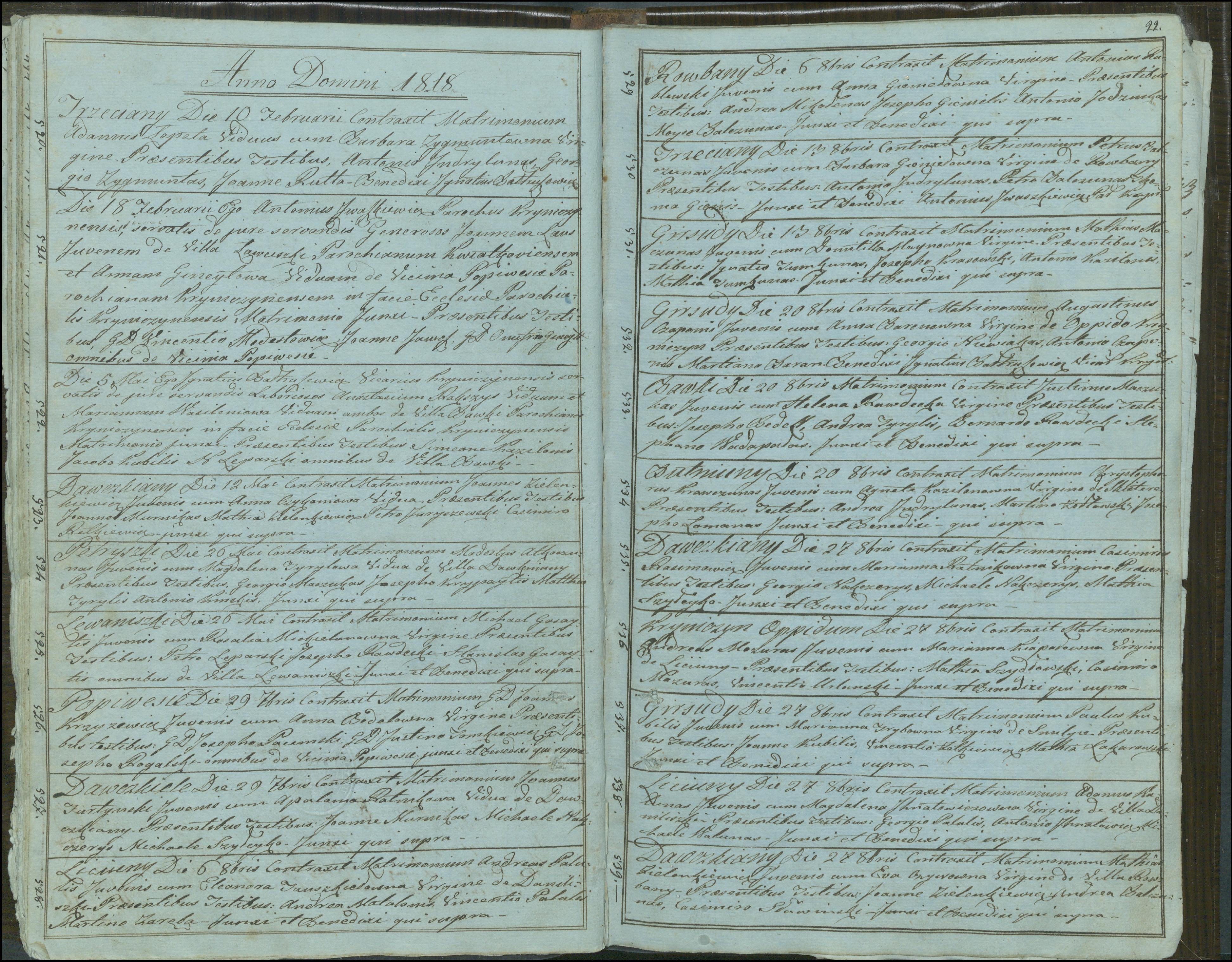 Krinčino Romos katalikų parapijos bažnyčios 1803–1826 metų jungtuvių metrikų knyga